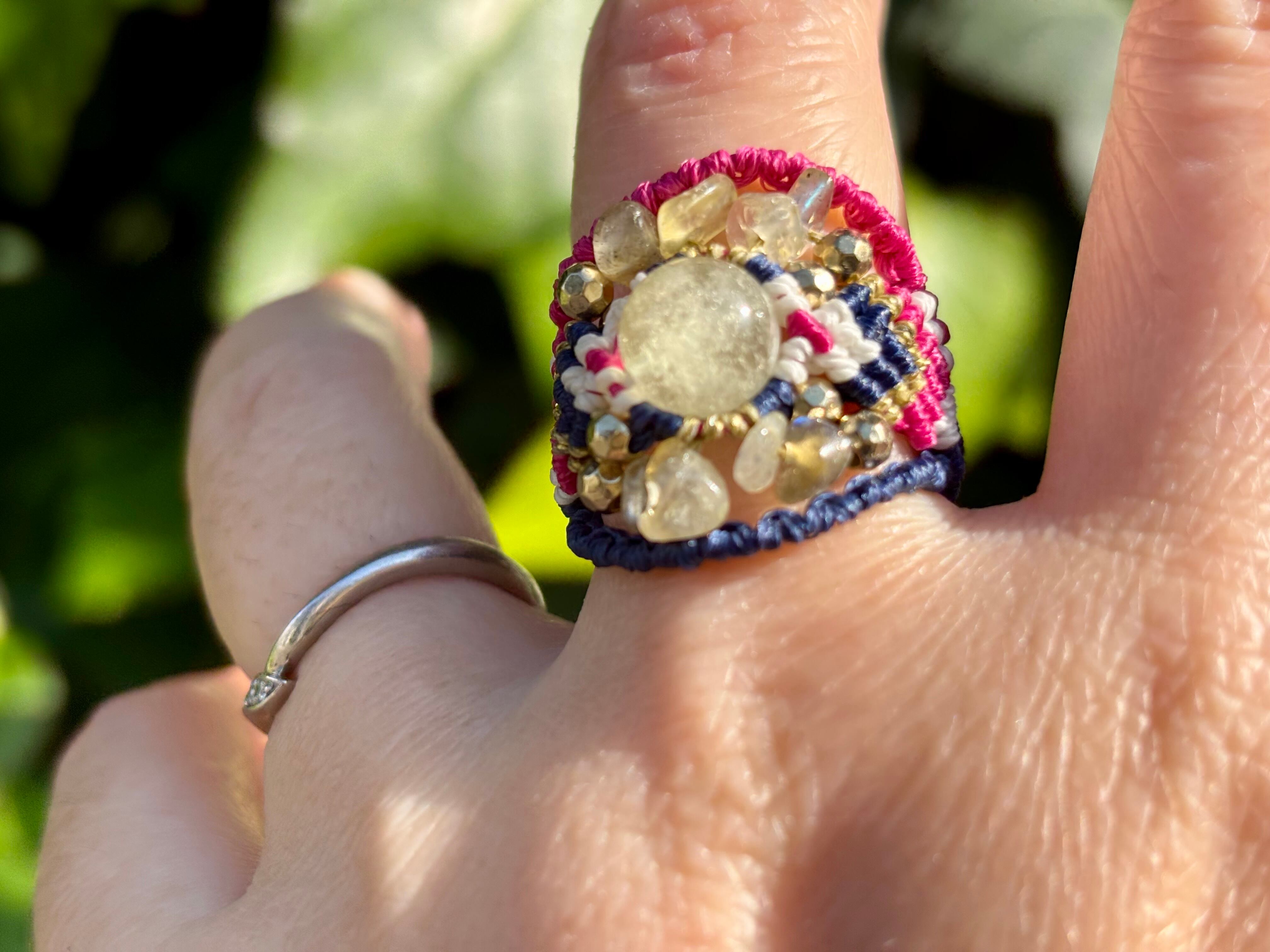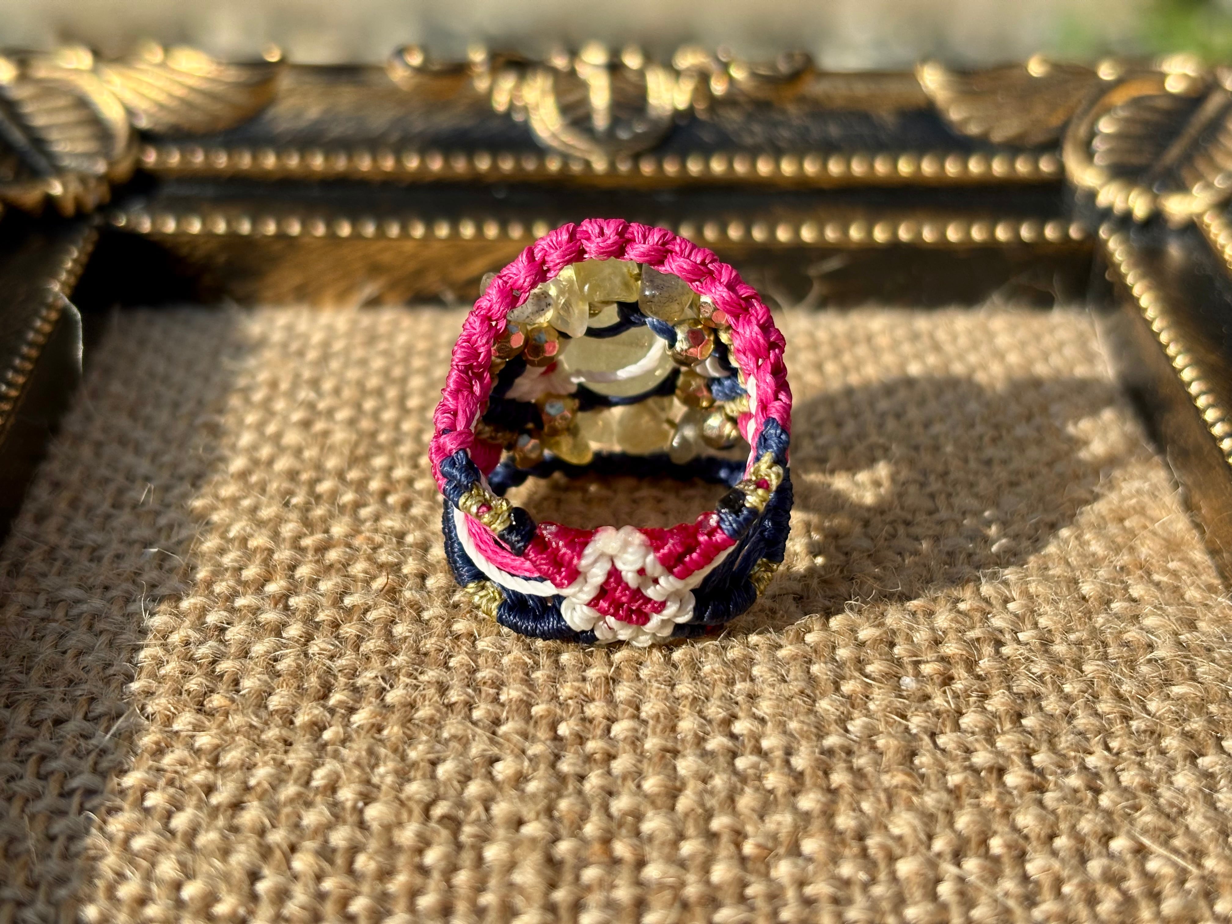手作業で丁寧に編み込まれたこのリングは、日常のコーディネートに華を添えるだけでなく、特別な場面でも存在感を発揮します。