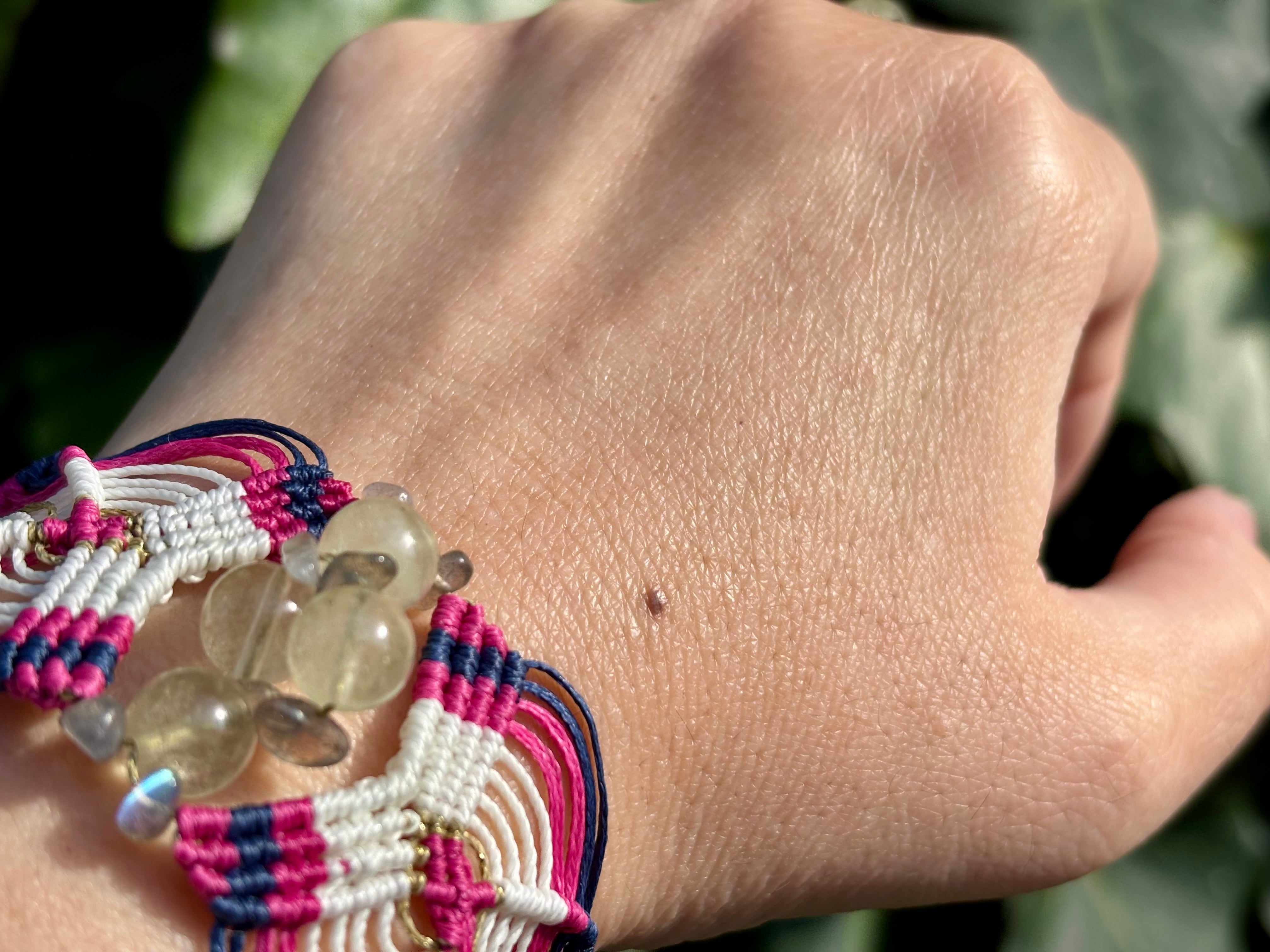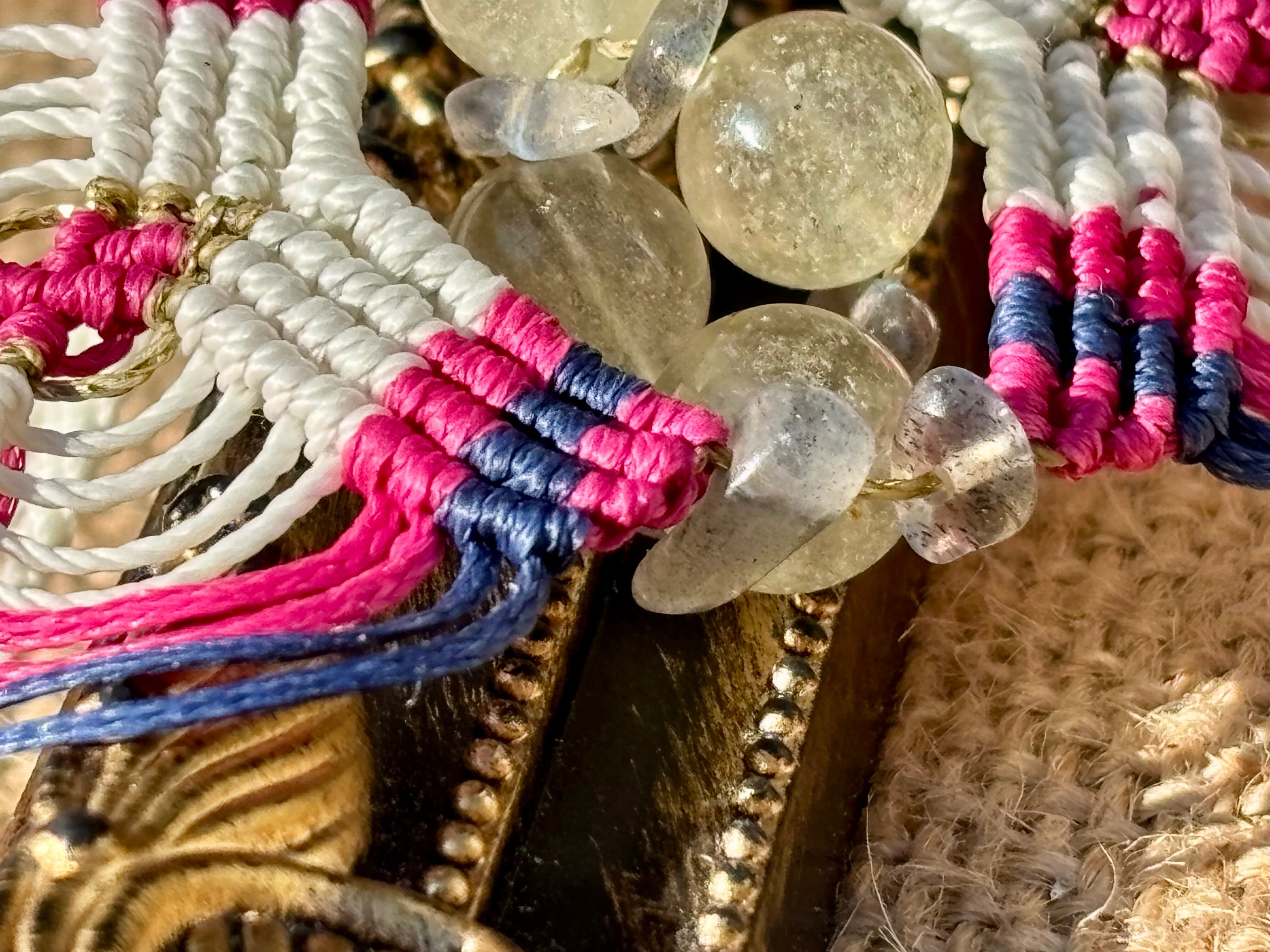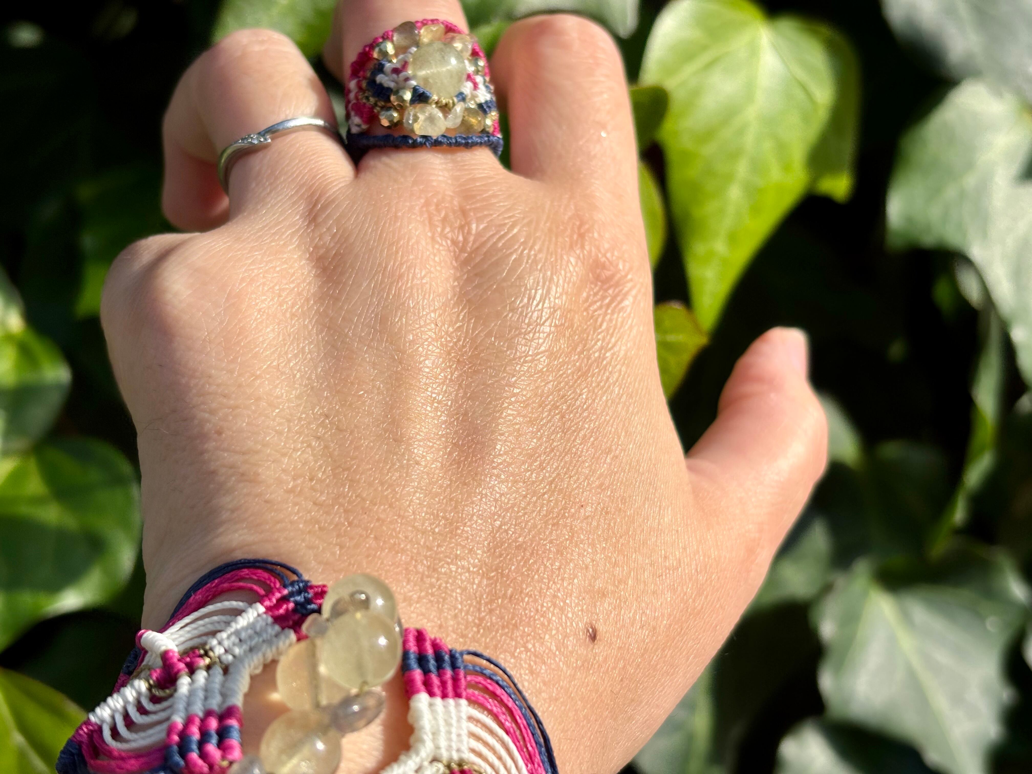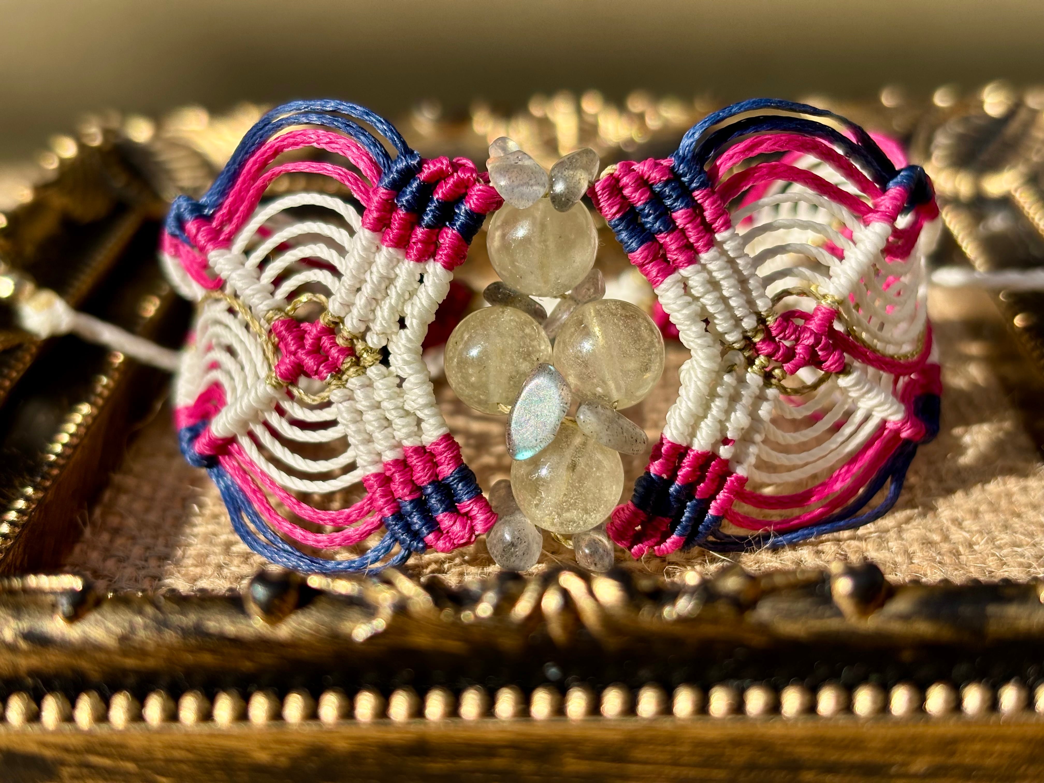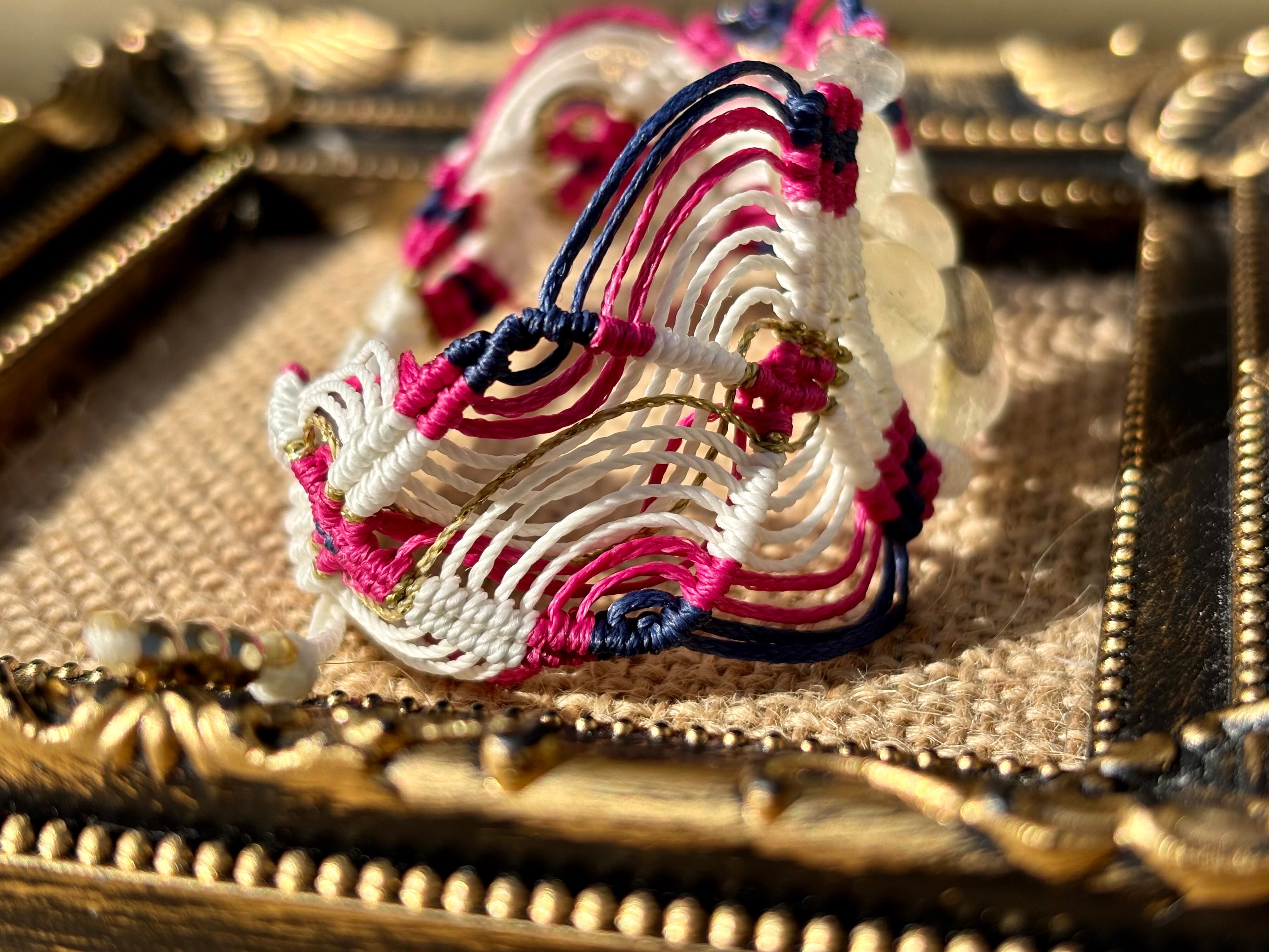 手作業で丁寧に編み込まれたこのブレスレットは、日常のコーディネートに華を添えるだけでなく、特別な場面でも存在感を発揮します。