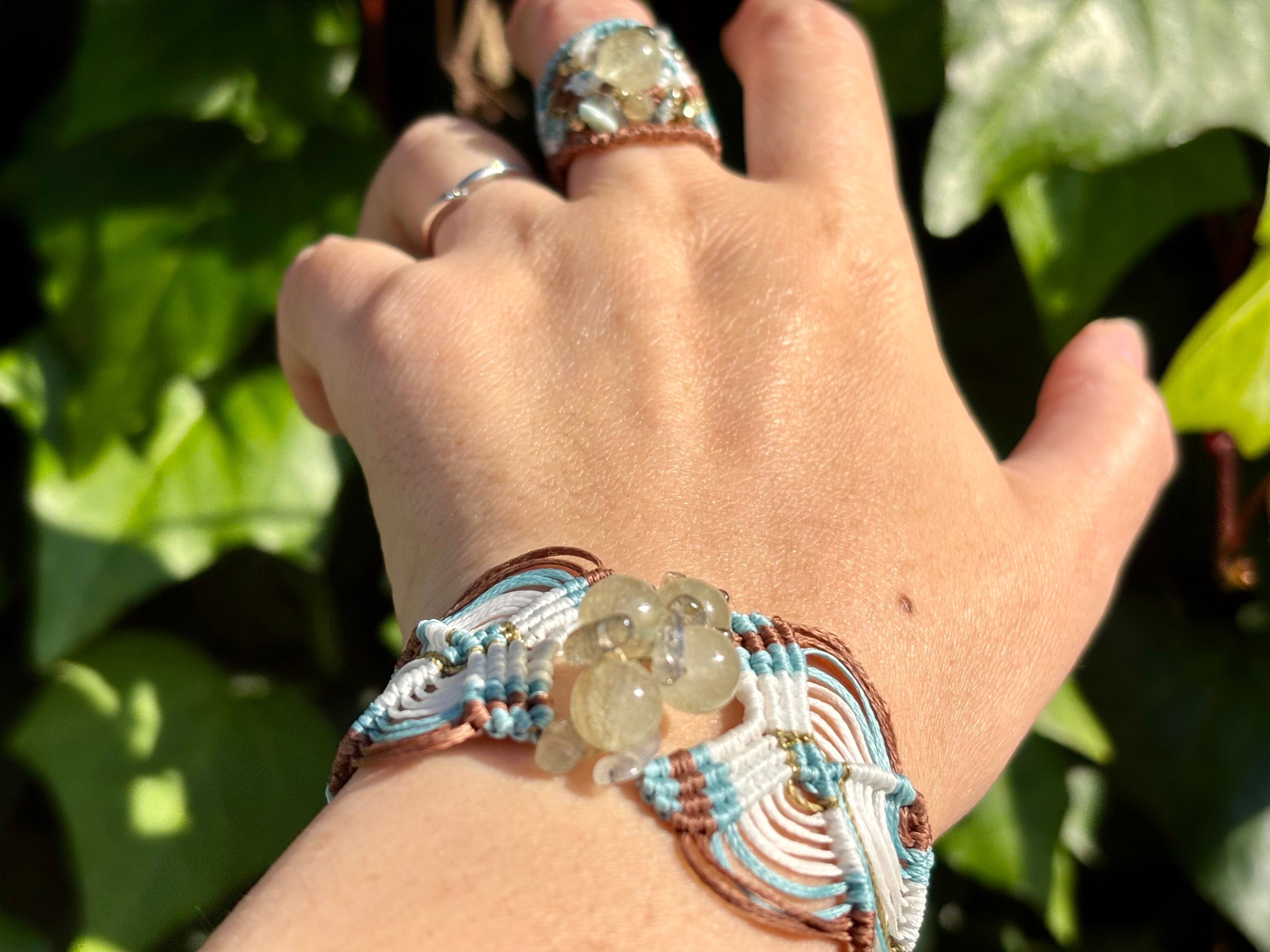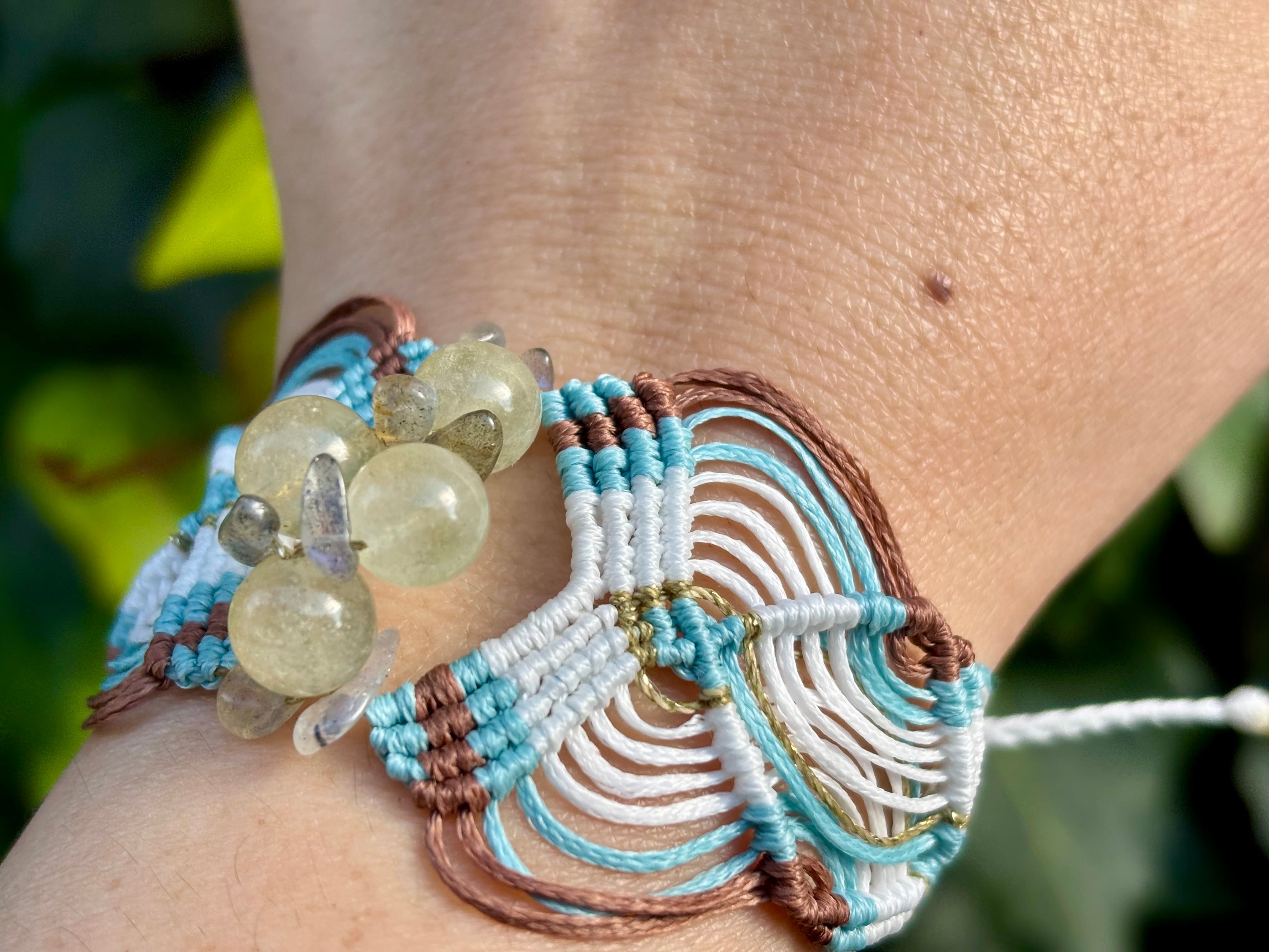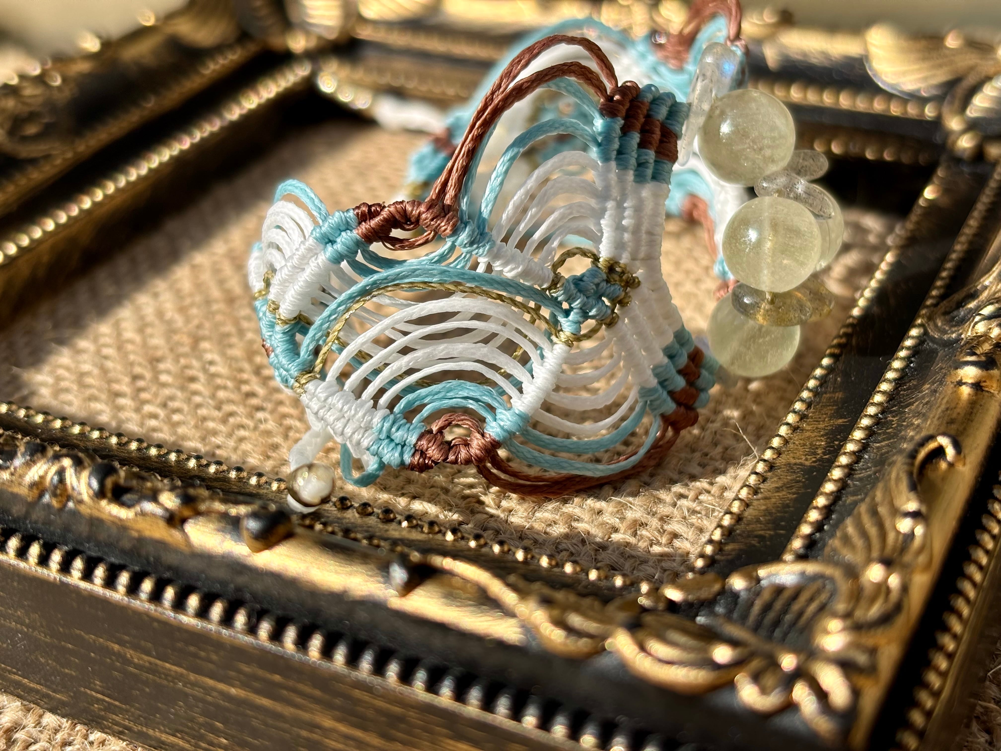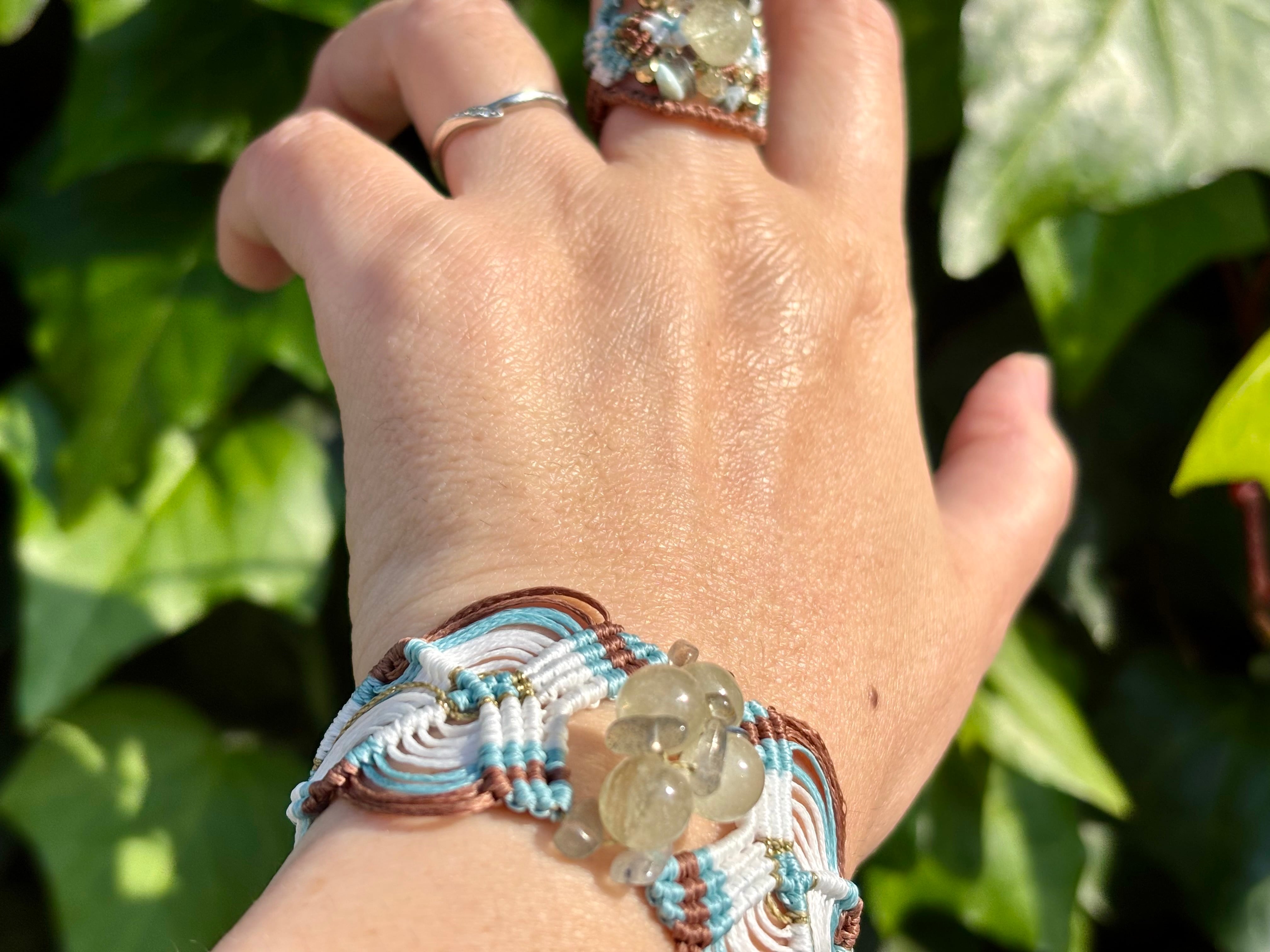 手作業で丁寧に編み込まれたこのブレスレットは、日常のコーディネートに華を添えるだけでなく、特別な場面でも存在感を発揮します。