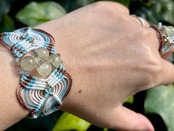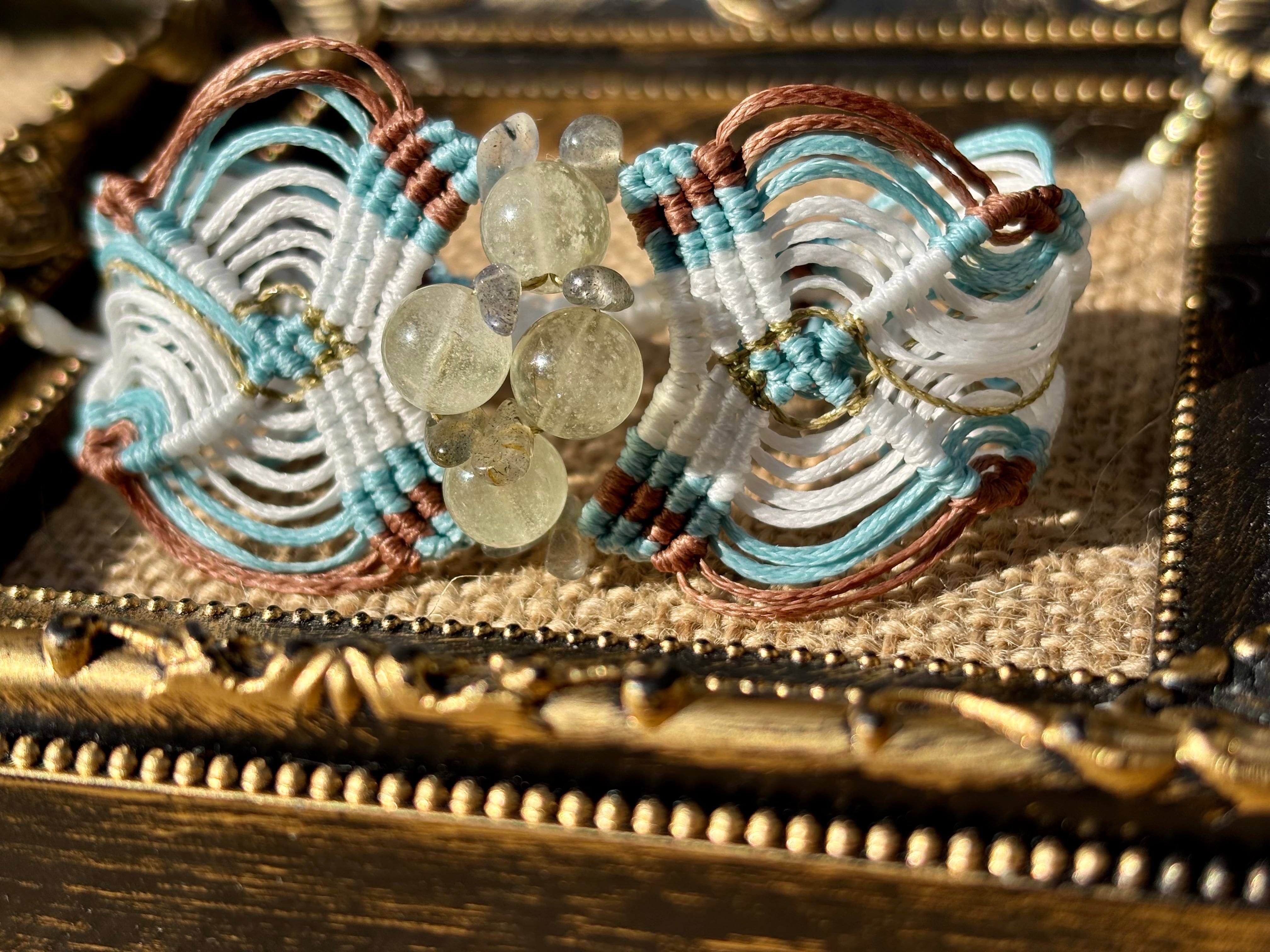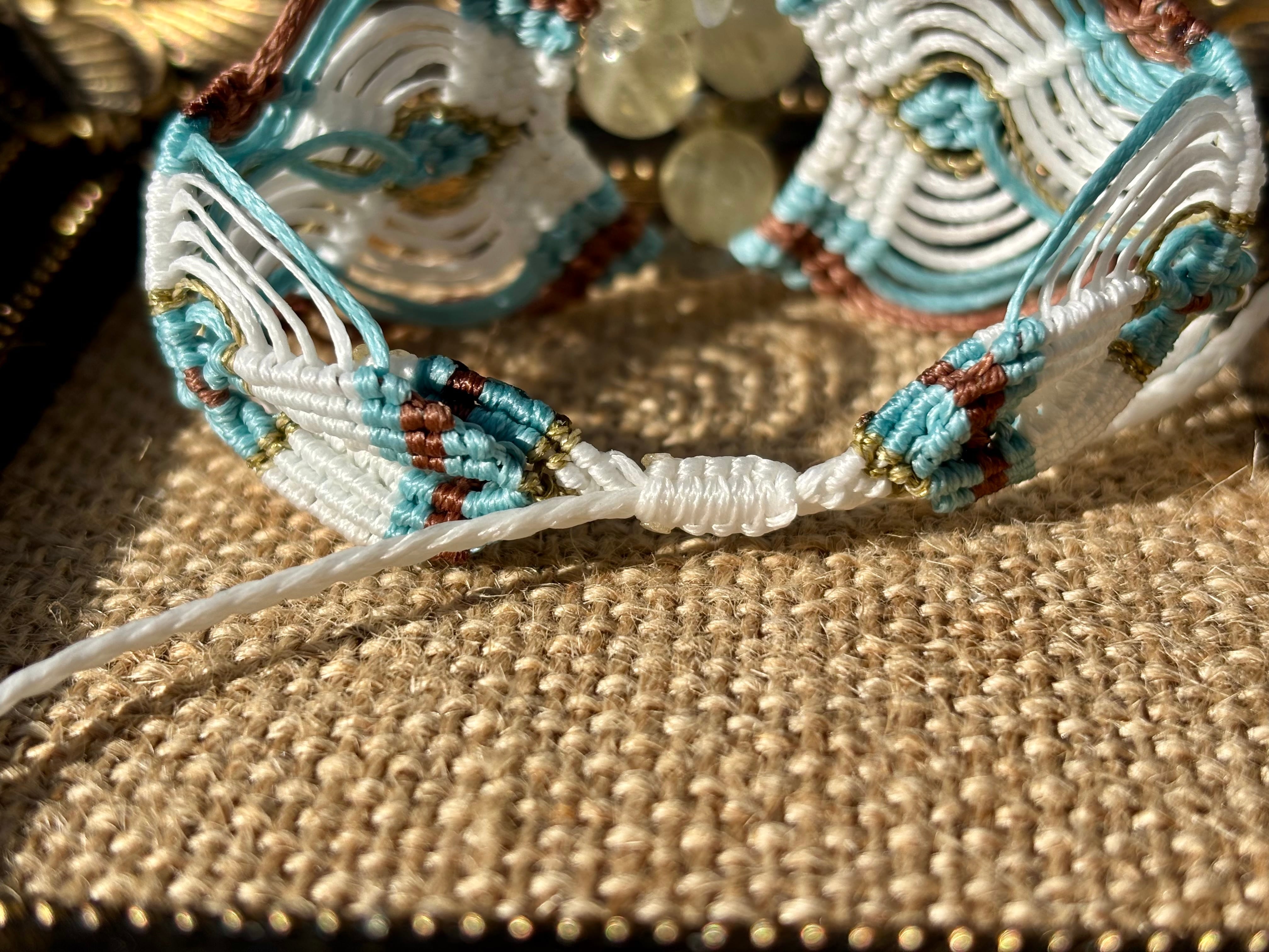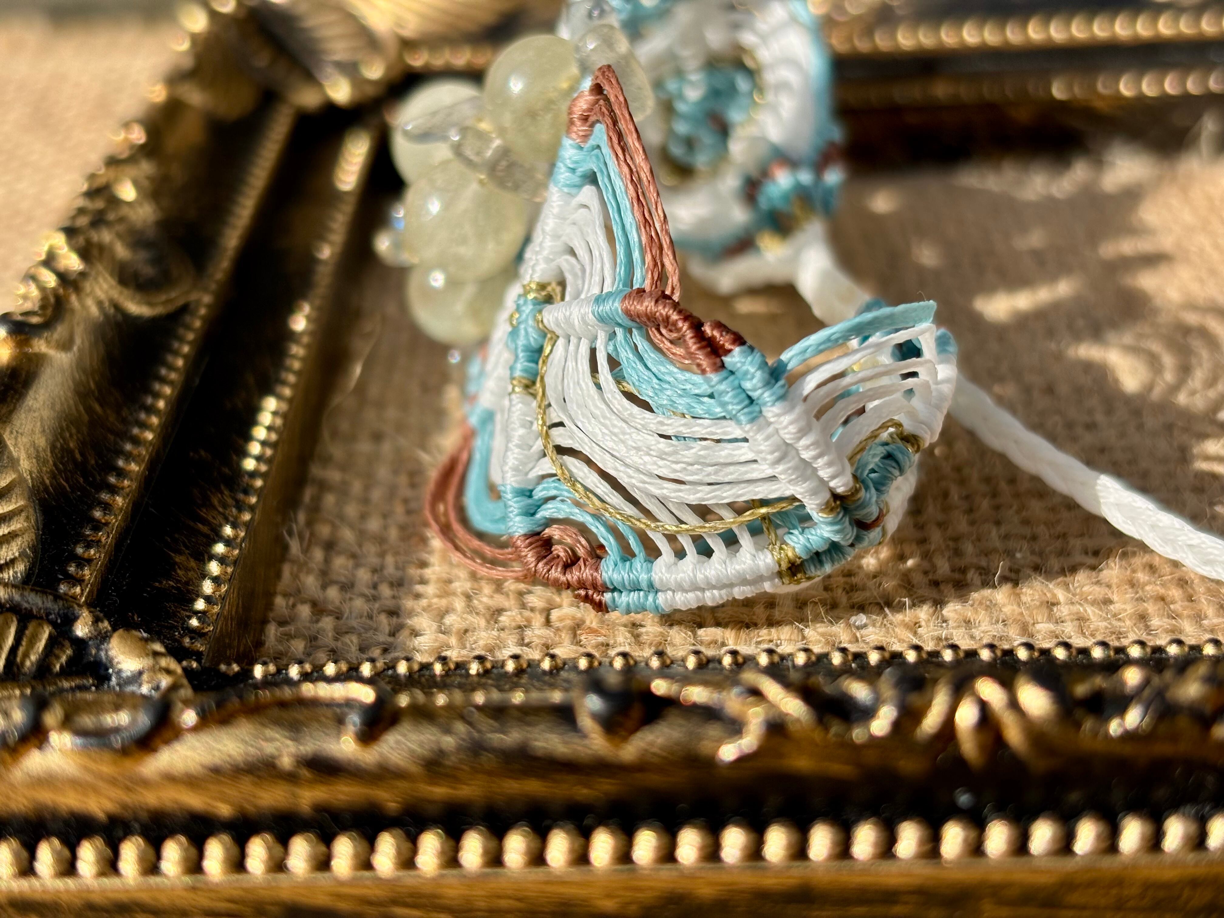 手作業で丁寧に編み込まれたこのブレスレットは、日常のコーディネートに華を添えるだけでなく、特別な場面でも存在感を発揮します。