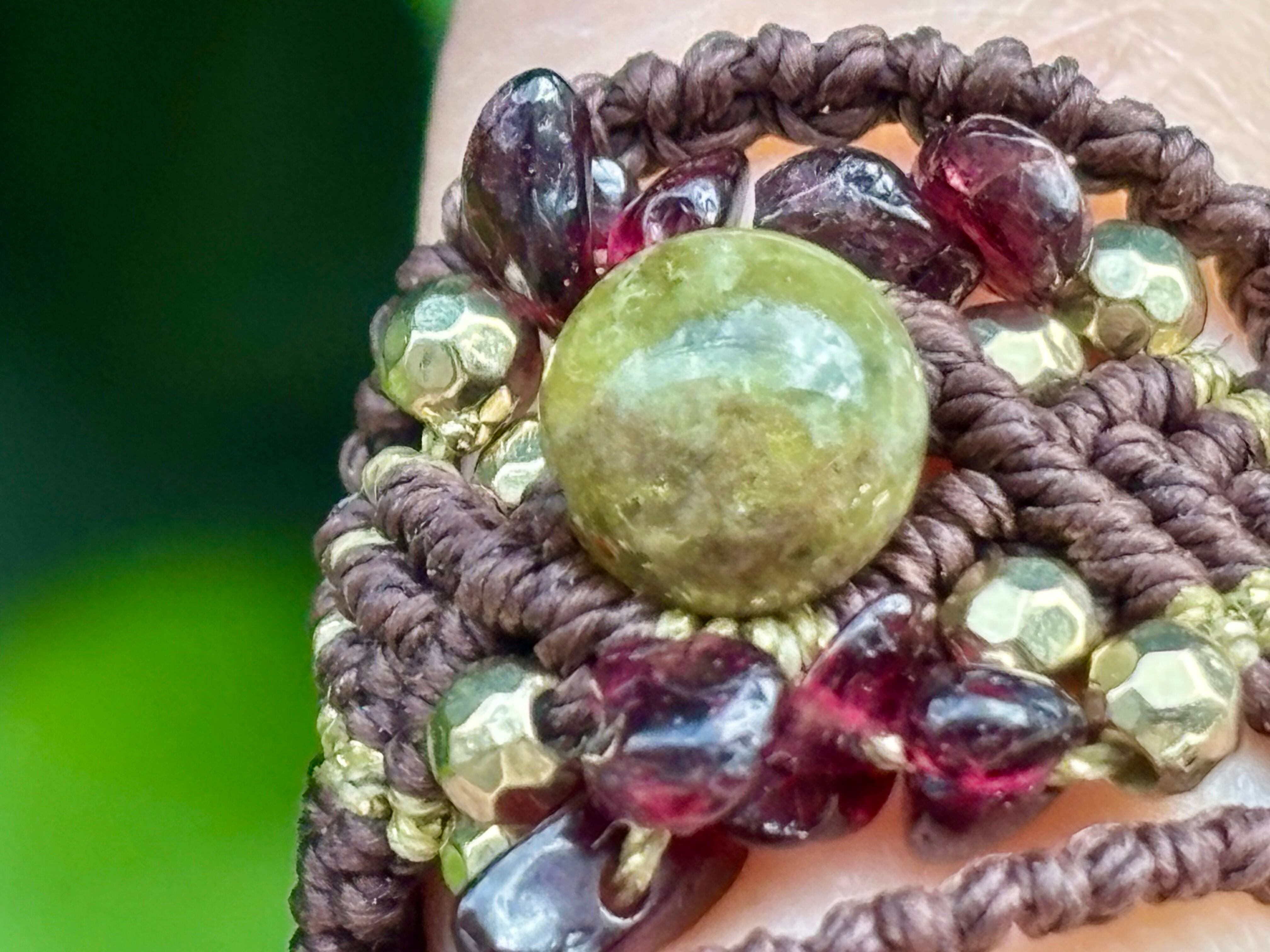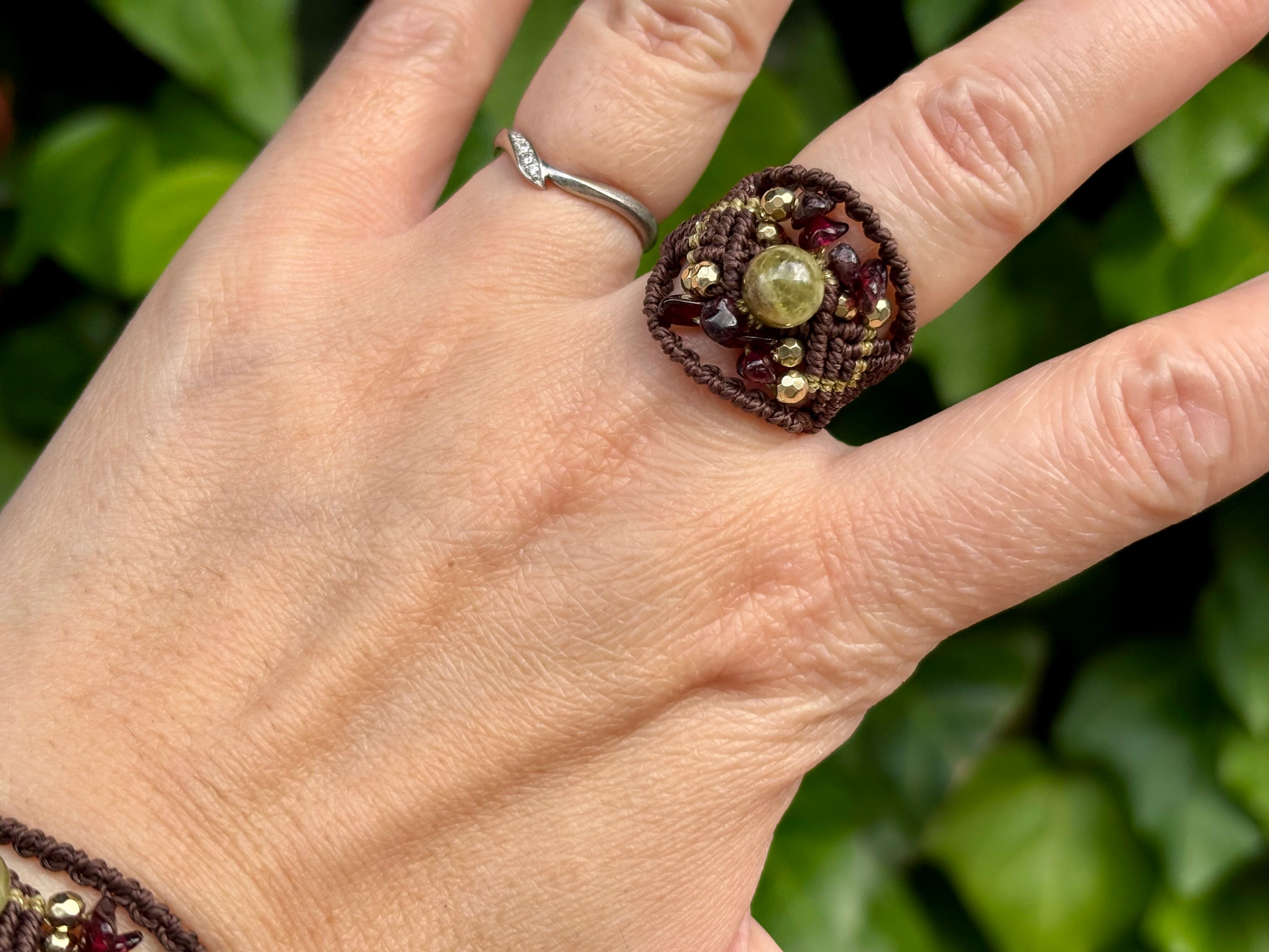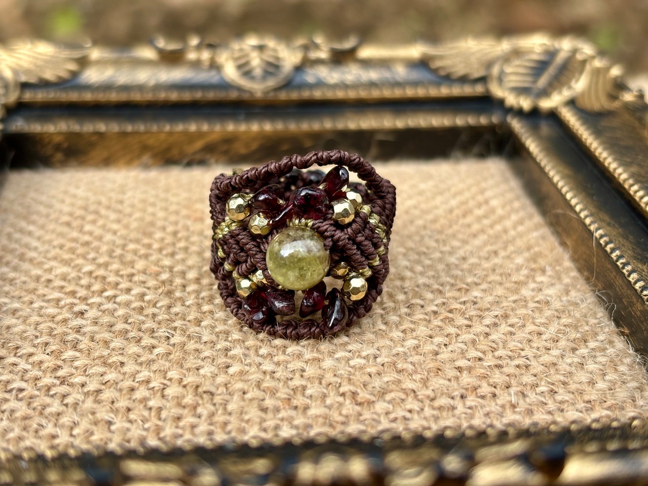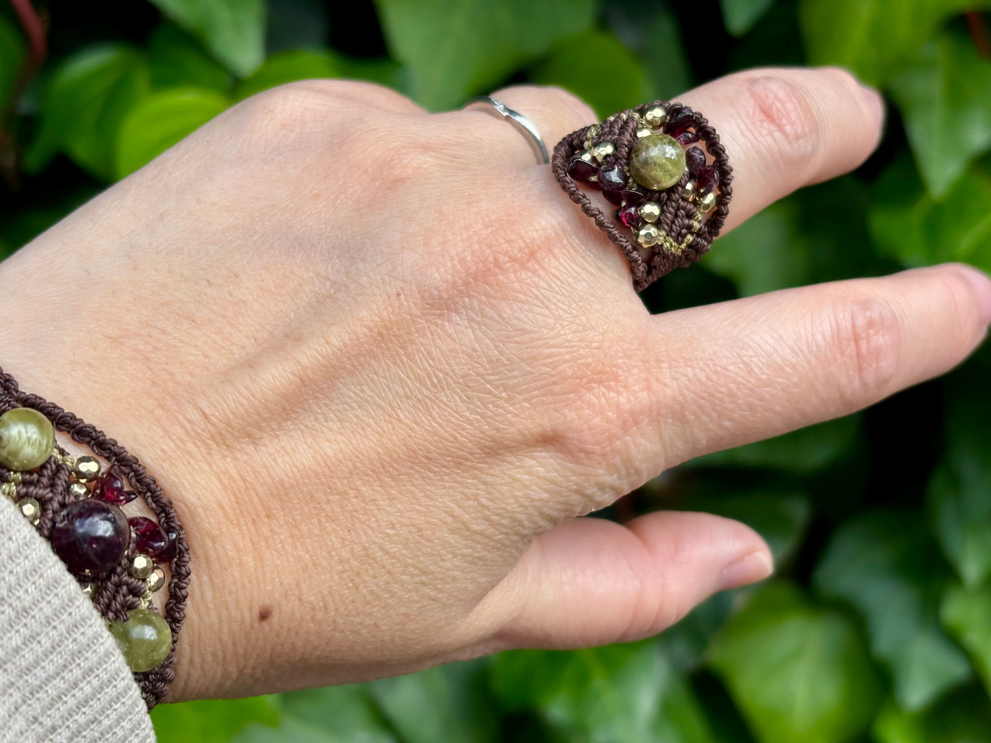 #939希少‼︎ツァボライト一点物(ツァボライト×ガーネット マクラメ編みリング/指輪)