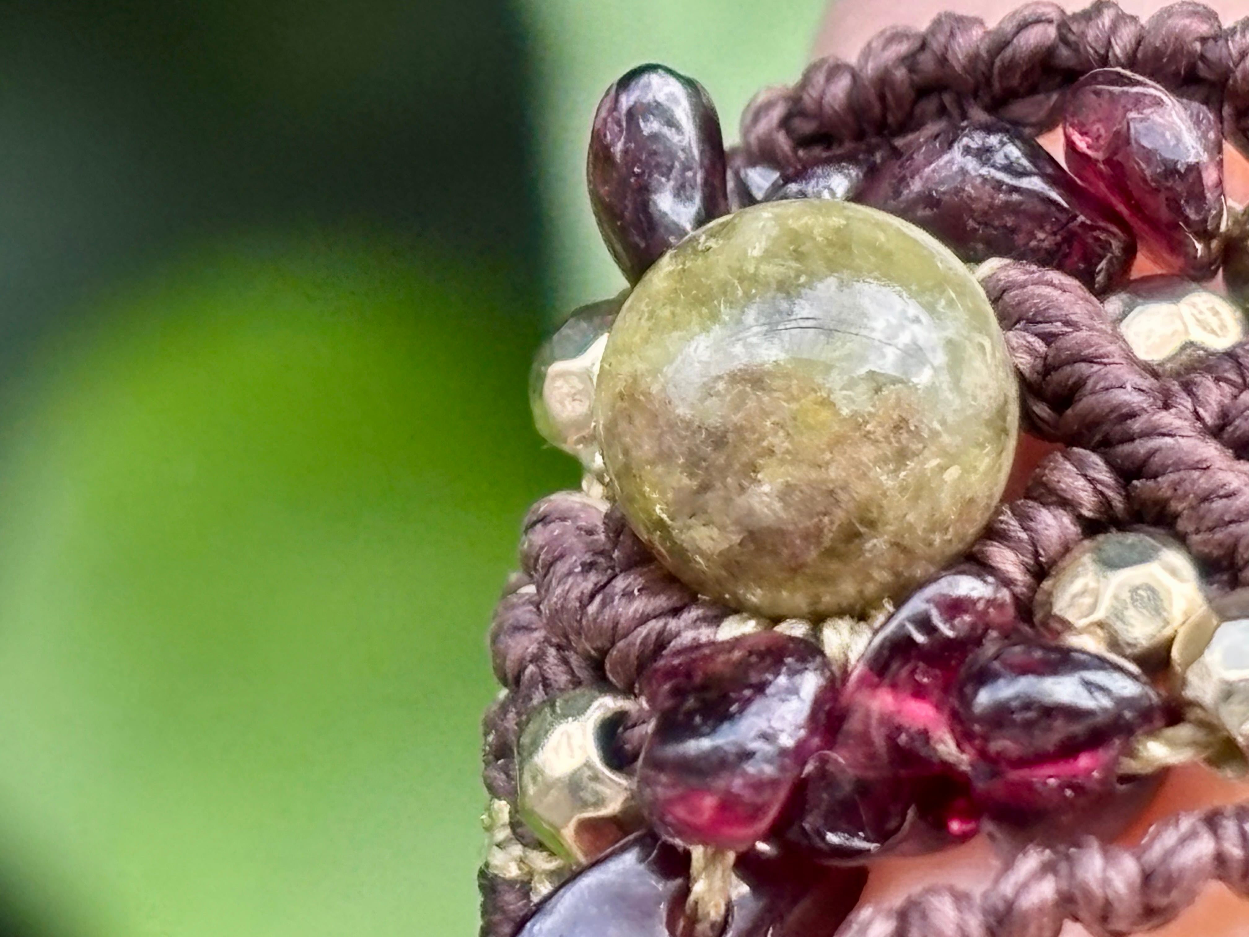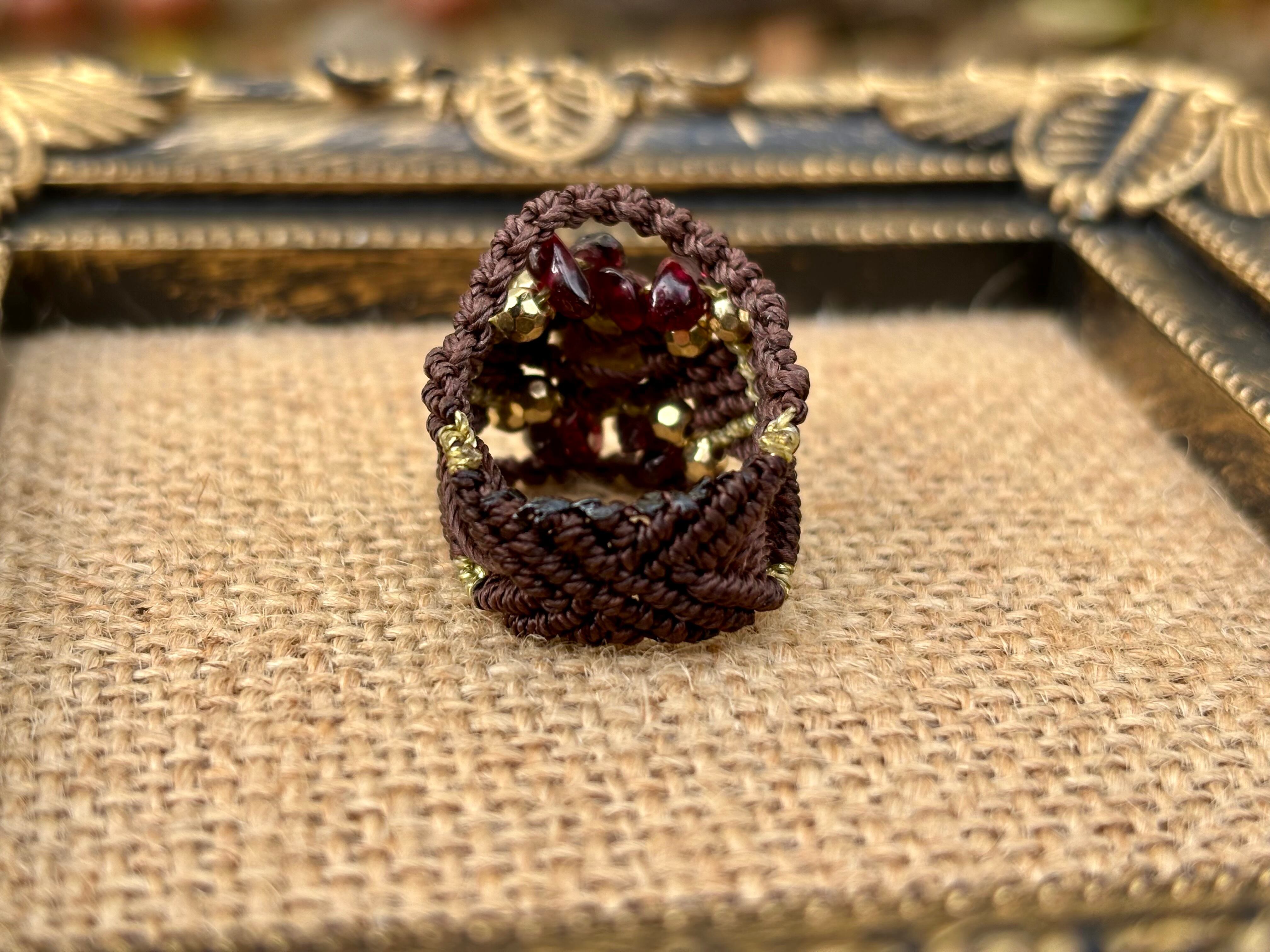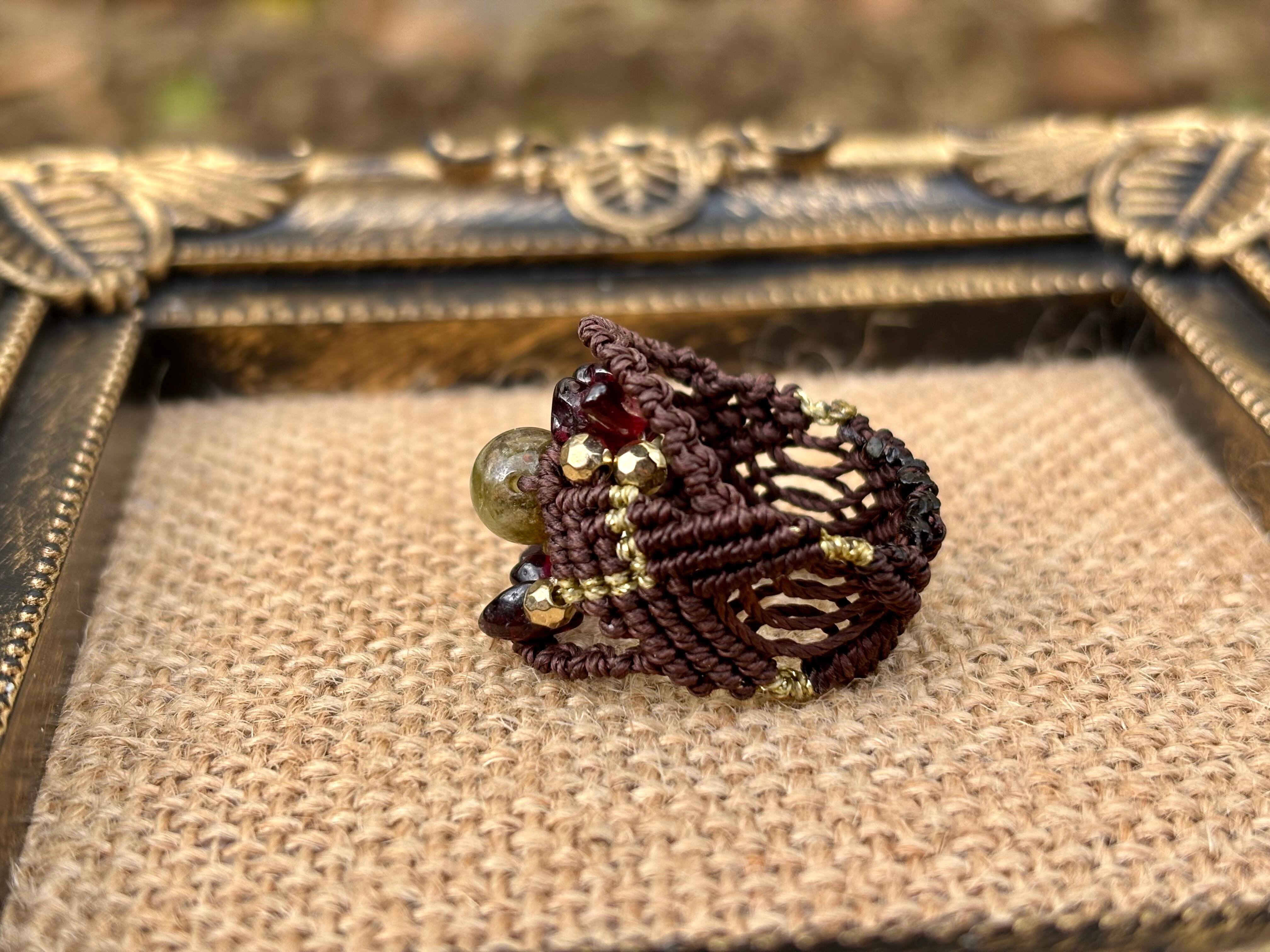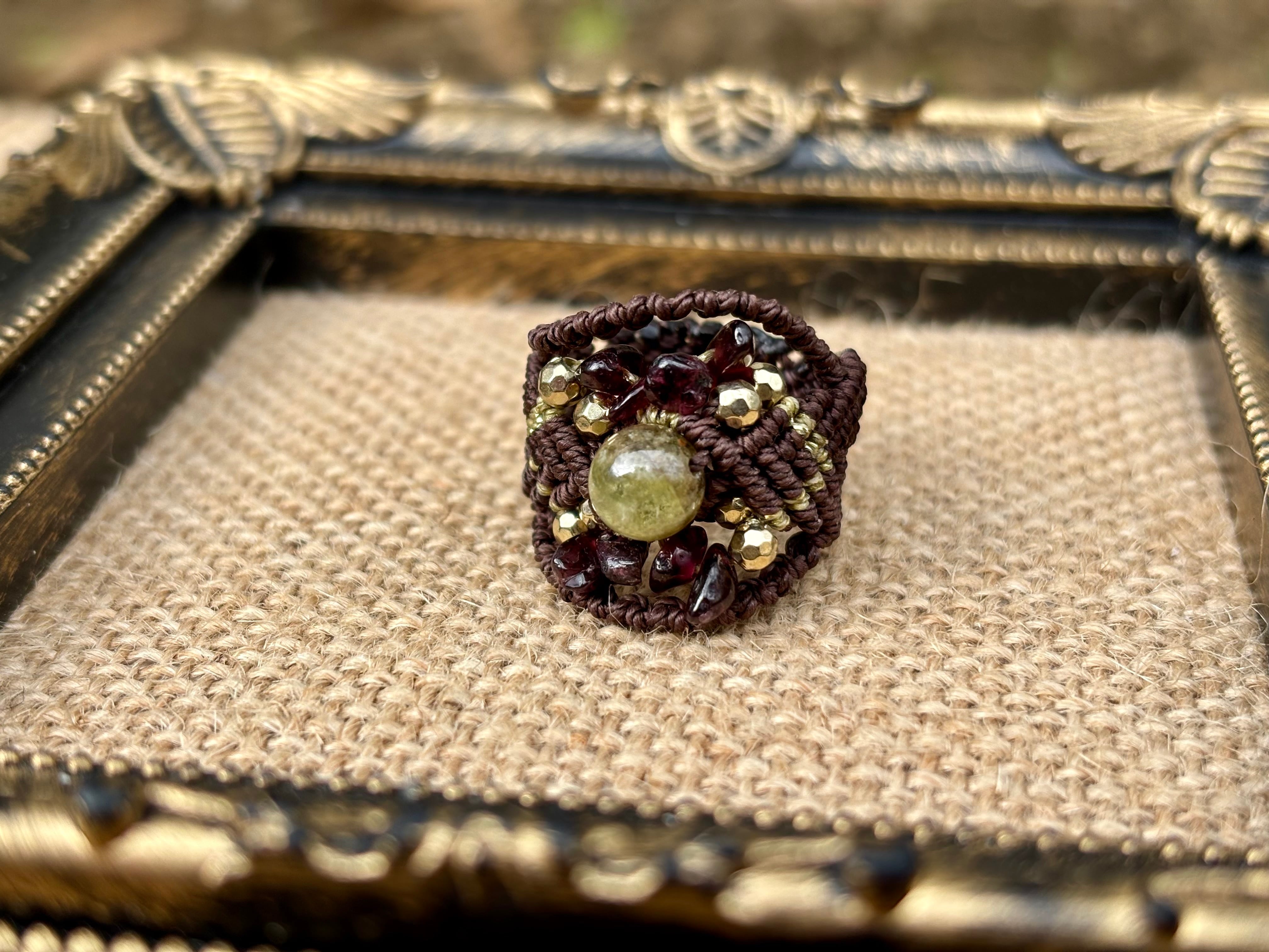 #939希少‼︎ツァボライト一点物(ツァボライト×ガーネット マクラメ編みリング/指輪)