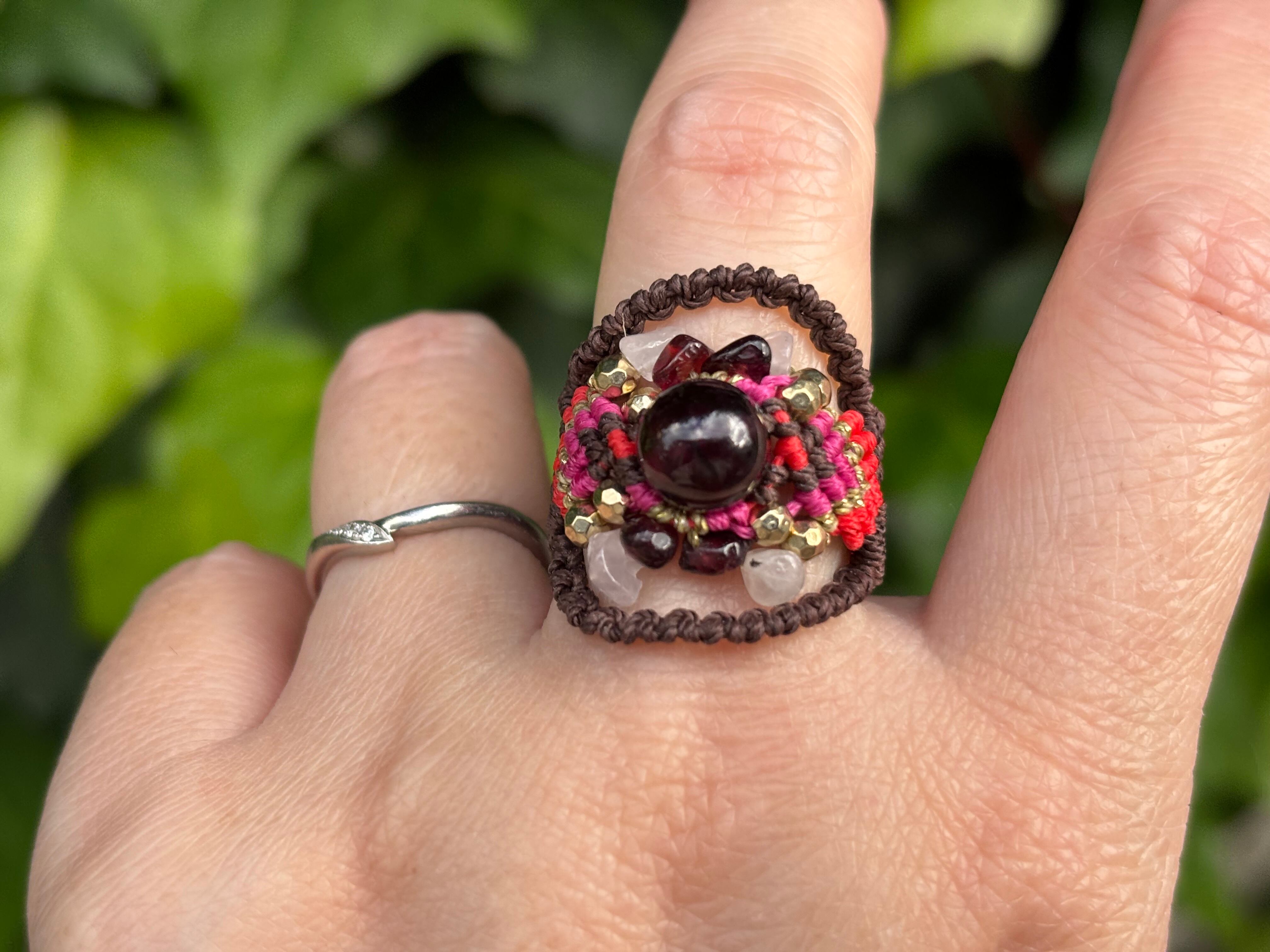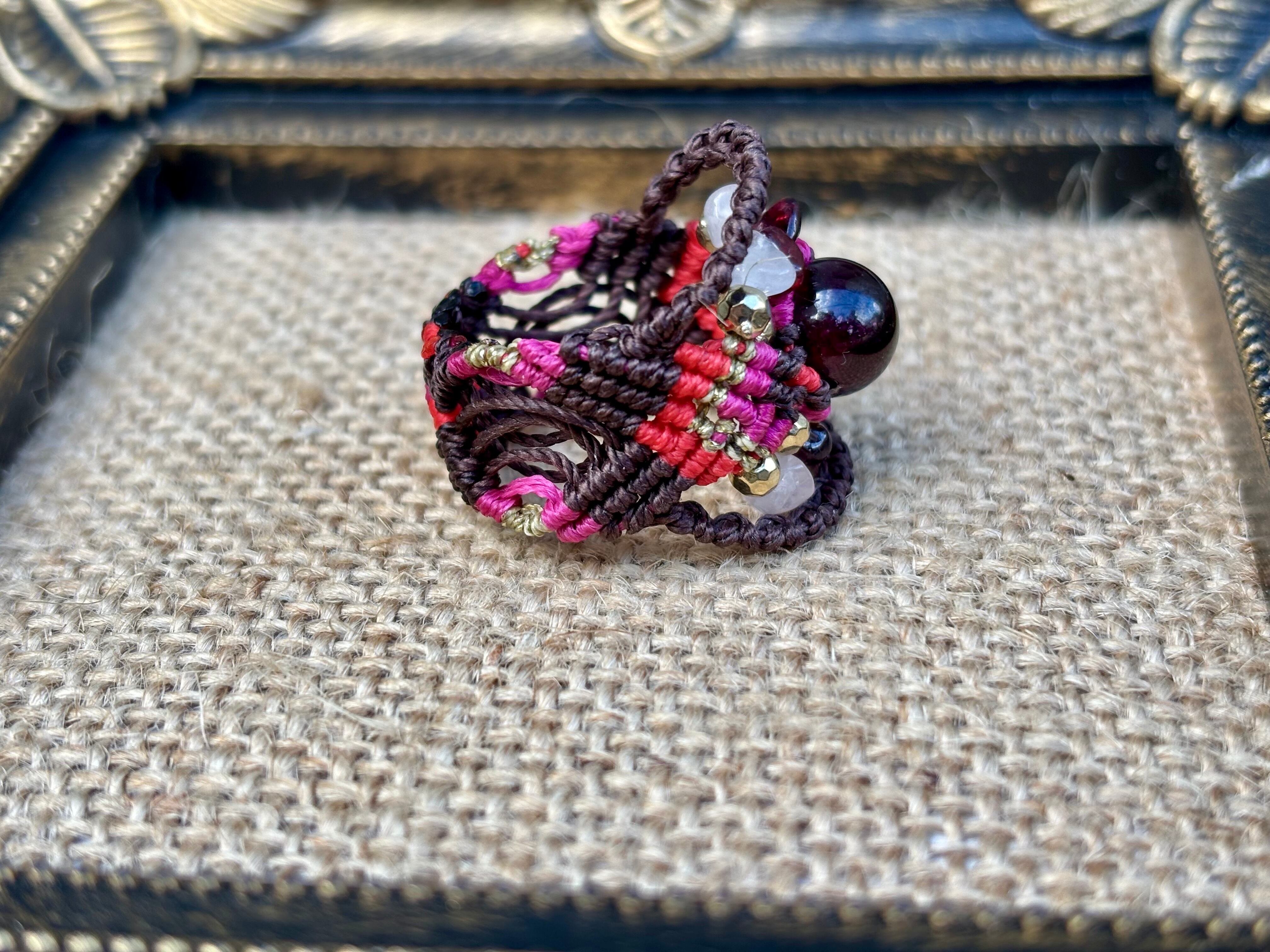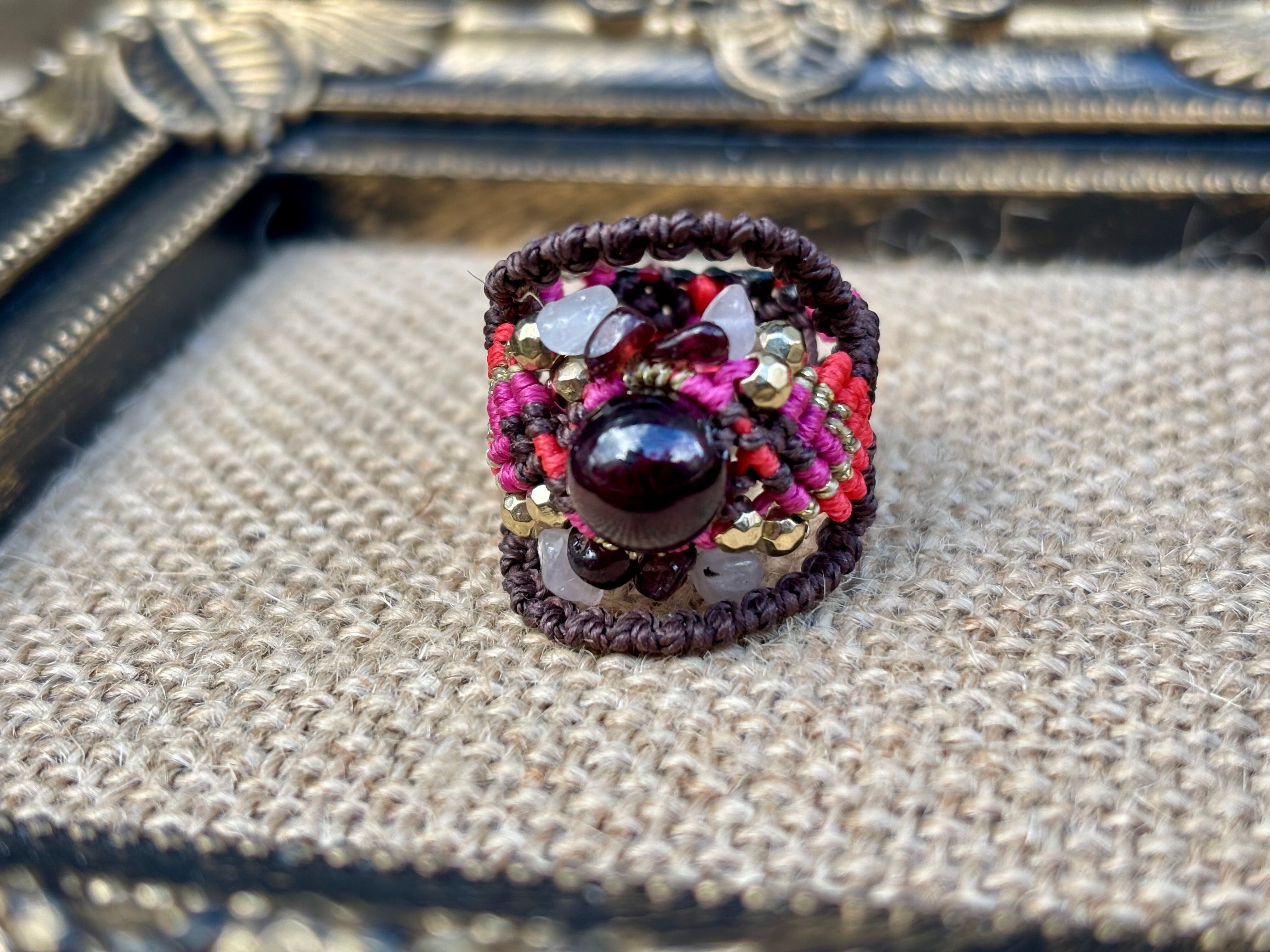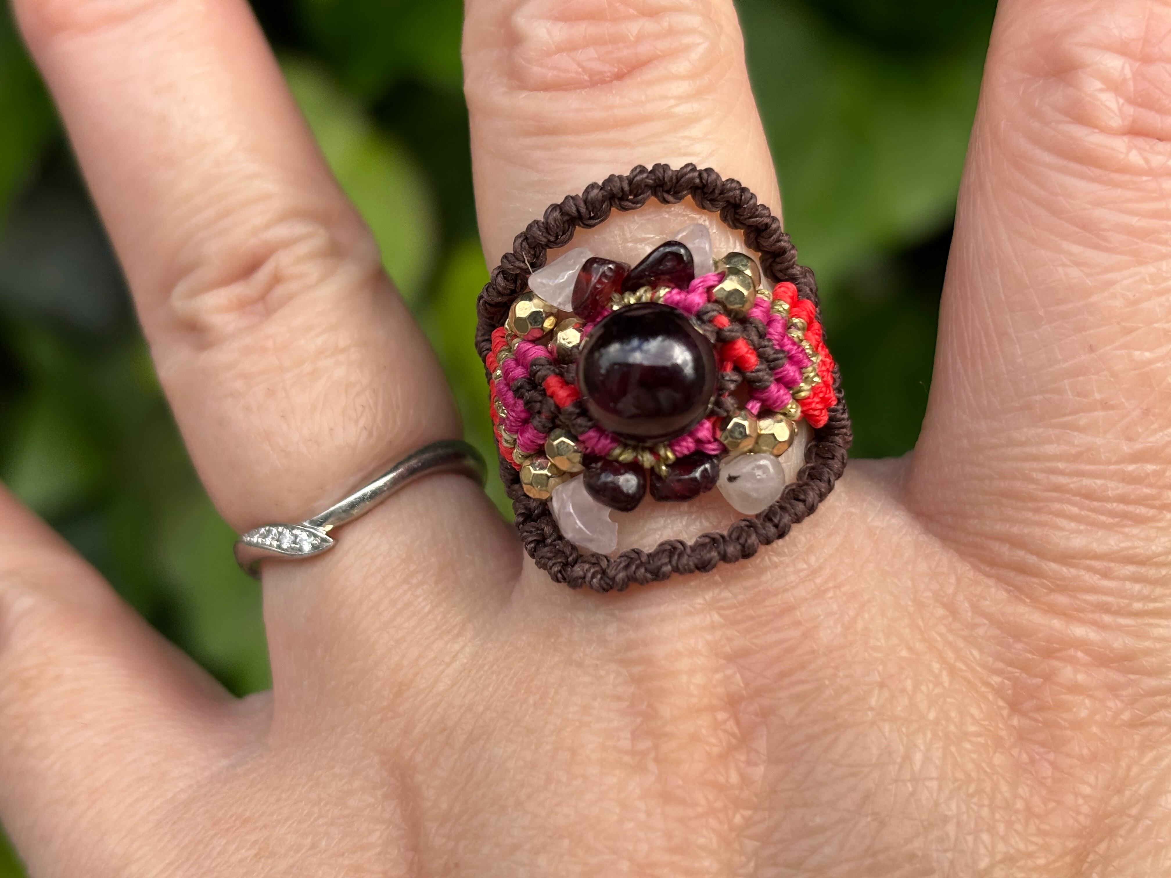 #941限定1点‼︎ロードライトガーネット(ロードライトガーネット×ガーネット×ローズクォーツ マクラメ編みリング/指輪)