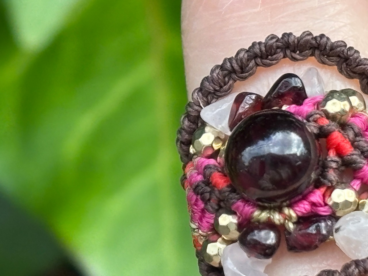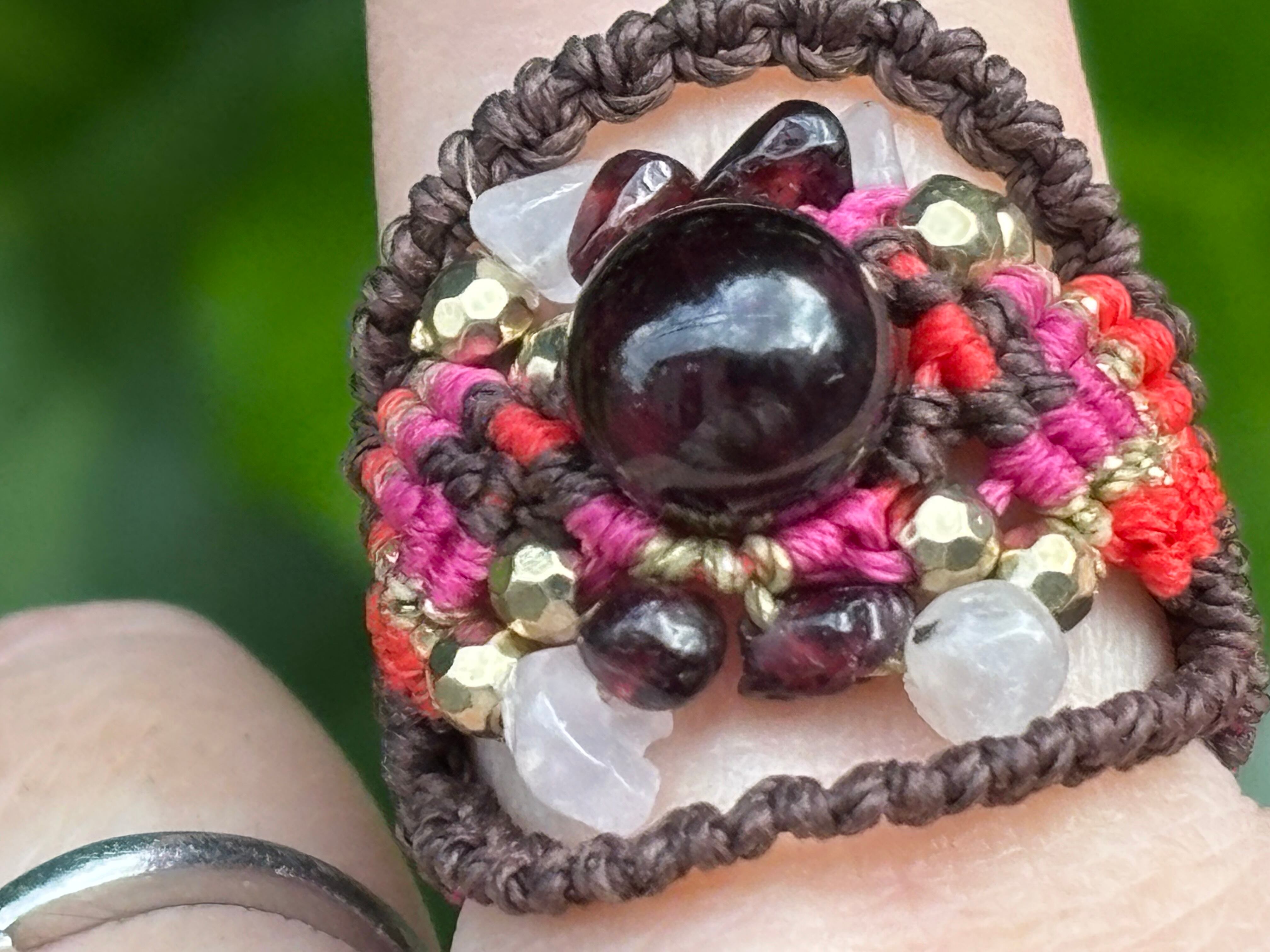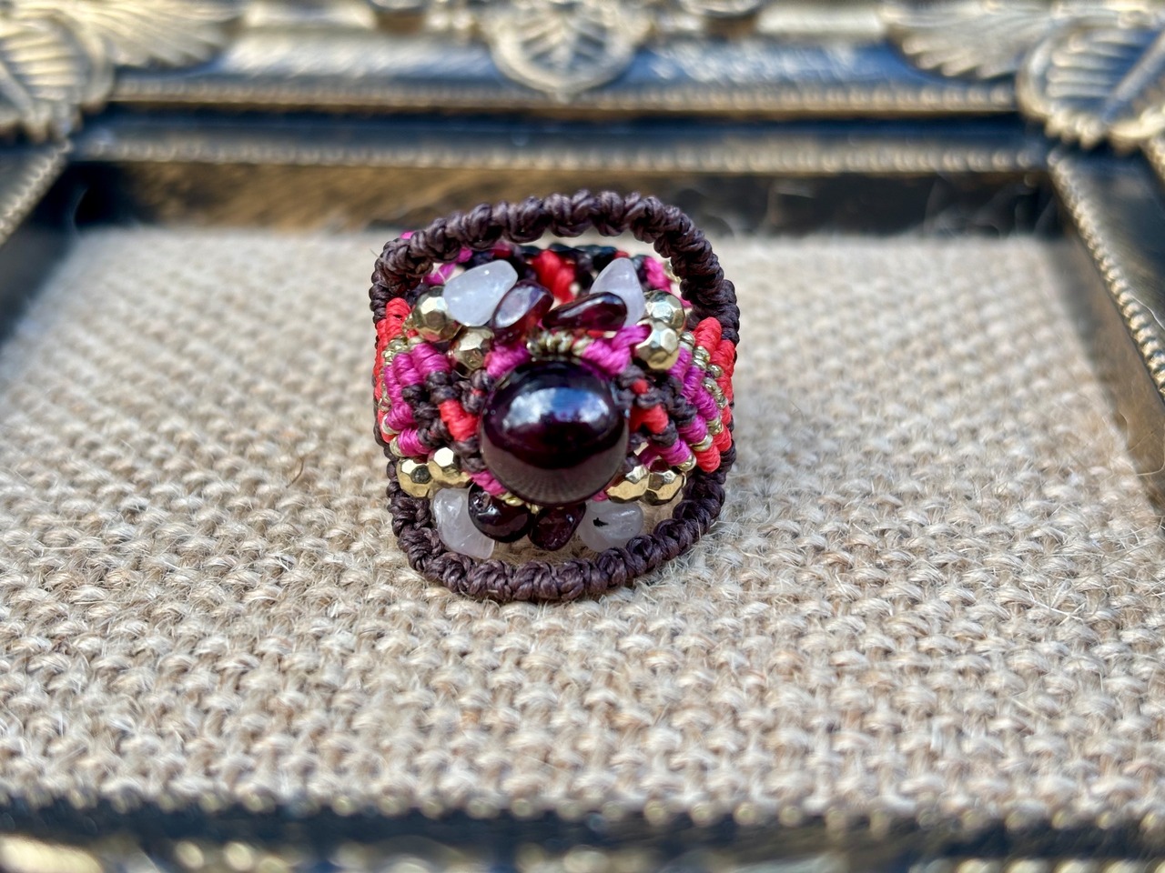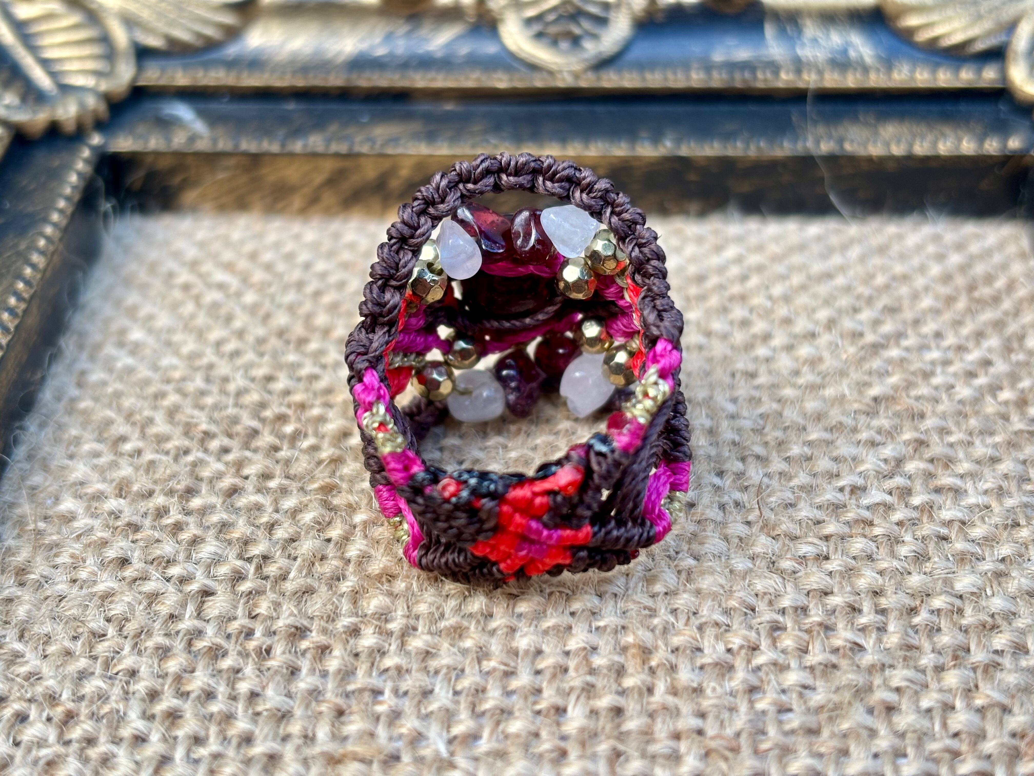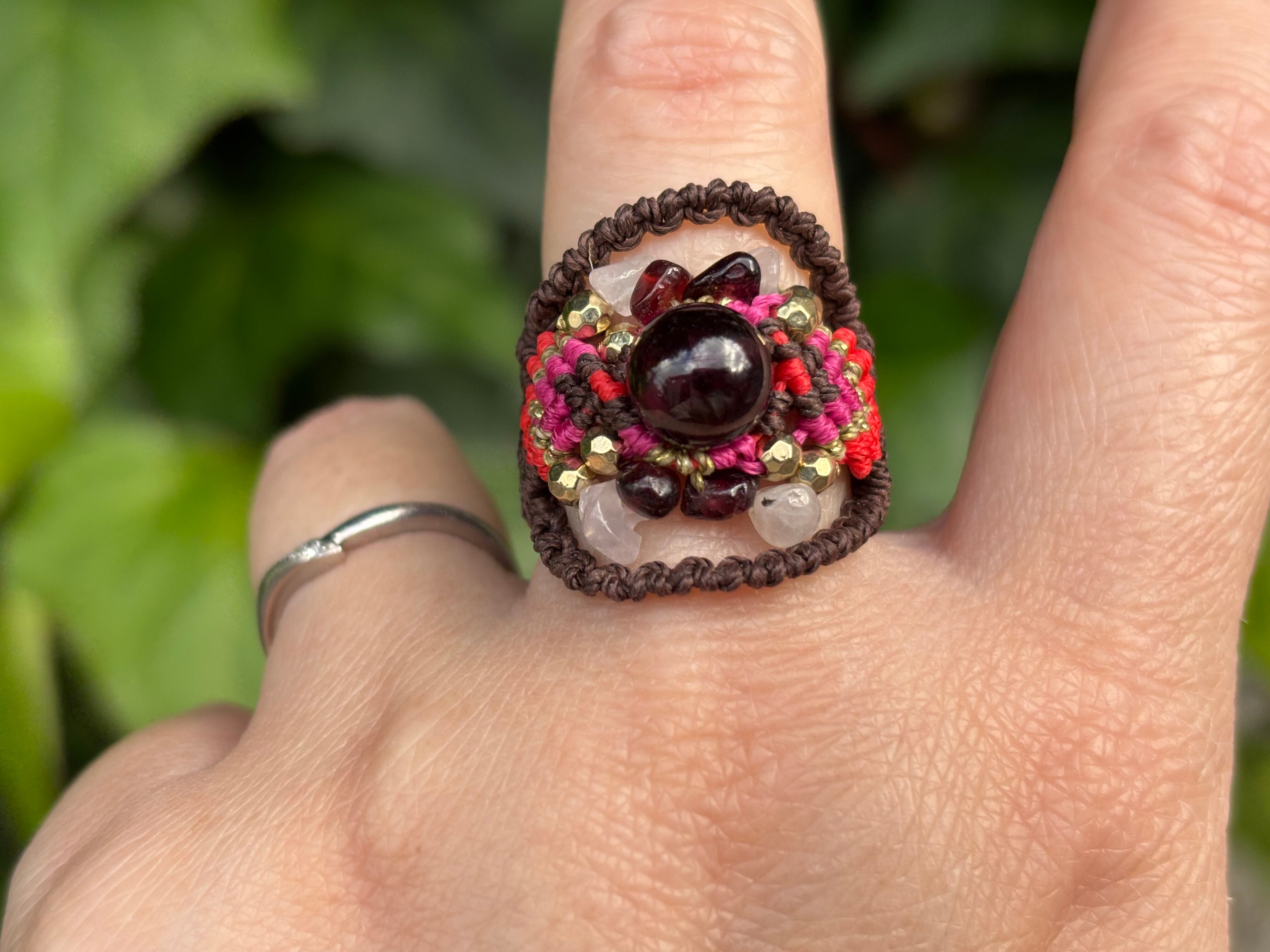 #941限定1点‼︎ロードライトガーネット(ロードライトガーネット×ガーネット×ローズクォーツ マクラメ編みリング/指輪)