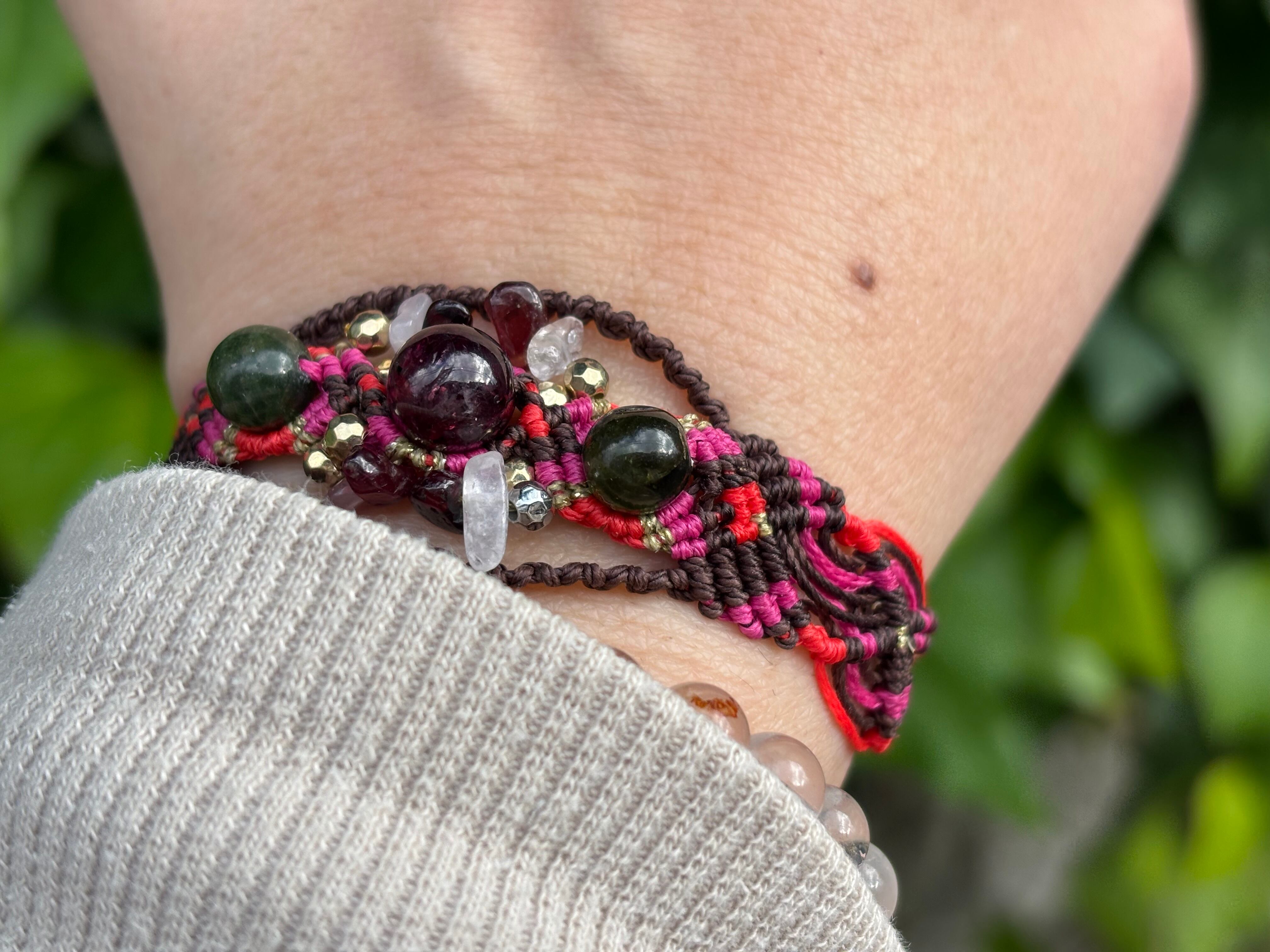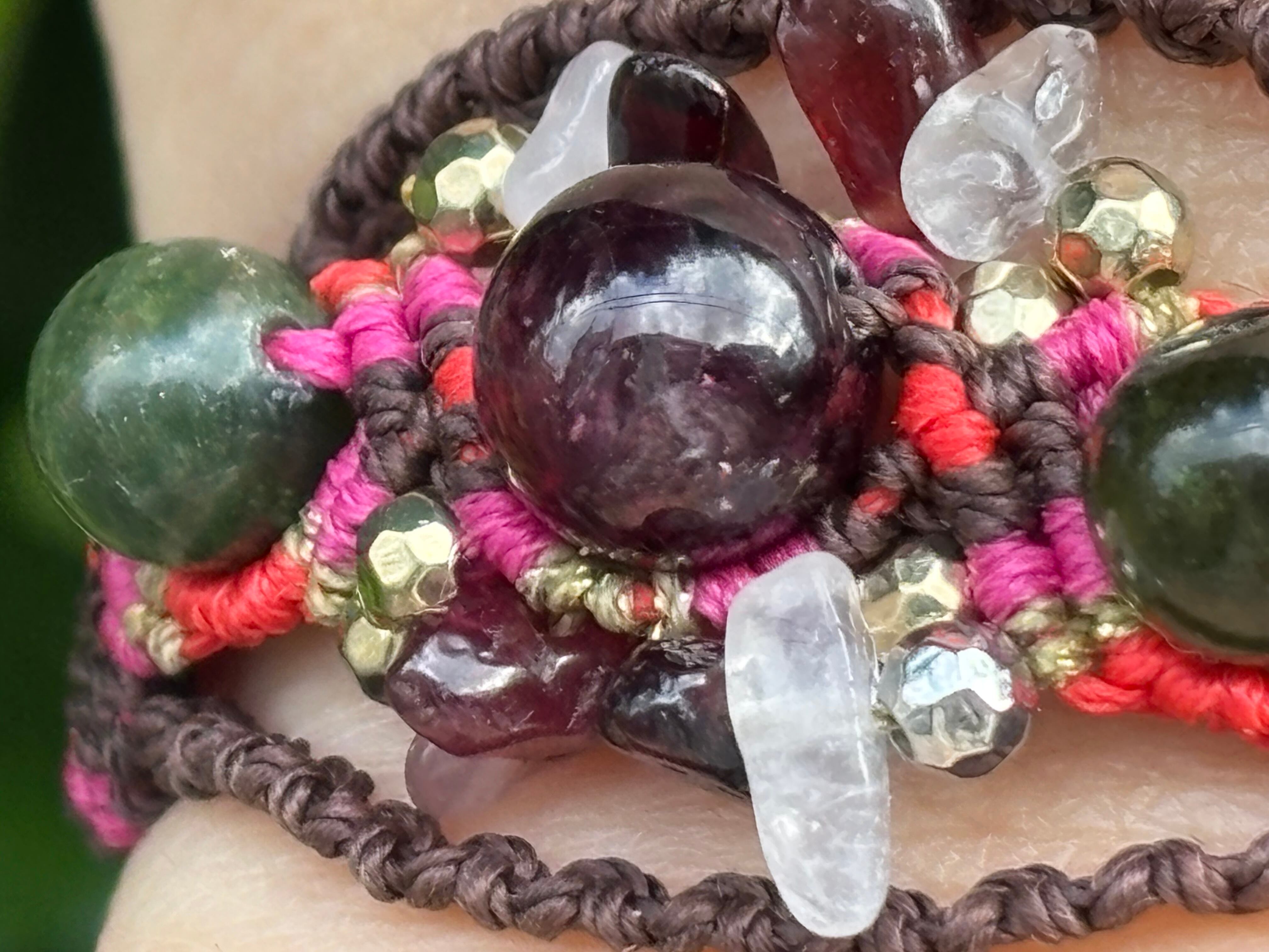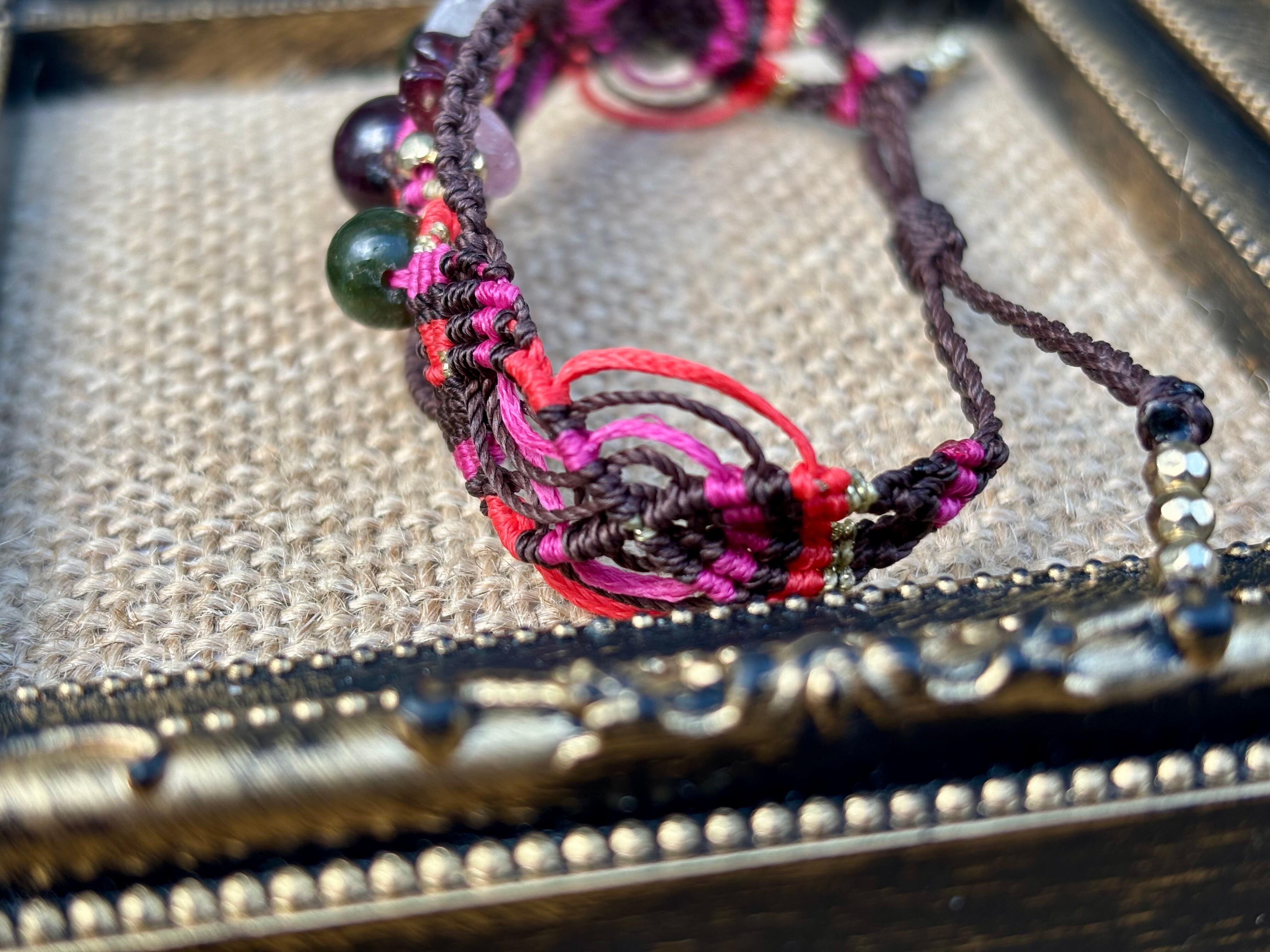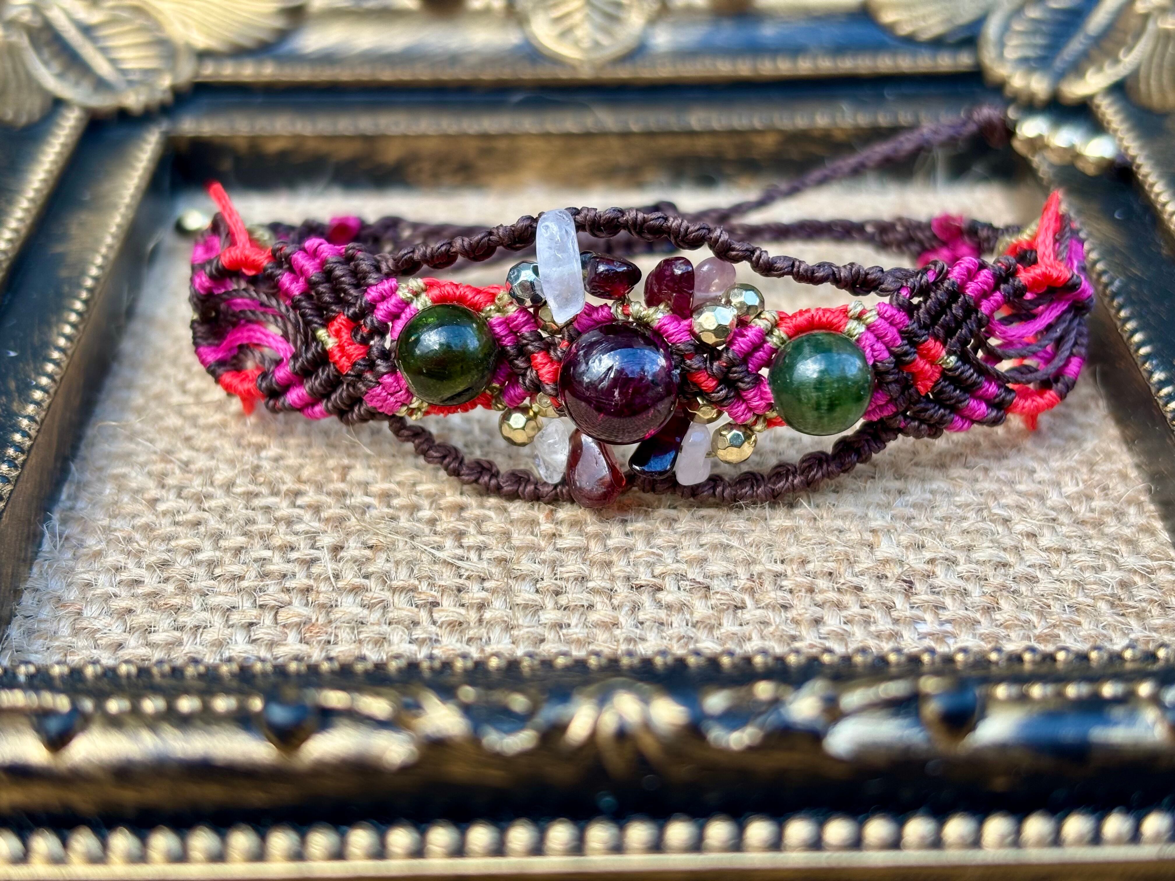 #943限定1点ロードライトガーネット×ツァボライト×ガーネット マクラメ編みブレスレット