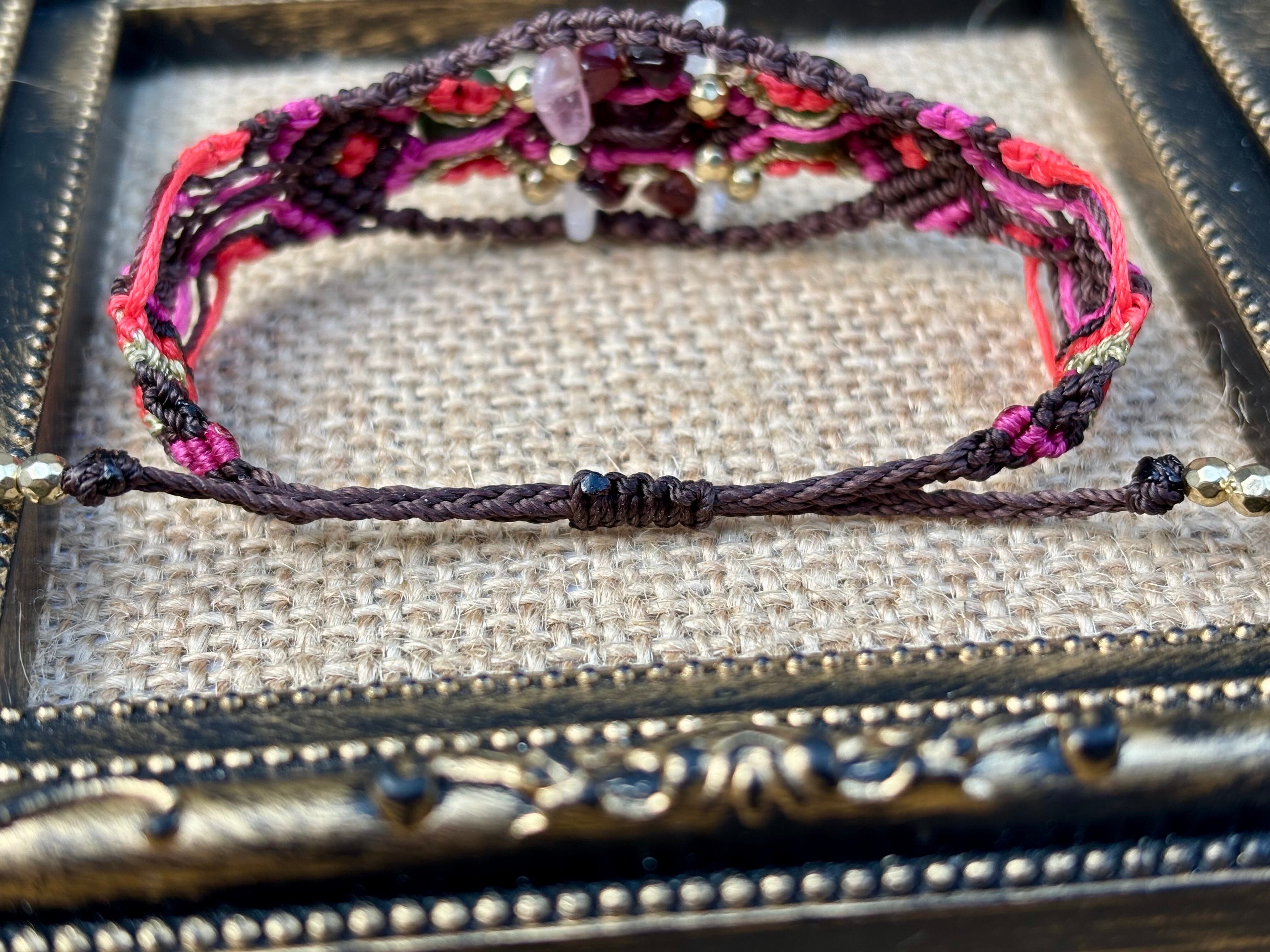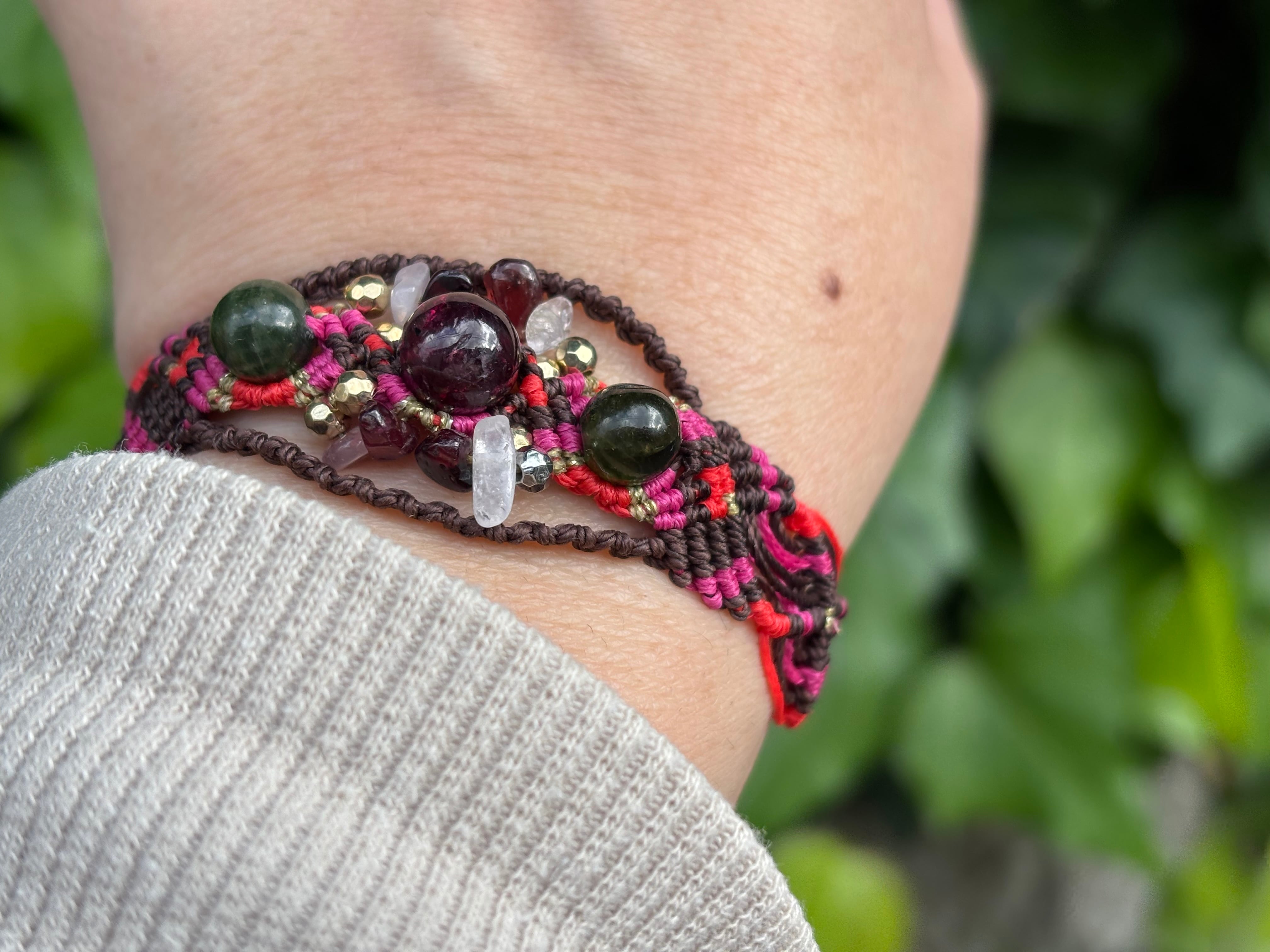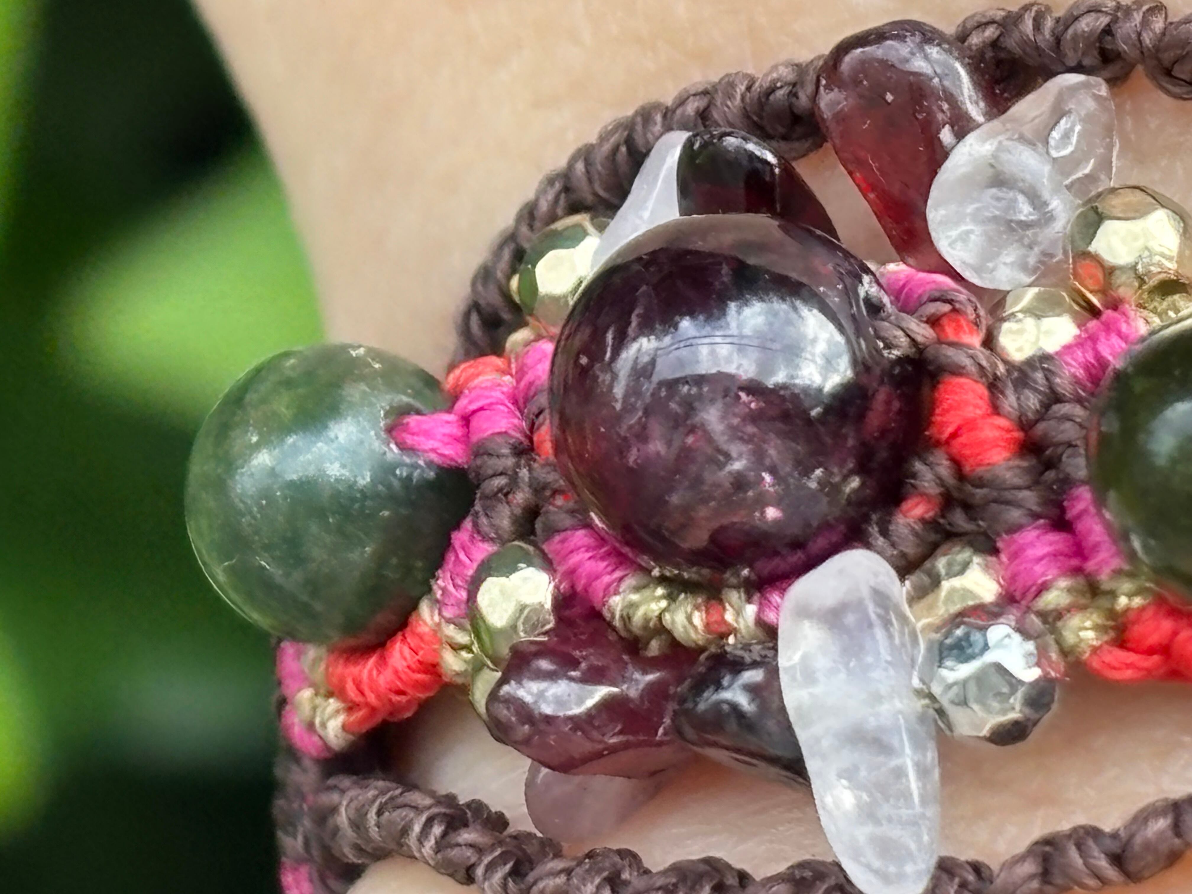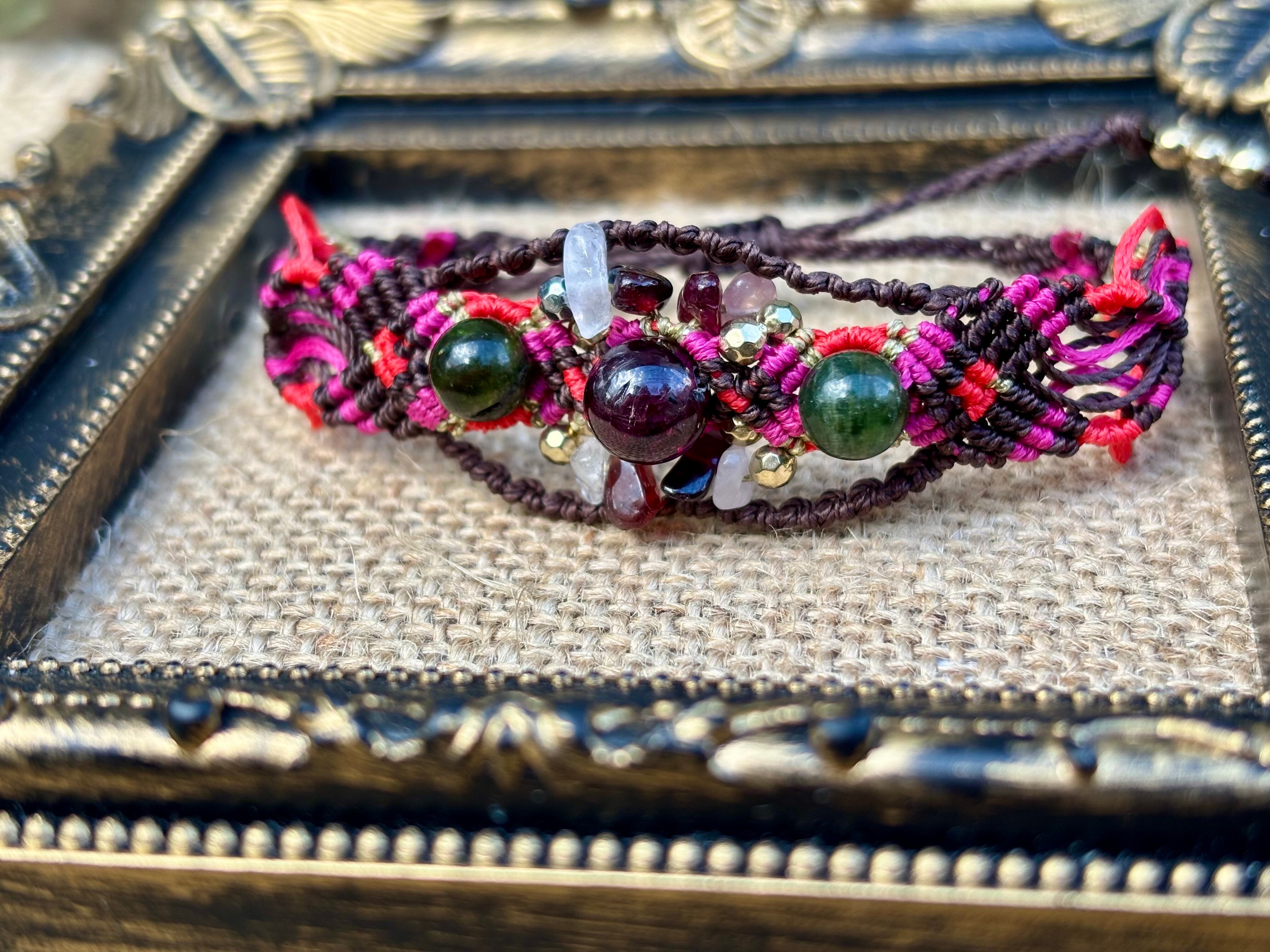 #943限定1点ロードライトガーネット×ツァボライト×ガーネット マクラメ編みブレスレット