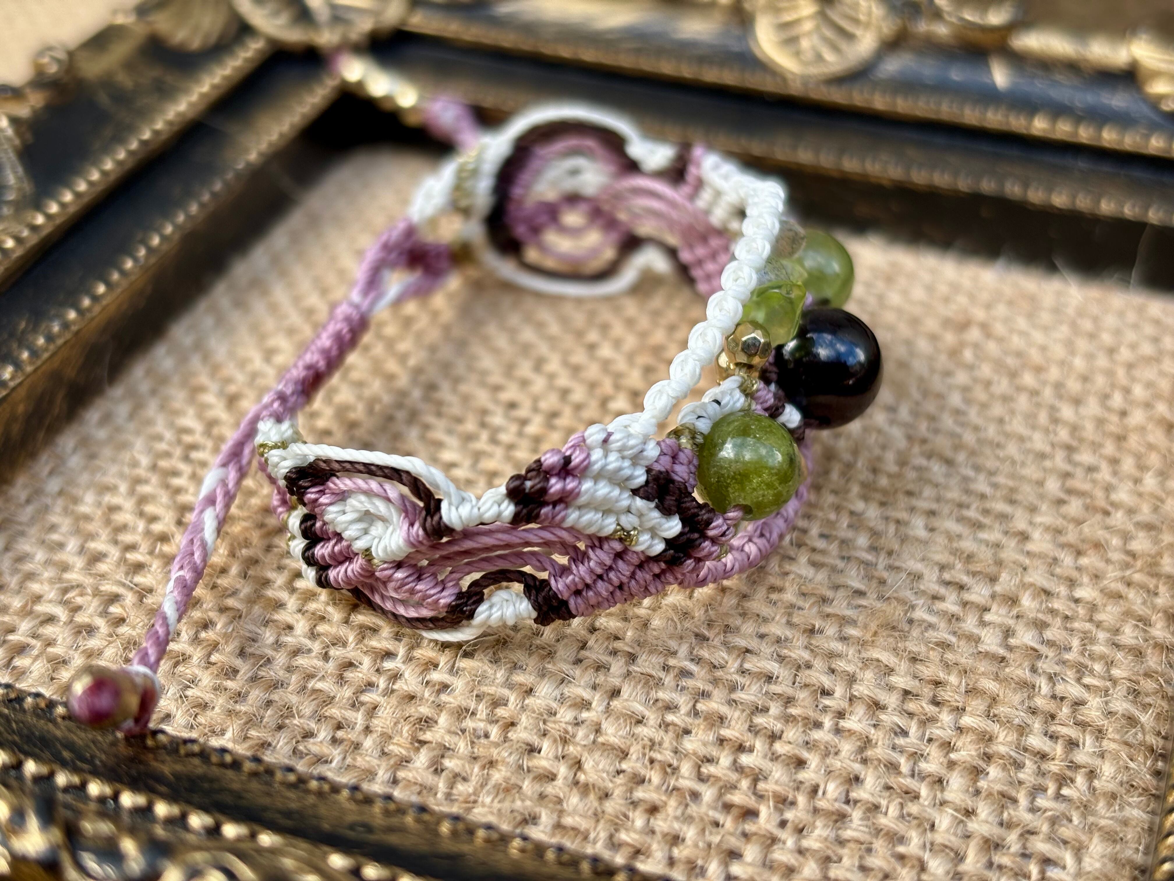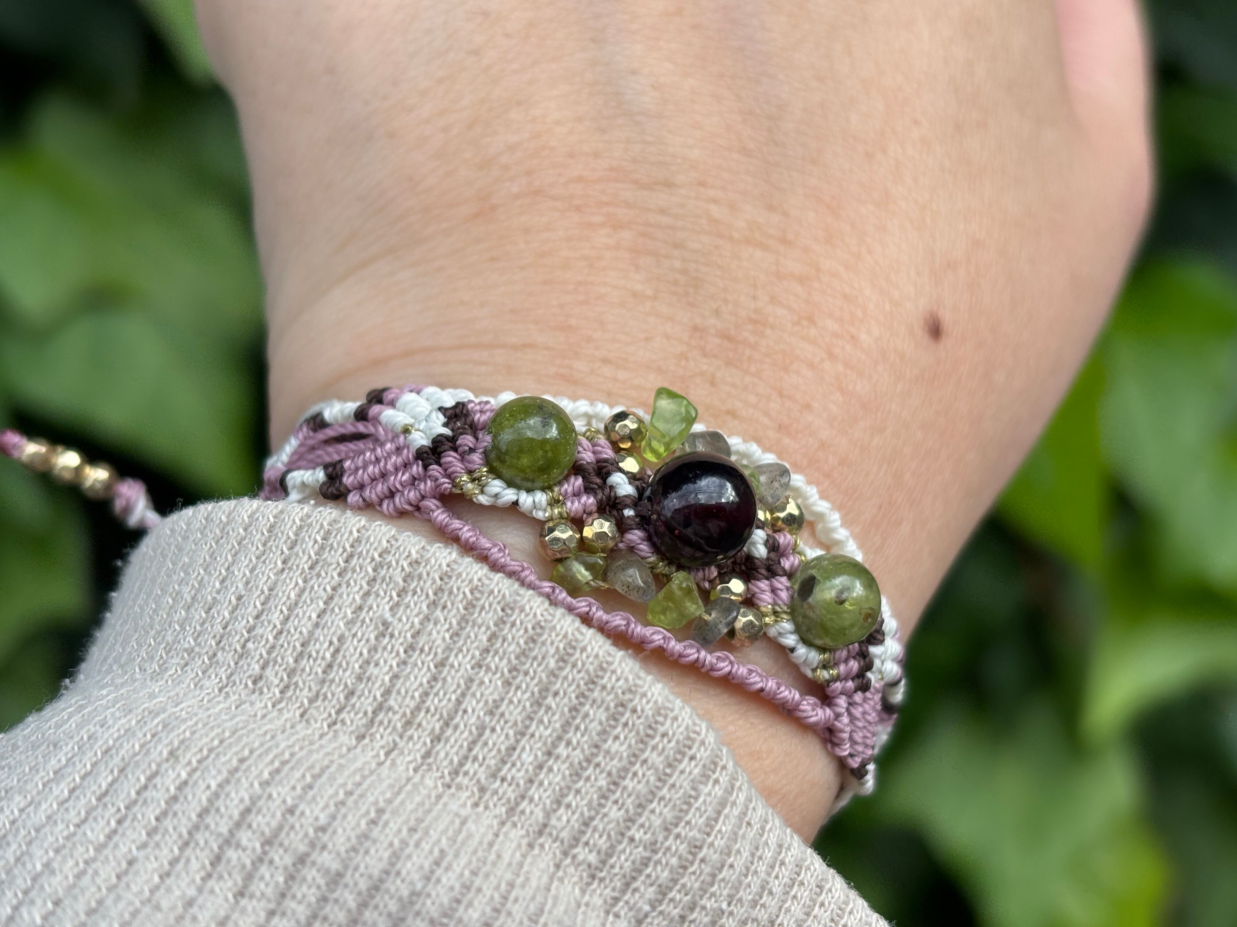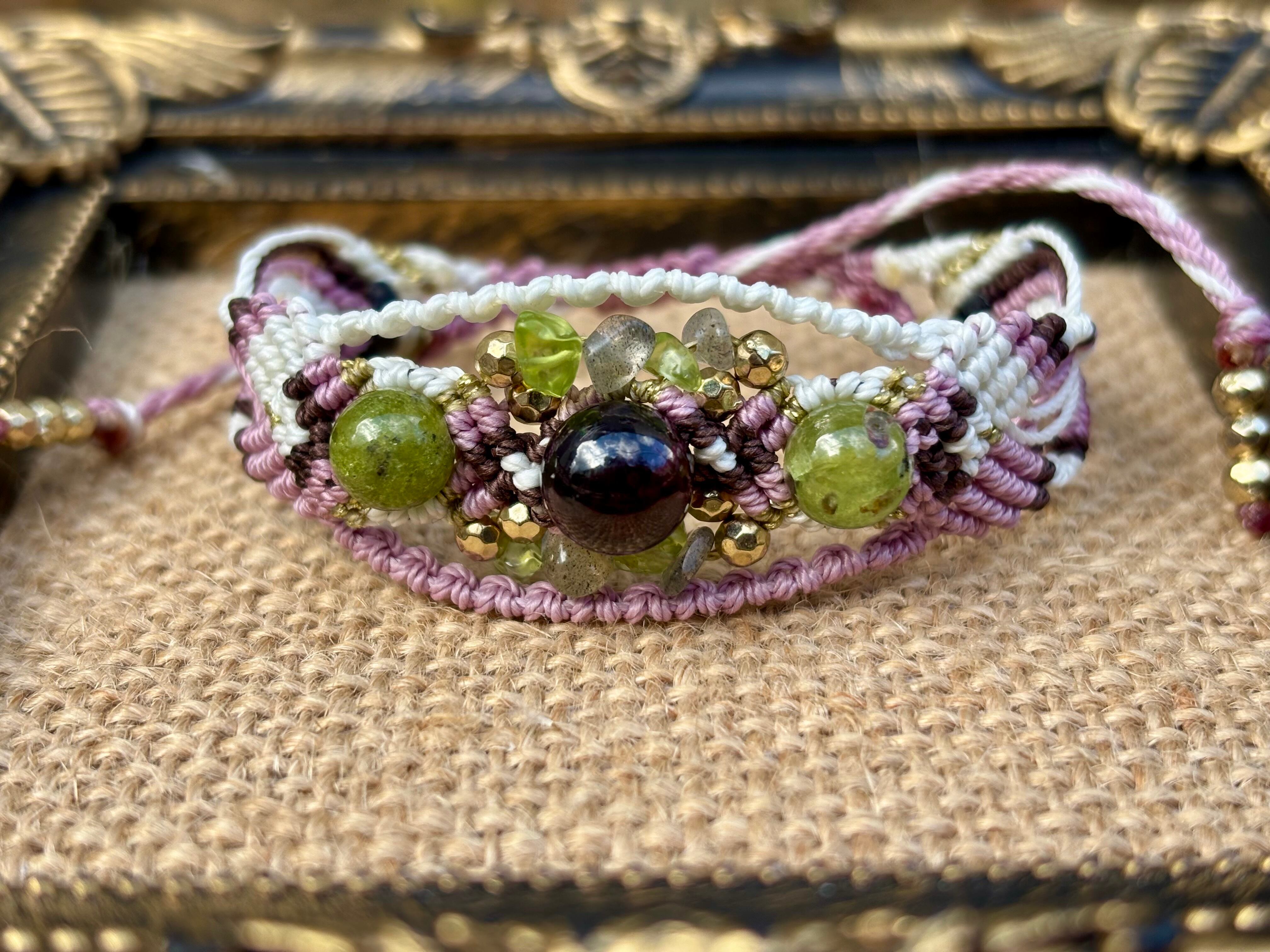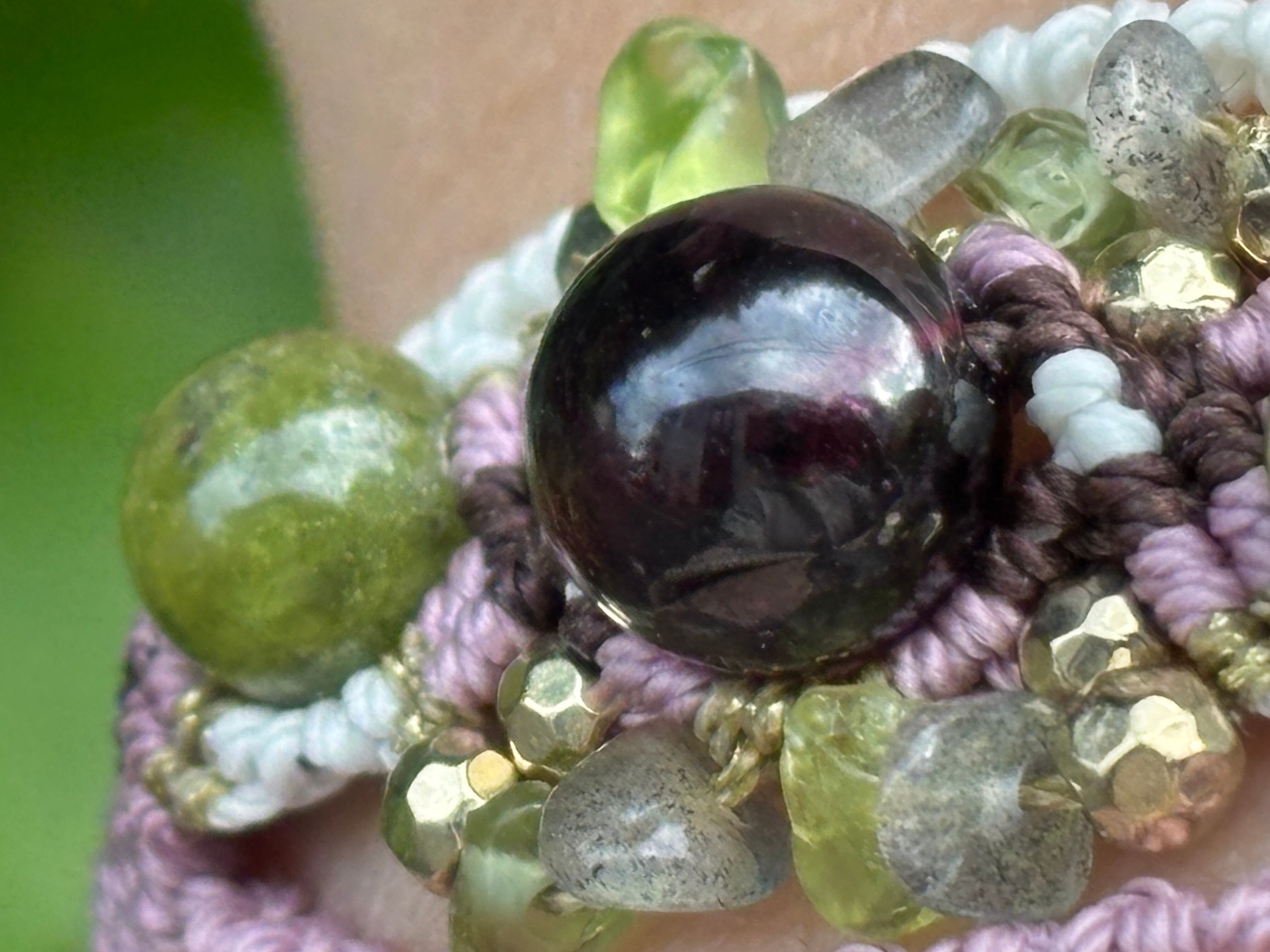 #946限定1点ロードライトガーネット×ツァボライト×ラブラドライト×ローズクォーツ マクラメ編みブレスレット