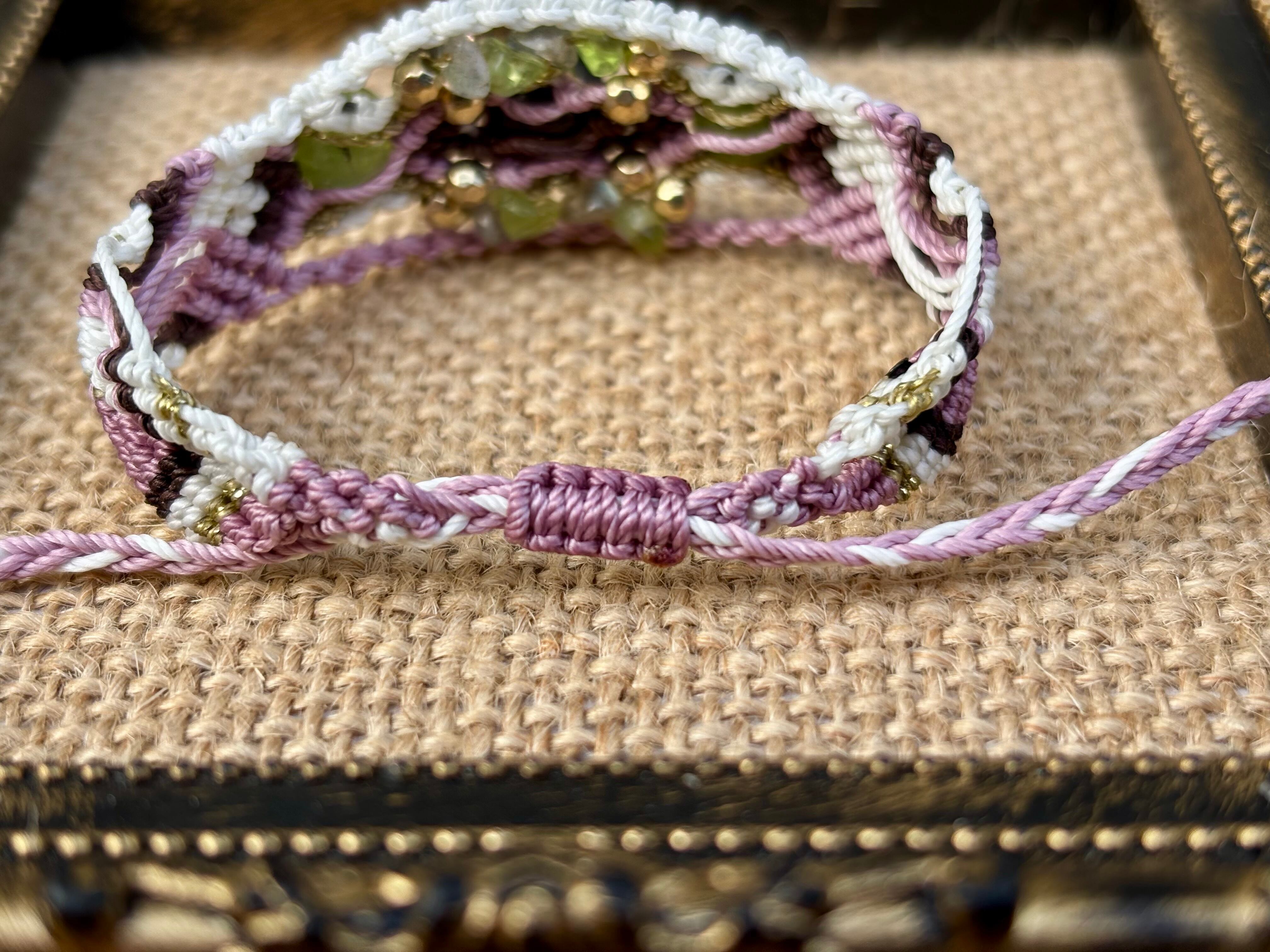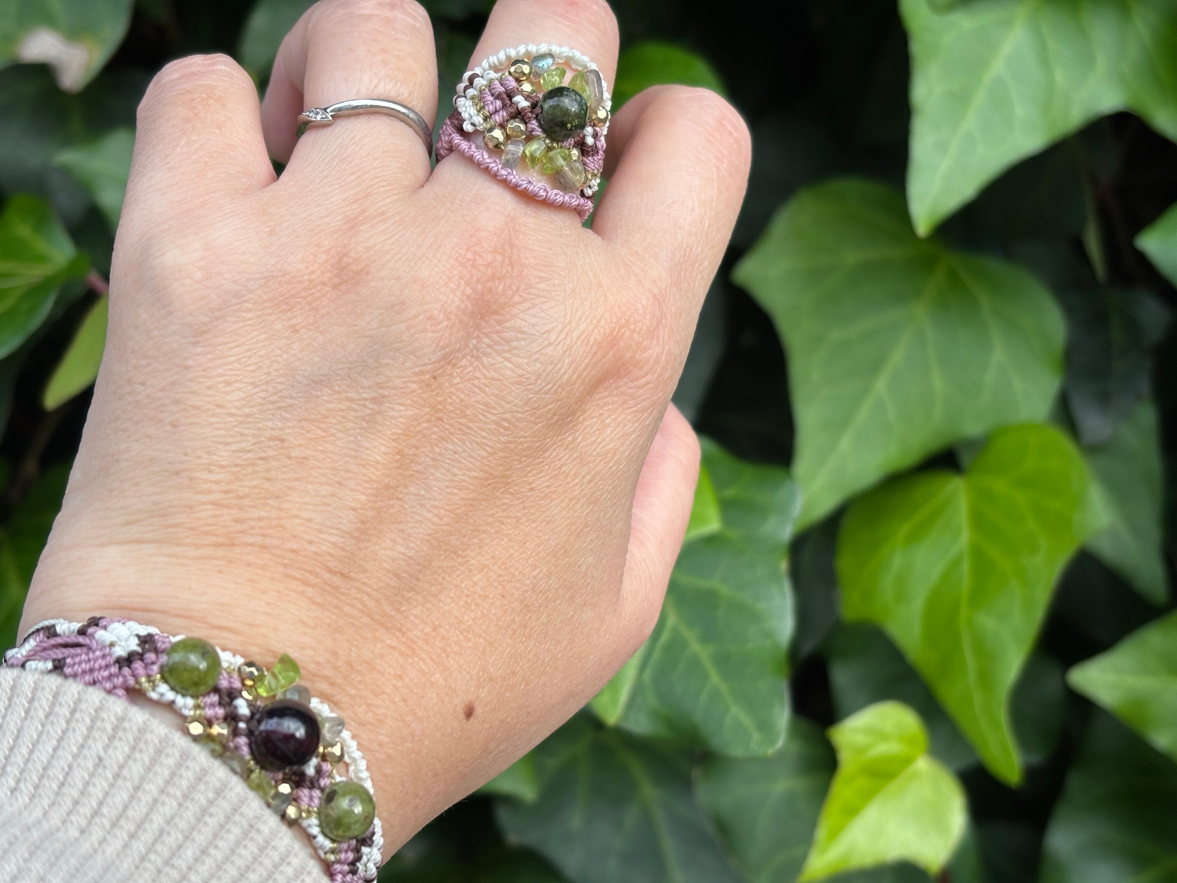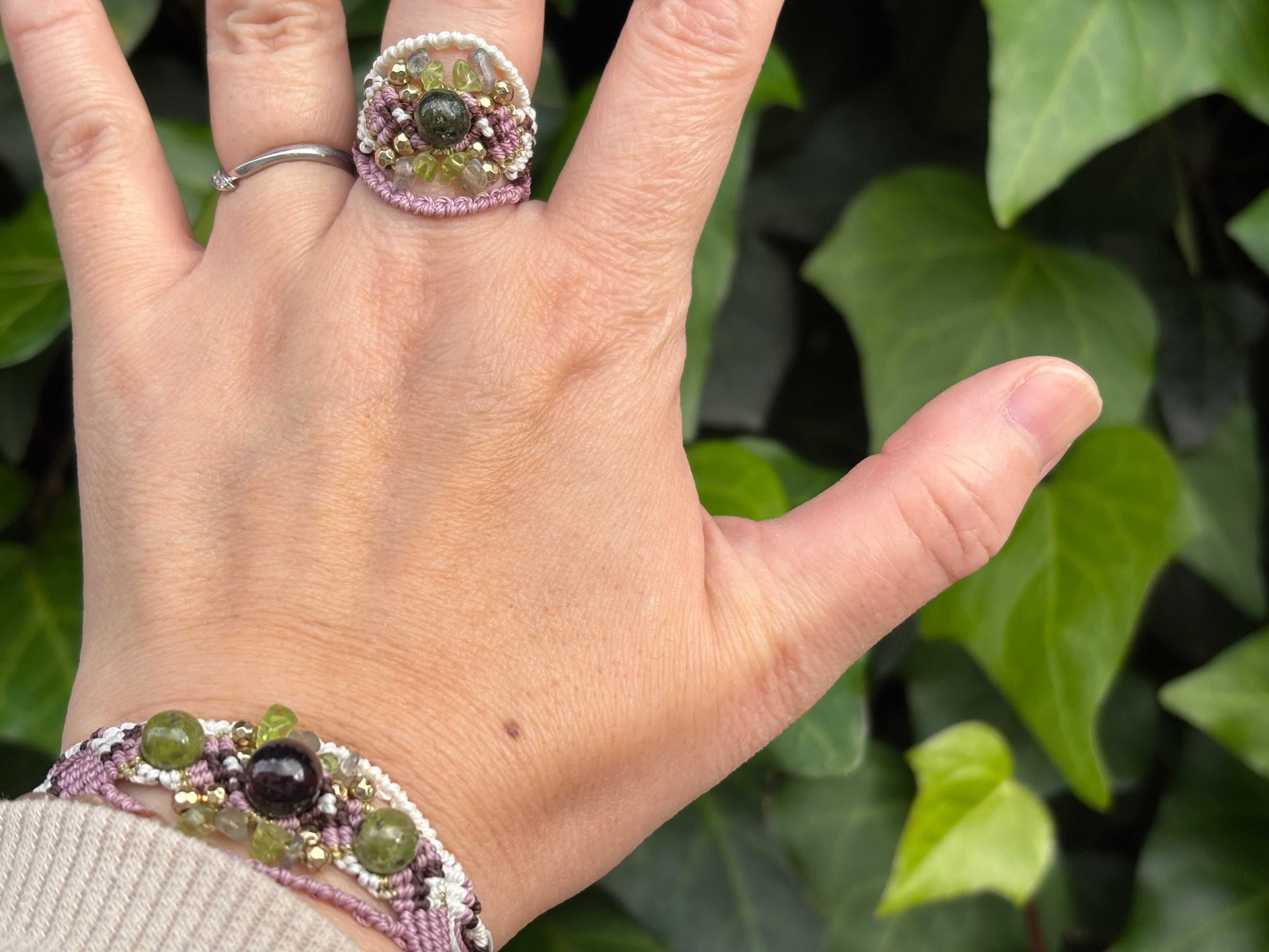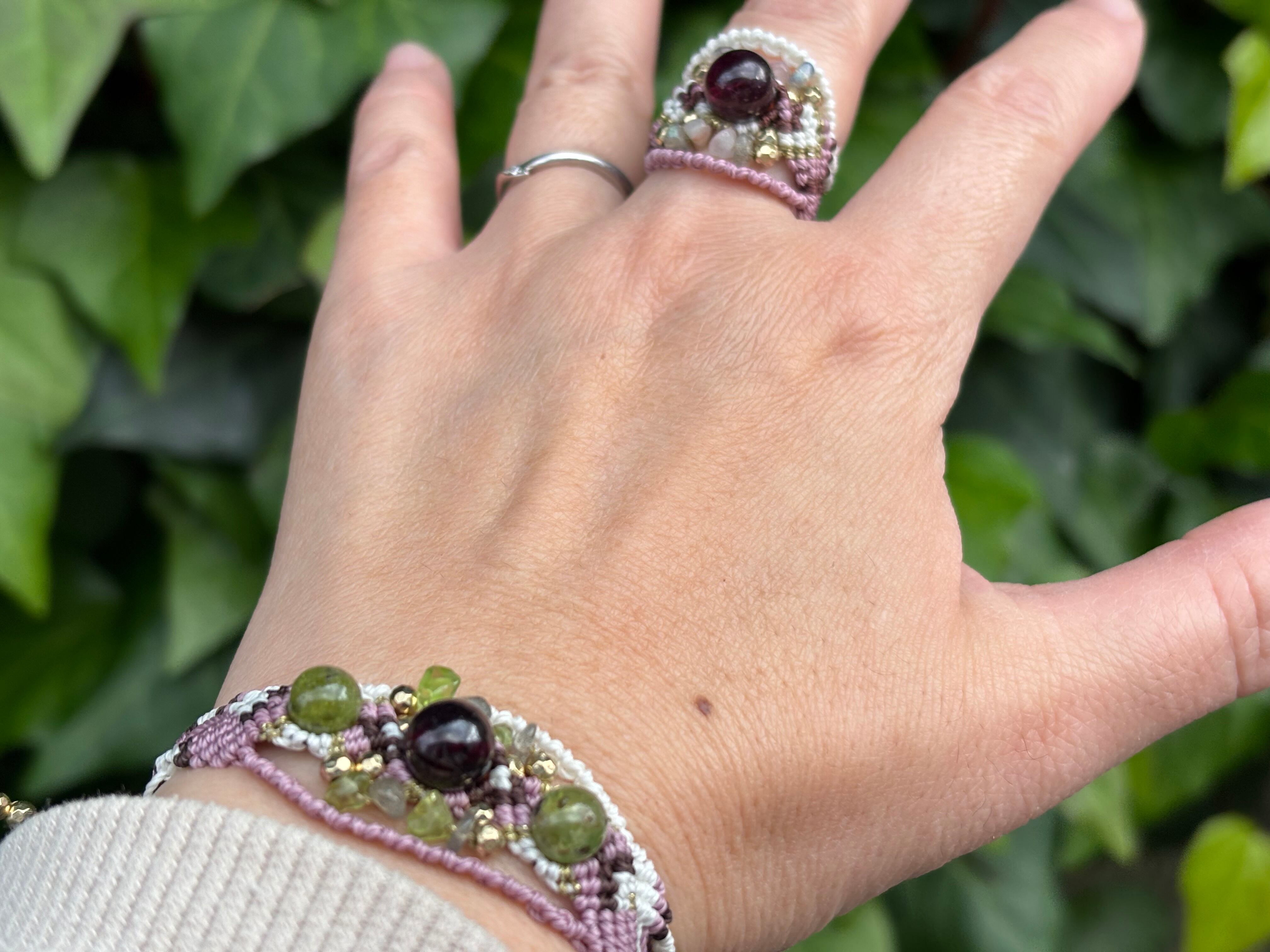 #946限定1点ロードライトガーネット×ツァボライト×ラブラドライト×ローズクォーツ マクラメ編みブレスレット