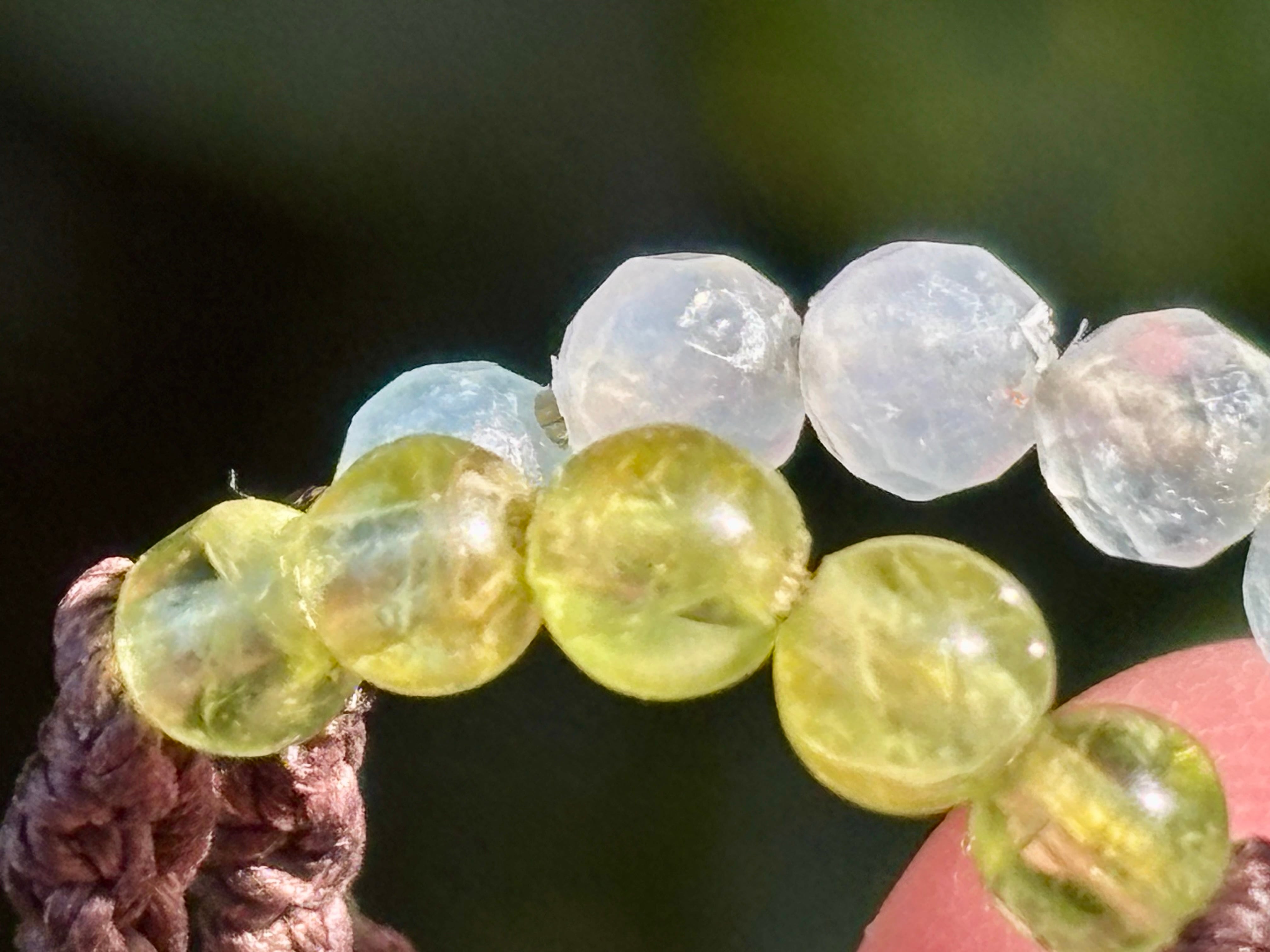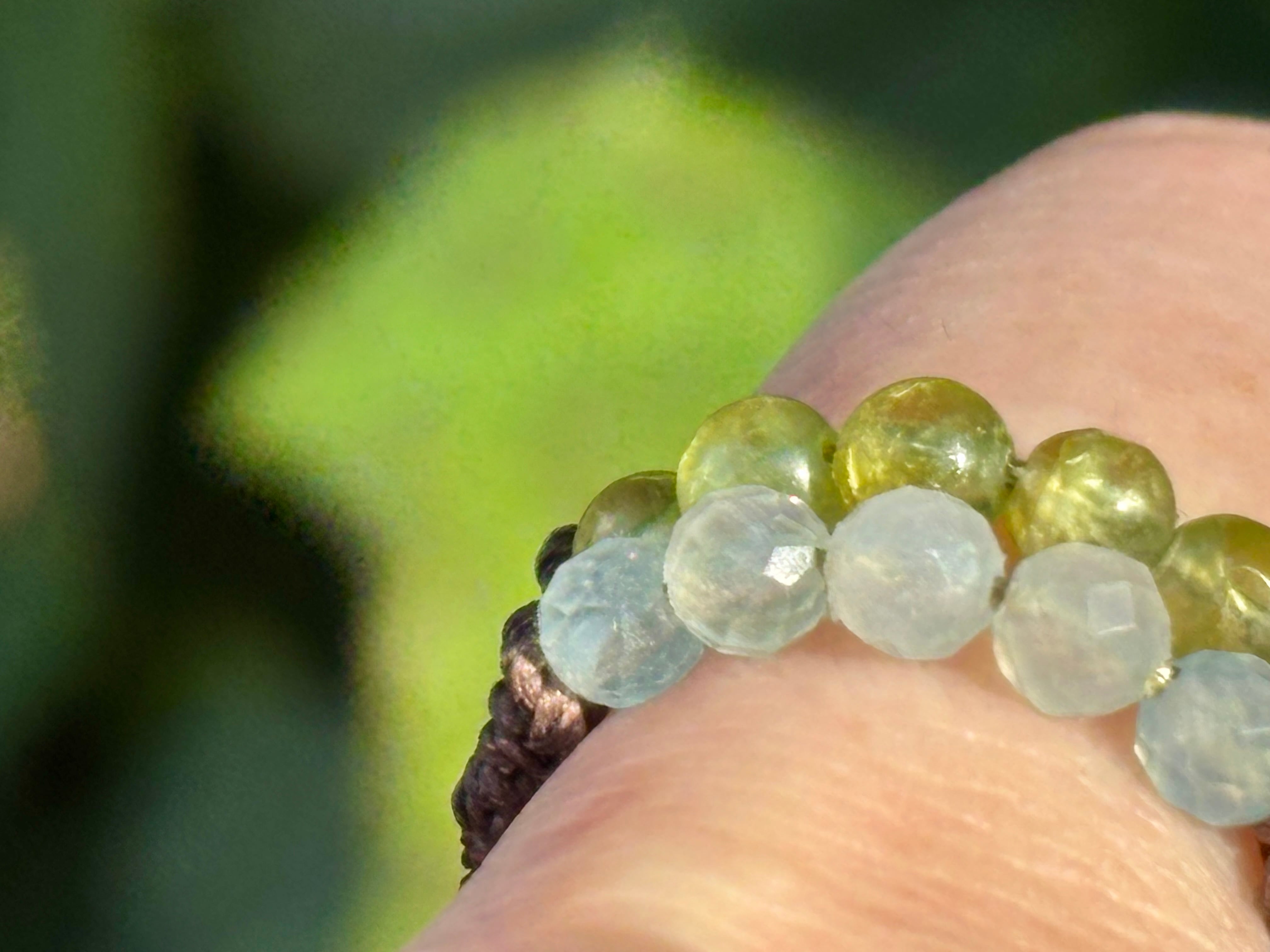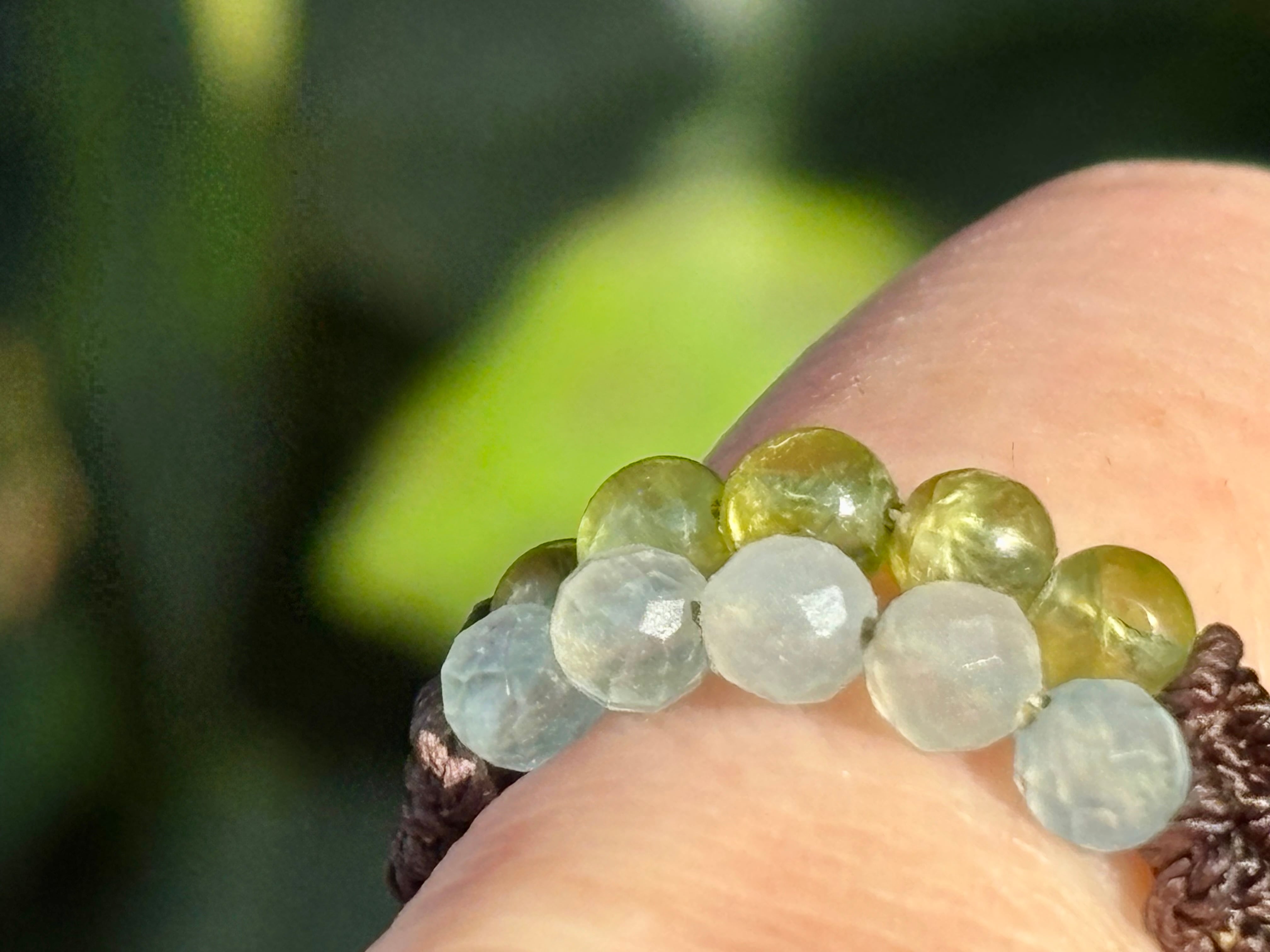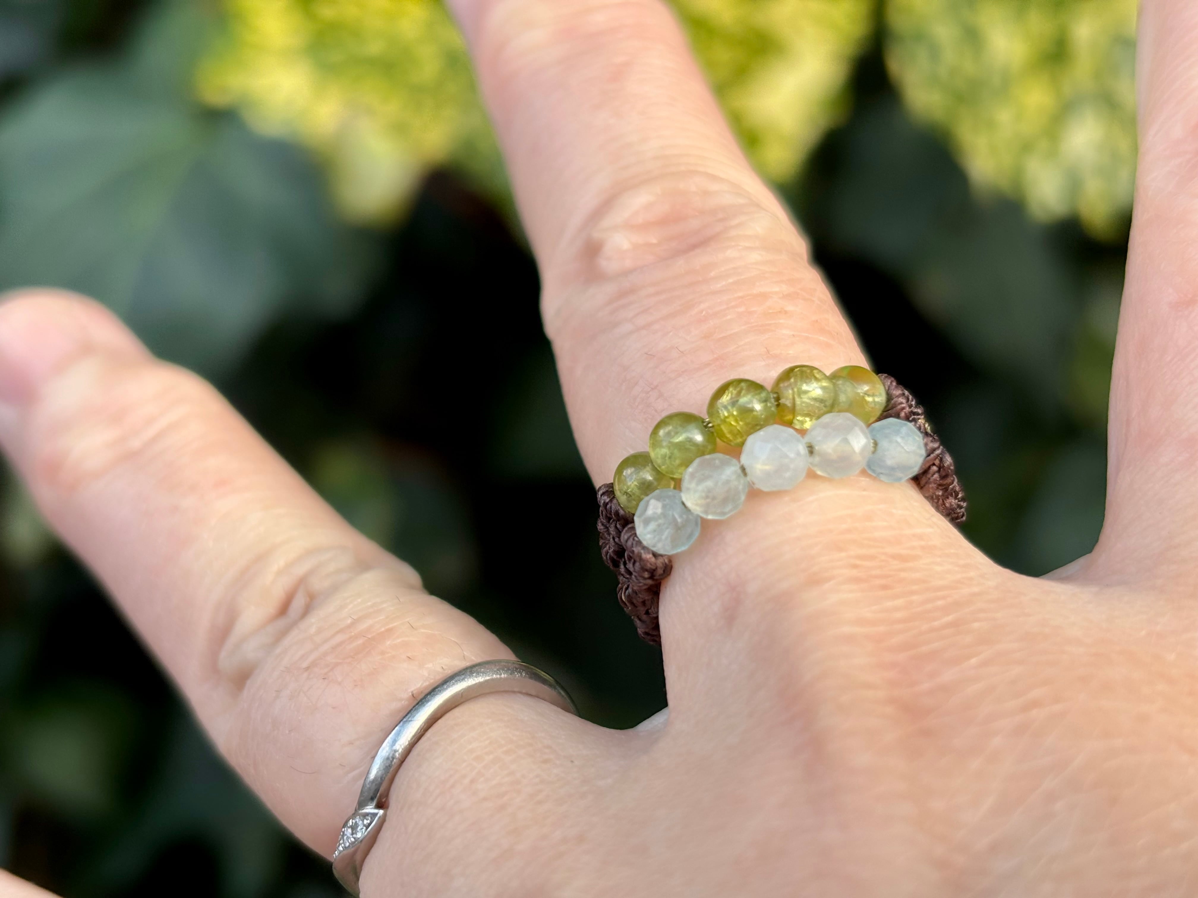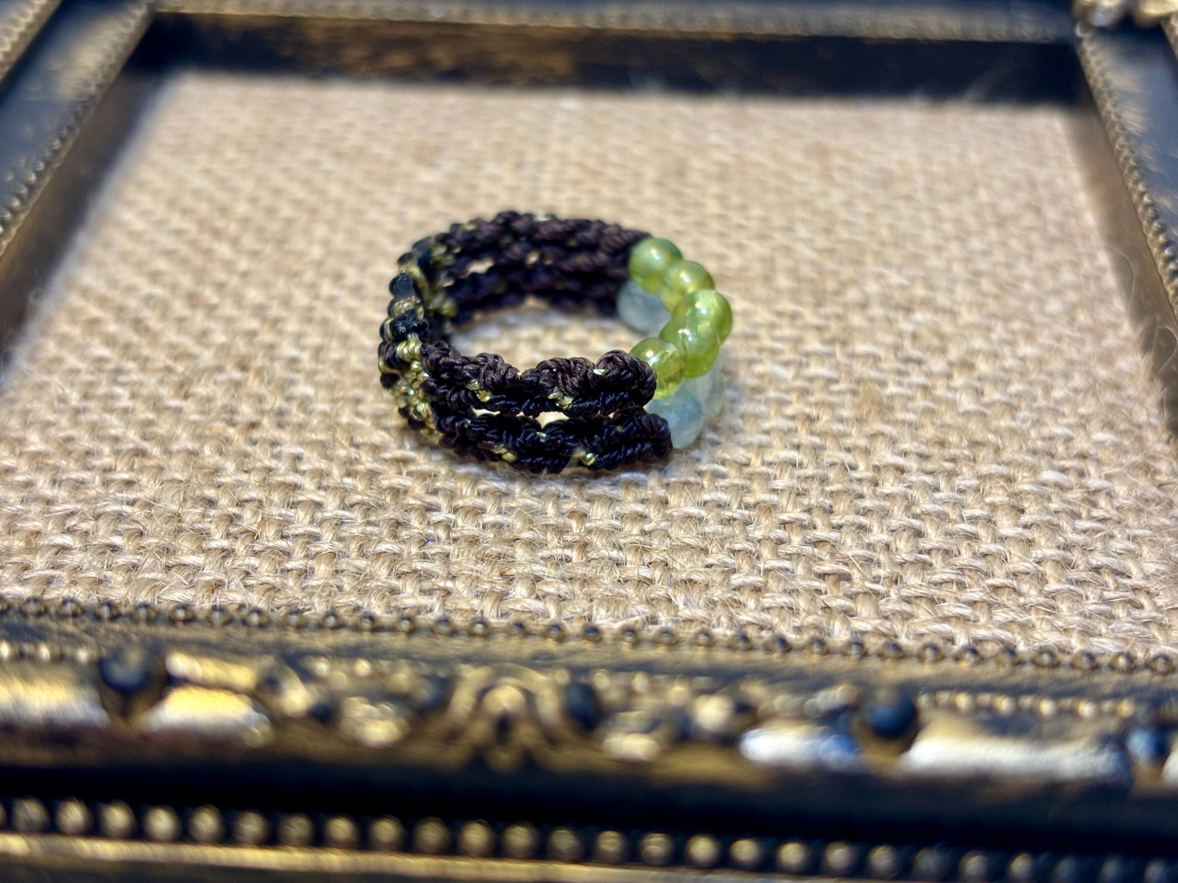 #963天然ペリドット一点物(ペリドット×アクアマリン マクラメ編み二連リング/指輪)