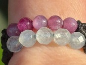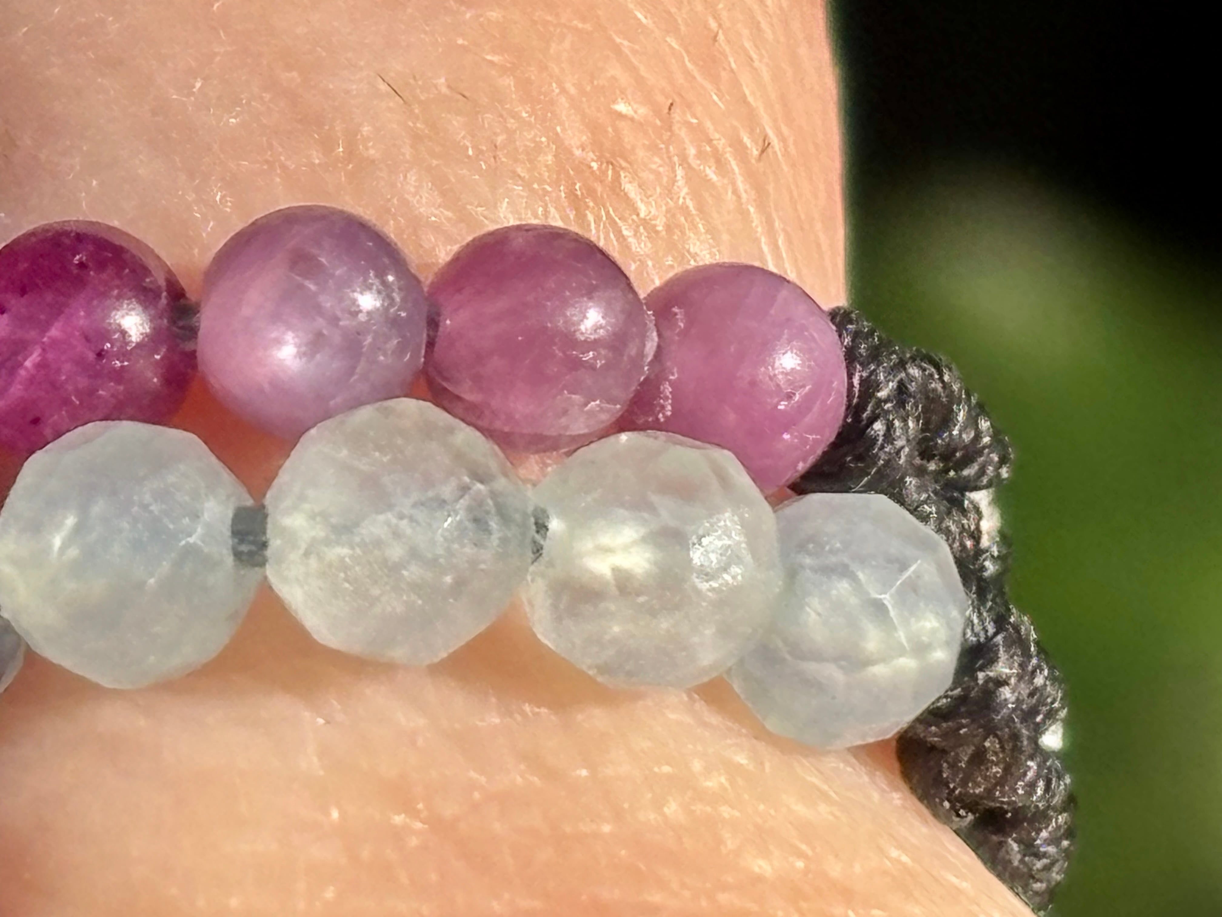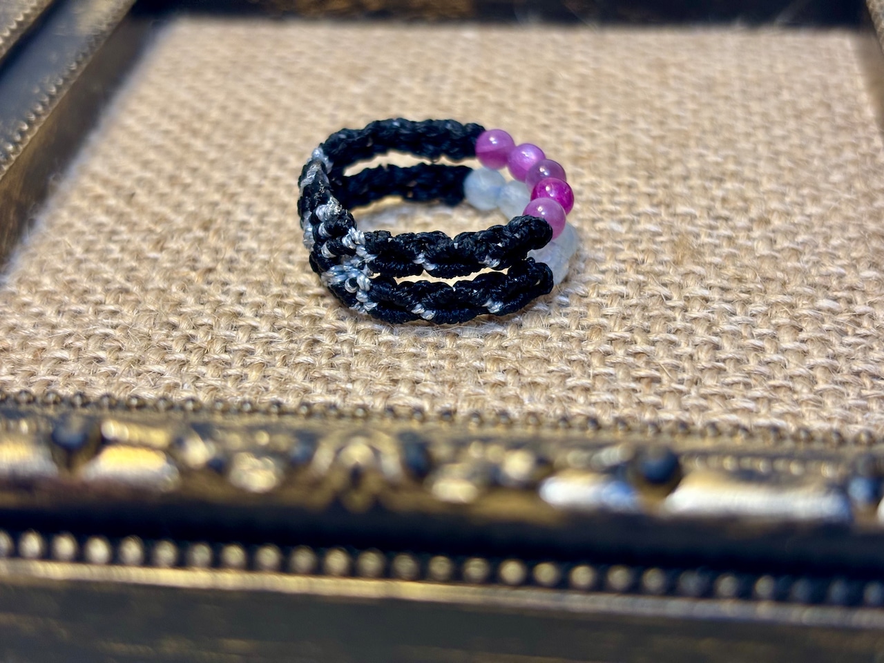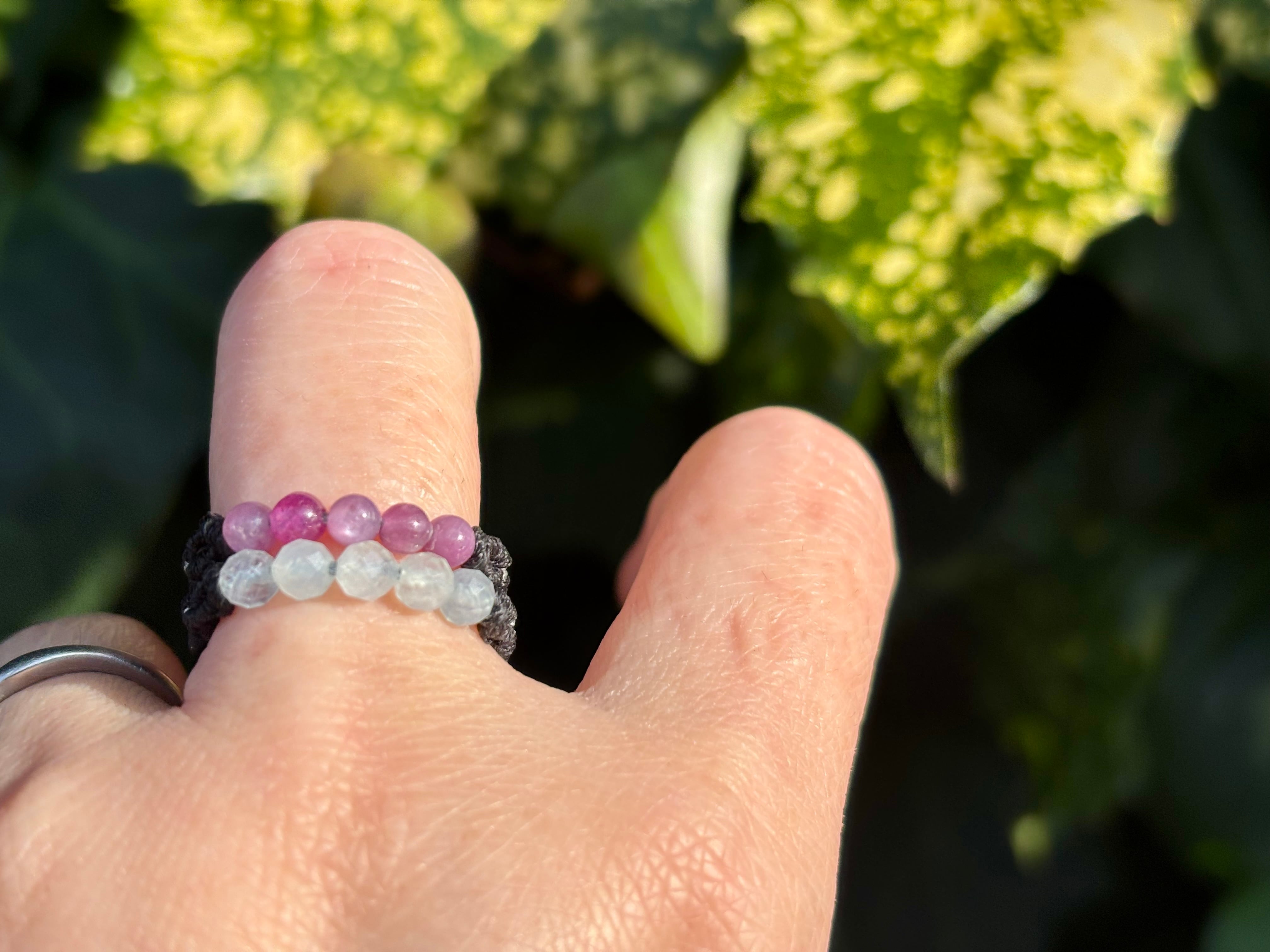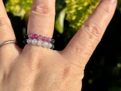 #964天然チェリーピンクルビー一点物(チェリーピンクルビー×アクアマリン マクラメ編み二連リング/指輪)