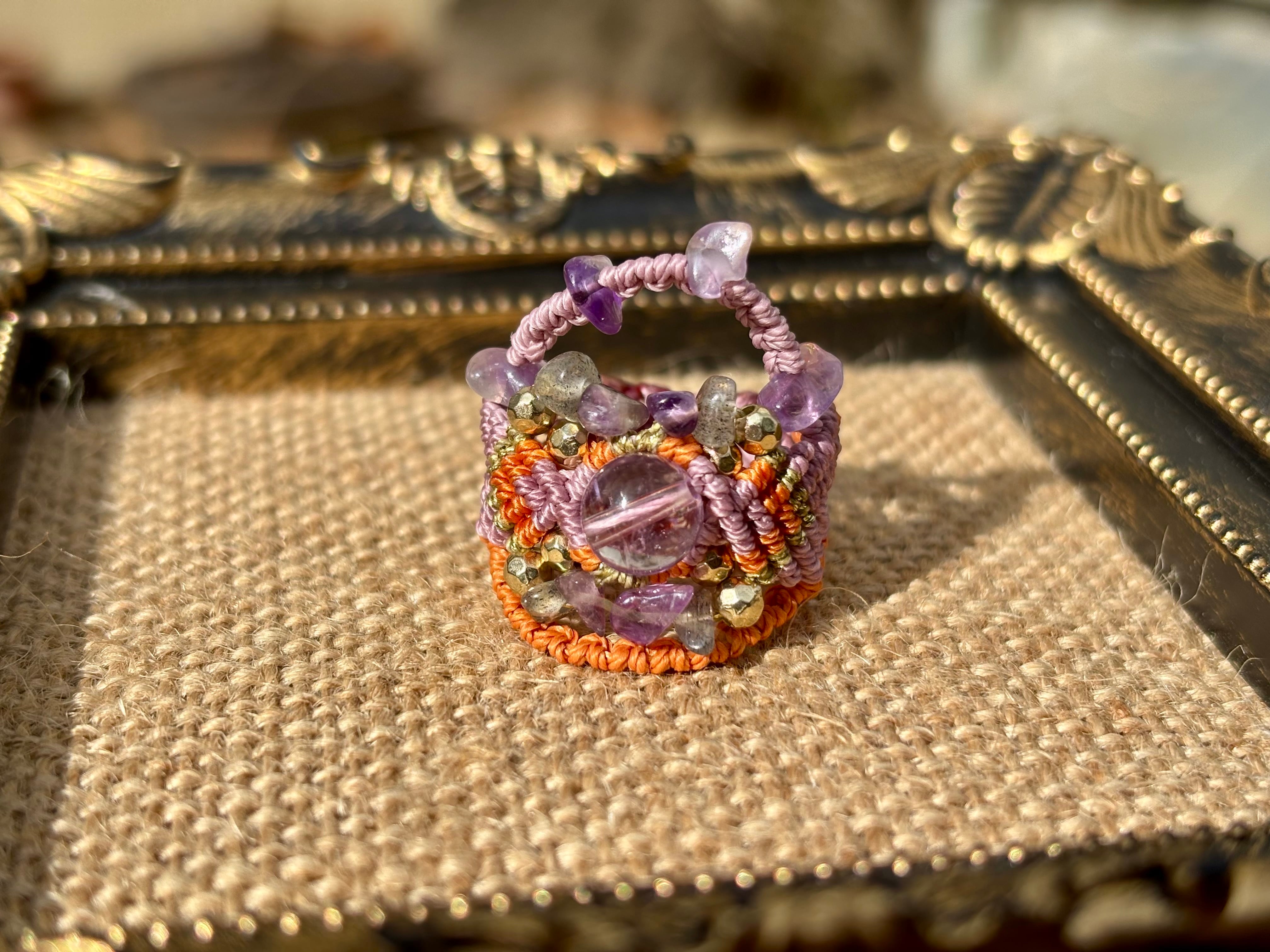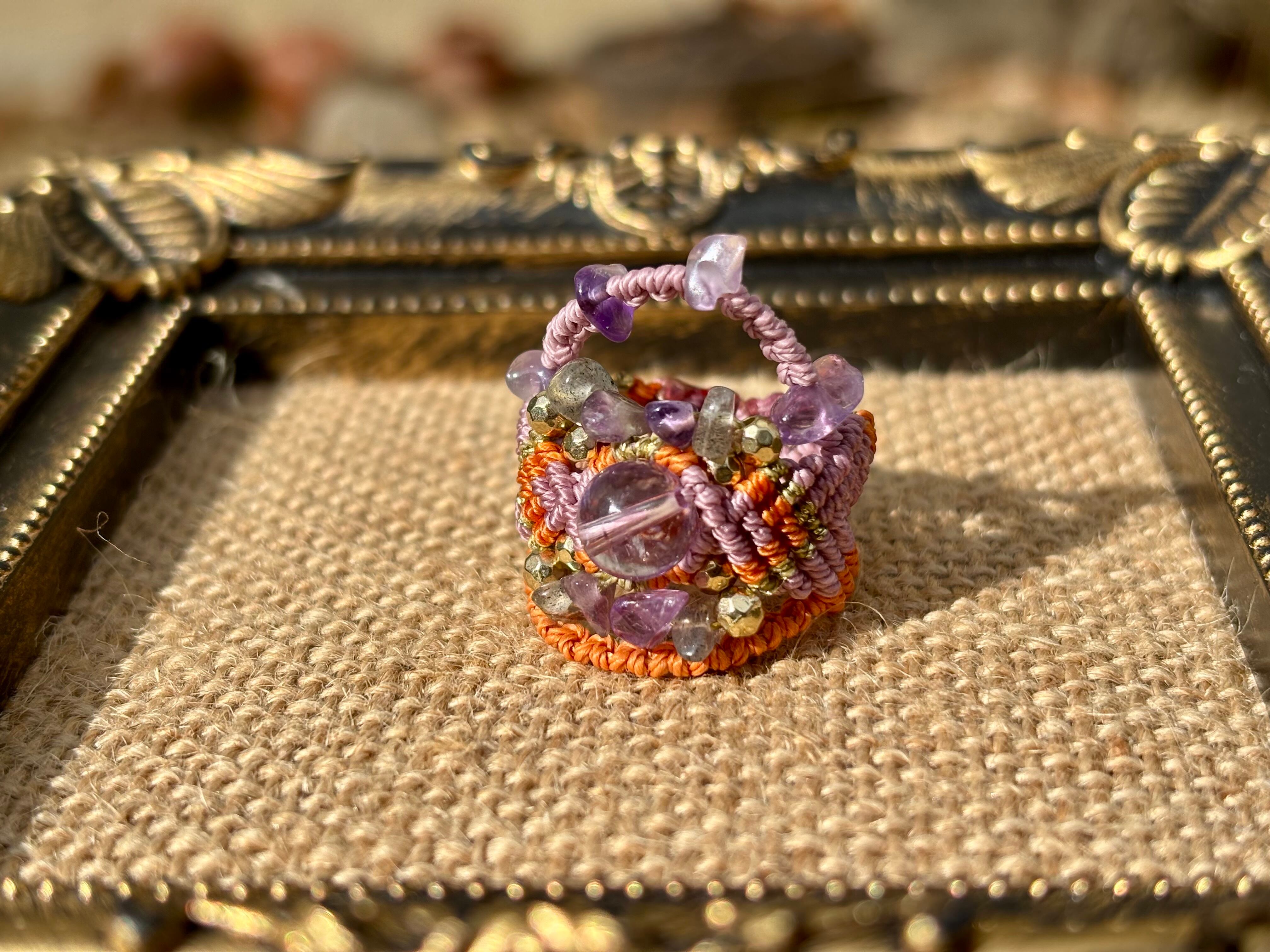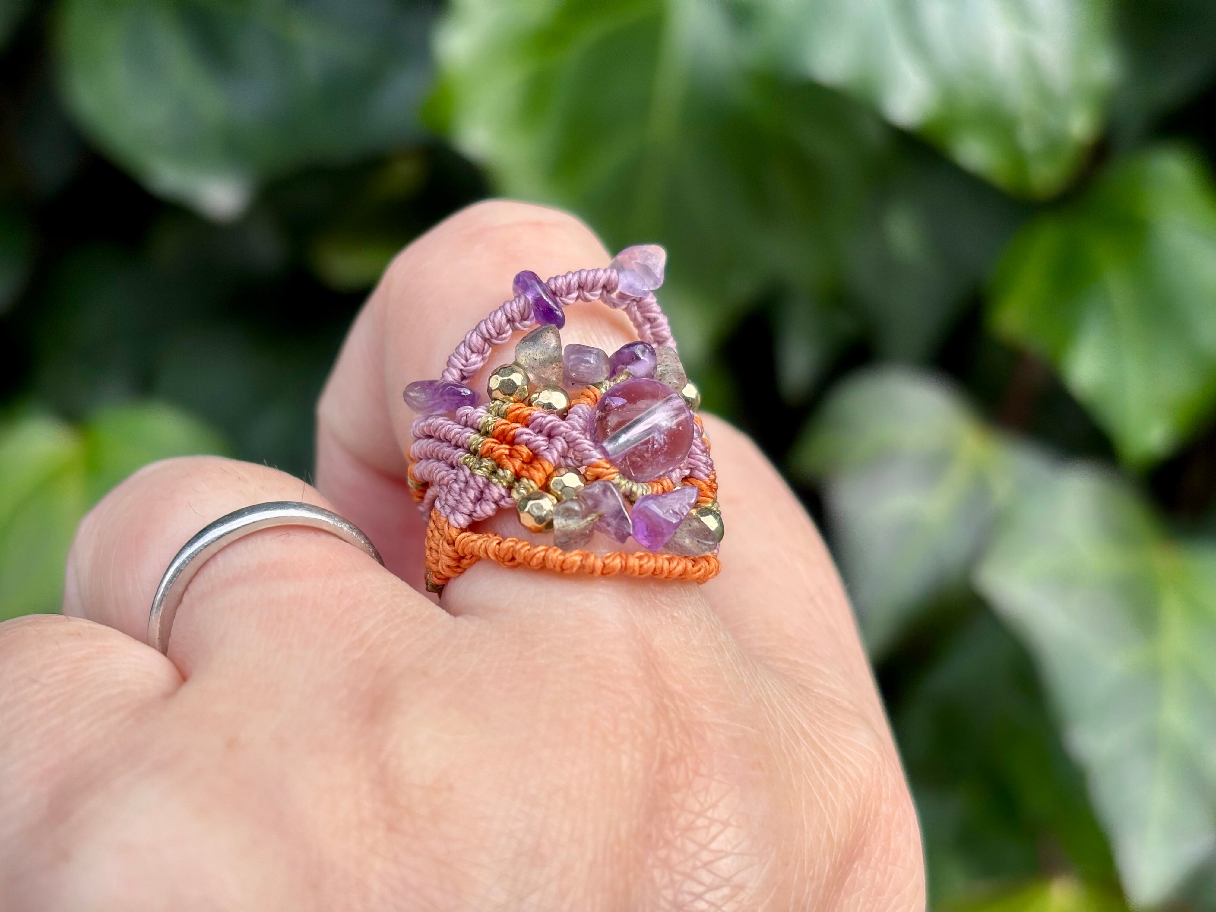 #968ボリビア産アメジスト♡一点物(アメジスト×ラブラドライト マクラメ編みリング/指輪)