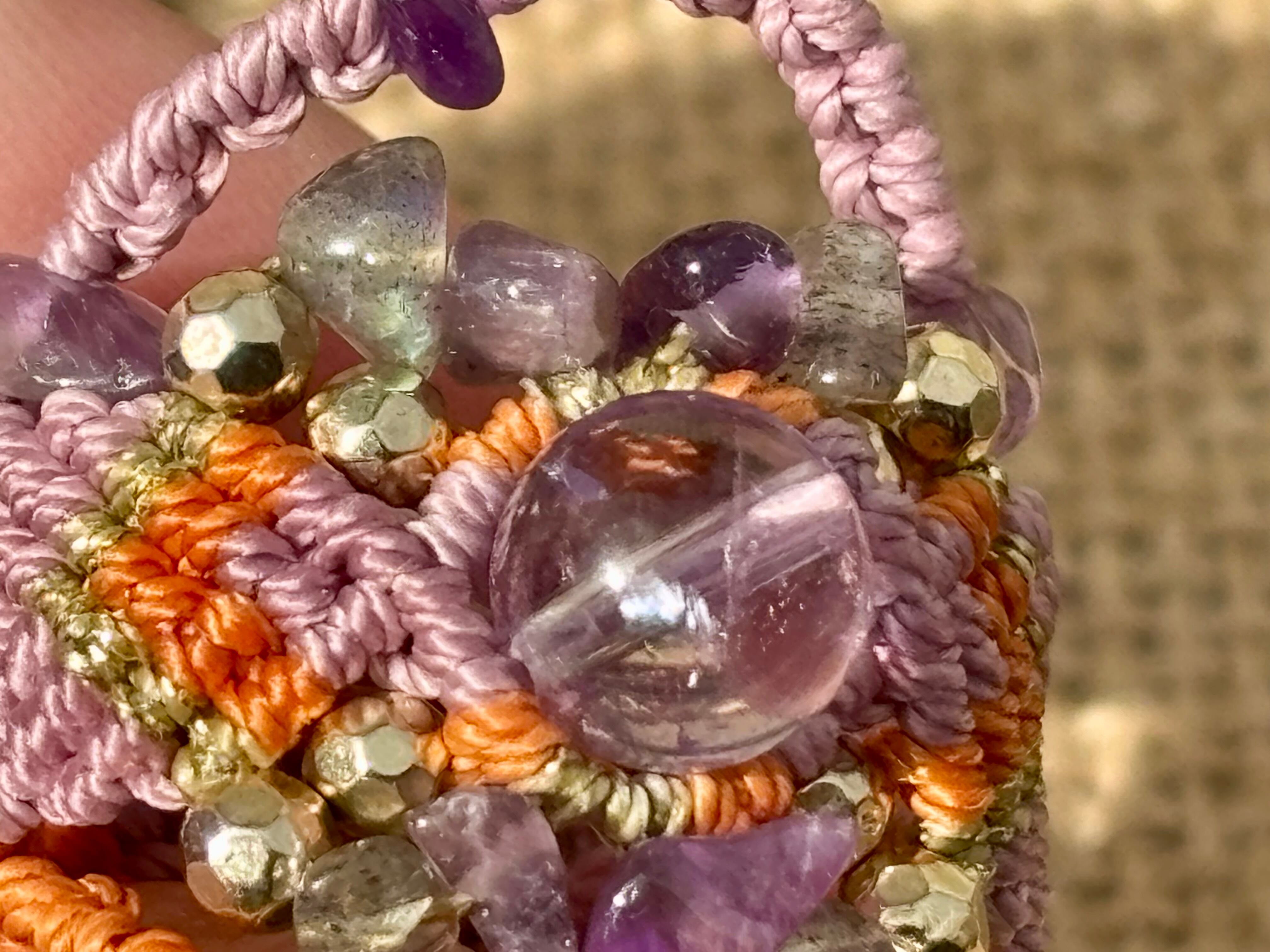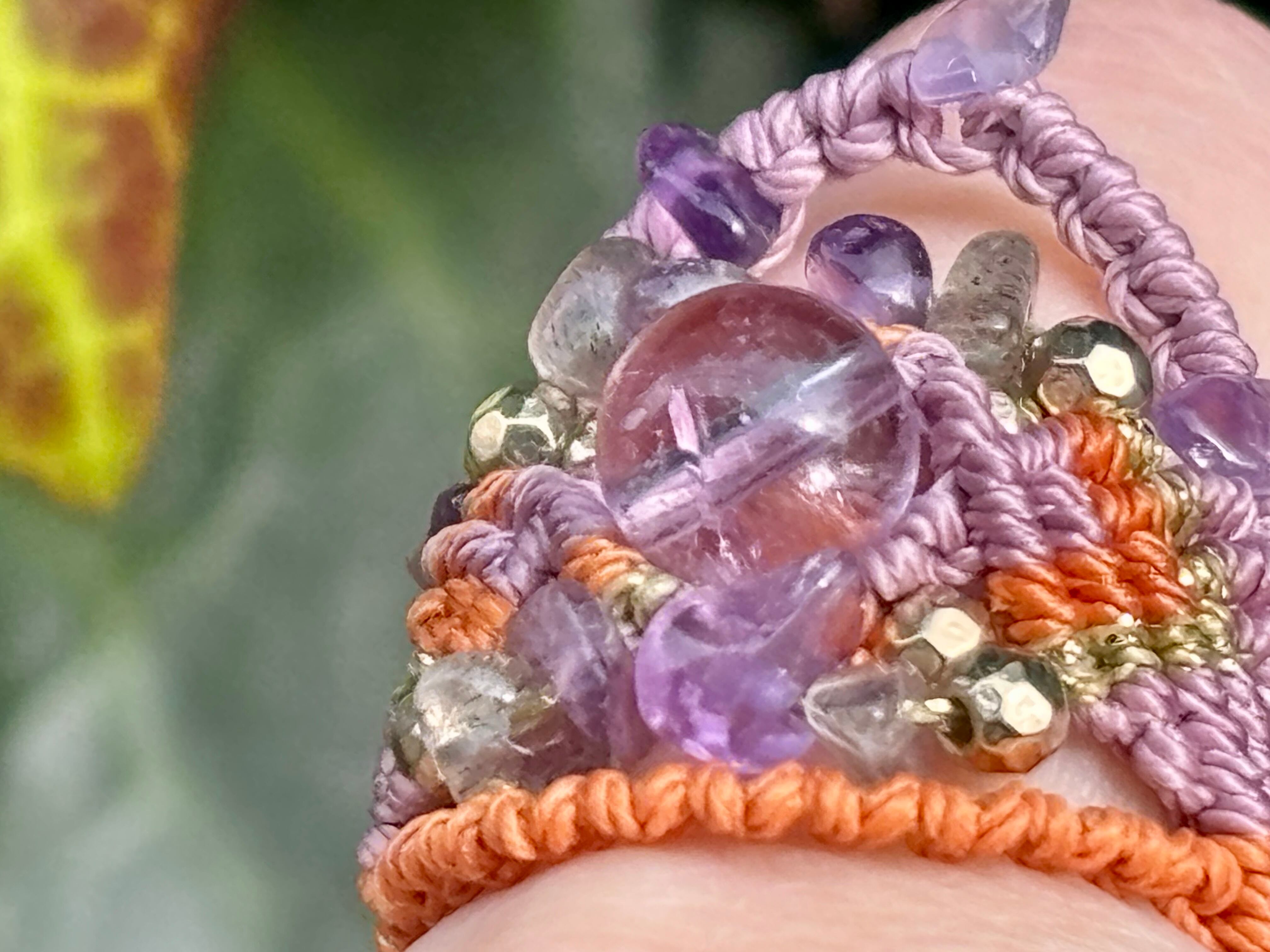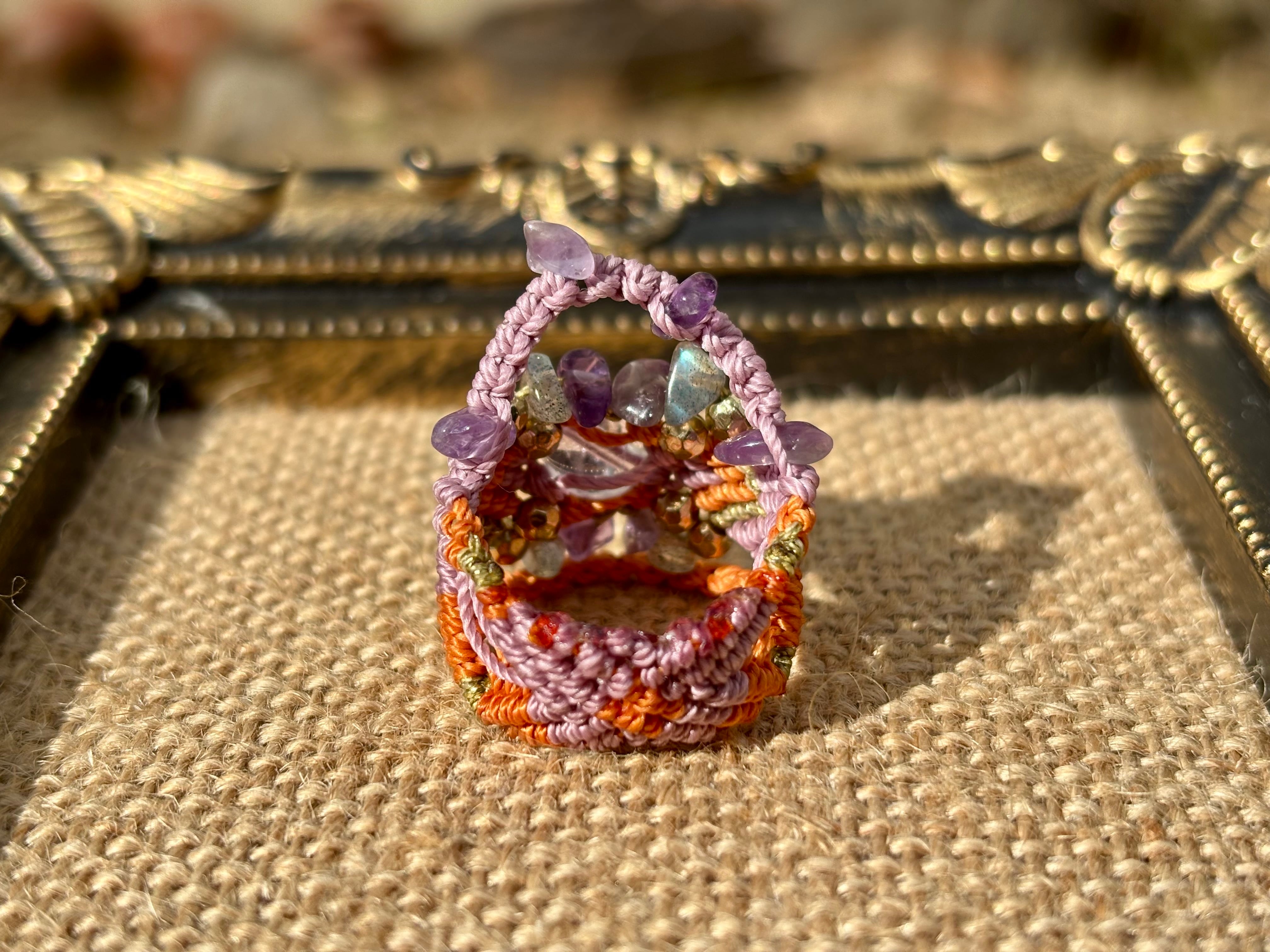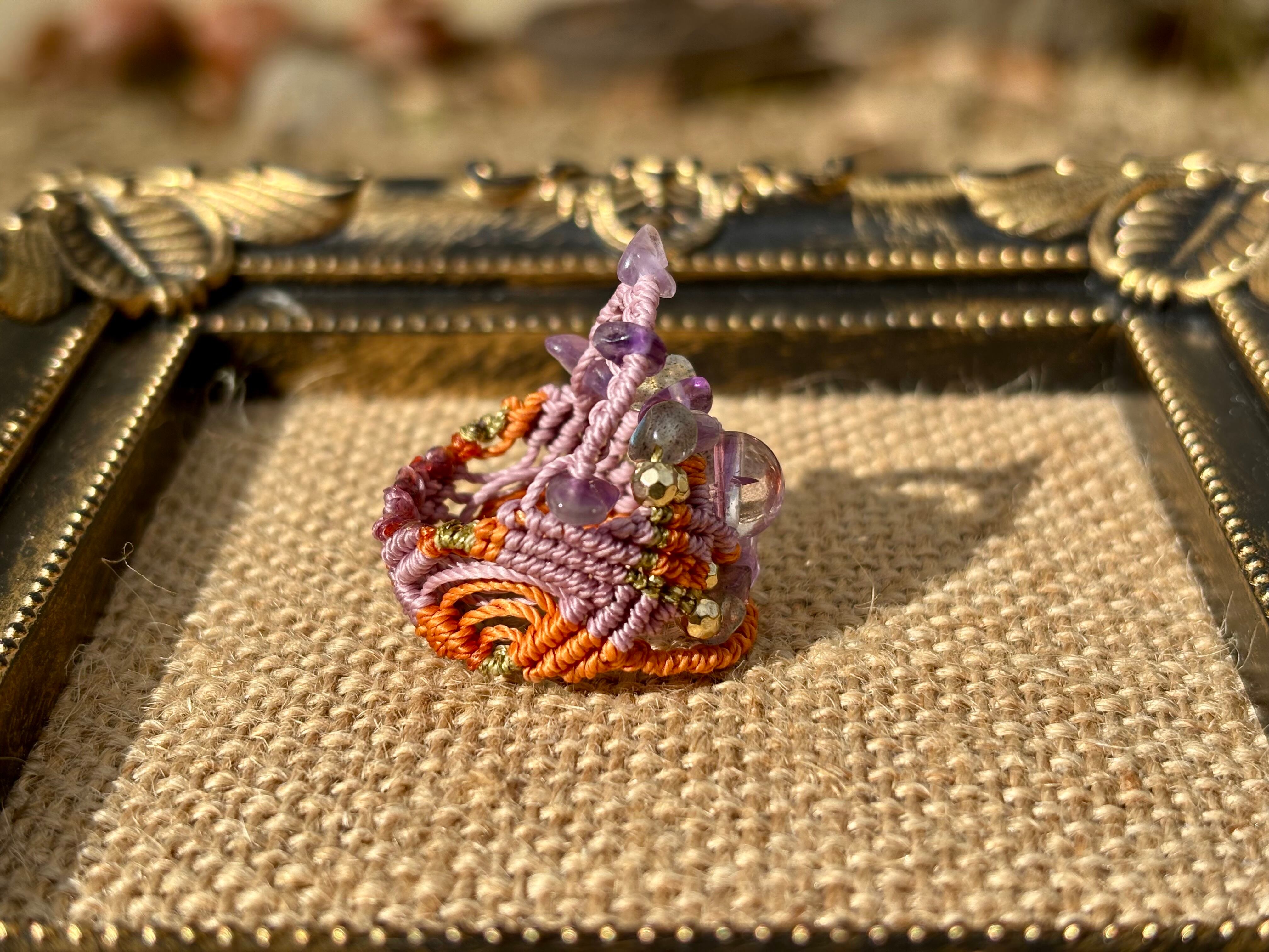 #968ボリビア産アメジスト♡一点物(アメジスト×ラブラドライト マクラメ編みリング/指輪)