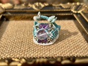 #972ボリビア産アメジスト一点物(アメジスト×ラリマー マクラメ編みリング/指輪)