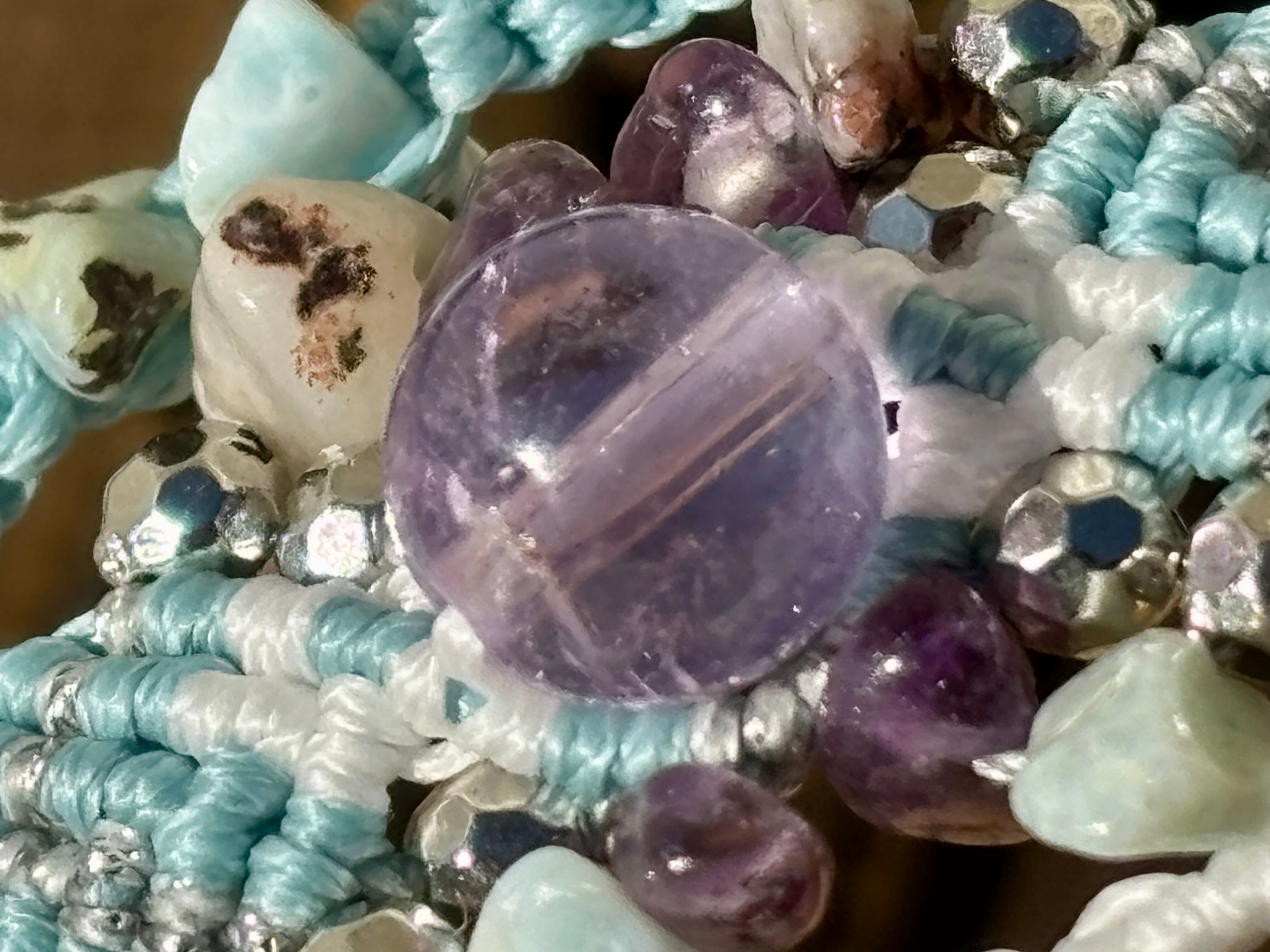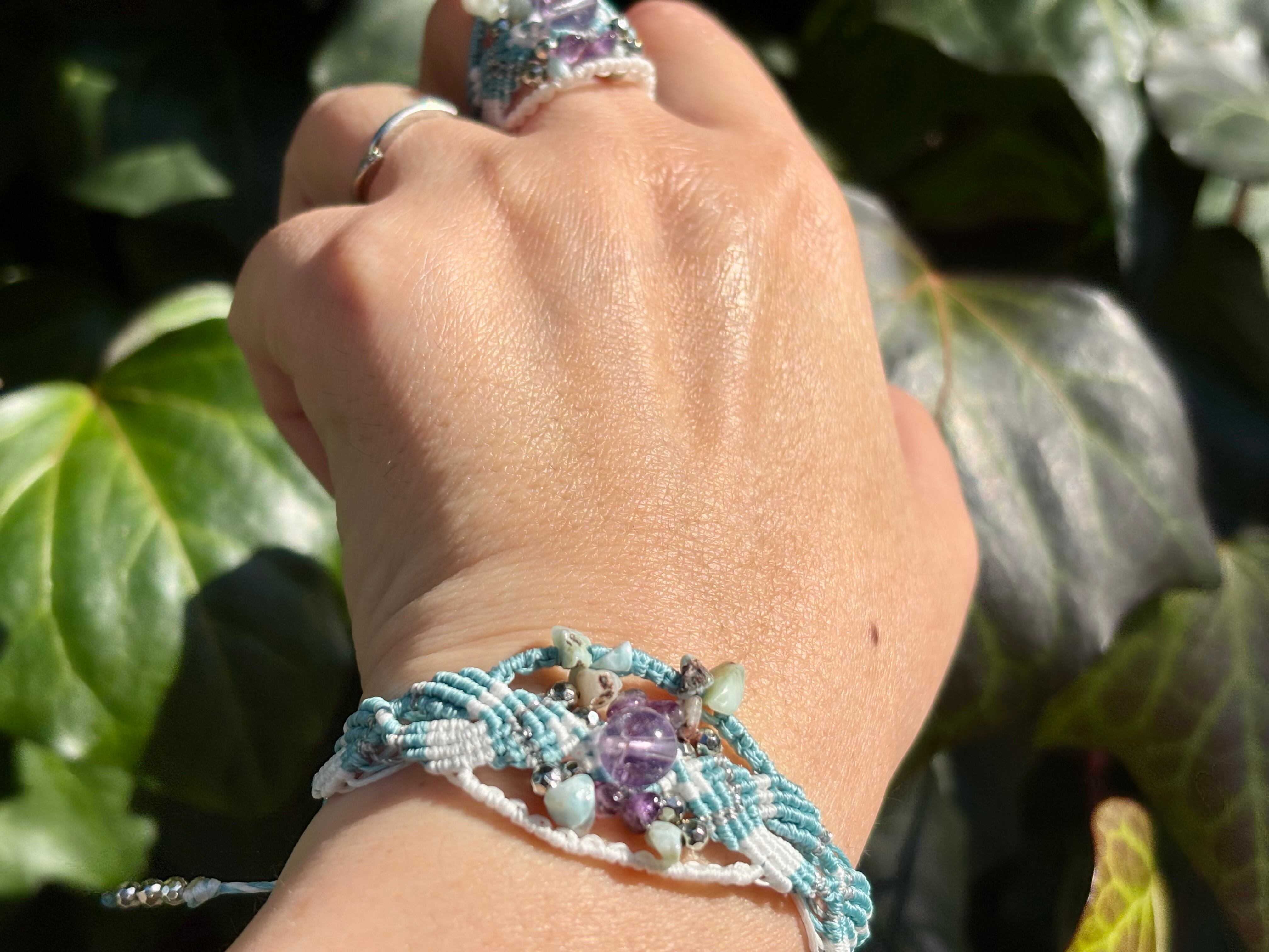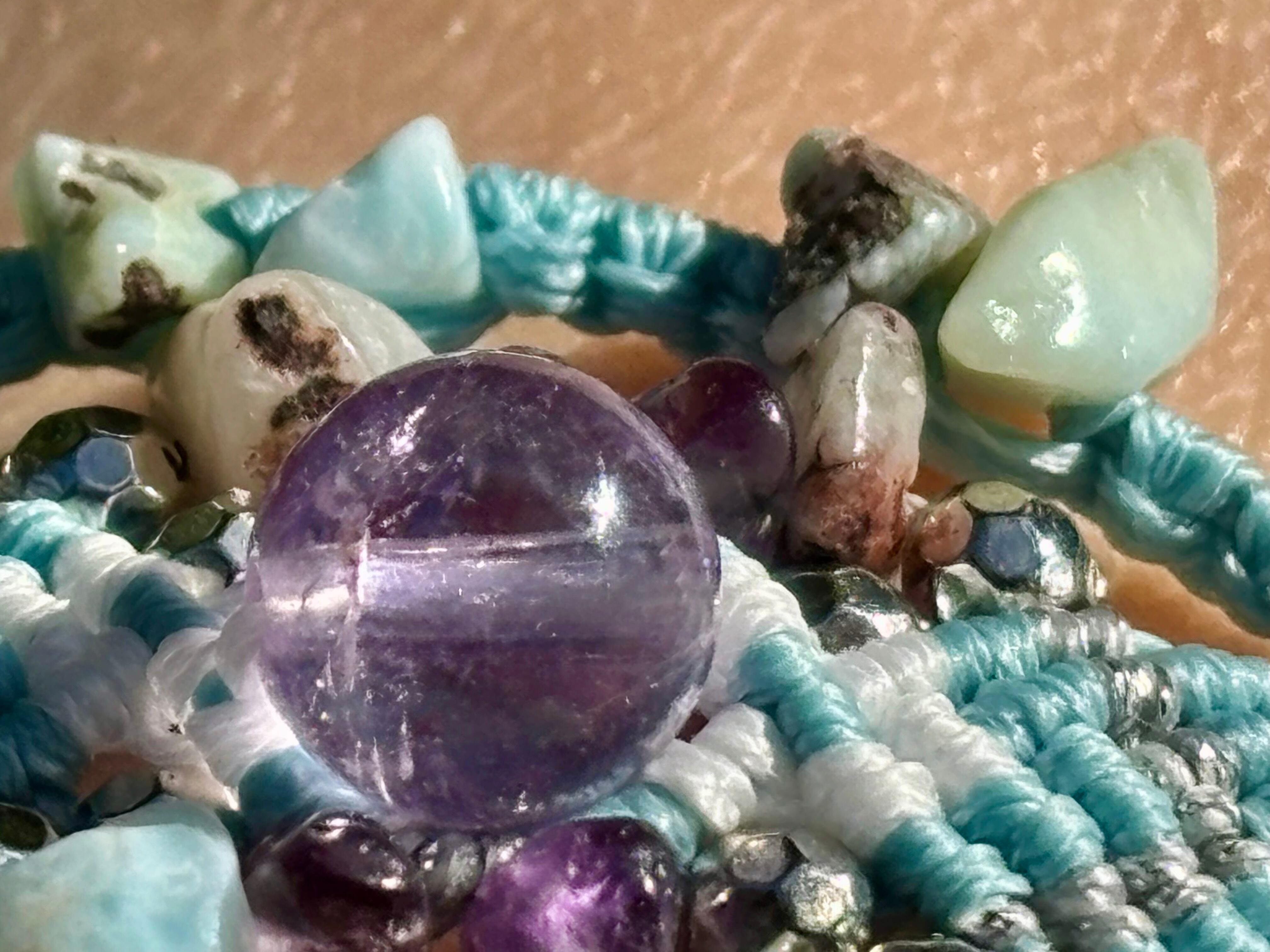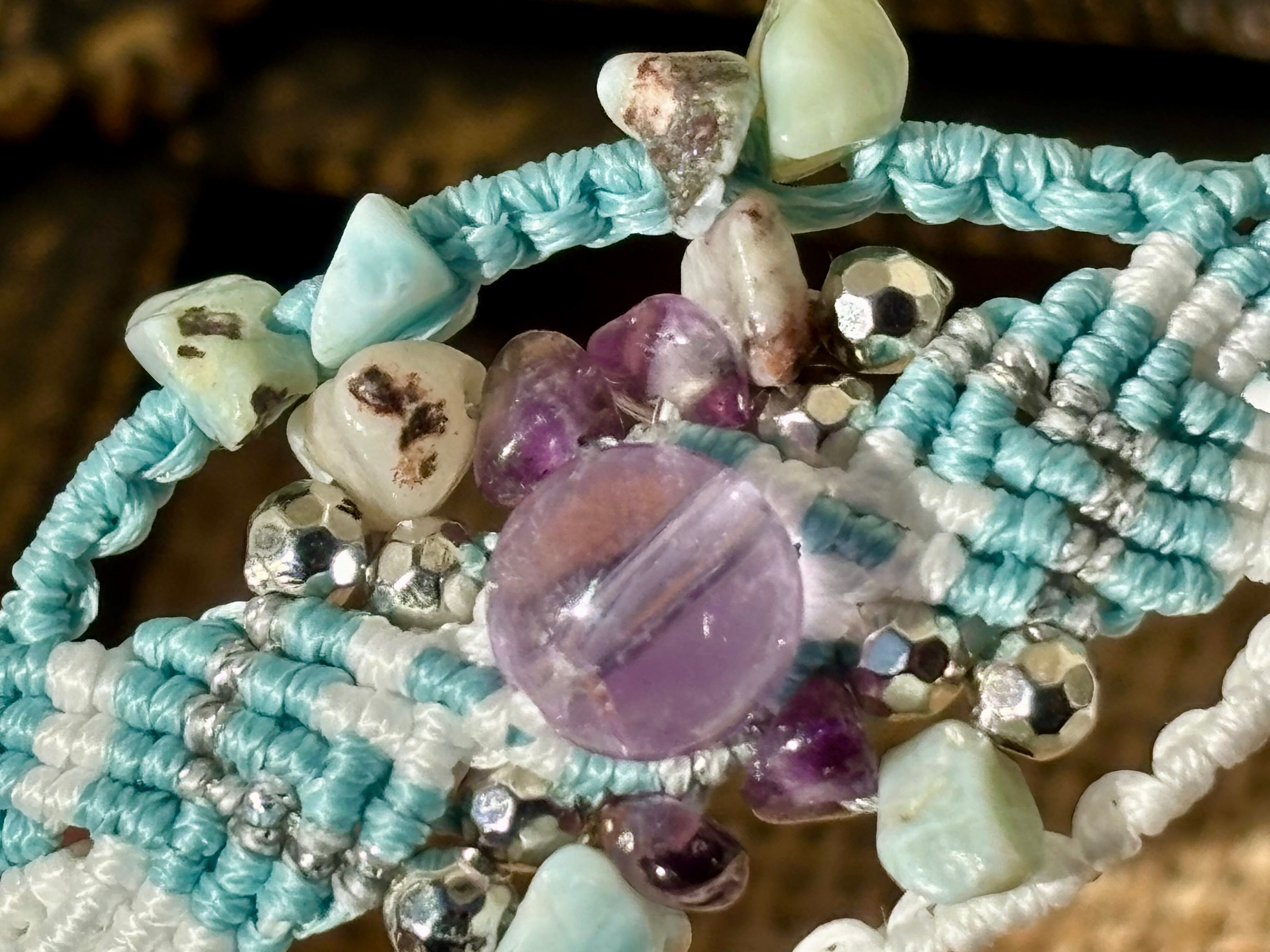 #973ボリビア産アメジスト一点物(アメジスト×ラリマー マクラメ編みブレスレット)