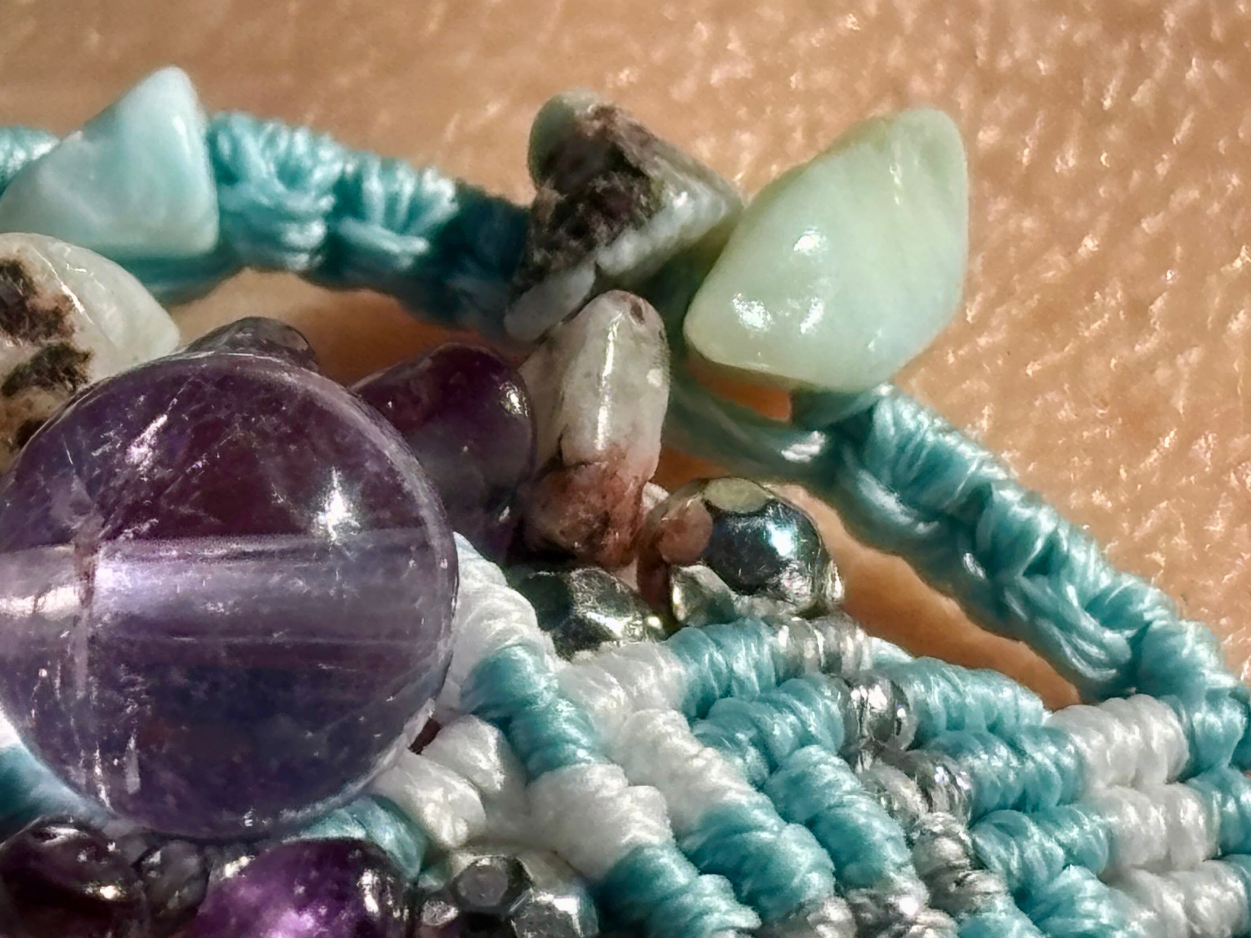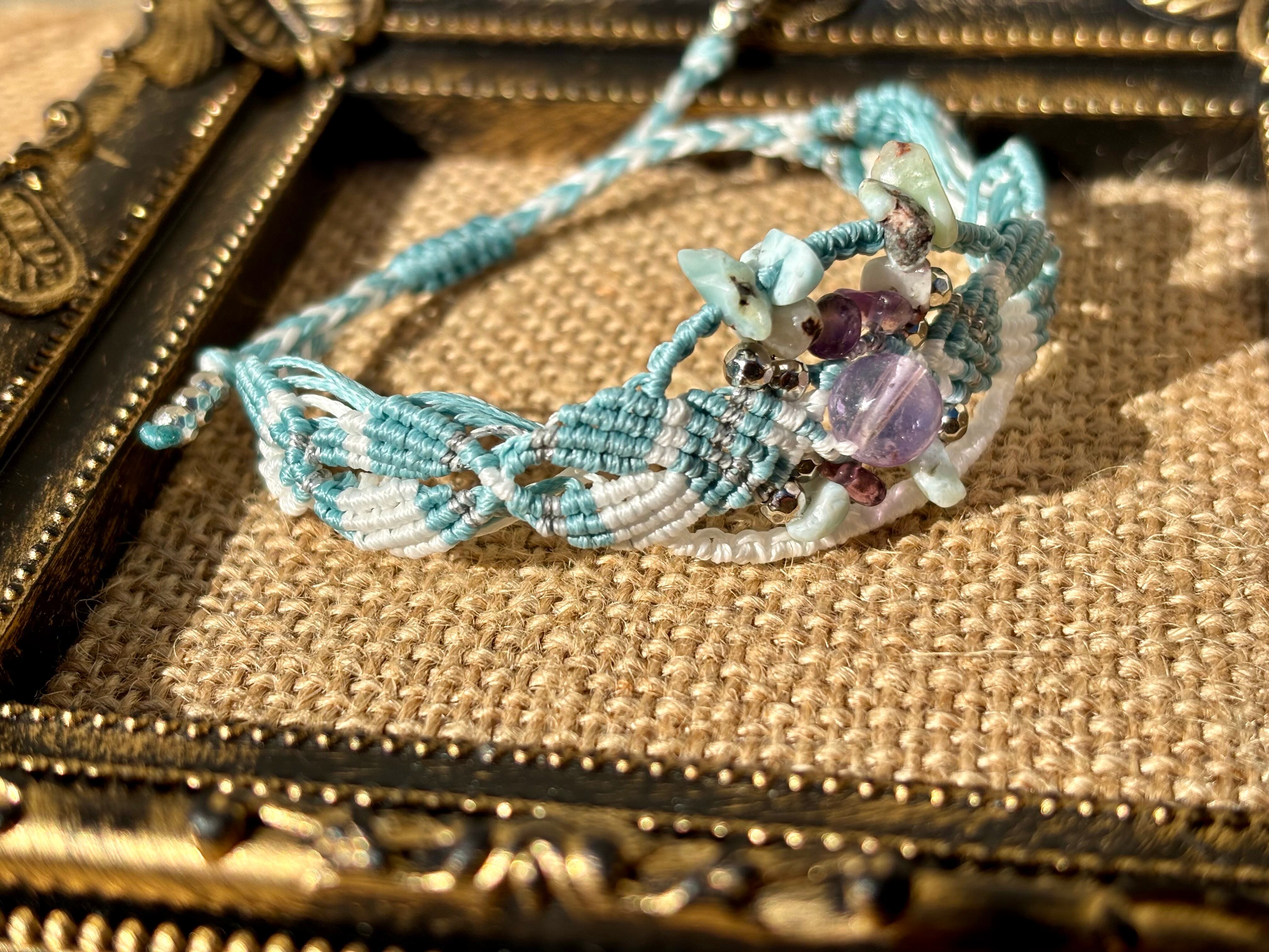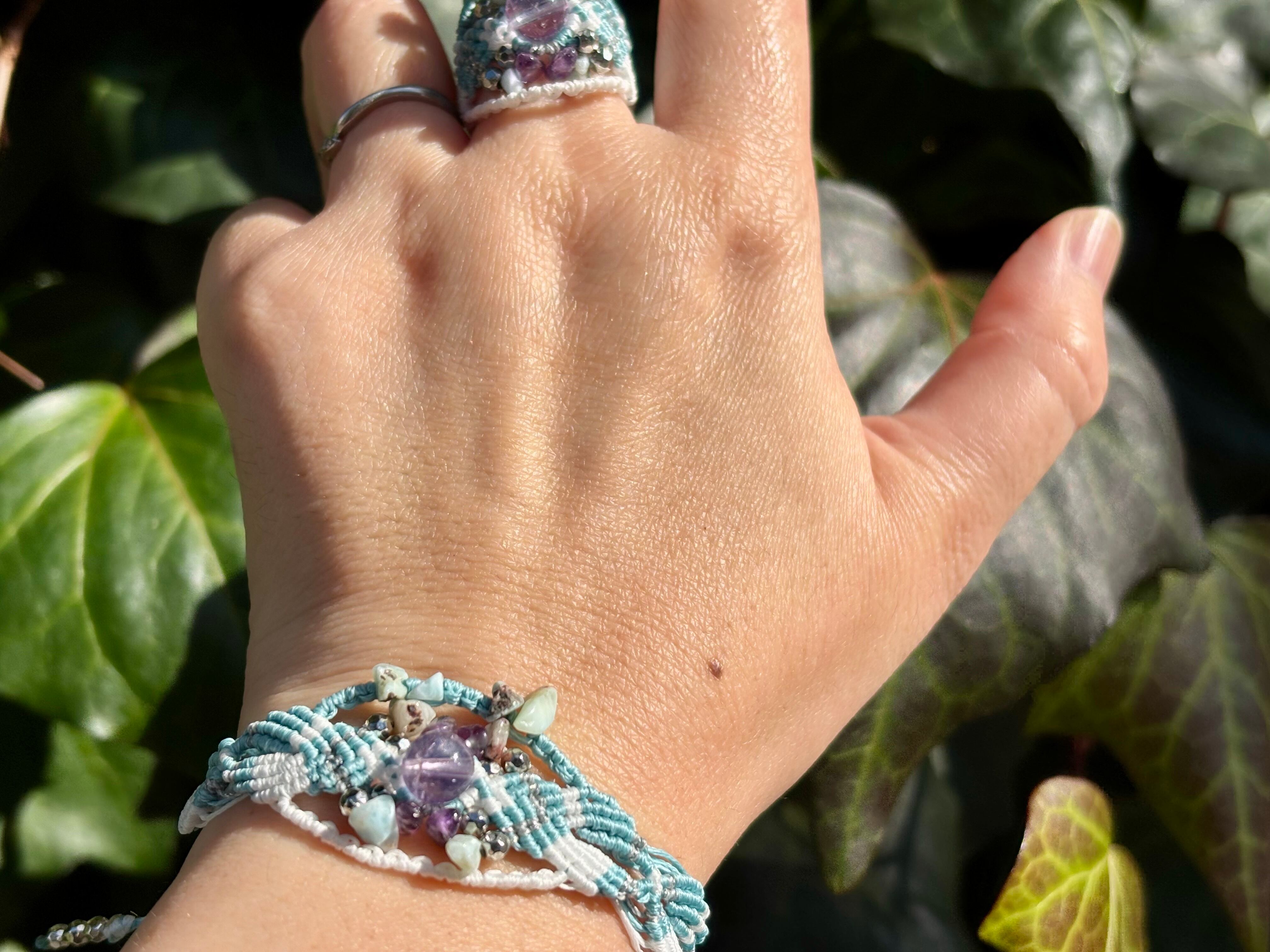 #973ボリビア産アメジスト一点物(アメジスト×ラリマー マクラメ編みブレスレット)
