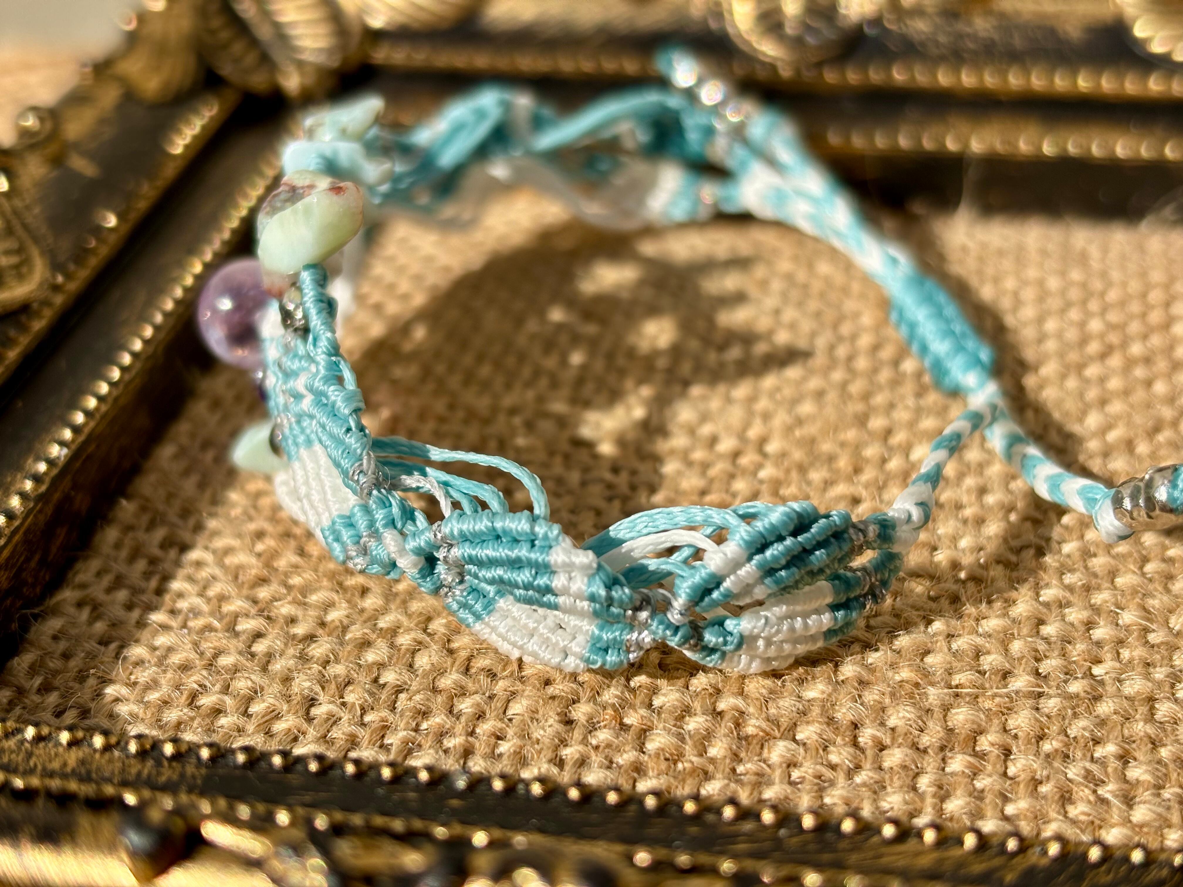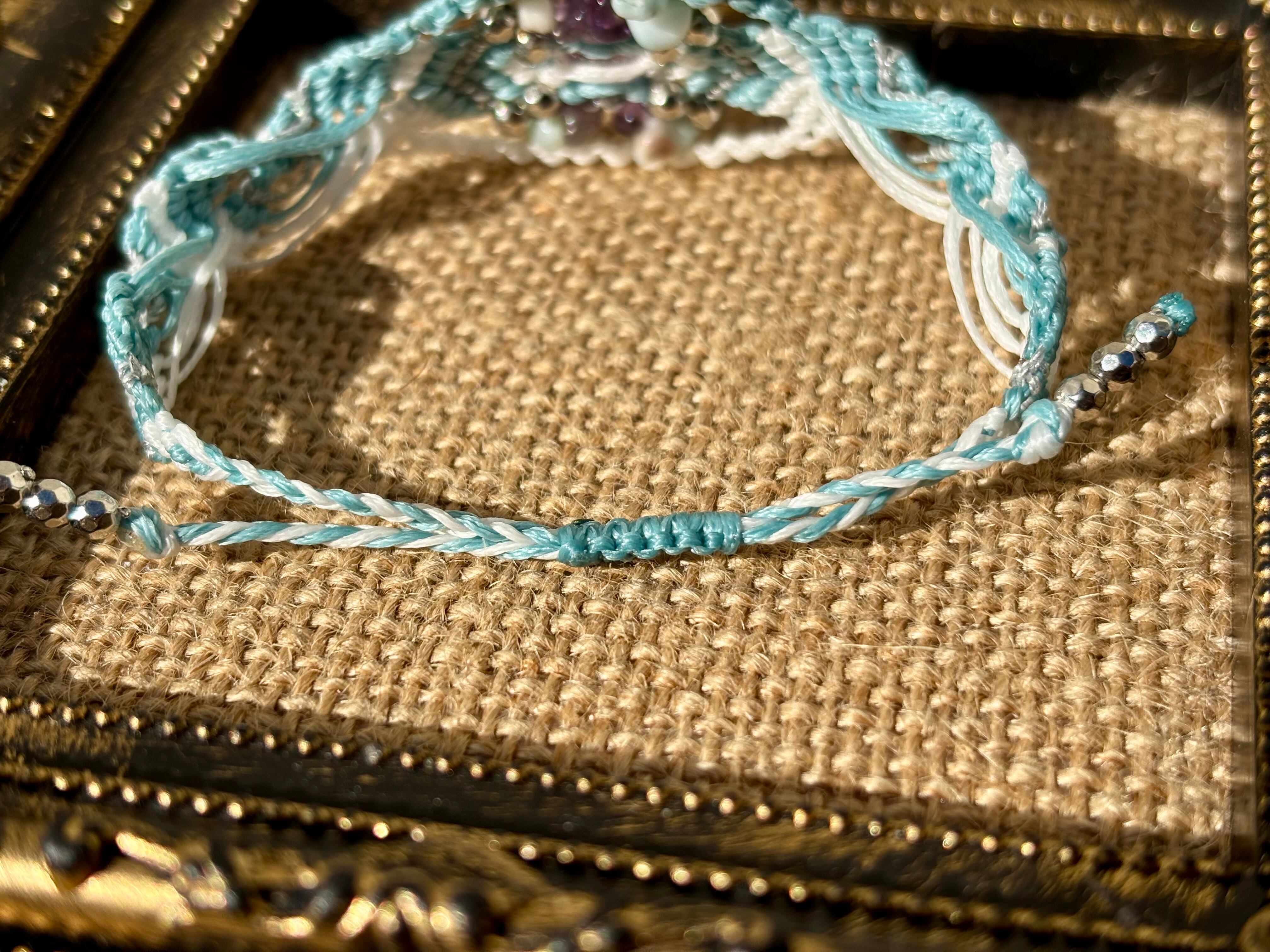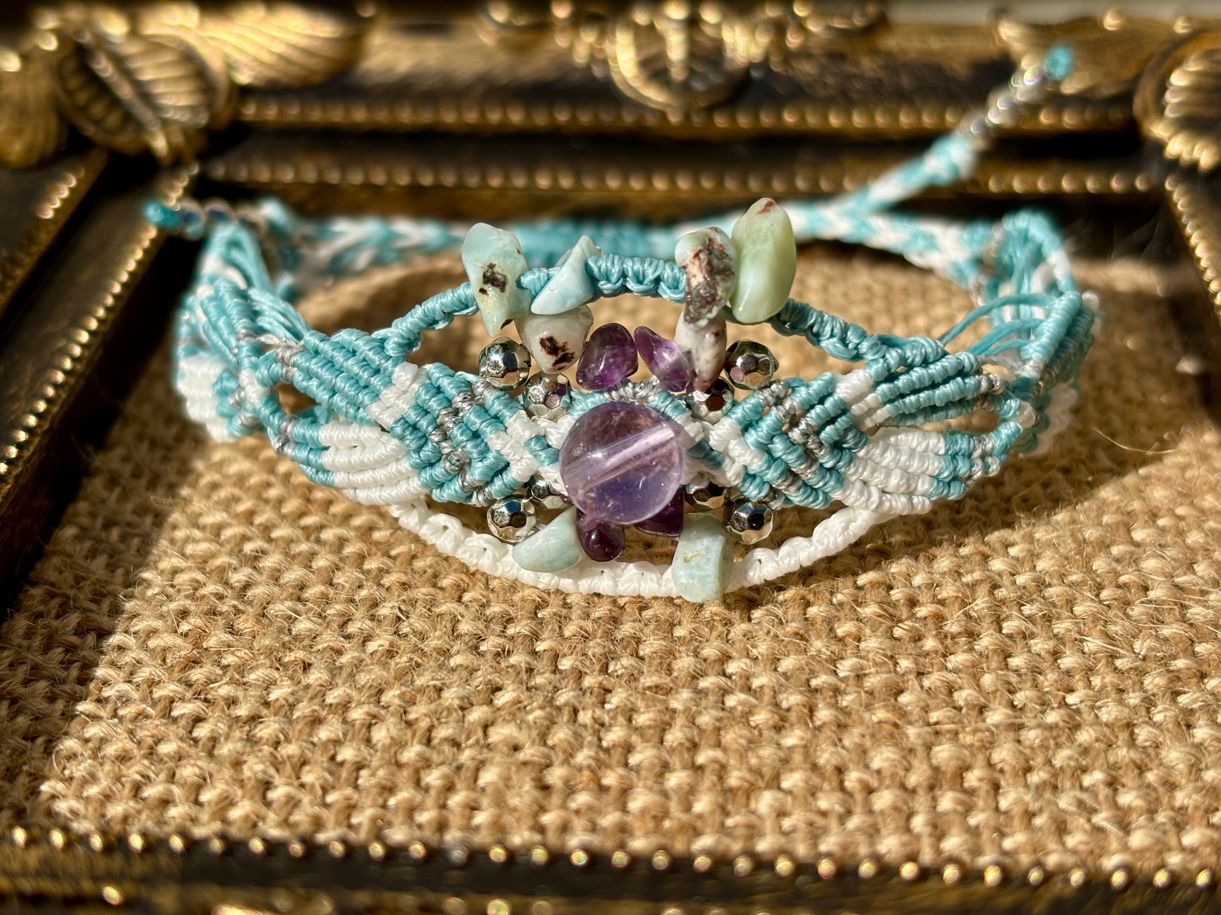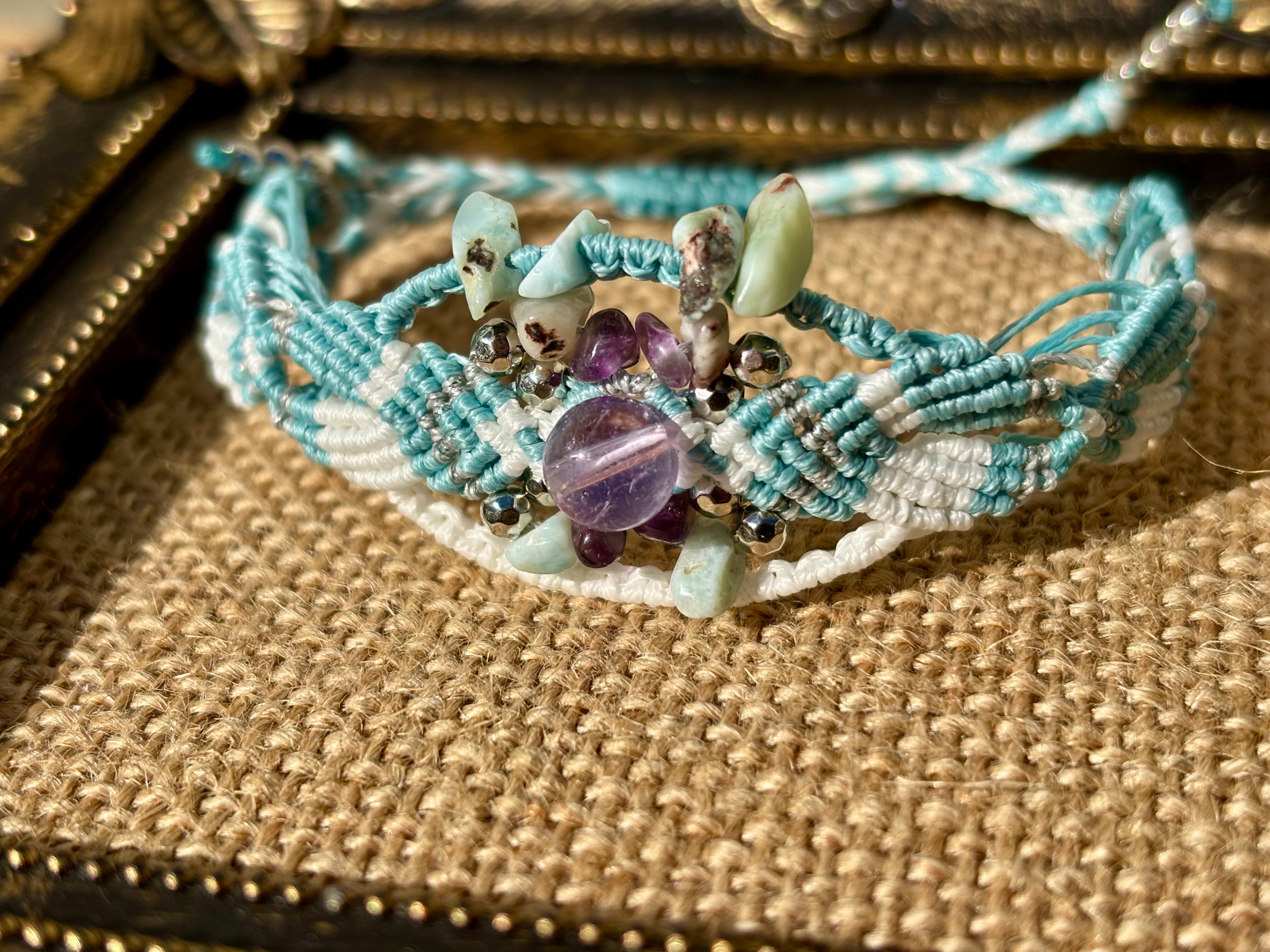 #973ボリビア産アメジスト一点物(アメジスト×ラリマー マクラメ編みブレスレット)