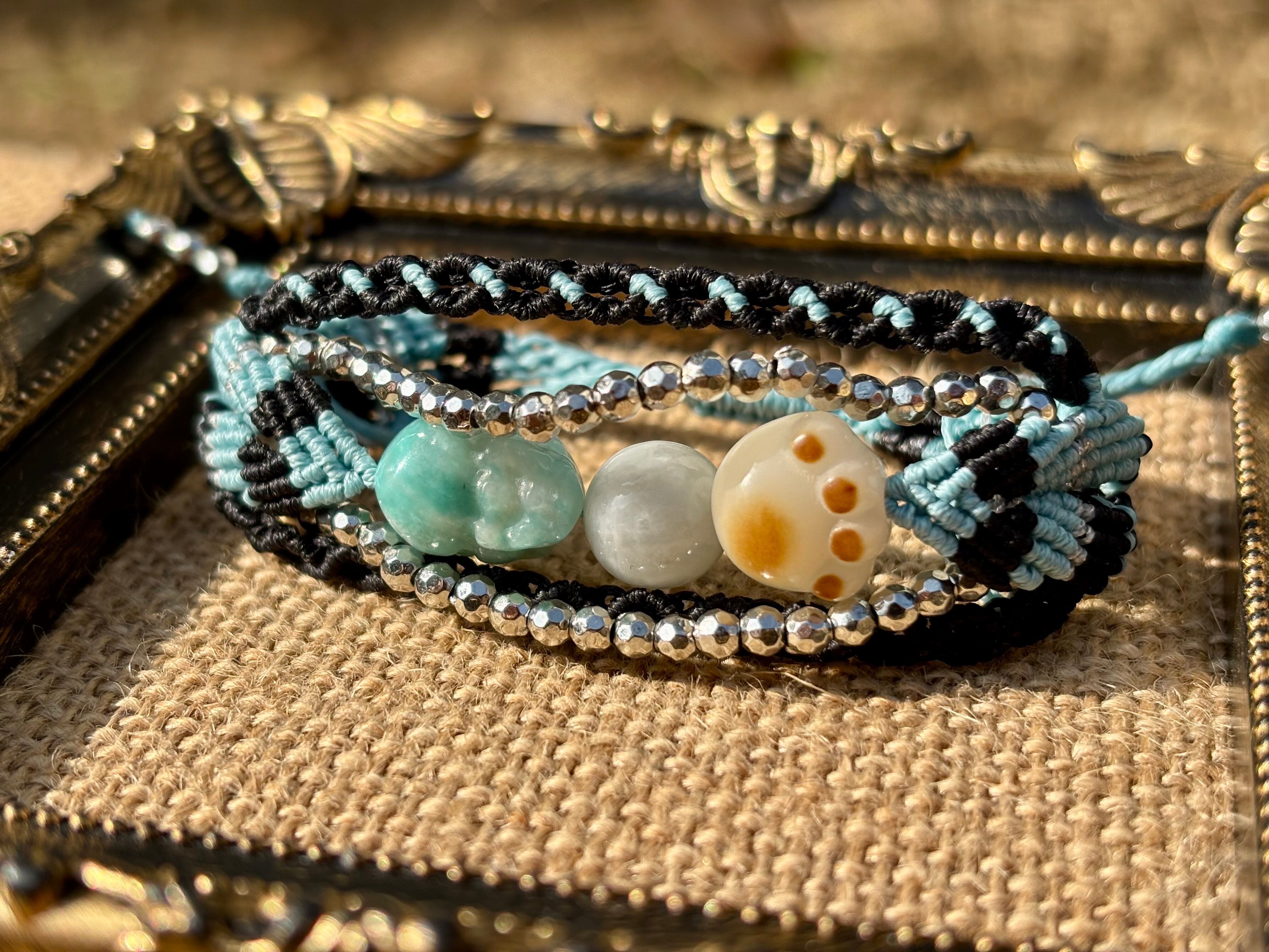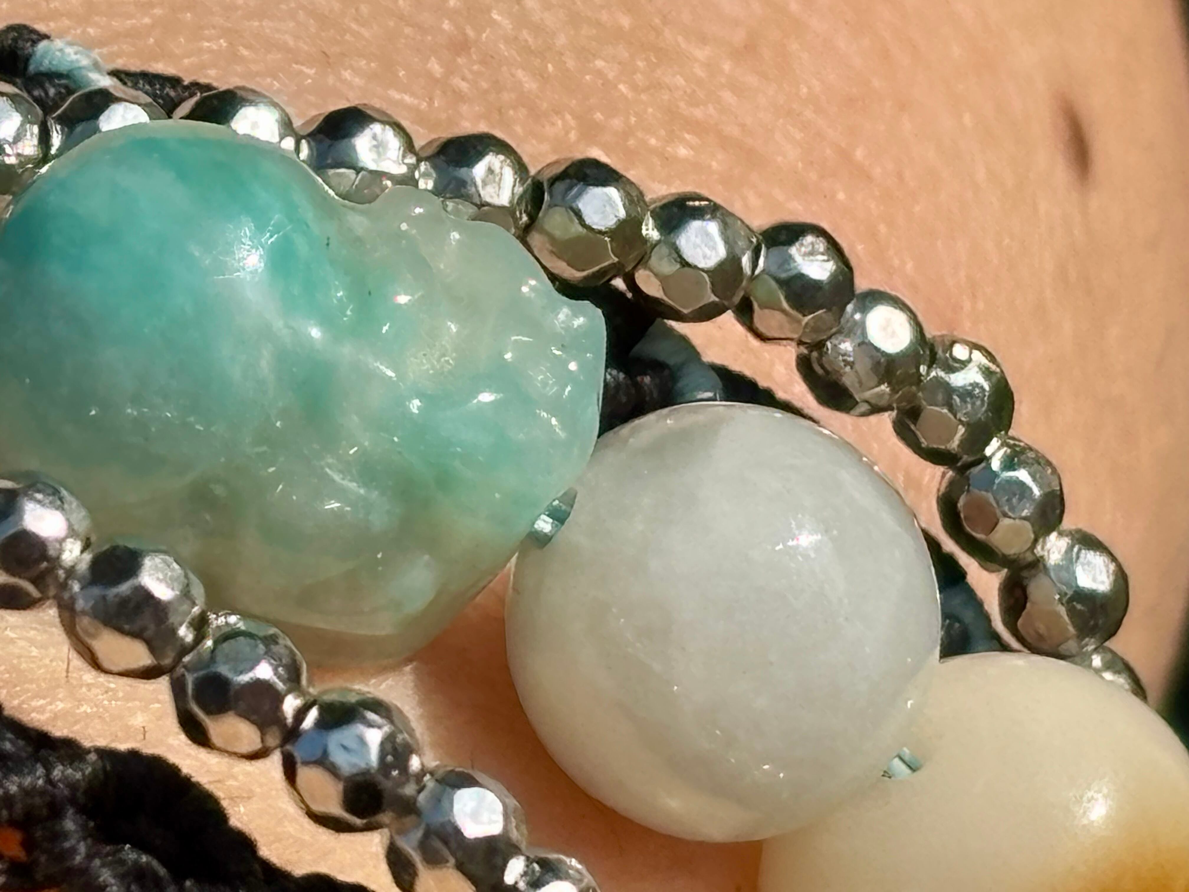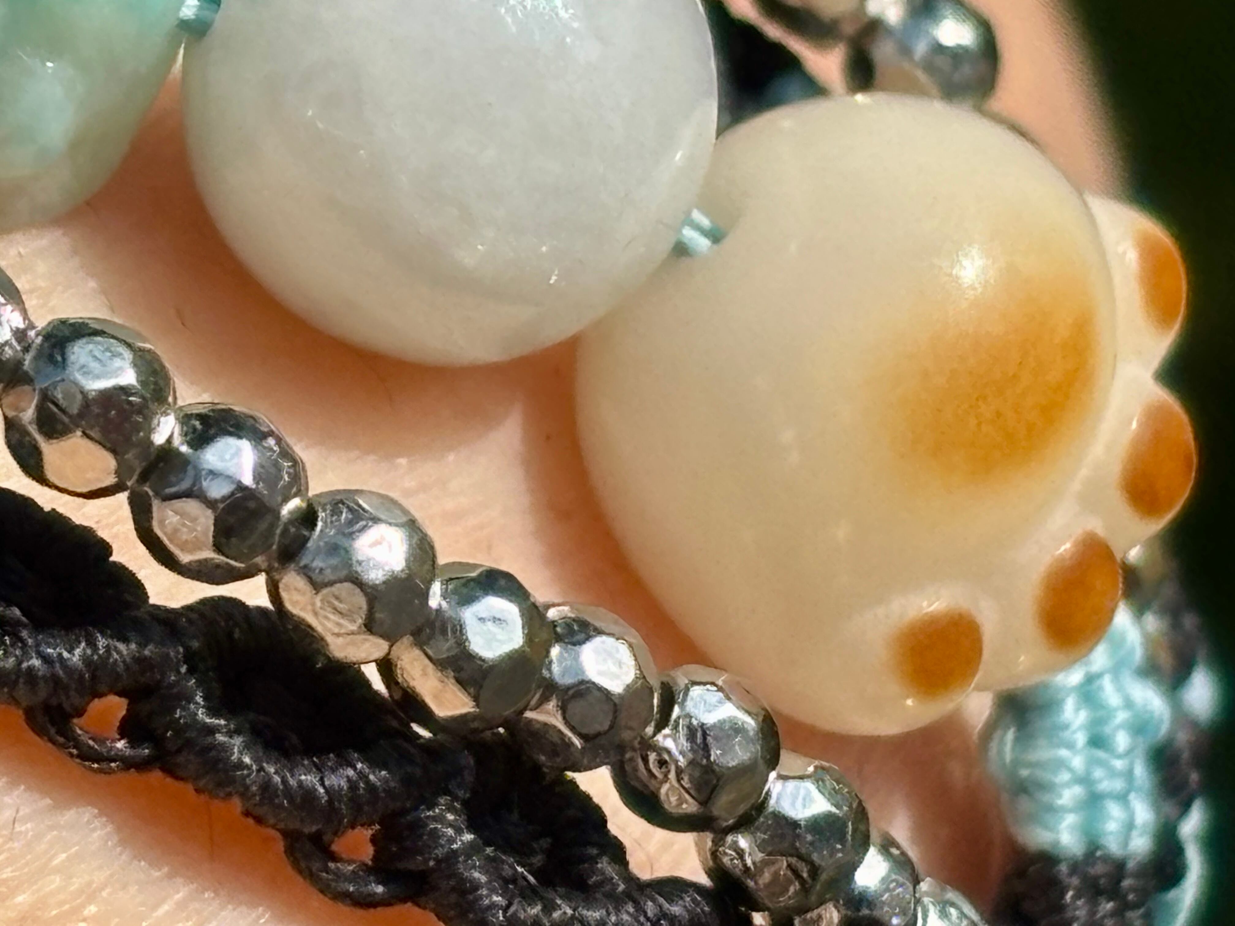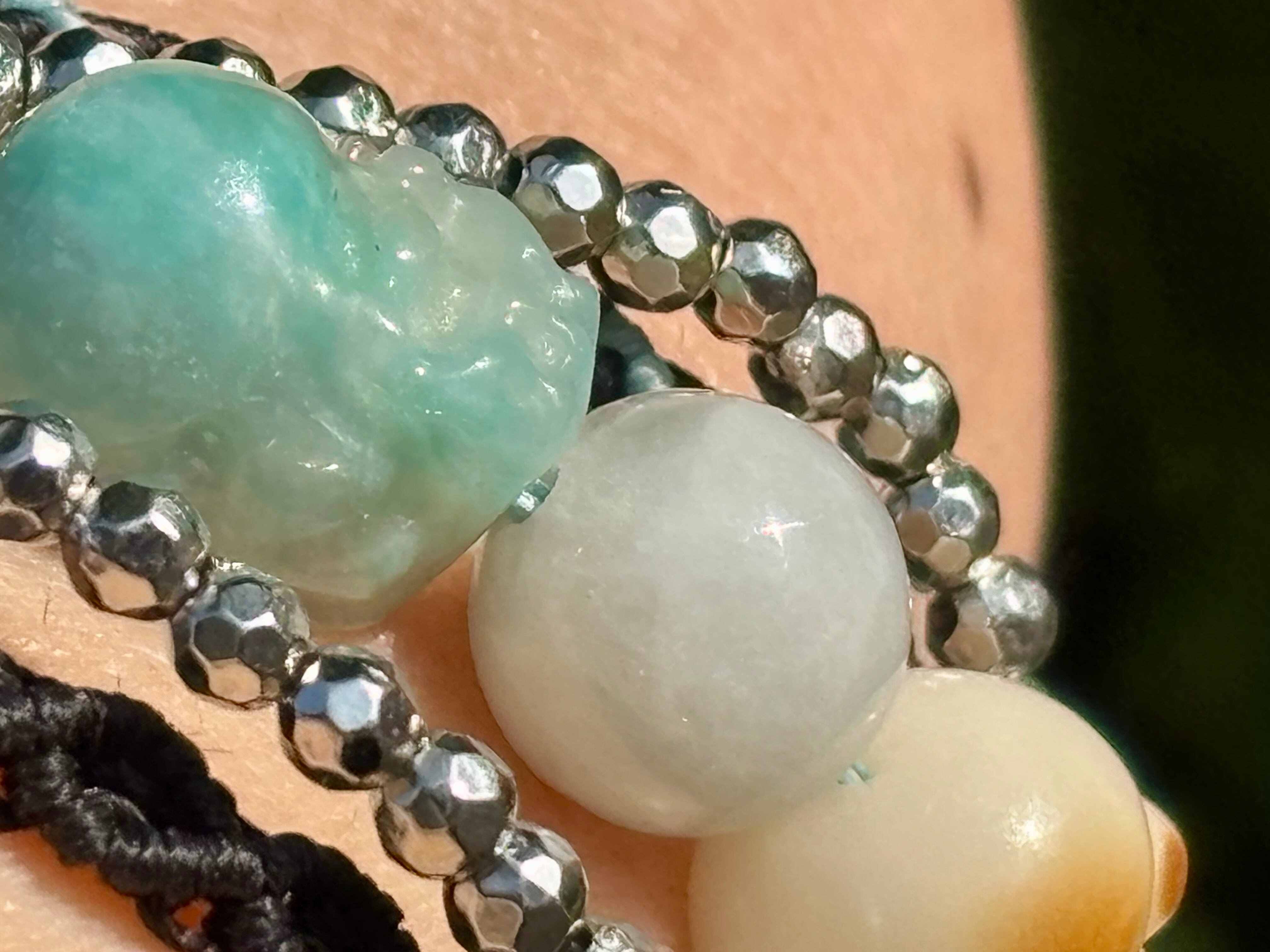 #979財運の神獣・貔貅一点物(アマゾナイトシリカ×翡翠×菩提樹 マクラメ編みブレスレット)