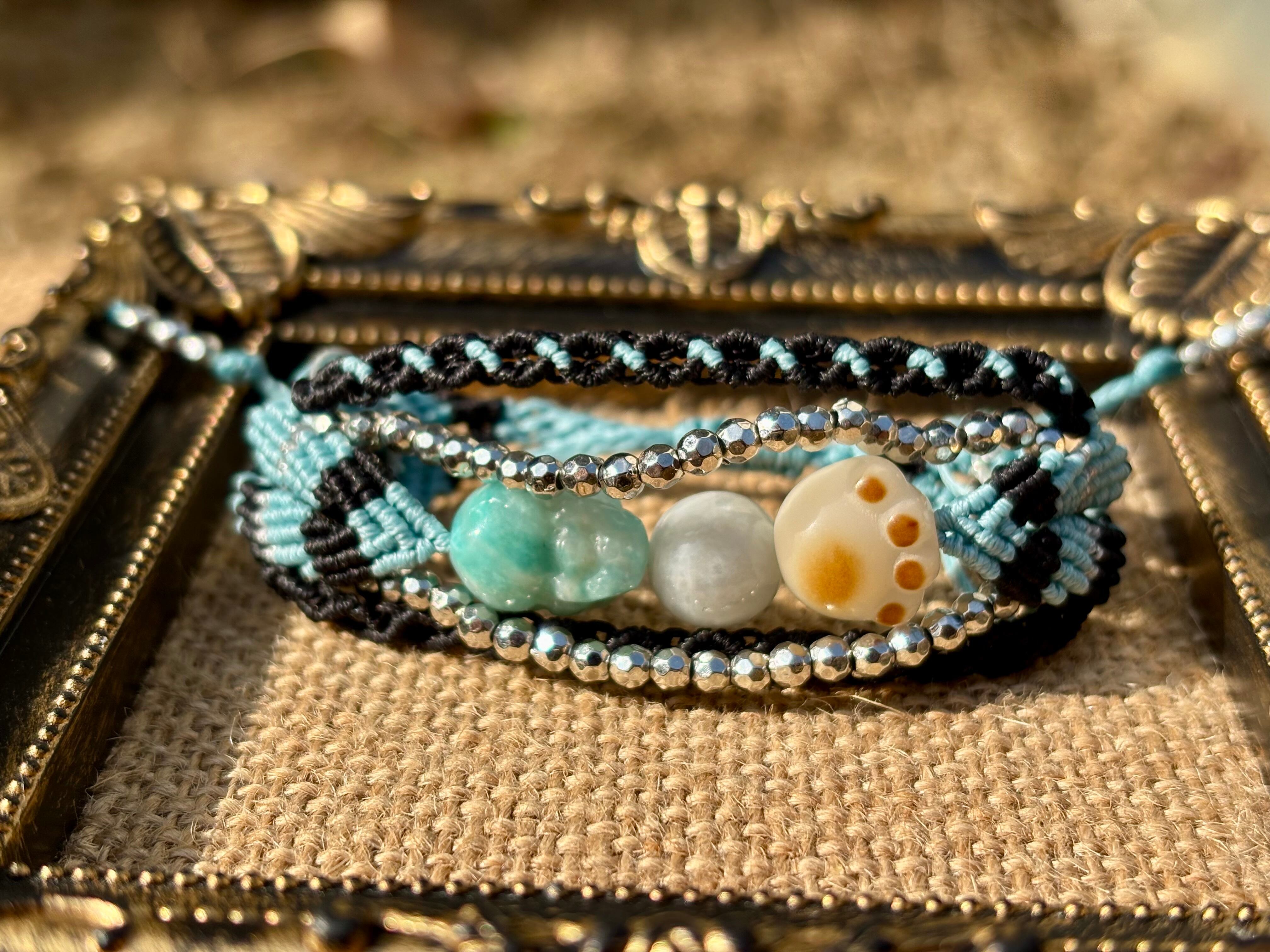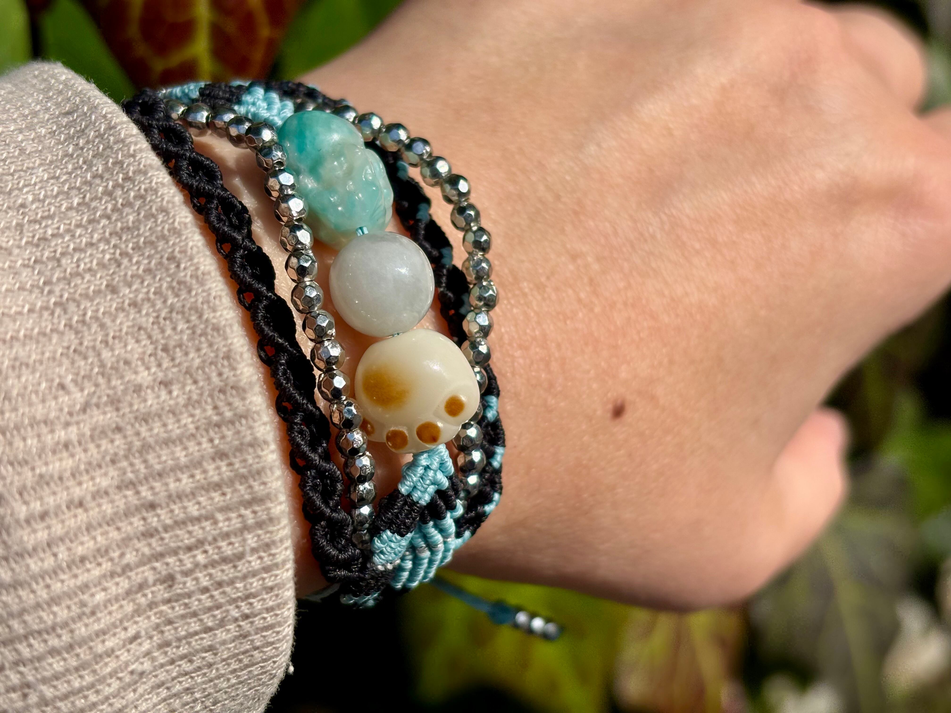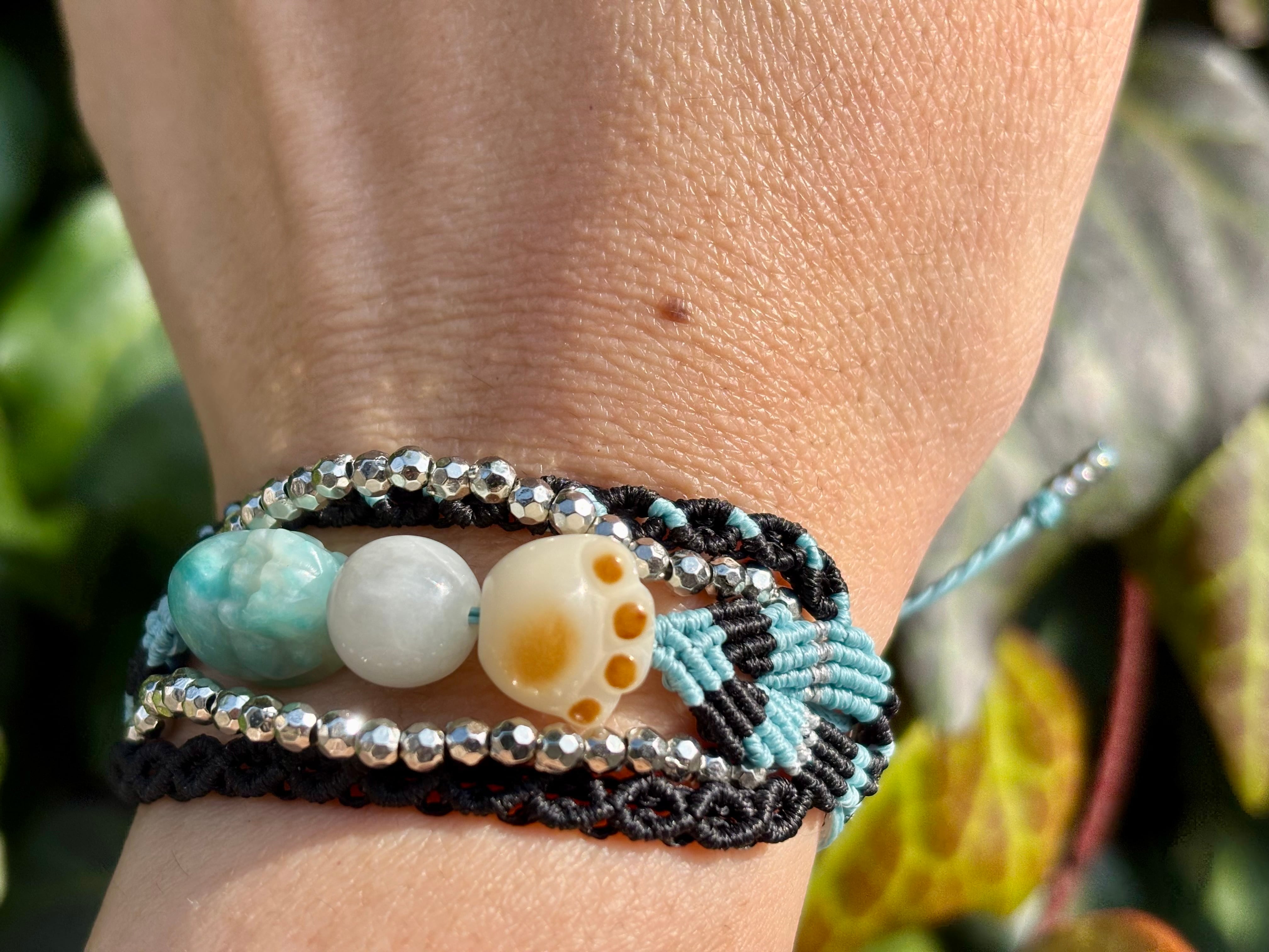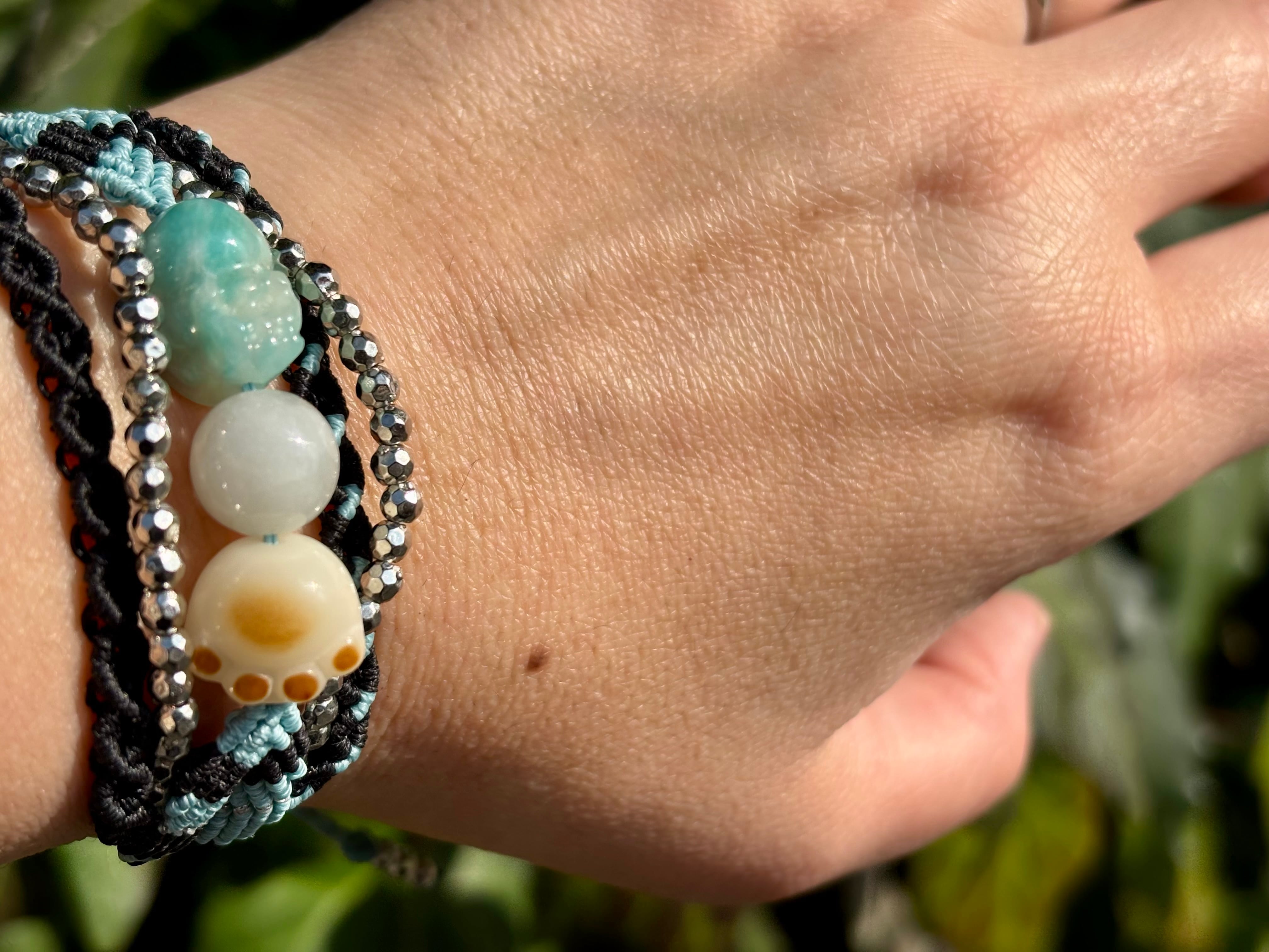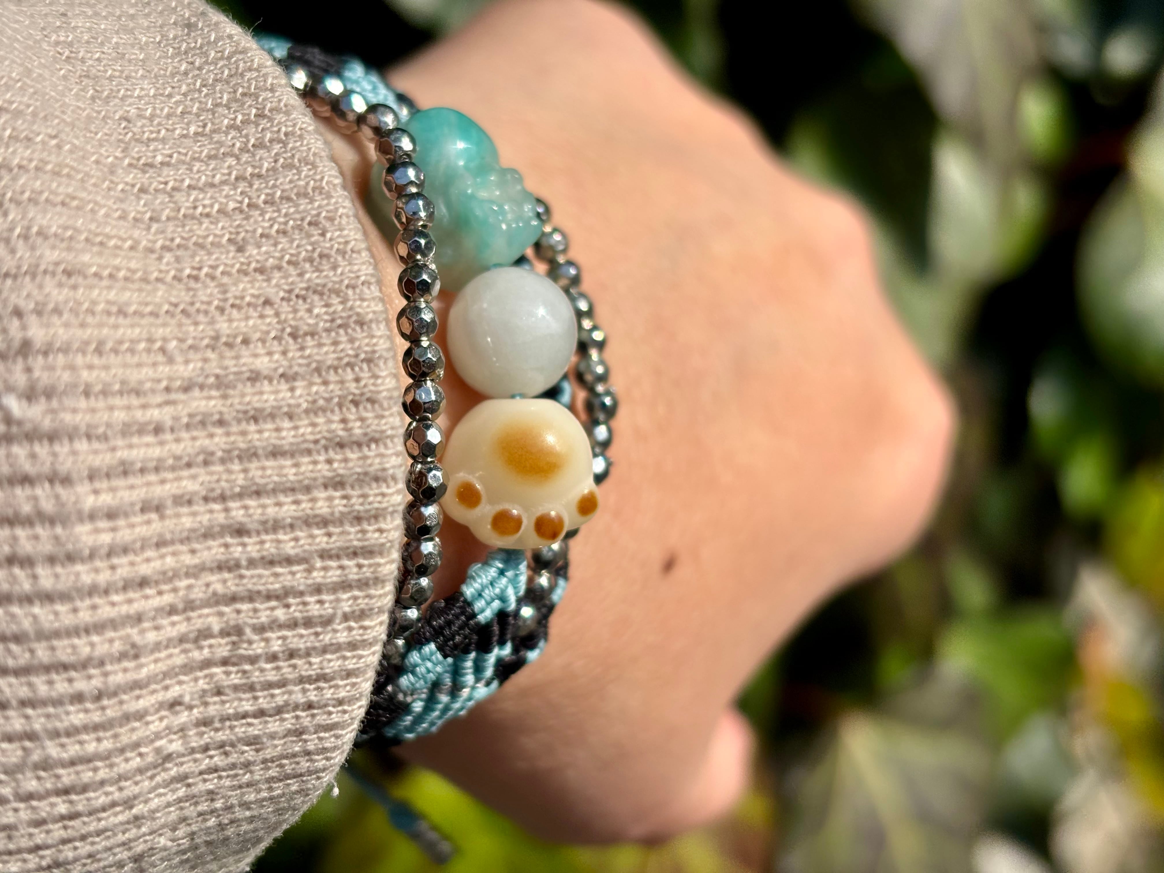 #979財運の神獣・貔貅一点物(アマゾナイトシリカ×翡翠×菩提樹 マクラメ編みブレスレット)