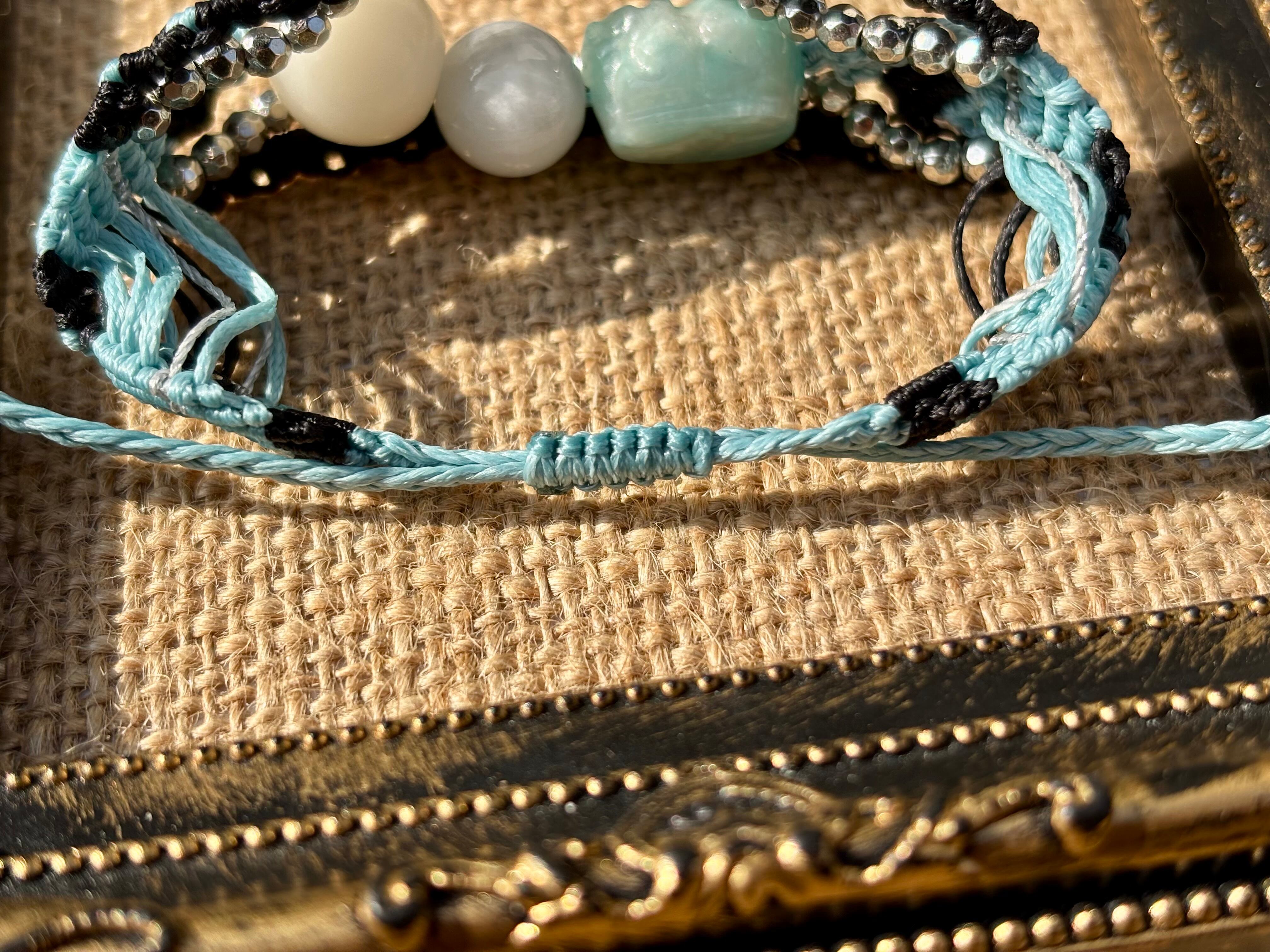 手作業で丁寧に編み込まれたこのブレスレットは、日常のコーディネートに華を添えるだけでなく、特別な場面でも存在感を発揮します。