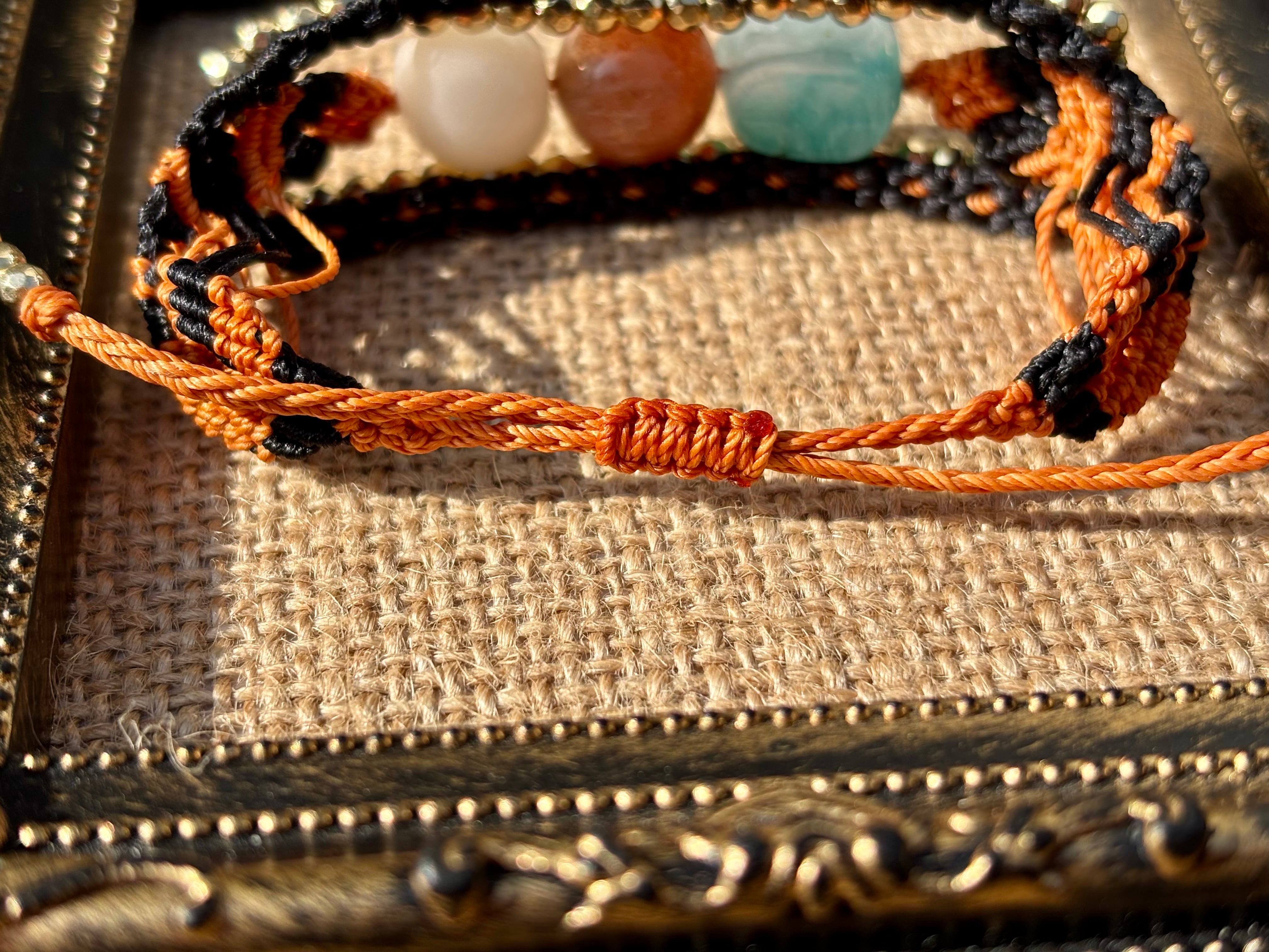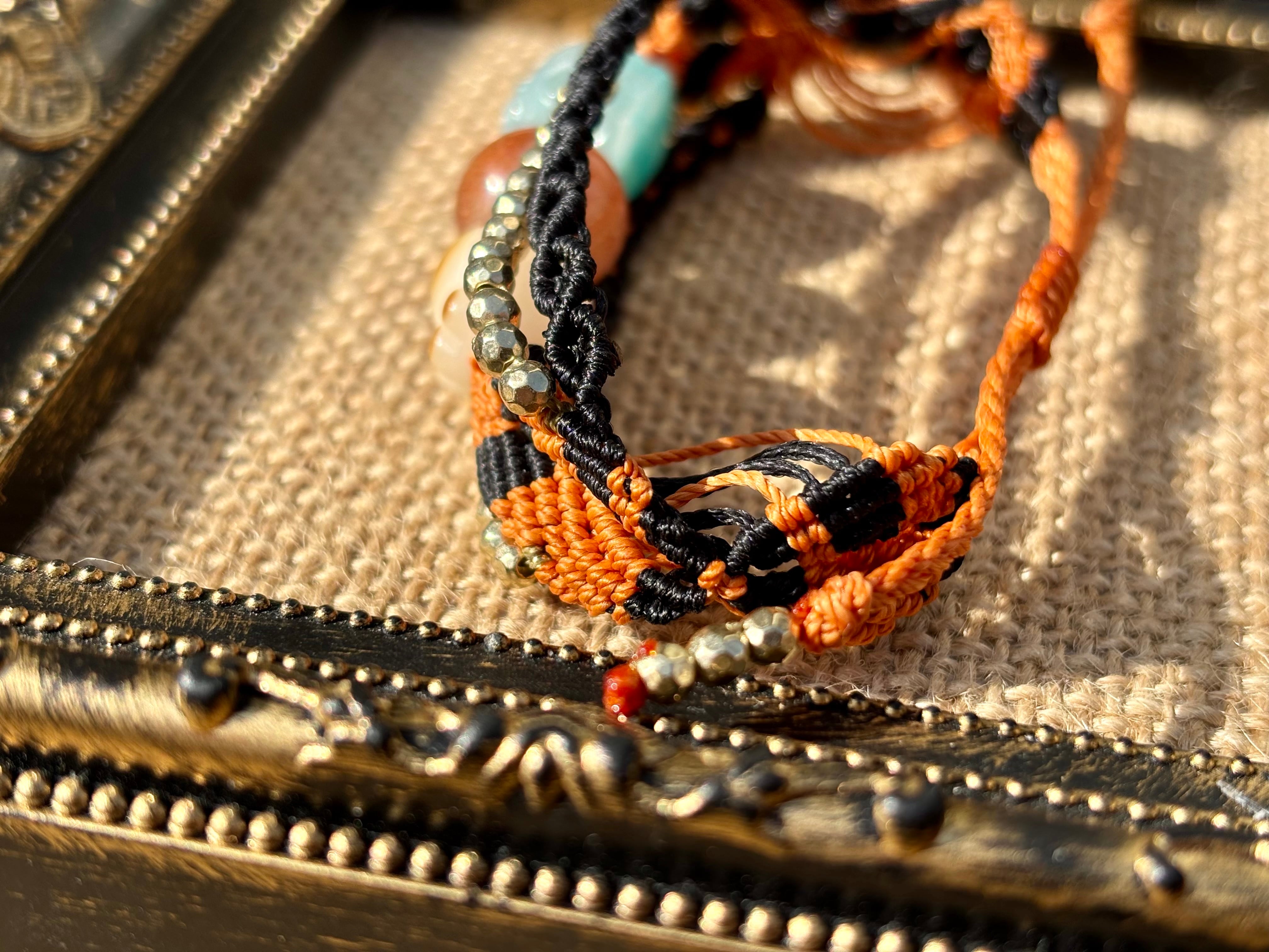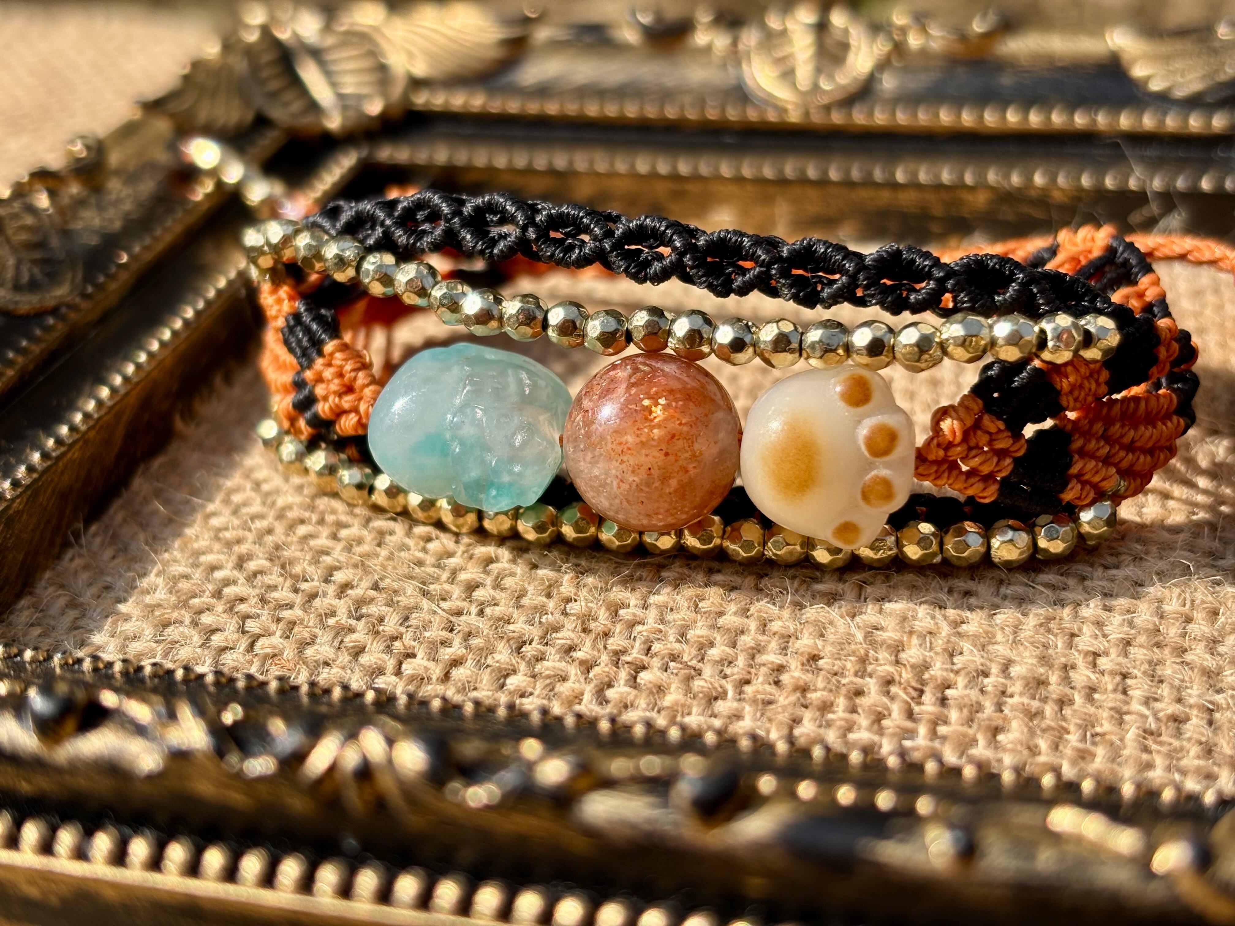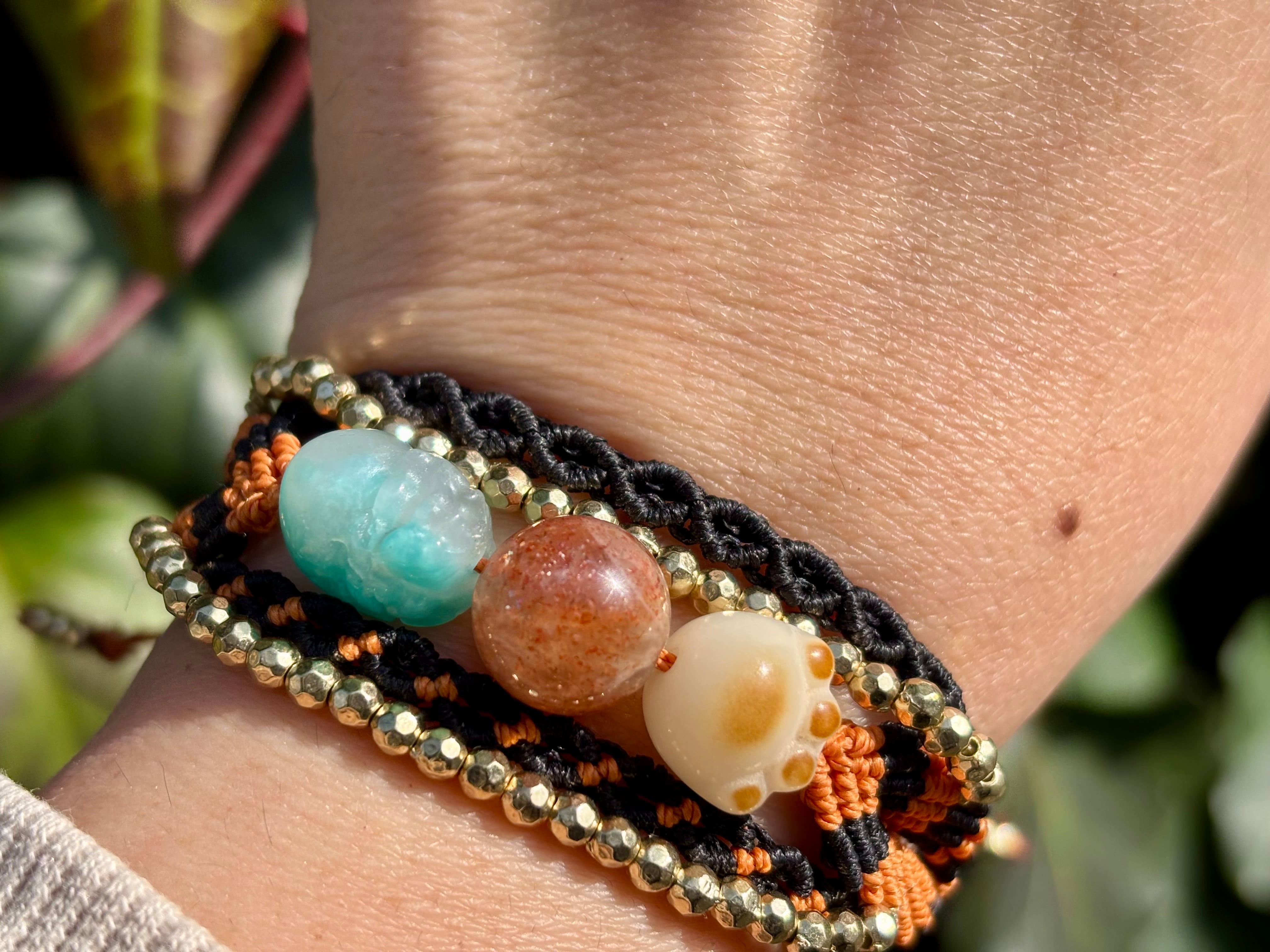 #980財運の神獣・貔貅一点物(アマゾナイトシリカ×サンストーン×菩提樹 マクラメ編みブレスレット)