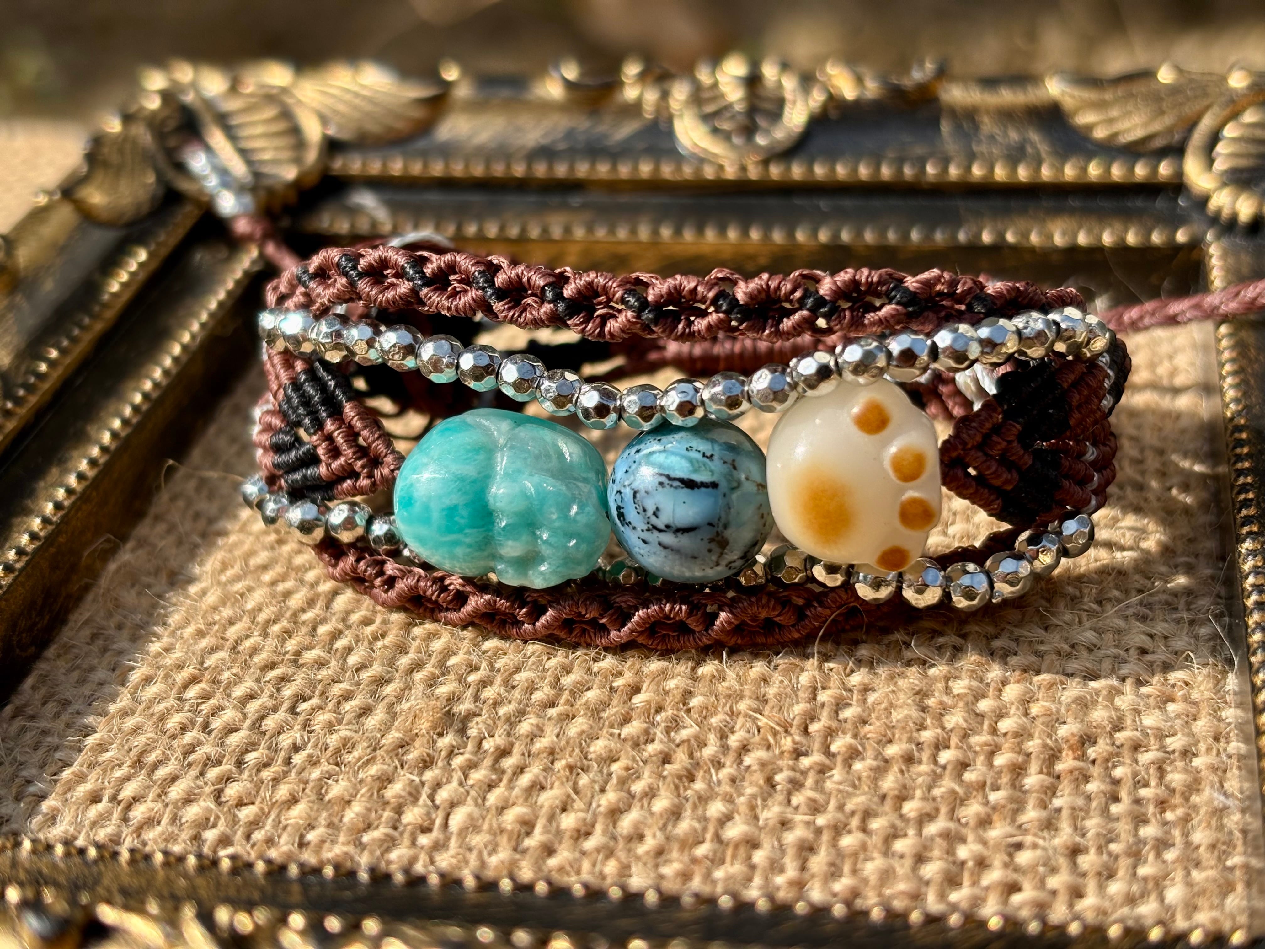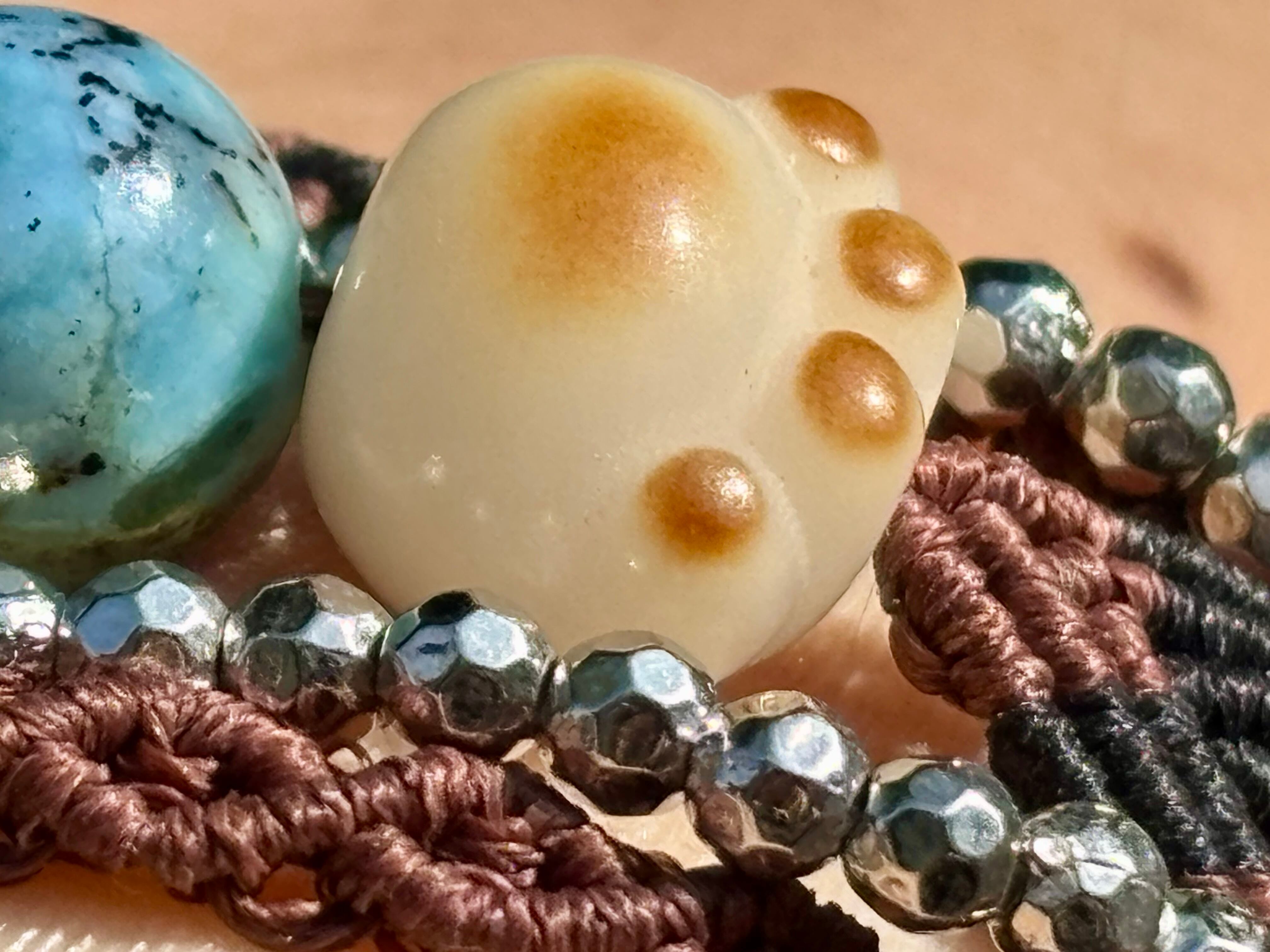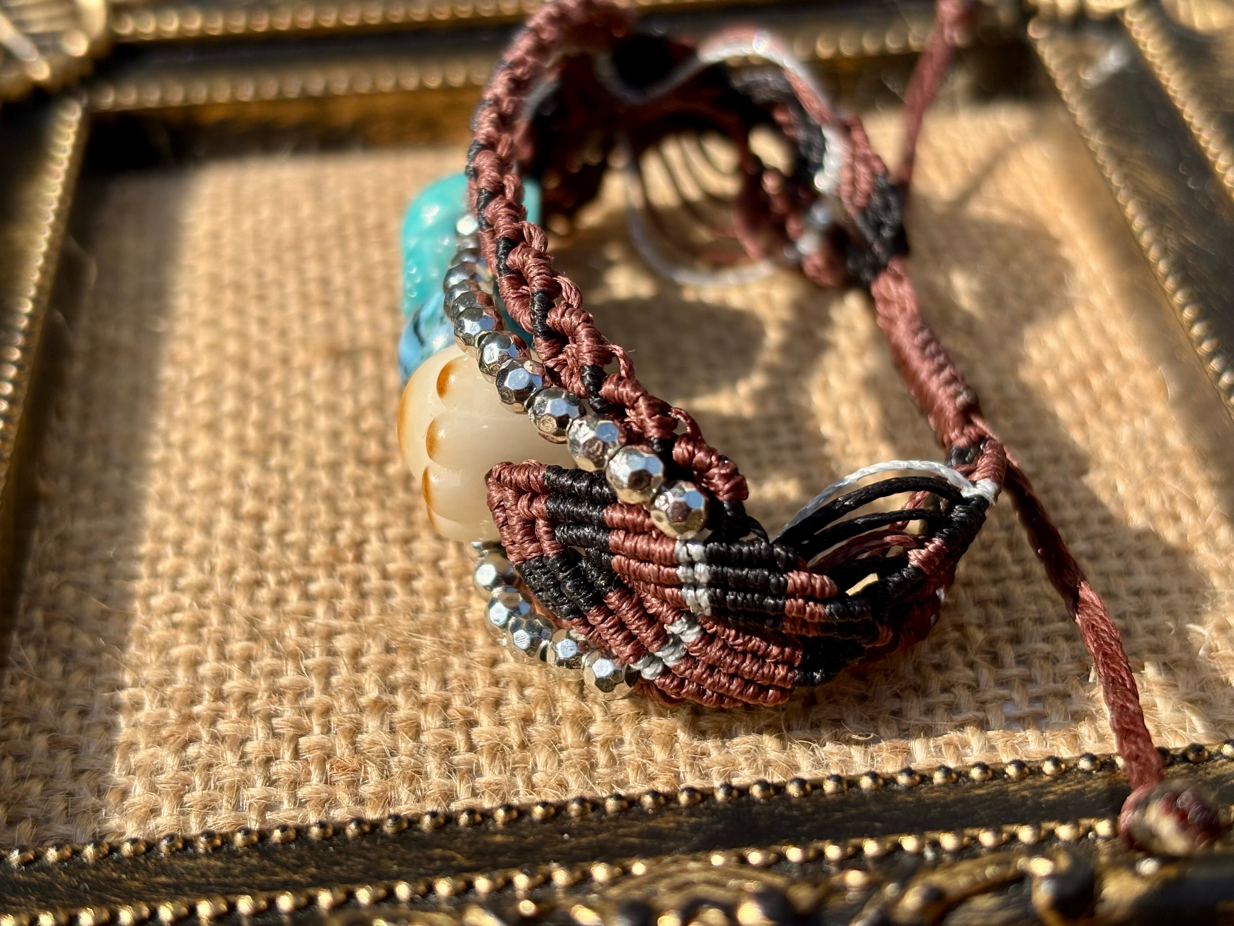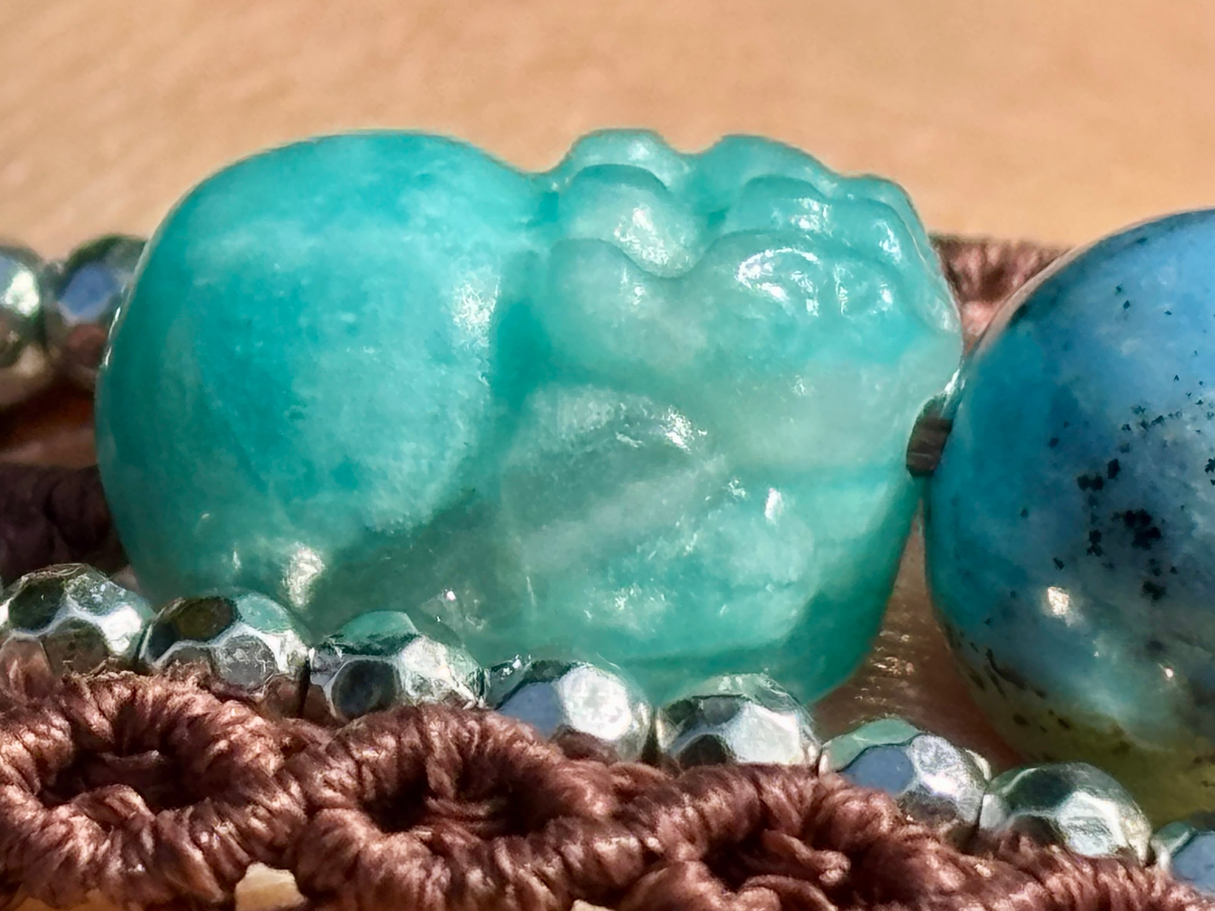 #981財運の神獣・貔貅一点物(アマゾナイトシリカ×スキャポライトインクリソコラ×菩提樹 マクラメ編みブレスレット)