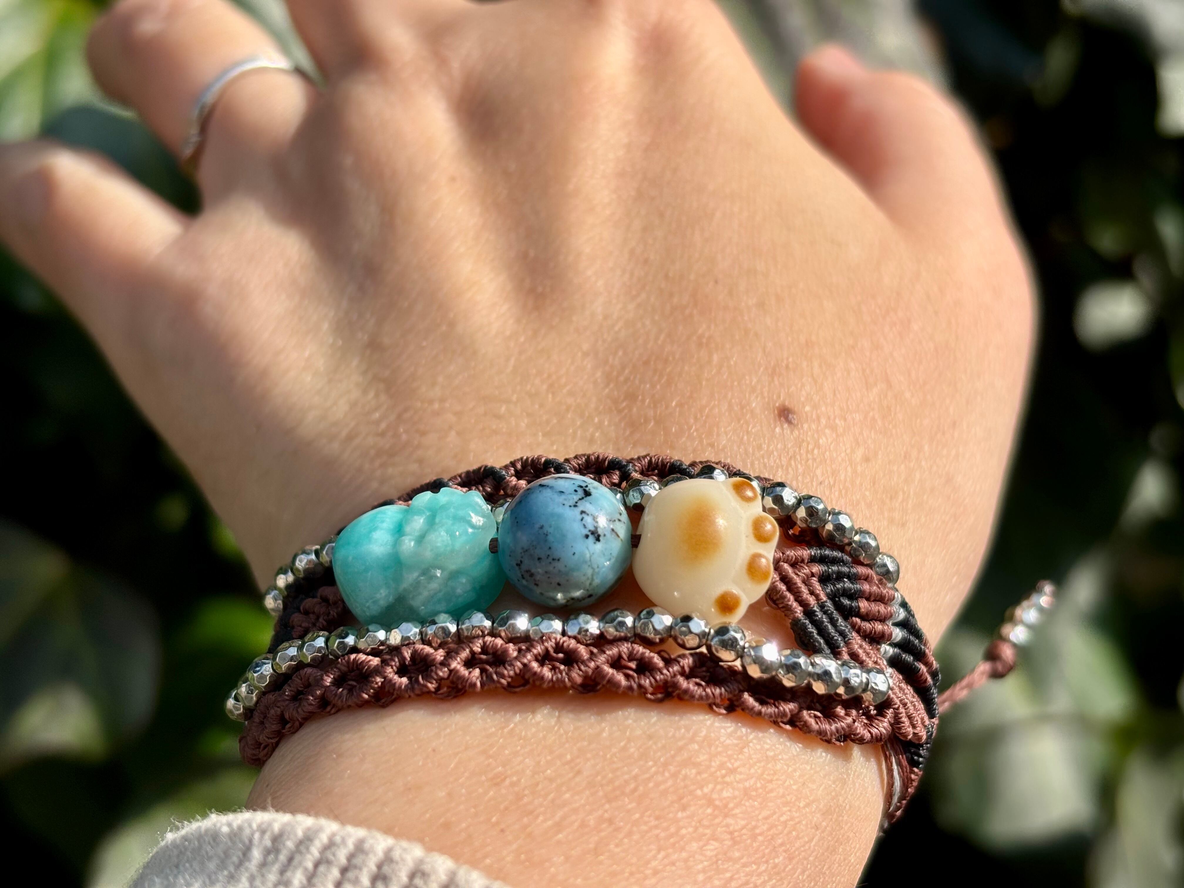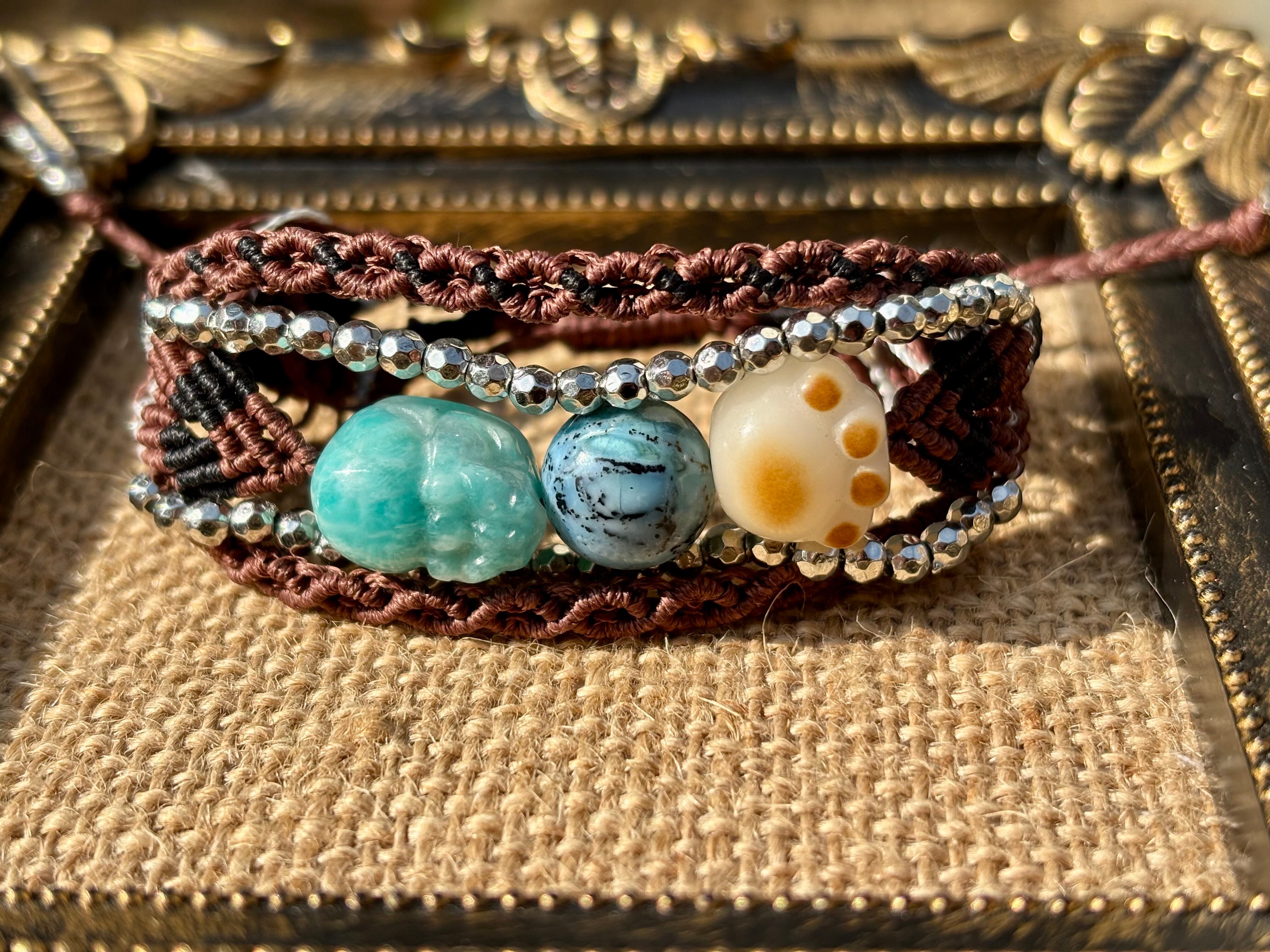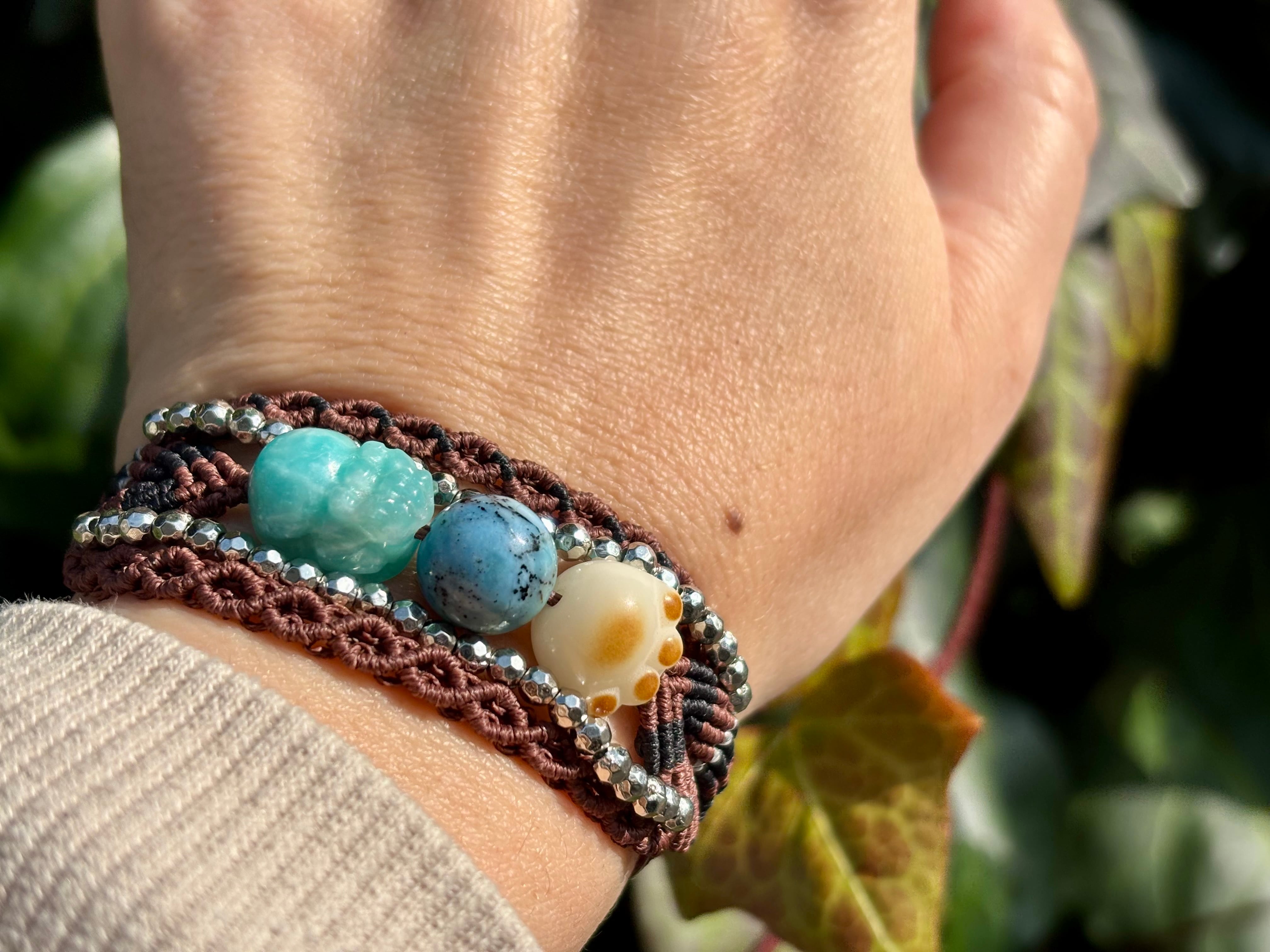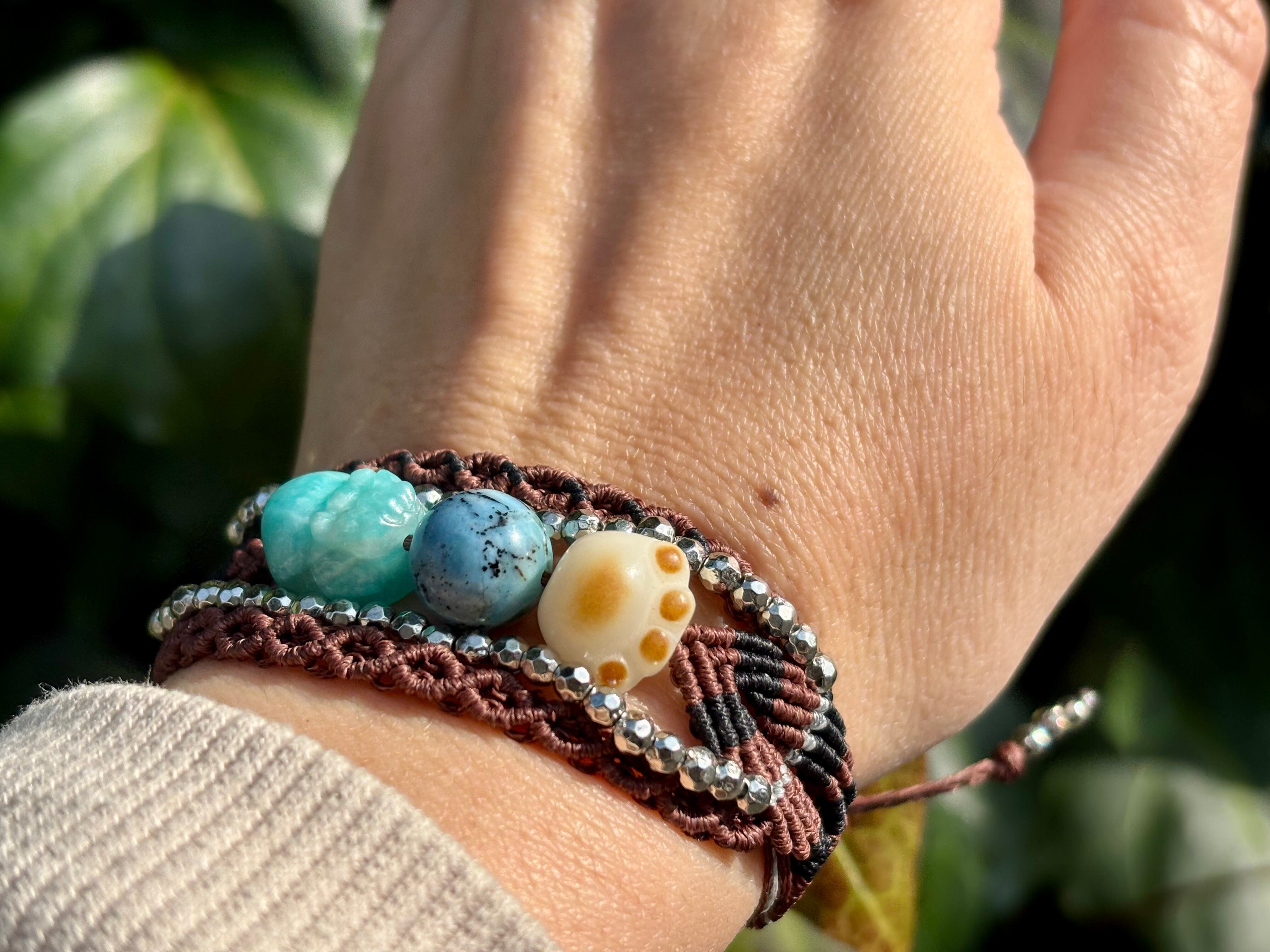 #981財運の神獣・貔貅一点物(アマゾナイトシリカ×スキャポライトインクリソコラ×菩提樹 マクラメ編みブレスレット)