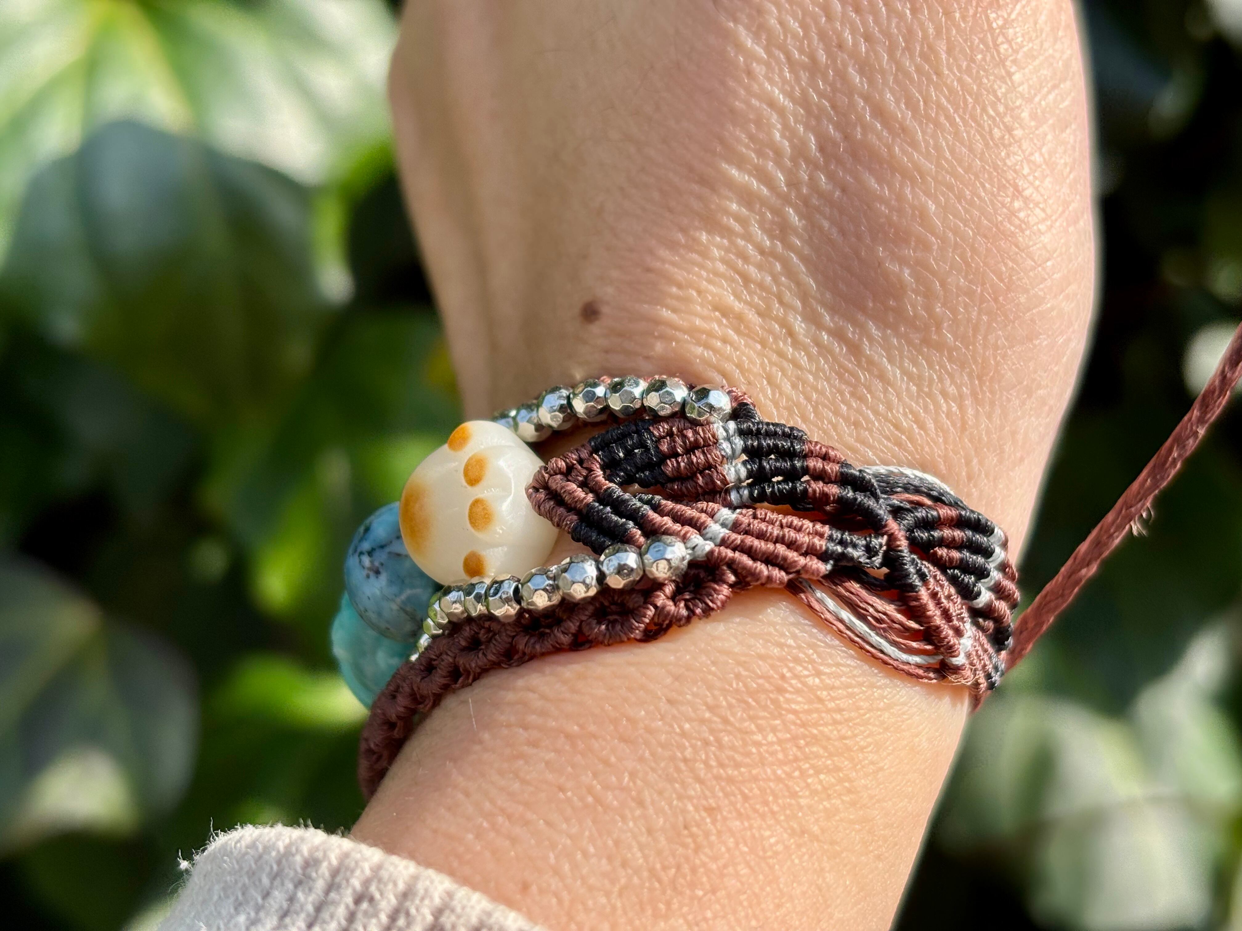 手作業で丁寧に編み込まれたこのブレスレットは、日常のコーディネートに華を添えるだけでなく、特別な場面でも存在感を発揮します。
