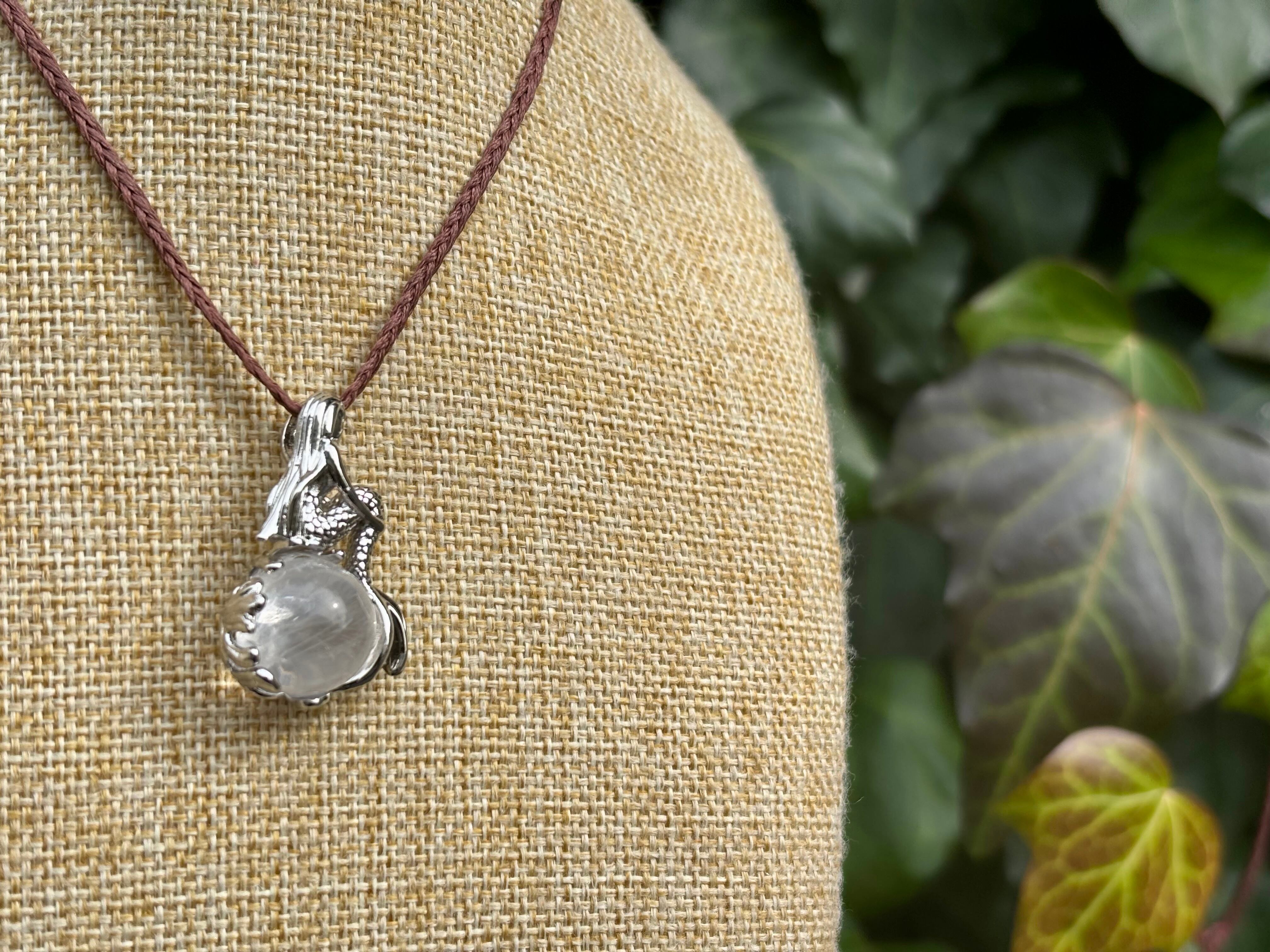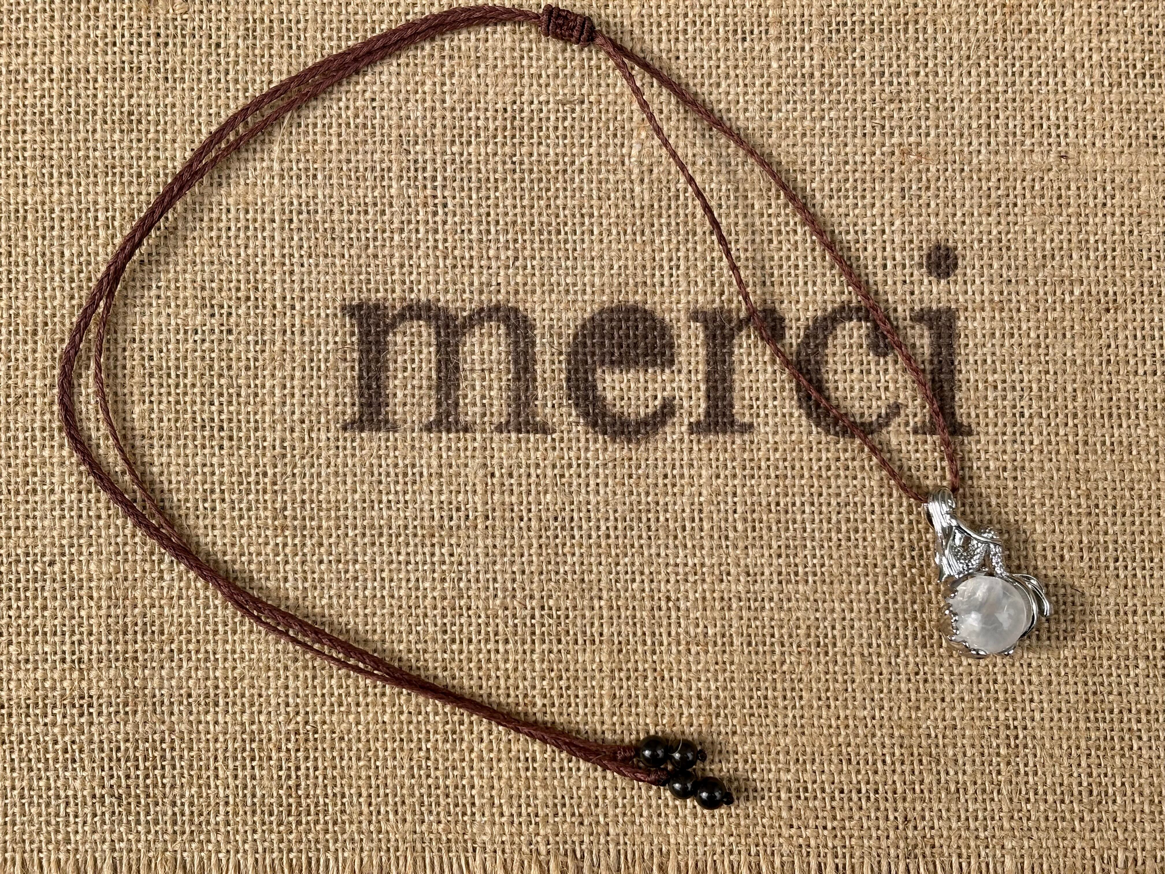 #985人魚姫♡虹入り水晶一点物(アイリスクォーツ×北投石 マクラメ編みデザインネックレス)