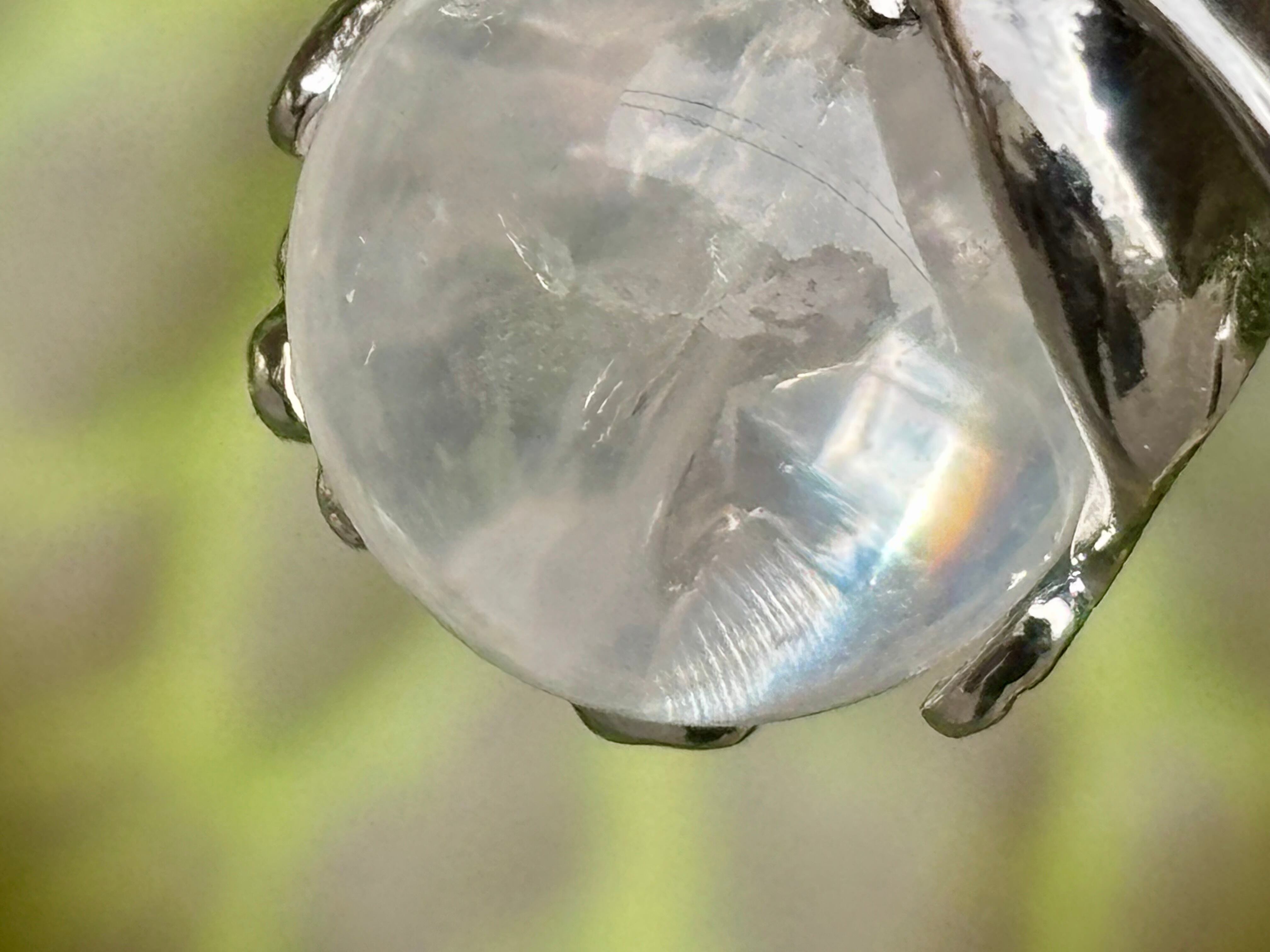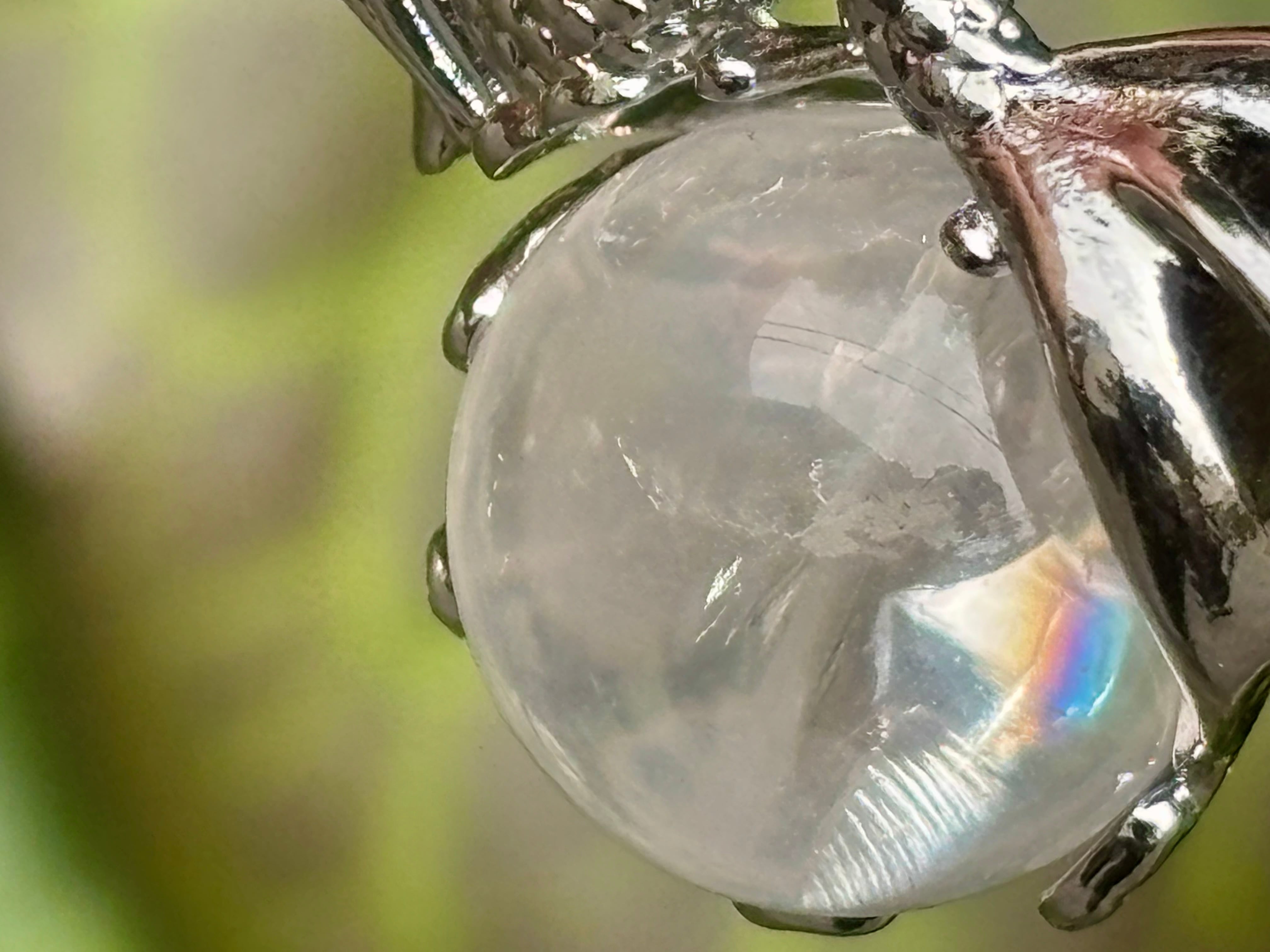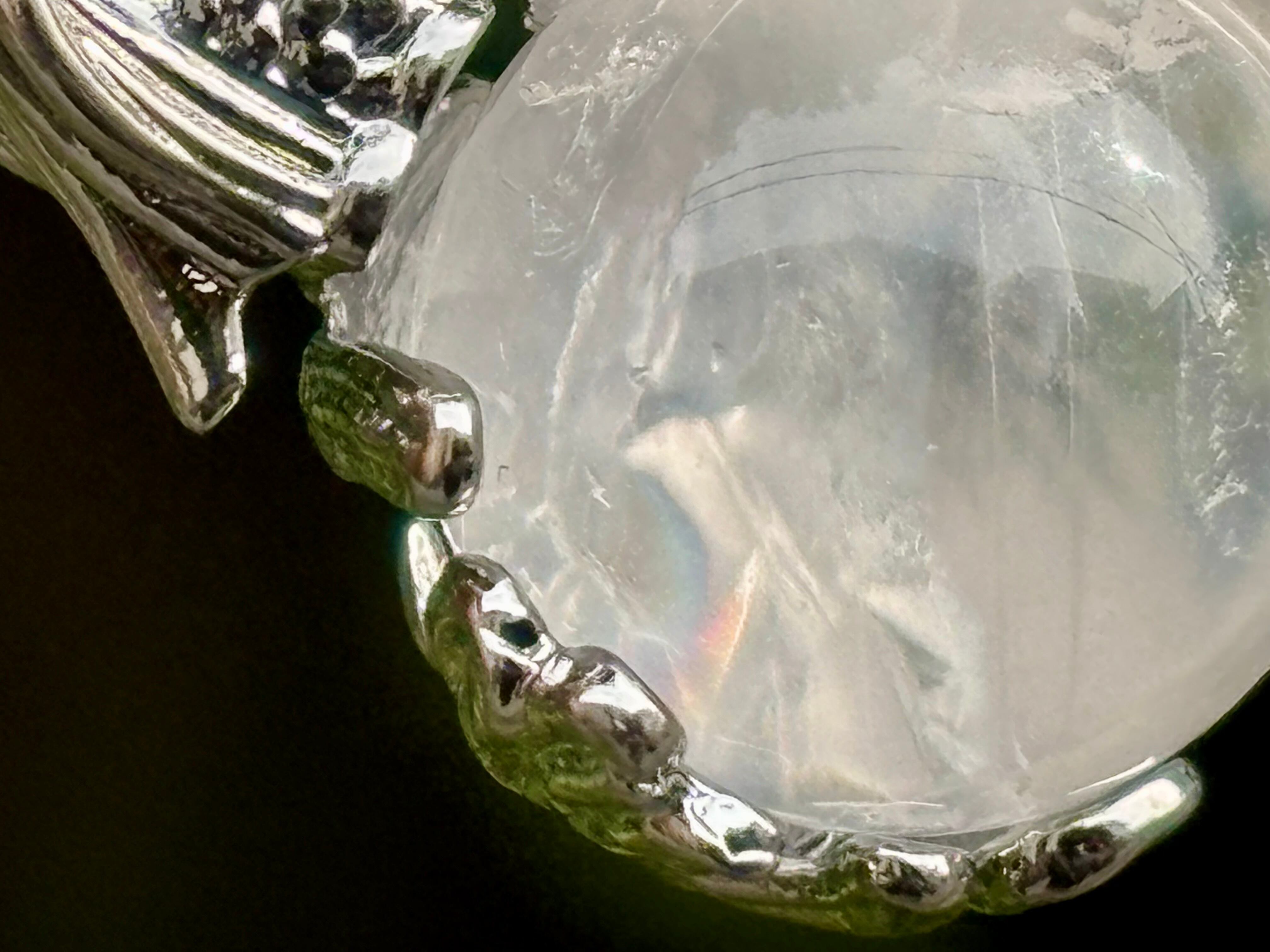 アイリスクォーツ(虹入り水晶)は、内部のクラック(亀裂)に虹色が出ているため、通常の水晶より物理的な衝撃に弱く、落としたりぶつけたりすると割れやすい傾向があります。