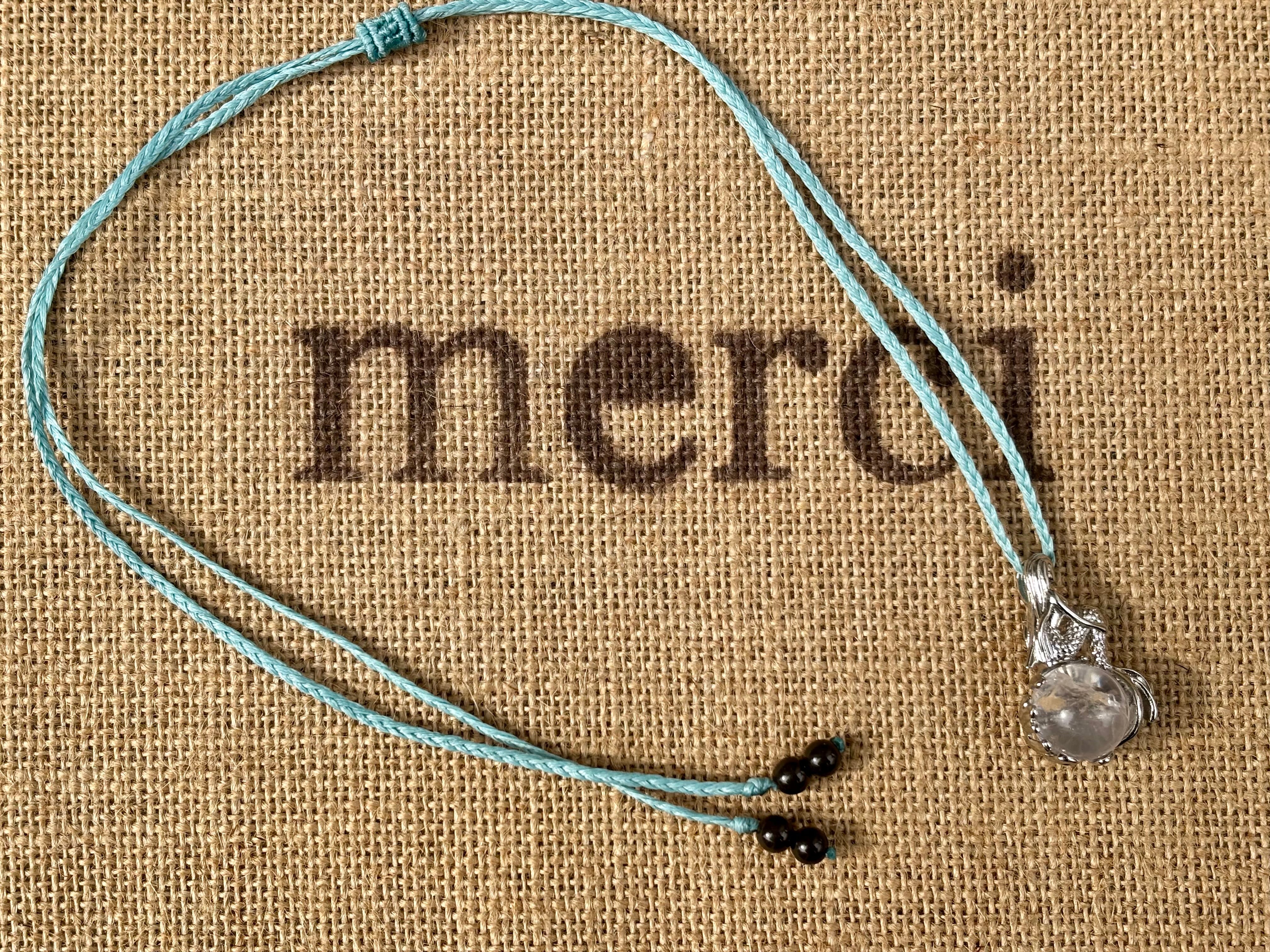 #986人魚姫♡虹入り水晶一点物(アイリスクォーツ×北投石 マクラメ編みデザインネックレス)