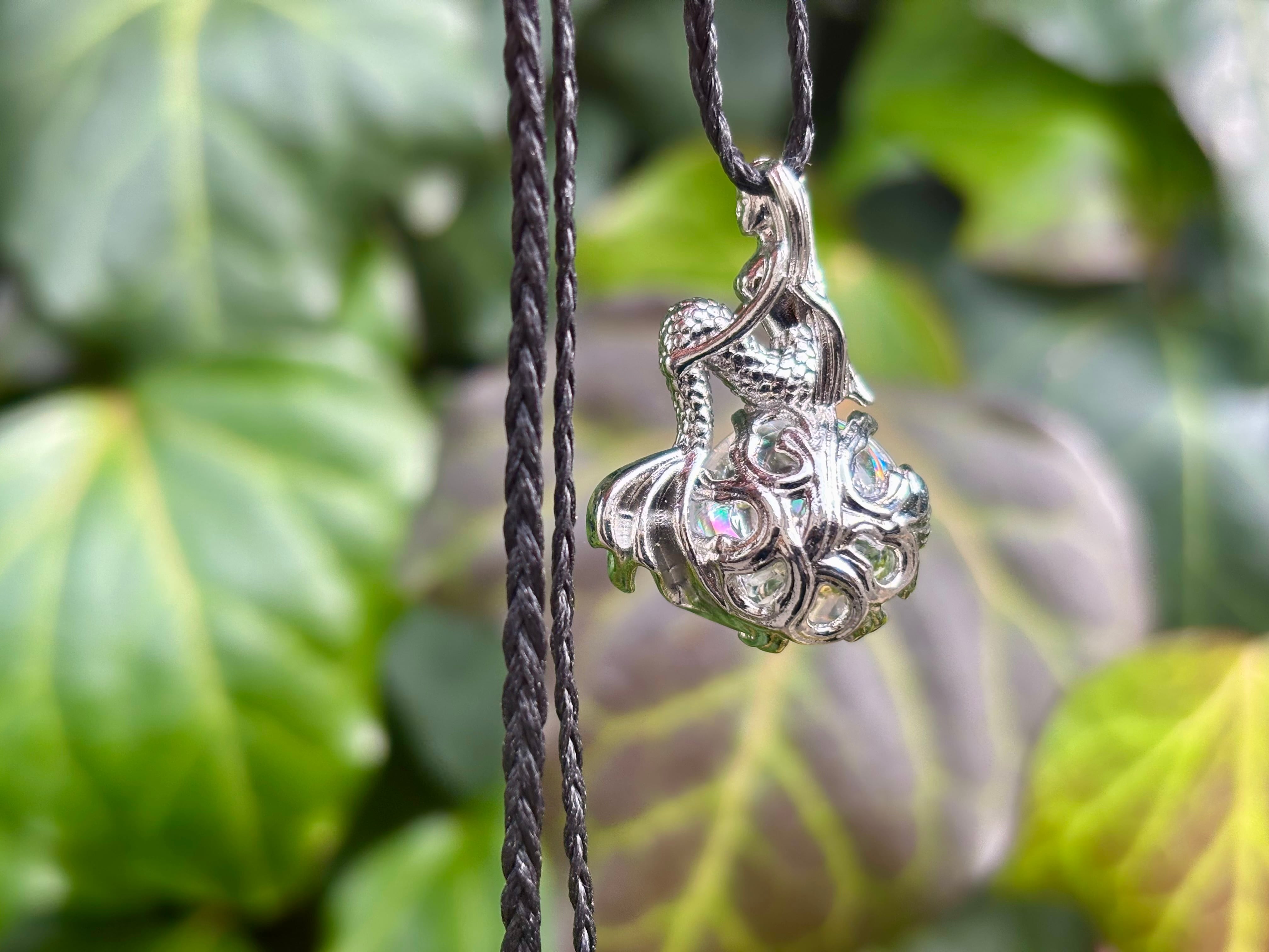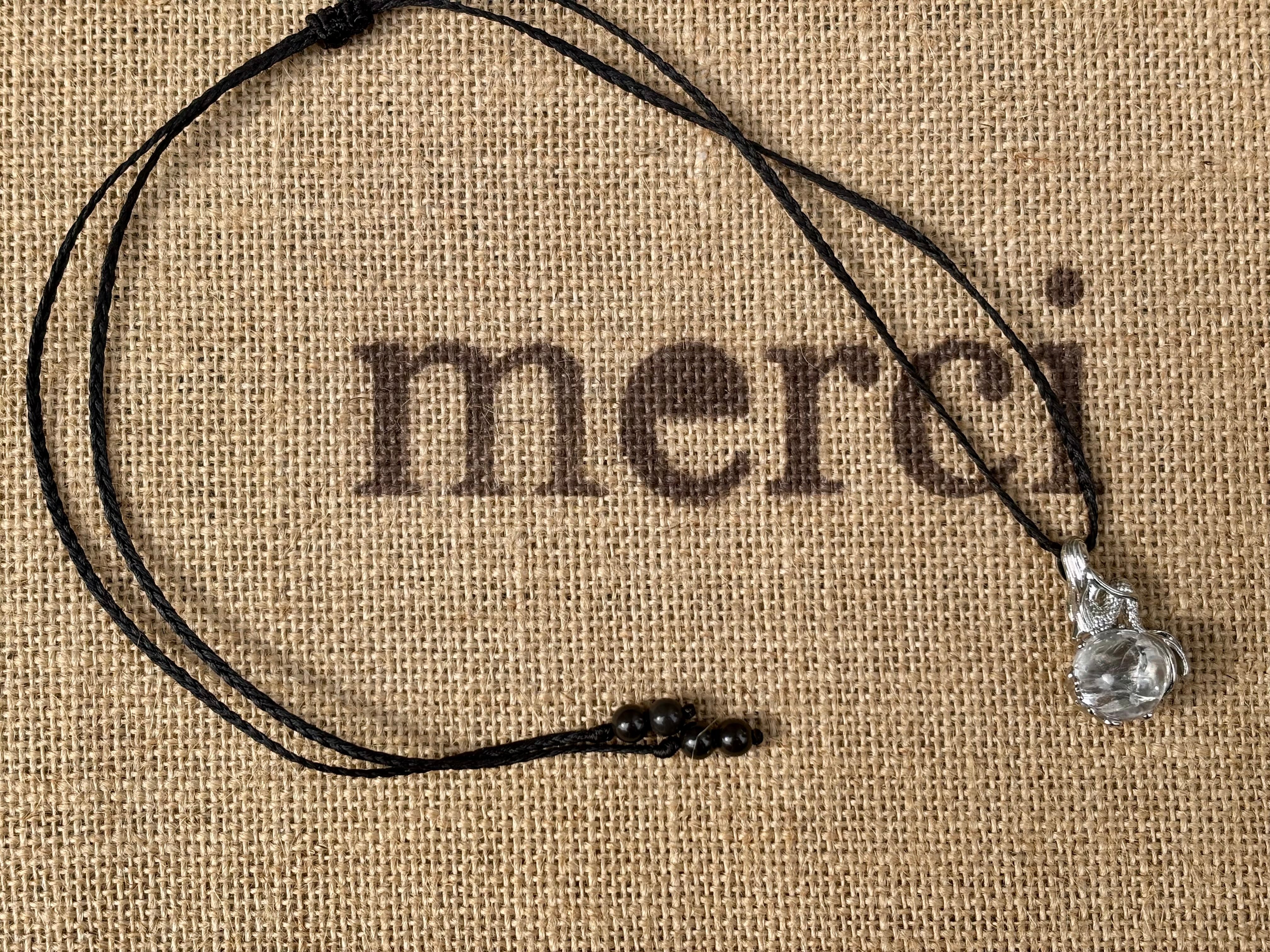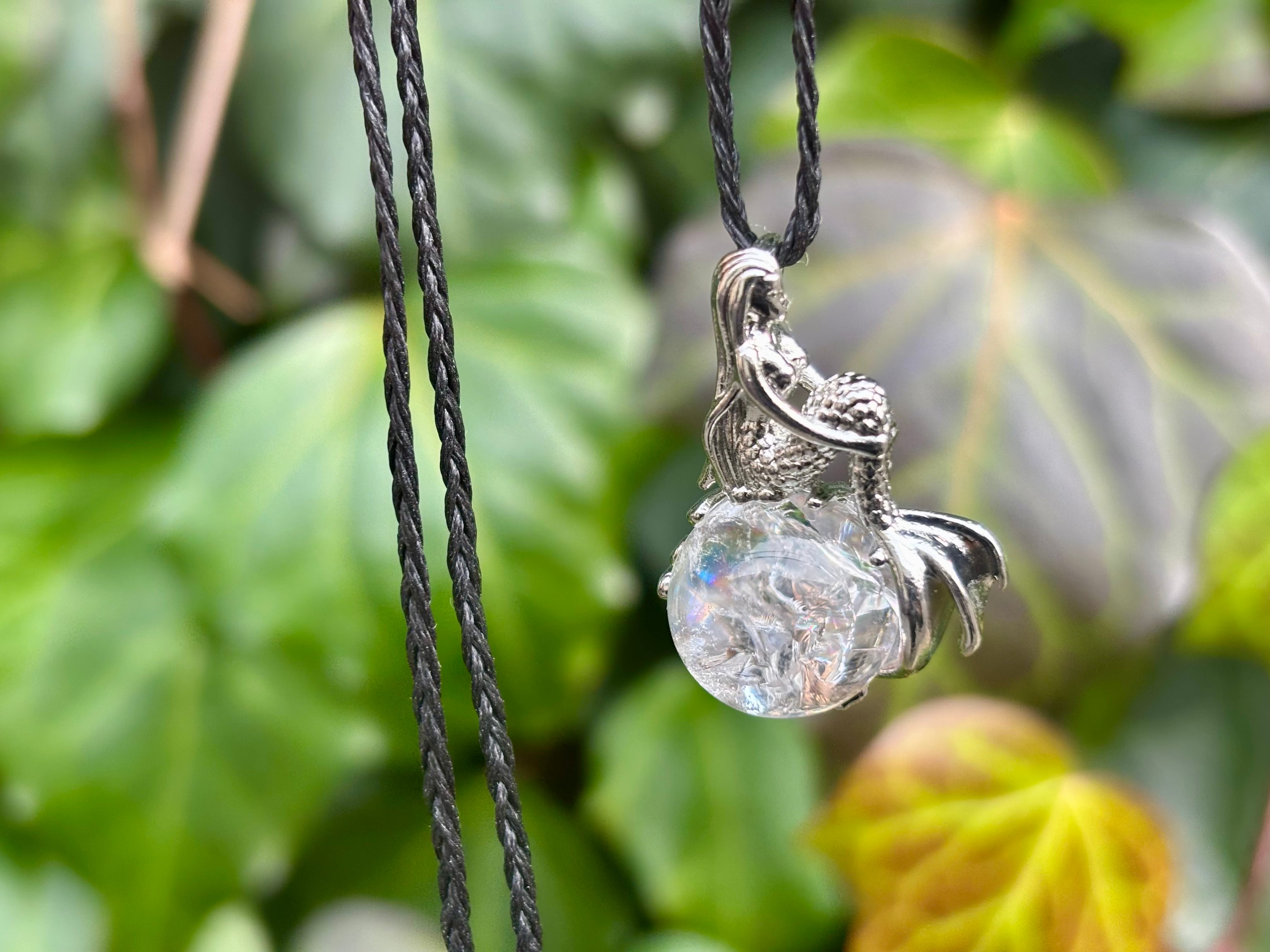 #987人魚姫♡虹入り水晶一点物(アイリスクォーツ×北投石 マクラメ編みデザインネックレス)