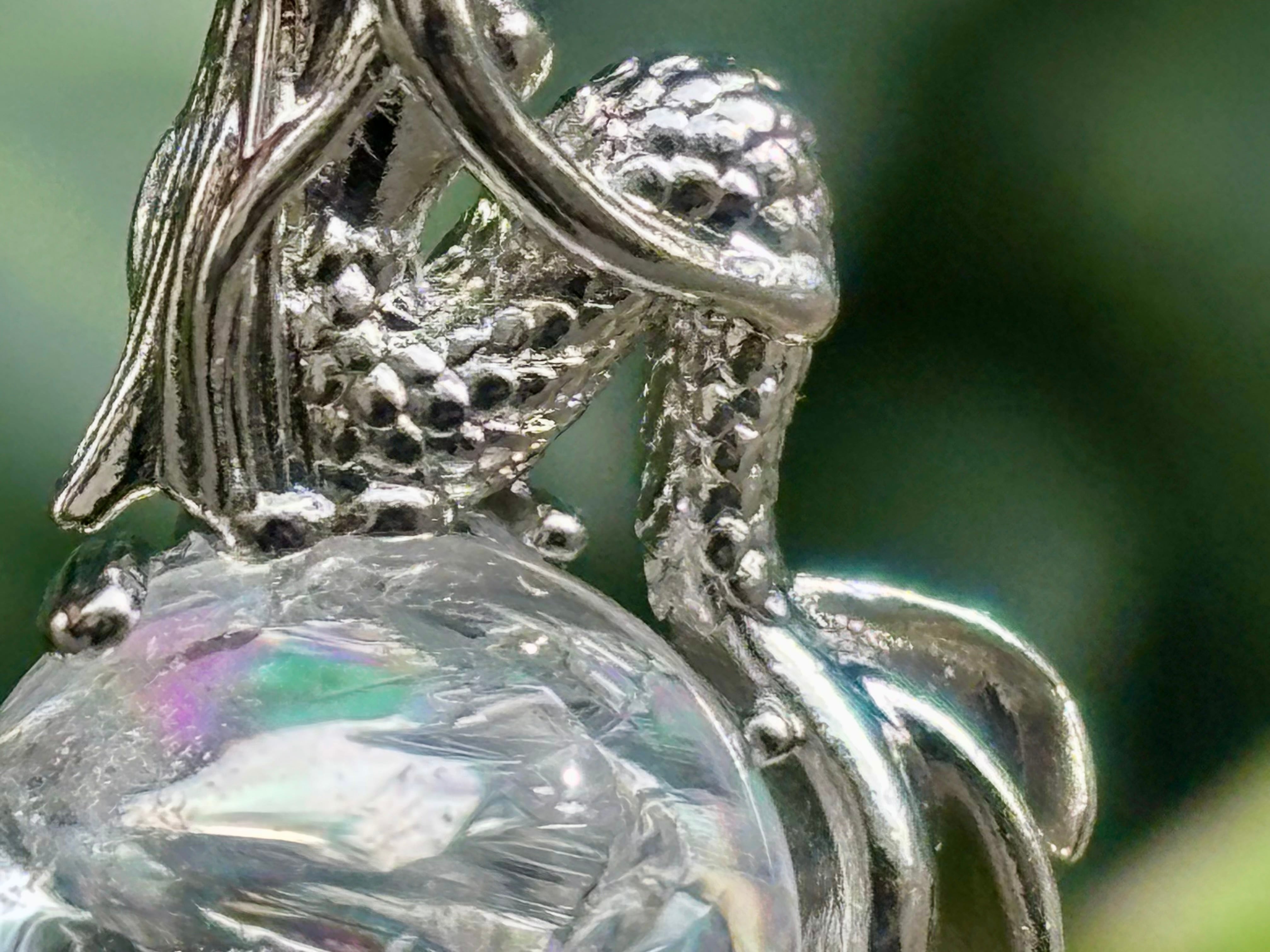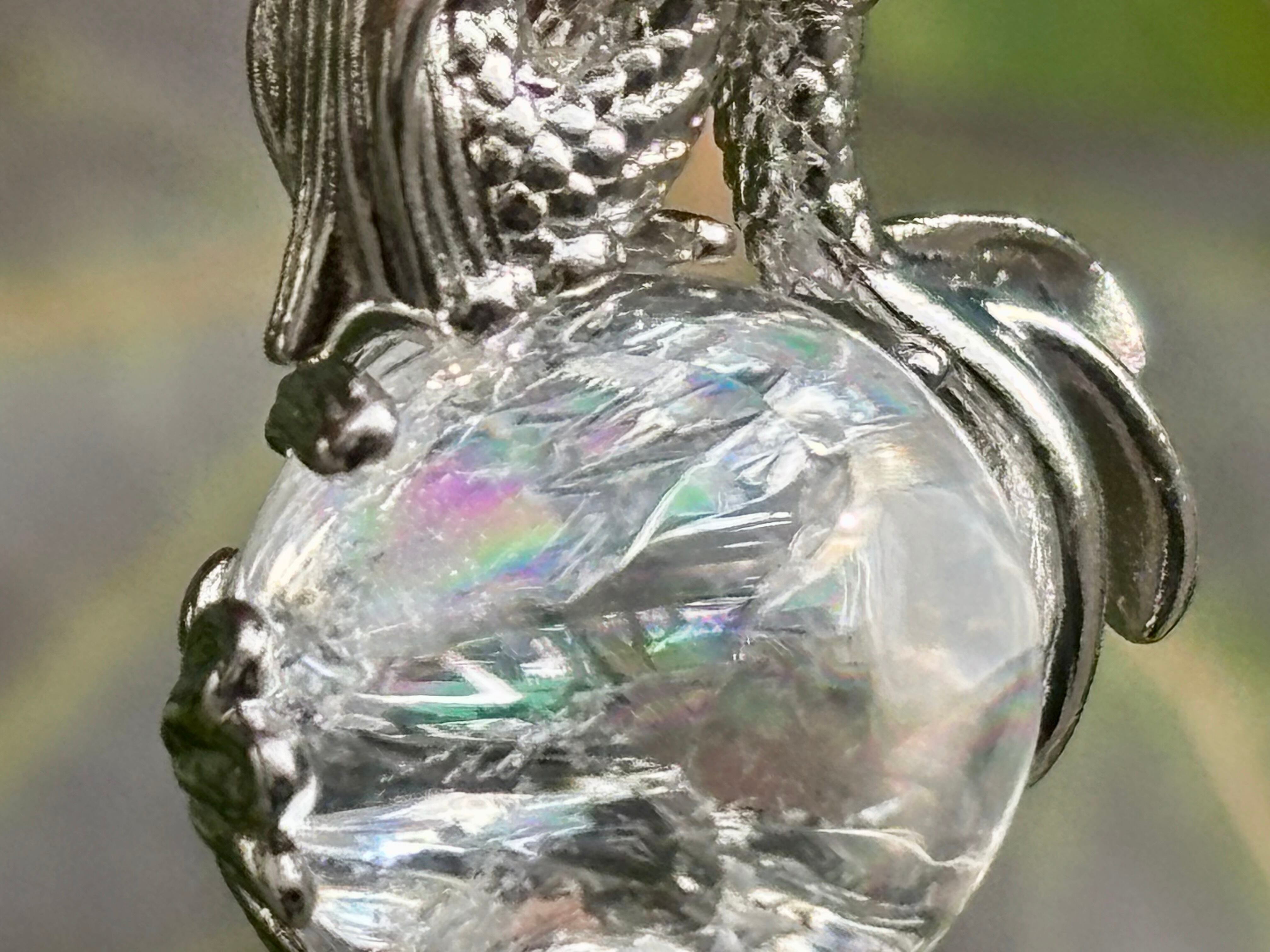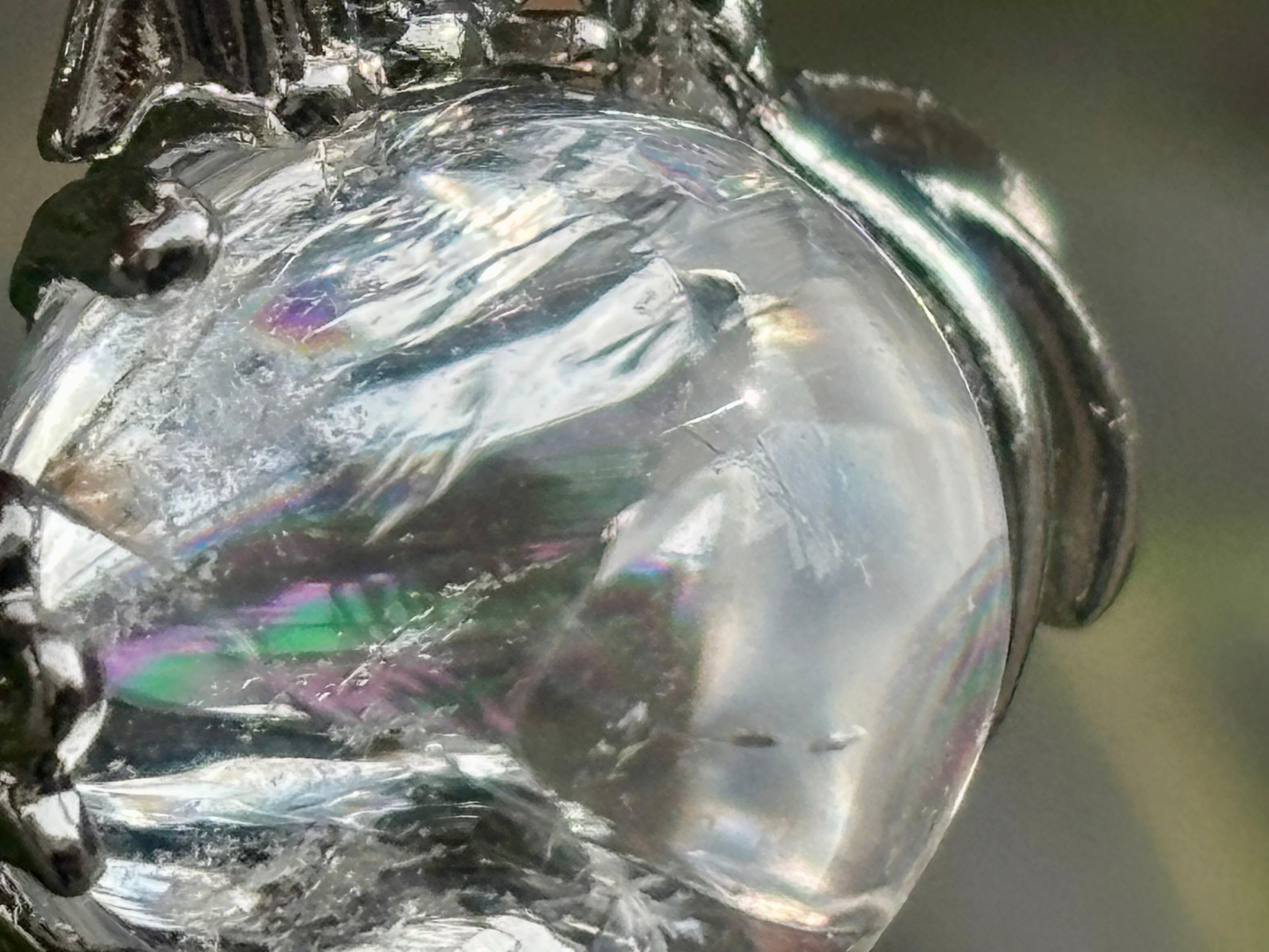 アイリスクォーツ(虹入り水晶)は、内部のクラック(亀裂)に虹色が出ているため、通常の水晶より物理的な衝撃に弱く、落としたりぶつけたりすると割れやすい傾向があります。