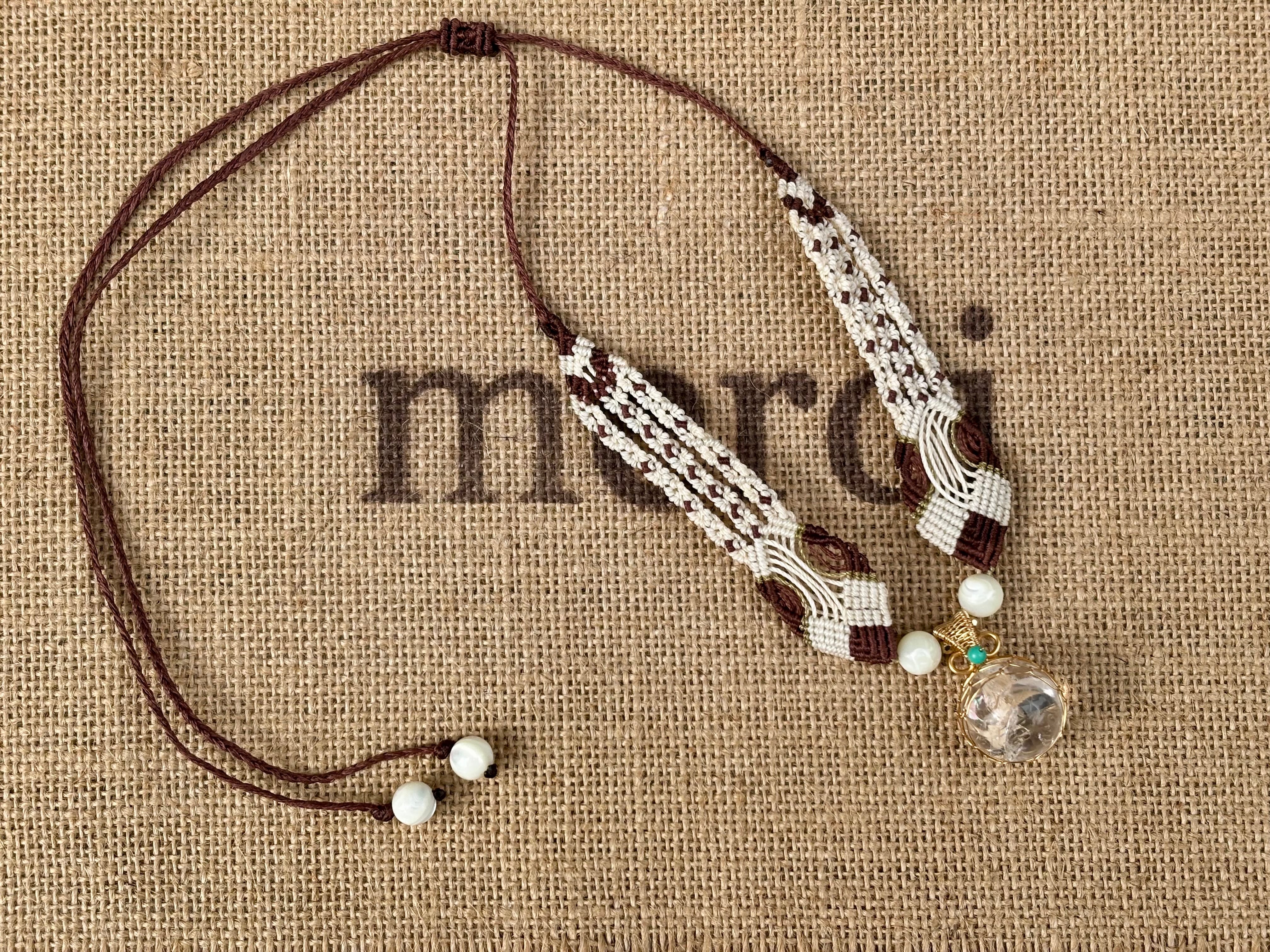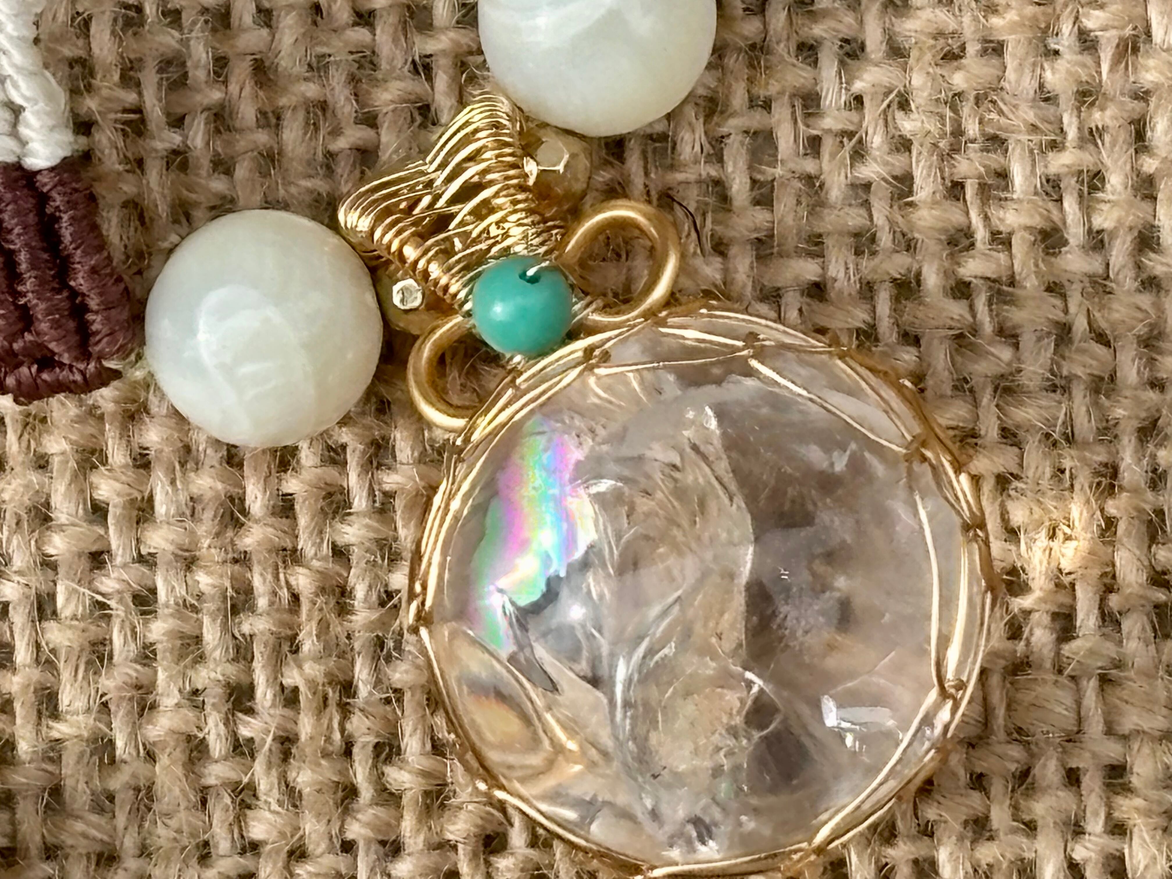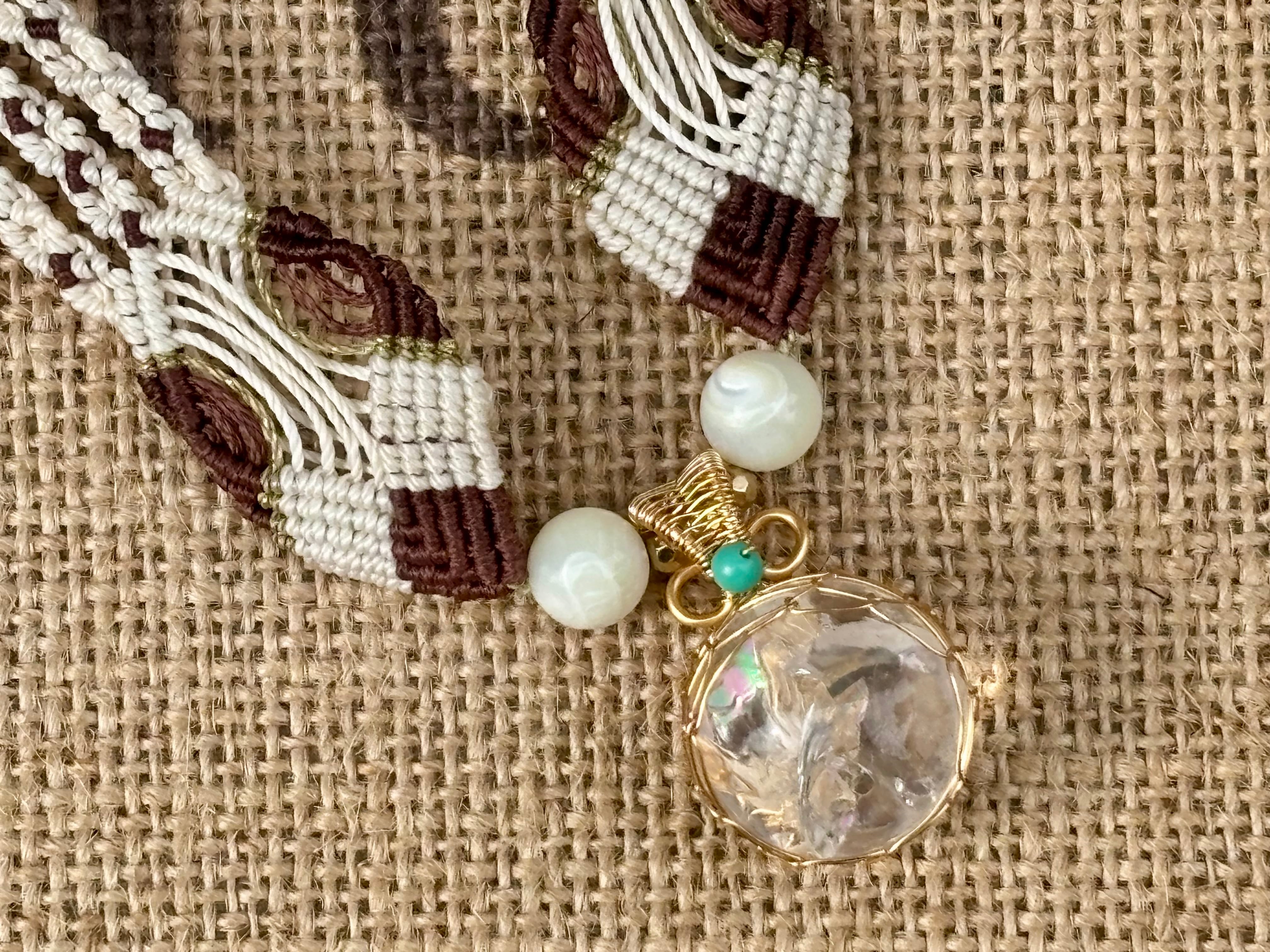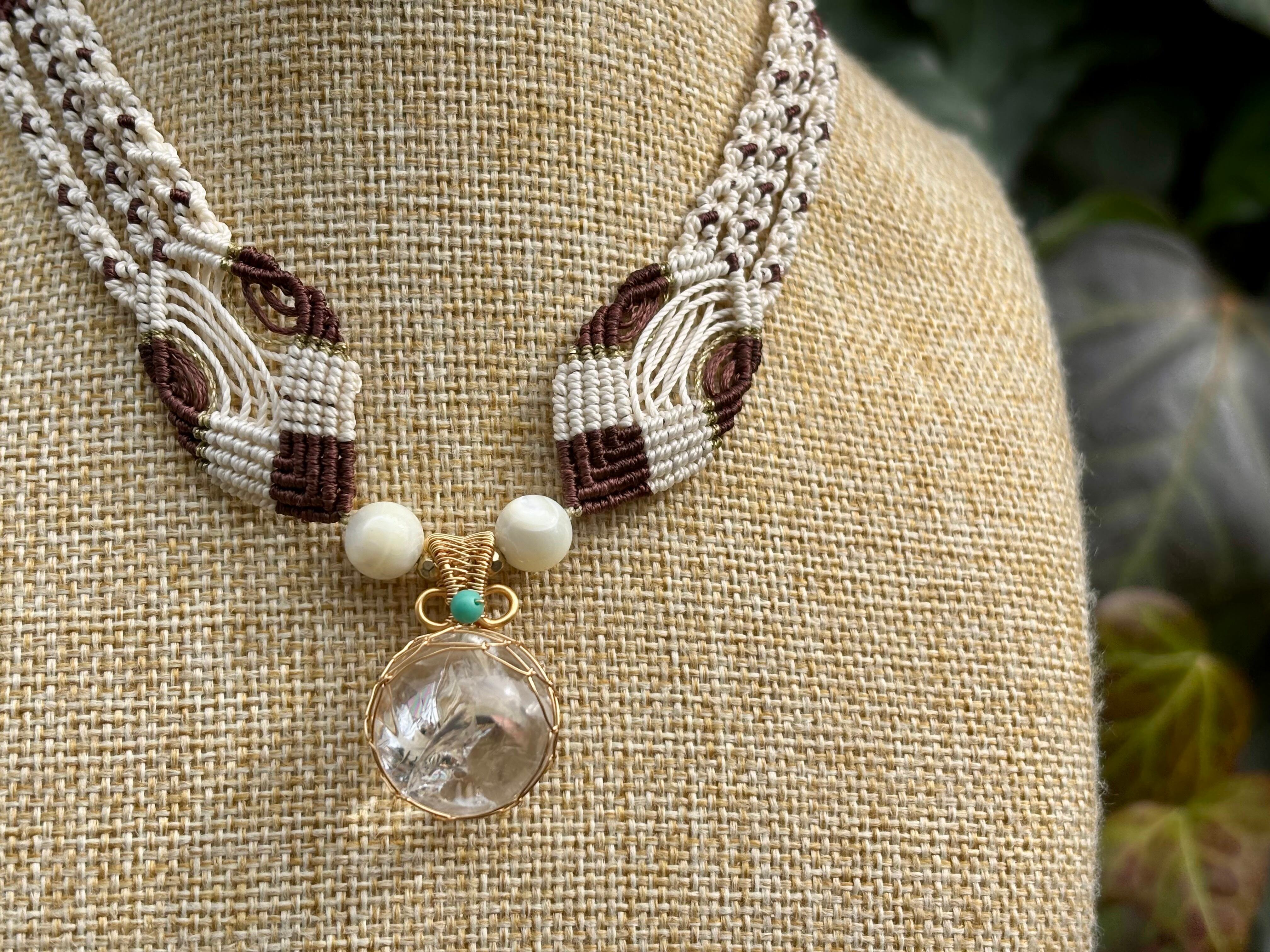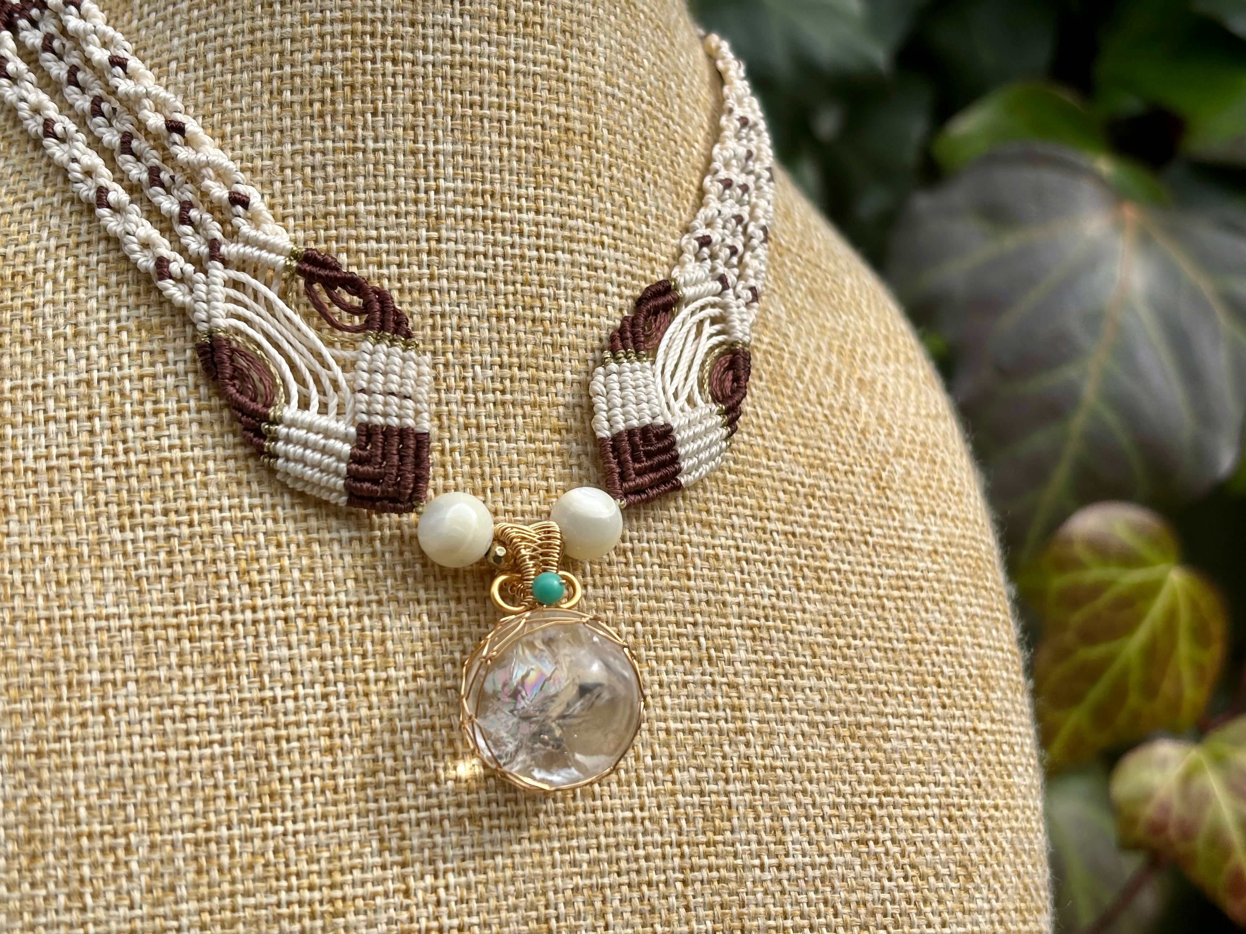 #989高品質アイリスクォーツ一点物(アイリスクォーツ×マザーオブパール マクラメ編みデザインネックレス)