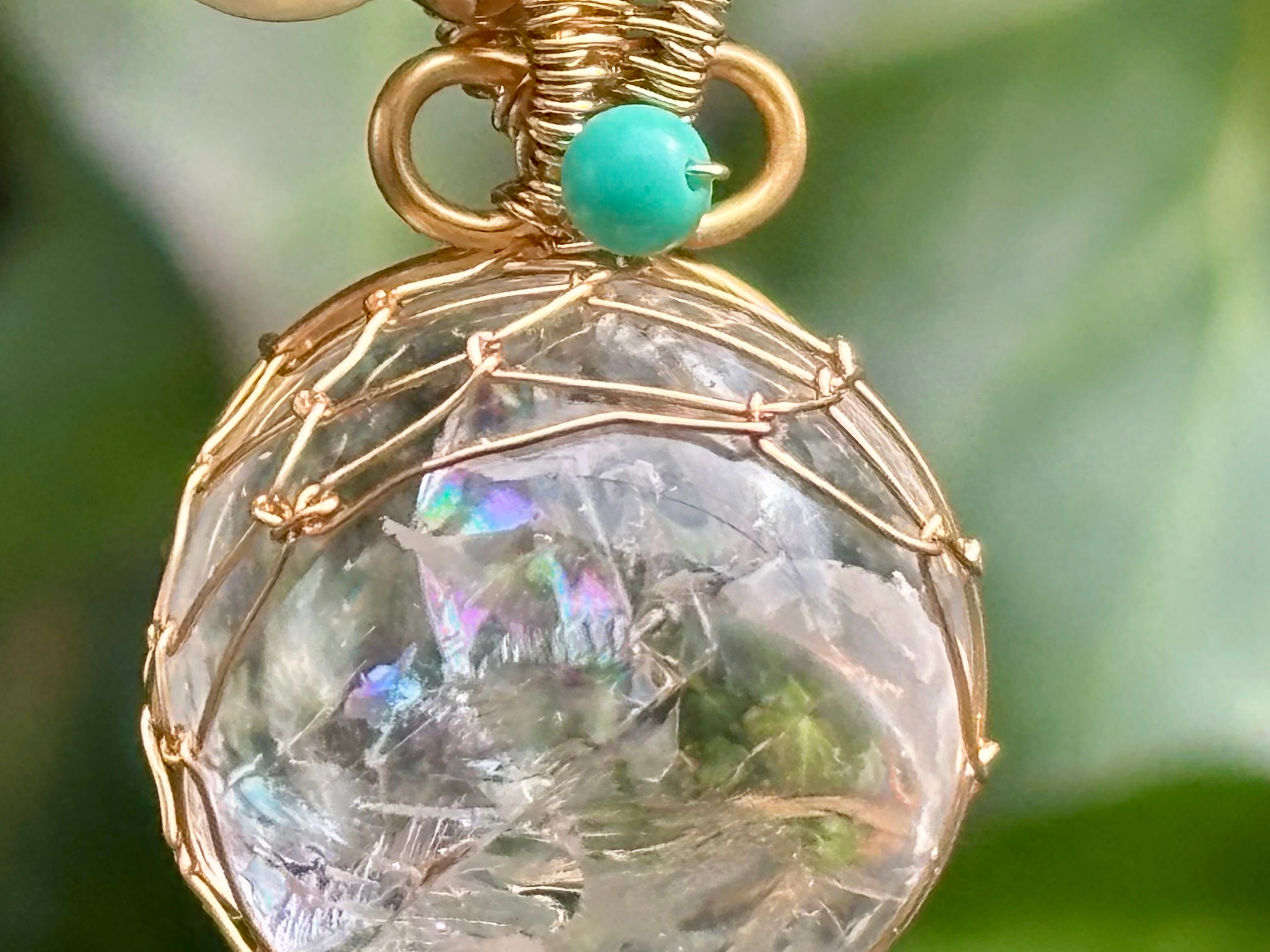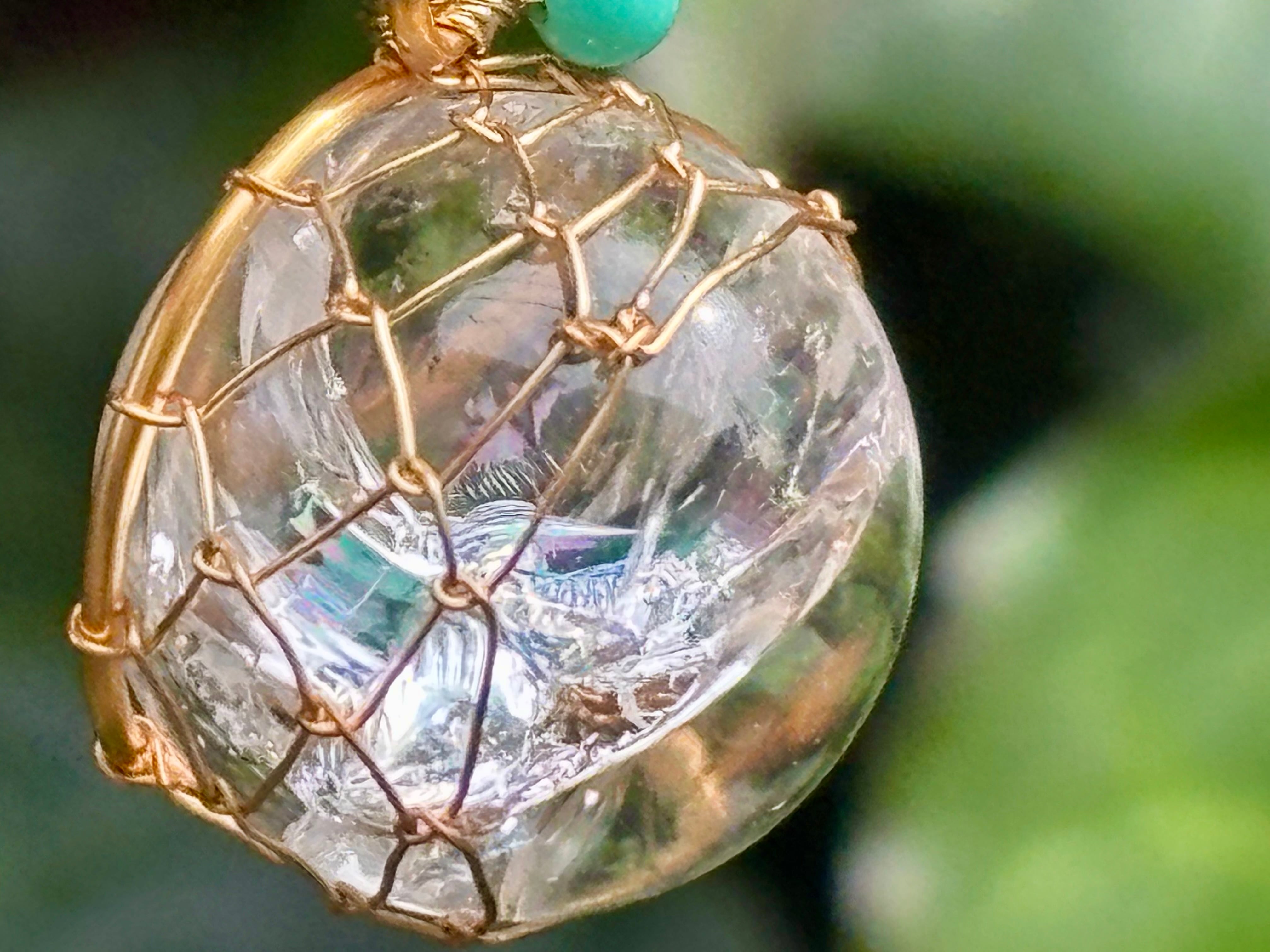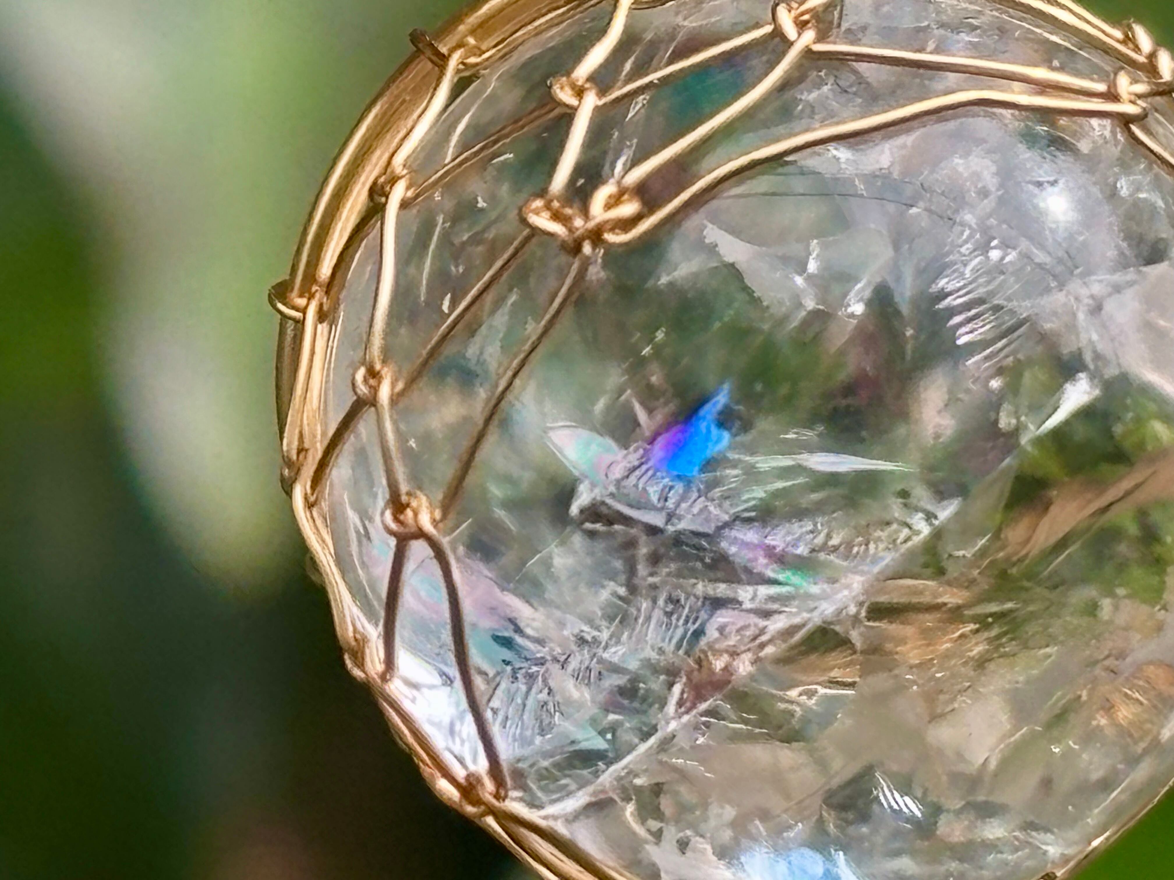 アイリスクォーツ(虹入り水晶)は、内部のクラック(亀裂)に虹色が出ているため、通常の水晶より物理的な衝撃に弱く、落としたりぶつけたりすると割れやすい傾向があります。
