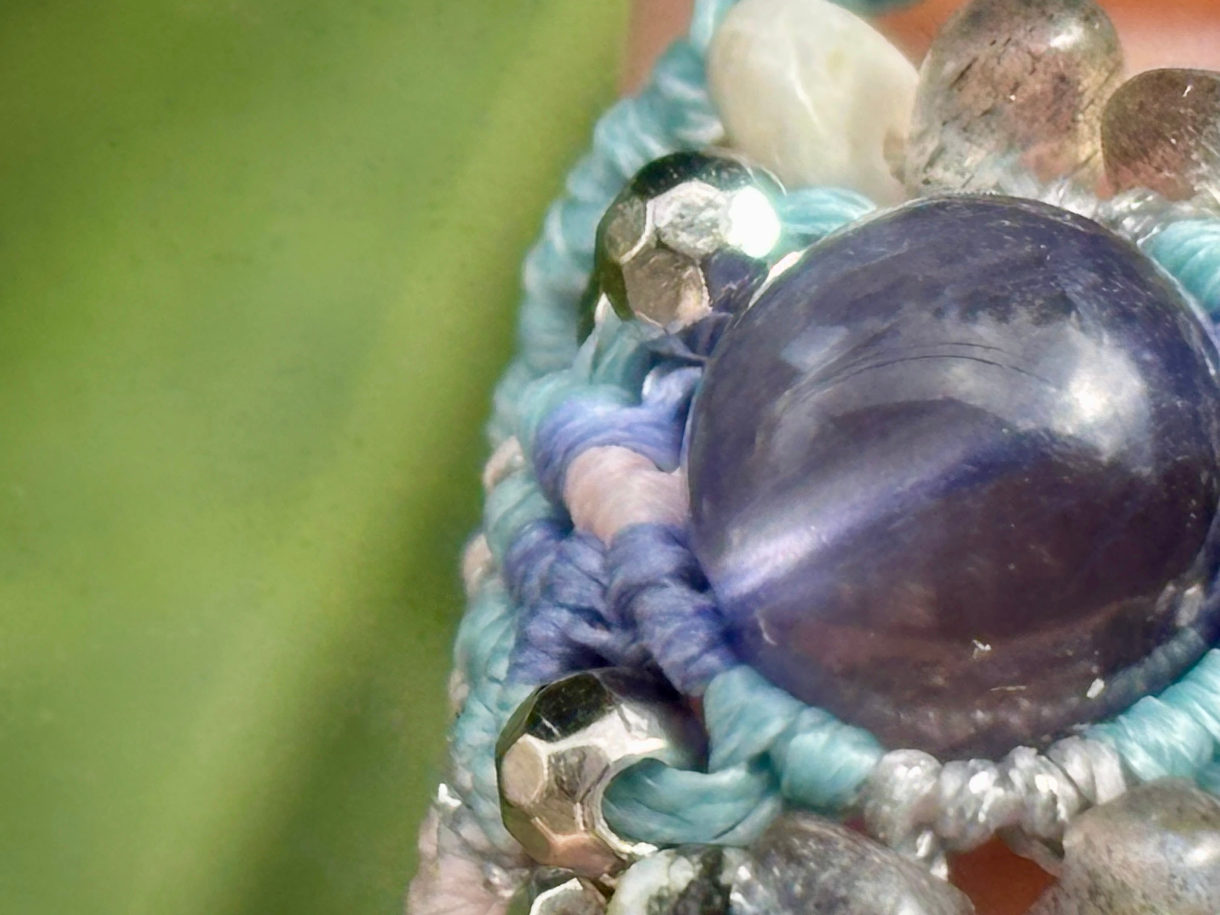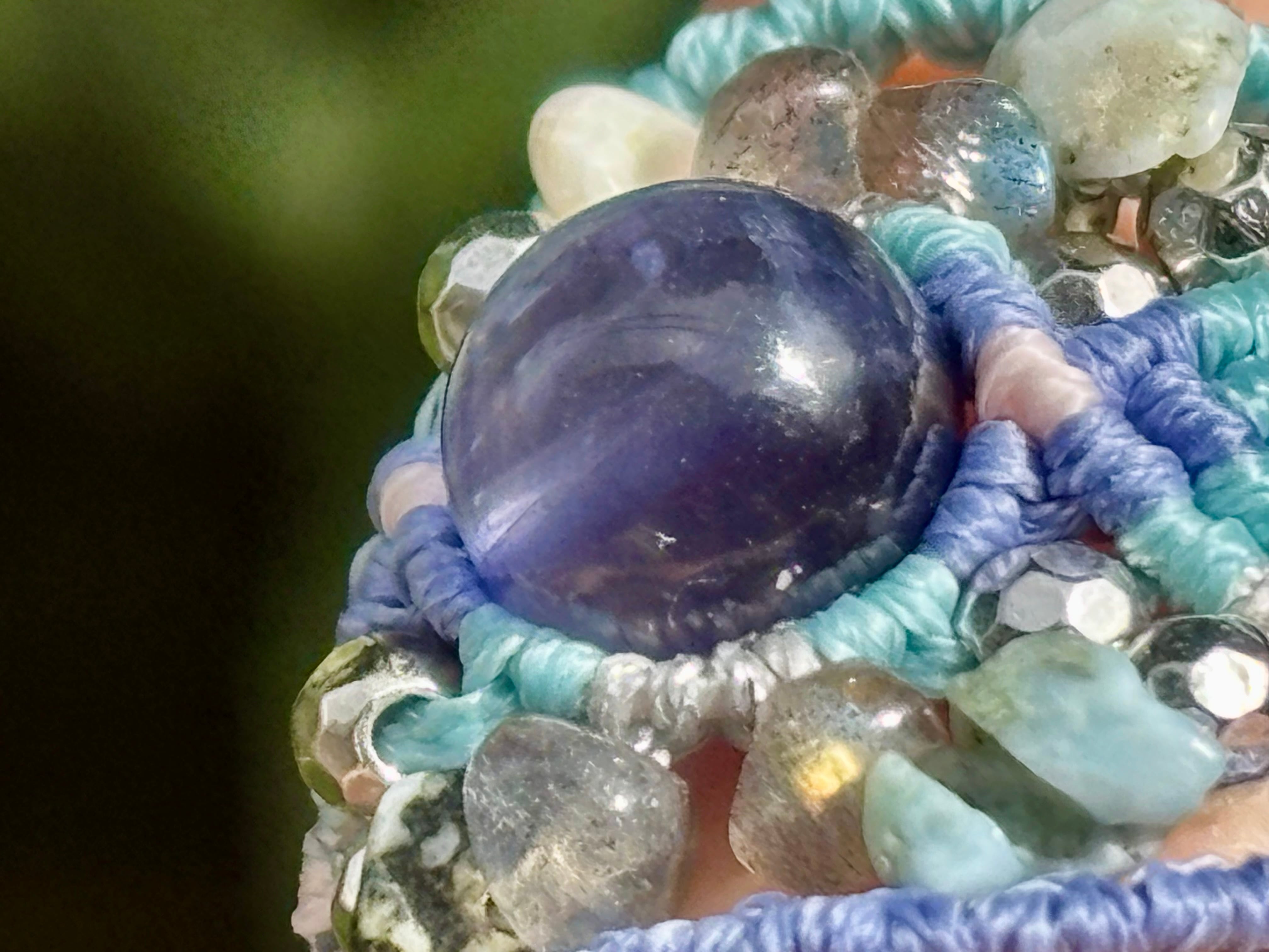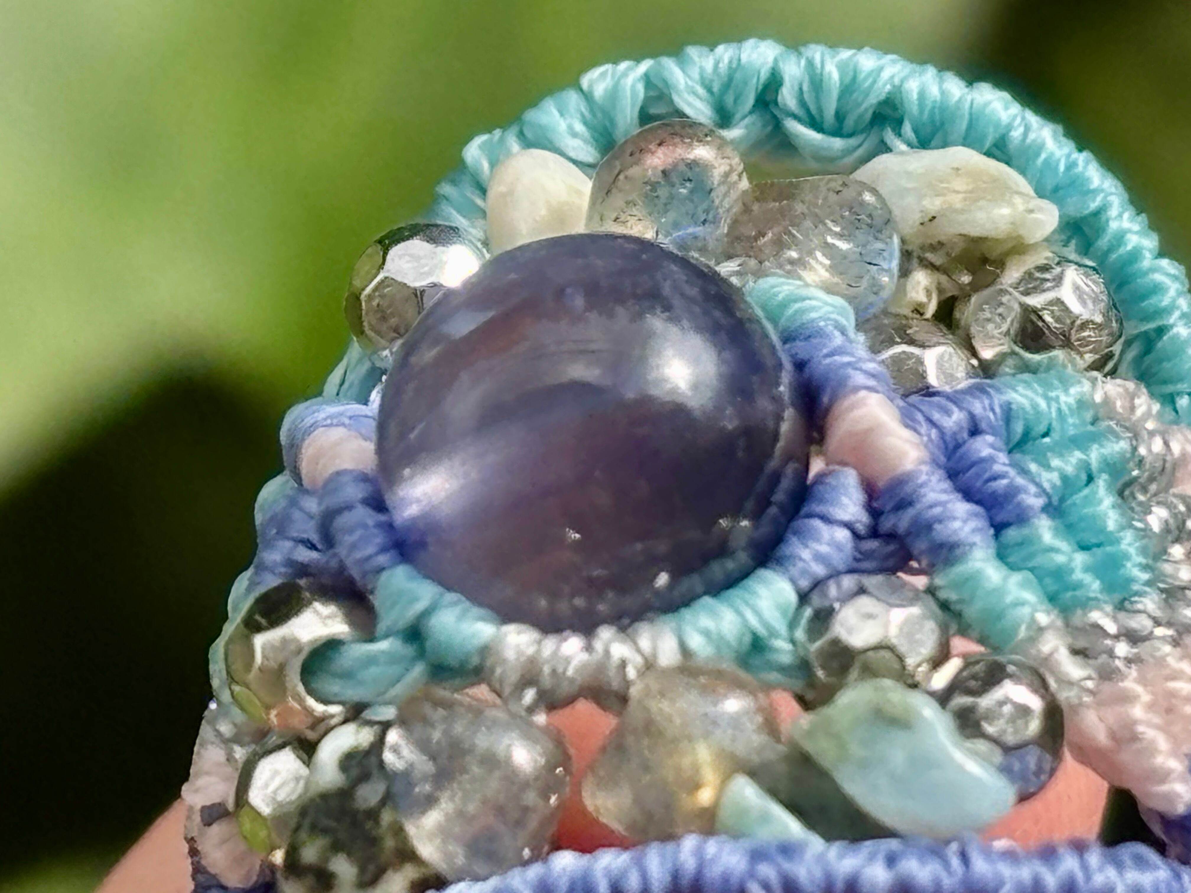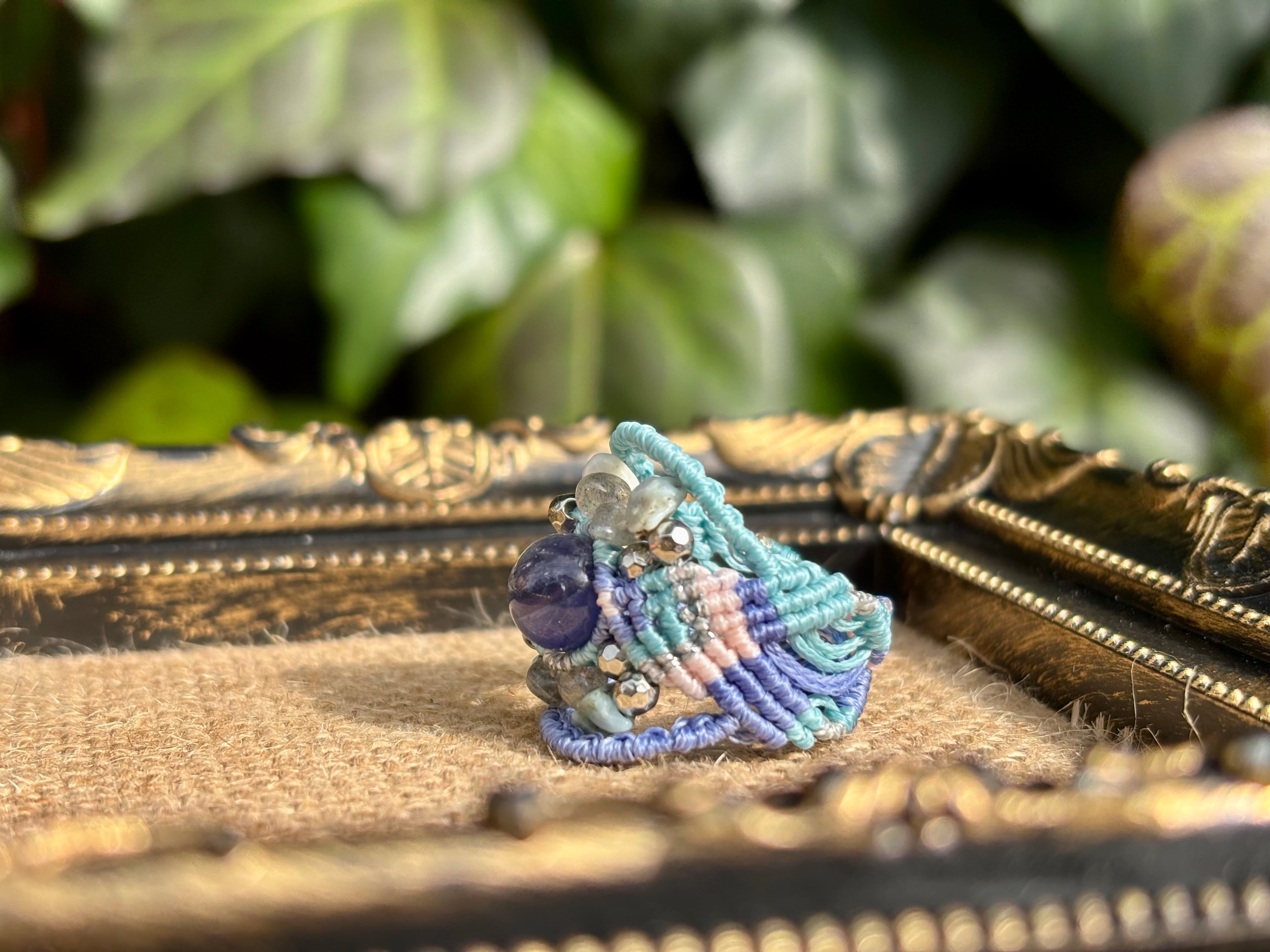 #992高評価4Aアイオライト一点物(アイオライト×ラブラドライト×ラリマー マクラメ編みリング/指輪)