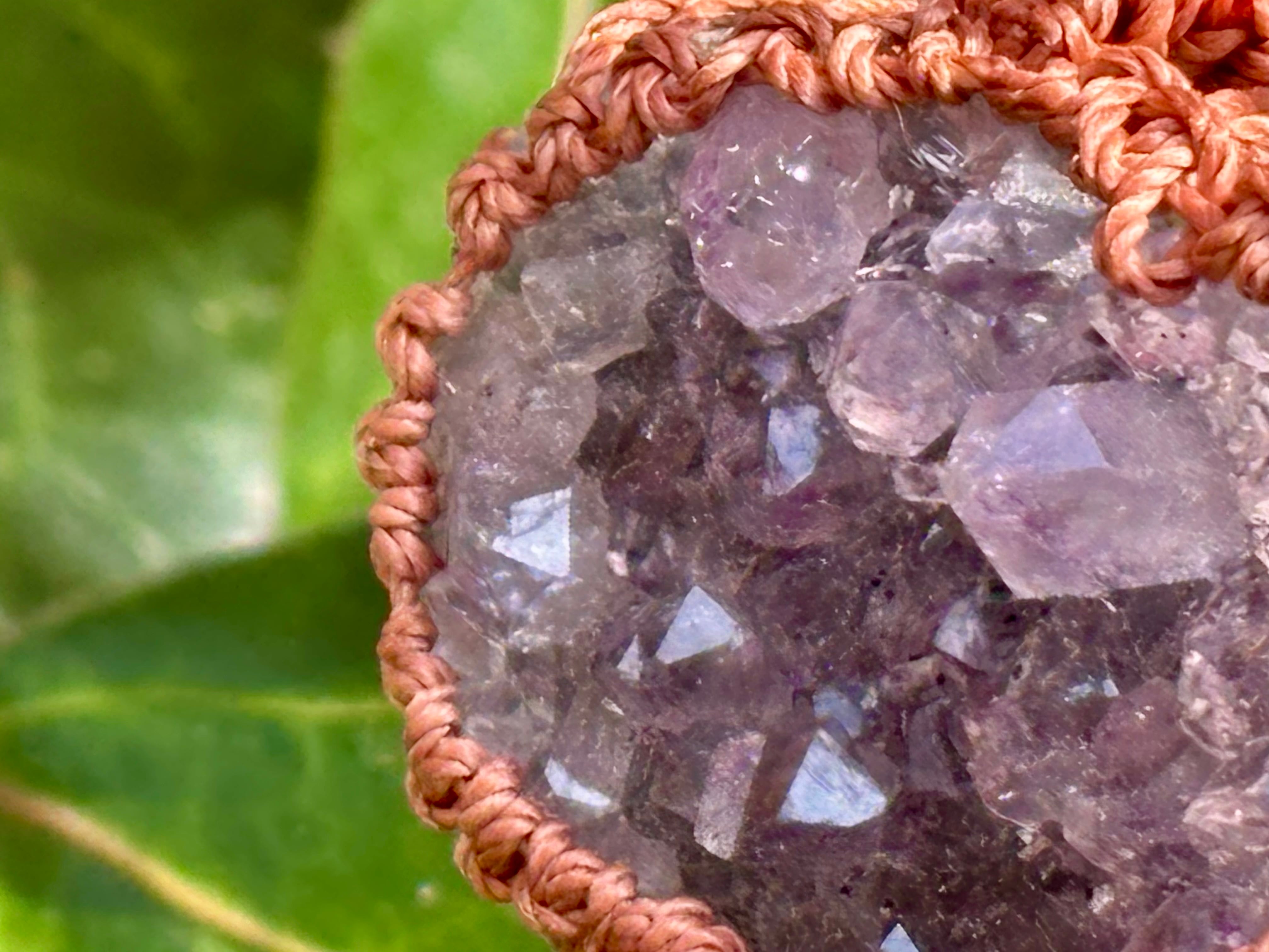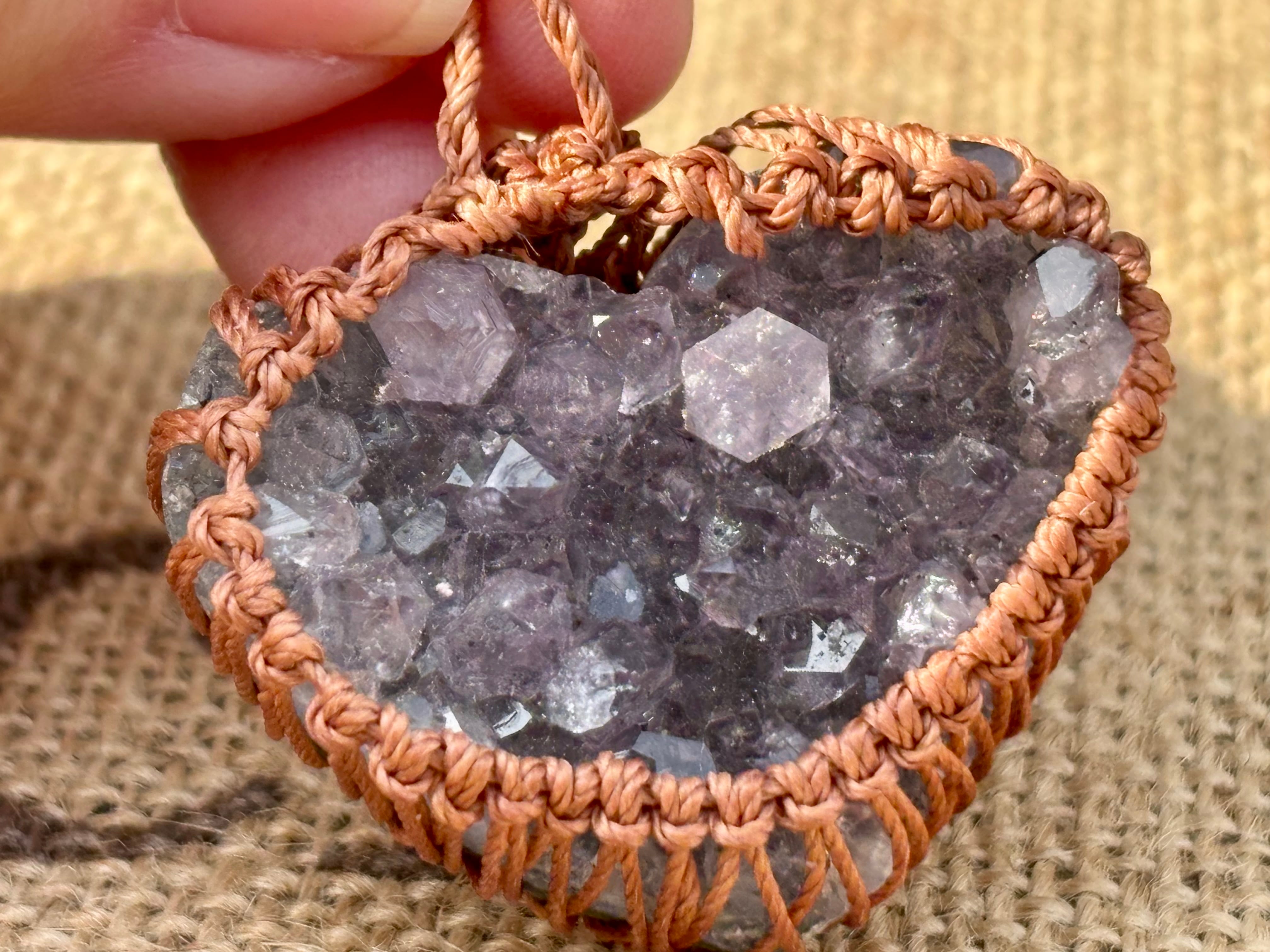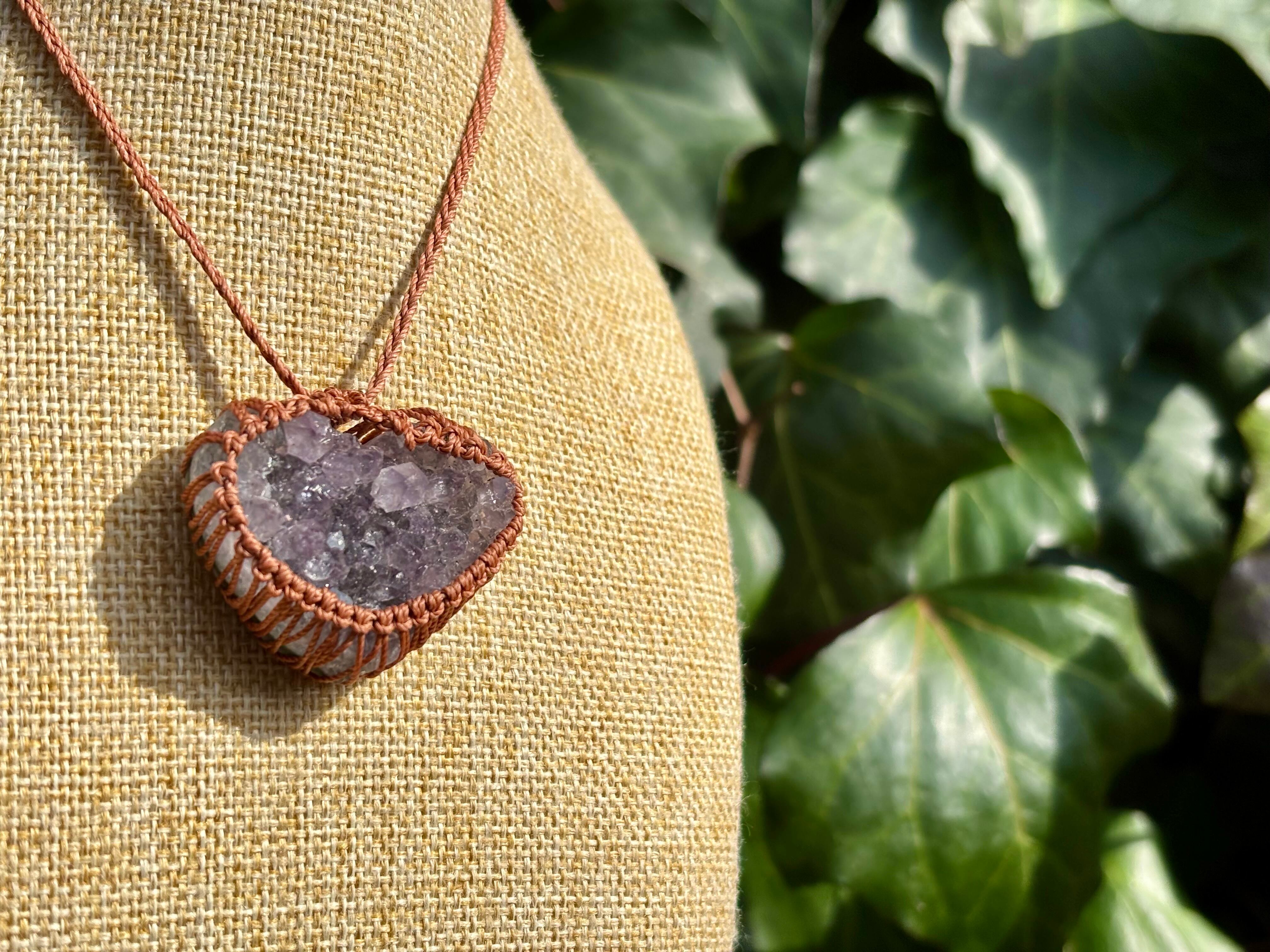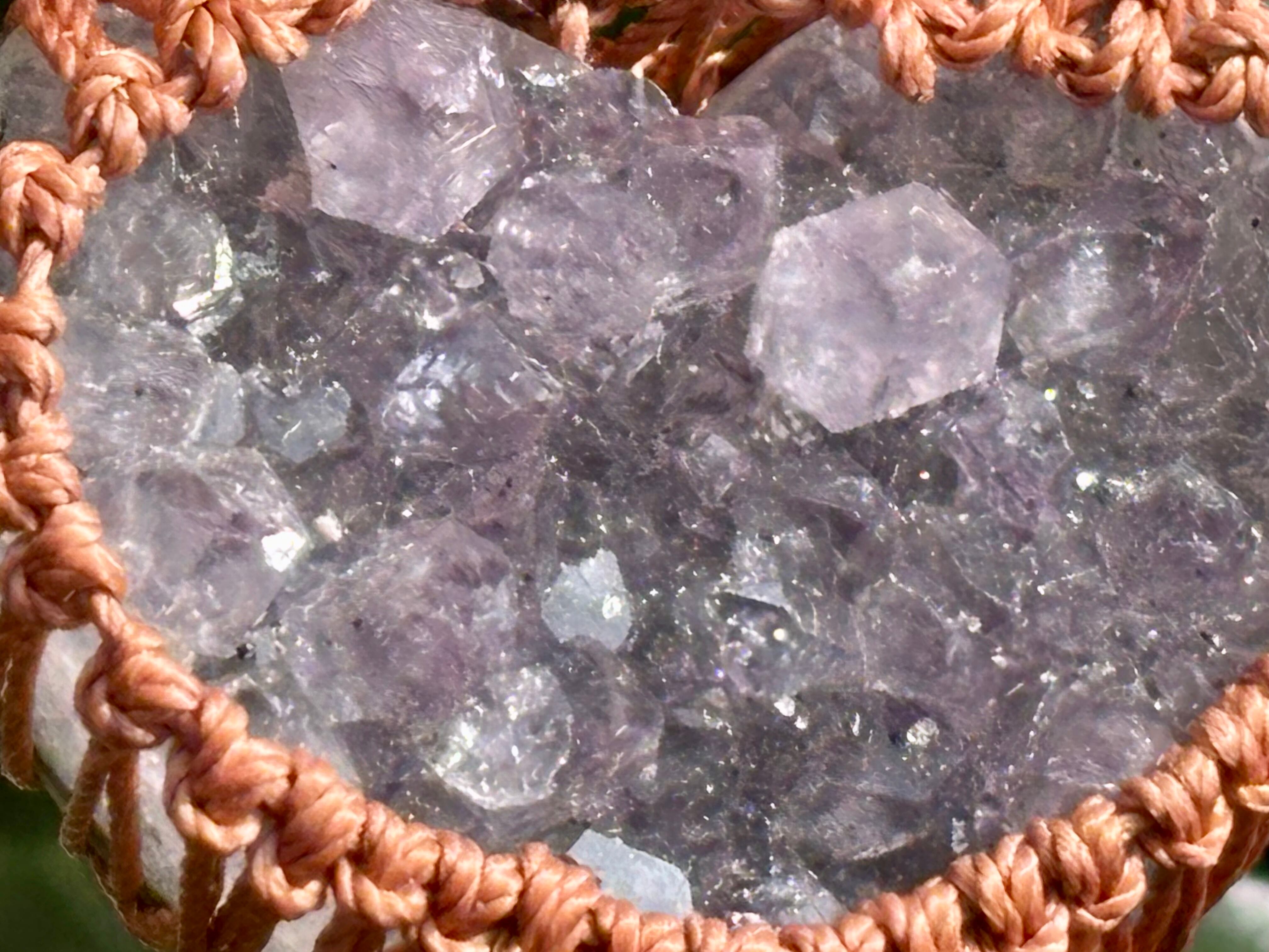 そんなアメジストドゥルージーをハート型にカットし、マクラメ編みでお作りしましたネックレス。