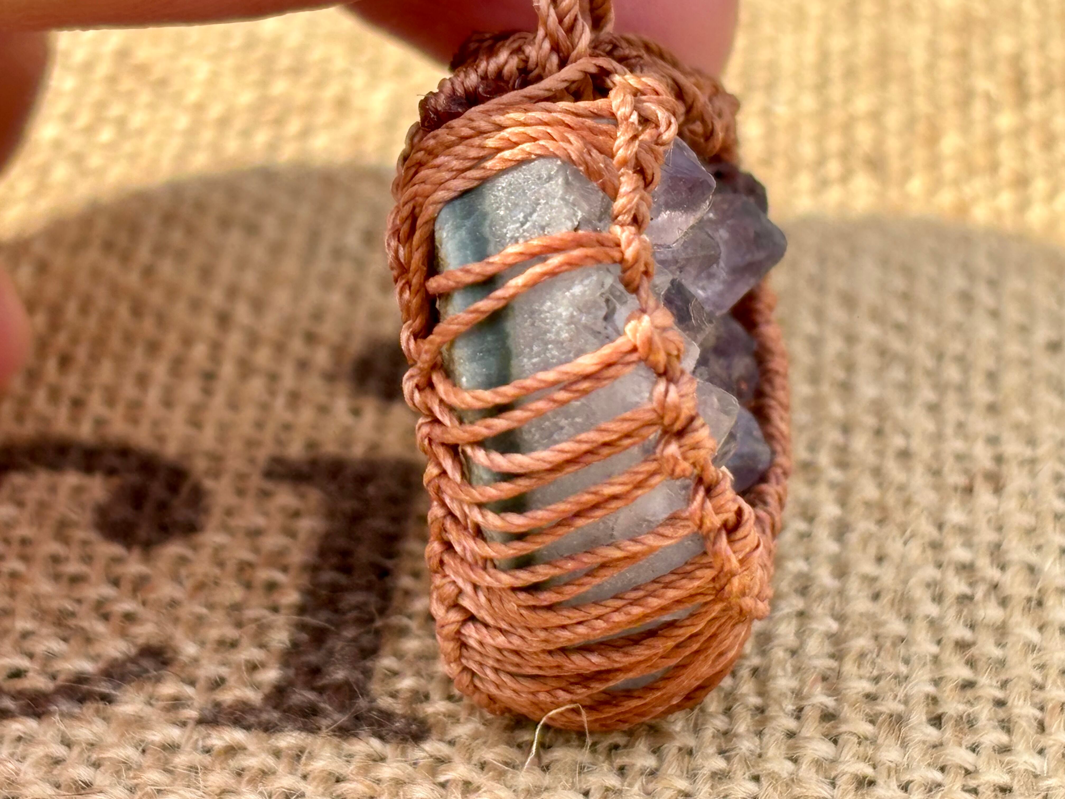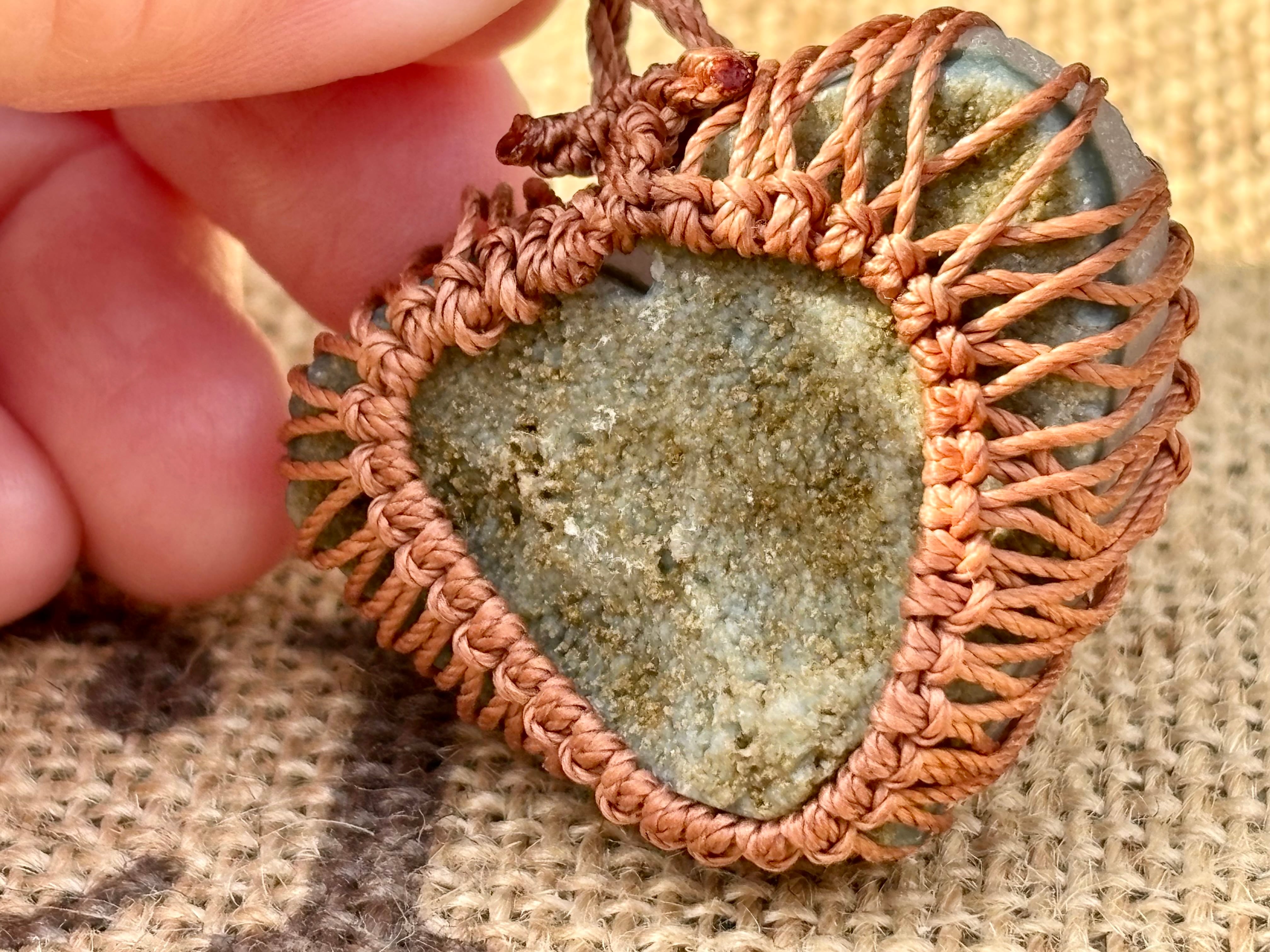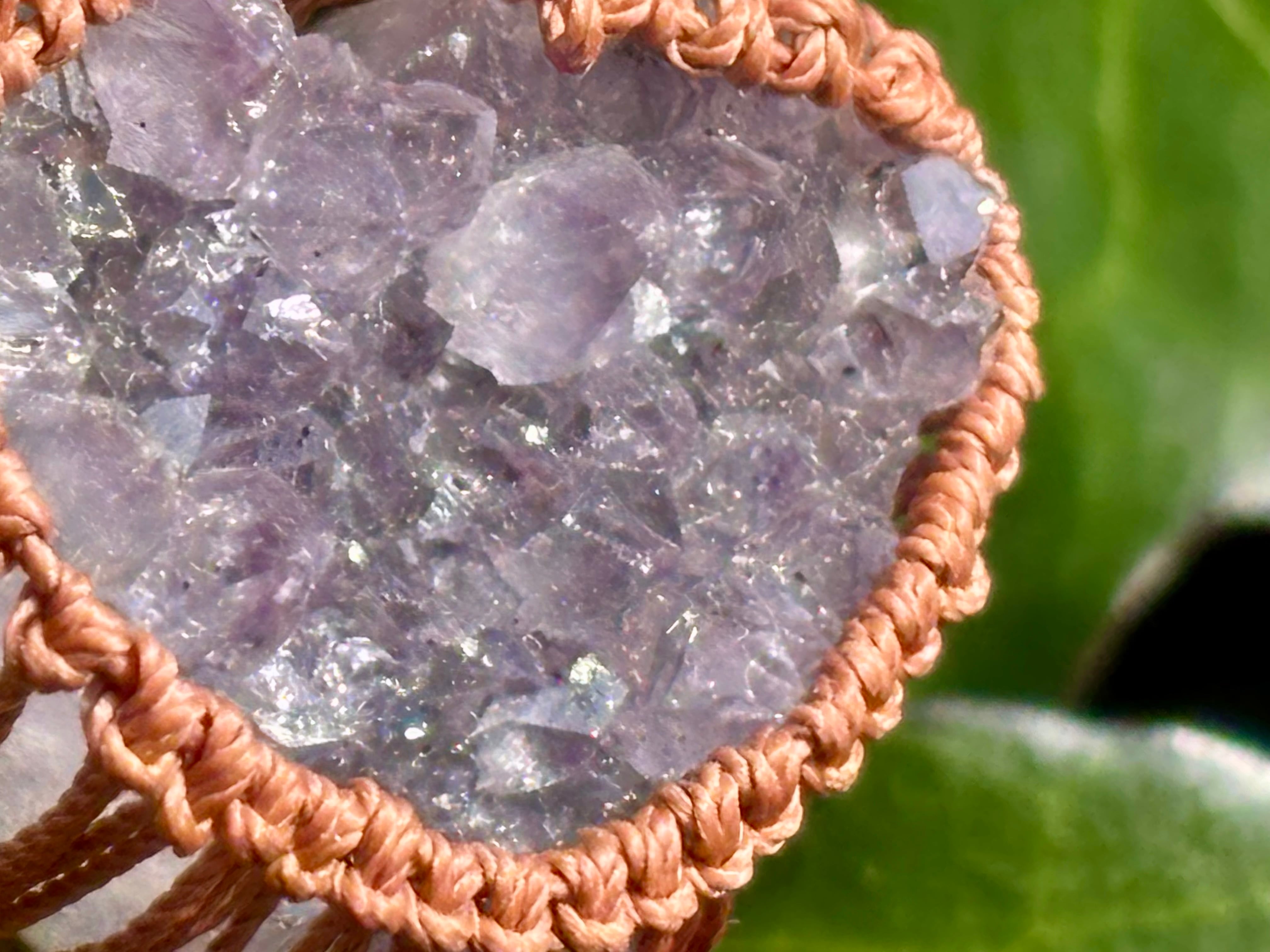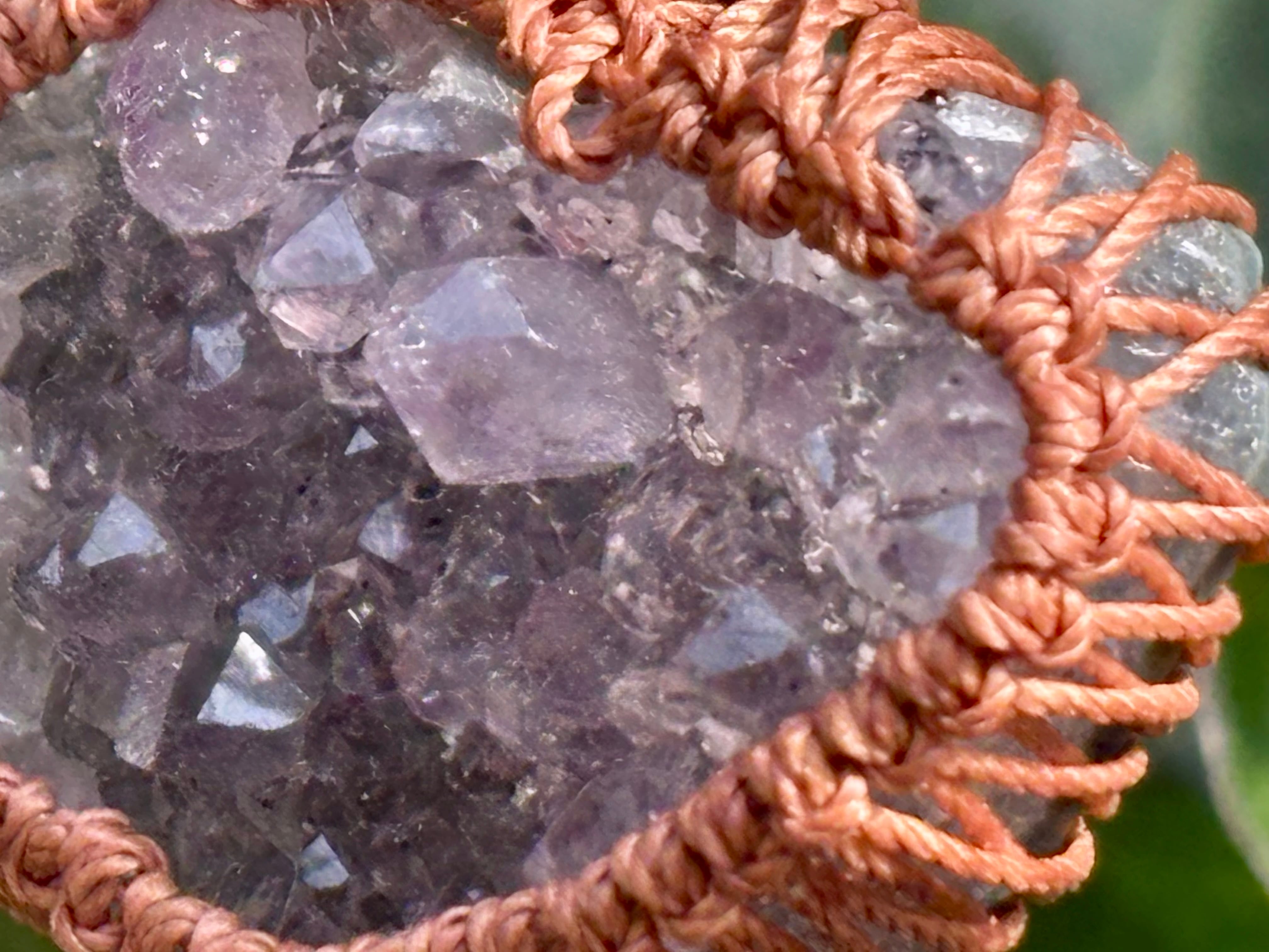 そんなアメジストドゥルージーをハート型にカットし、マクラメ編みでお作りしましたネックレス。