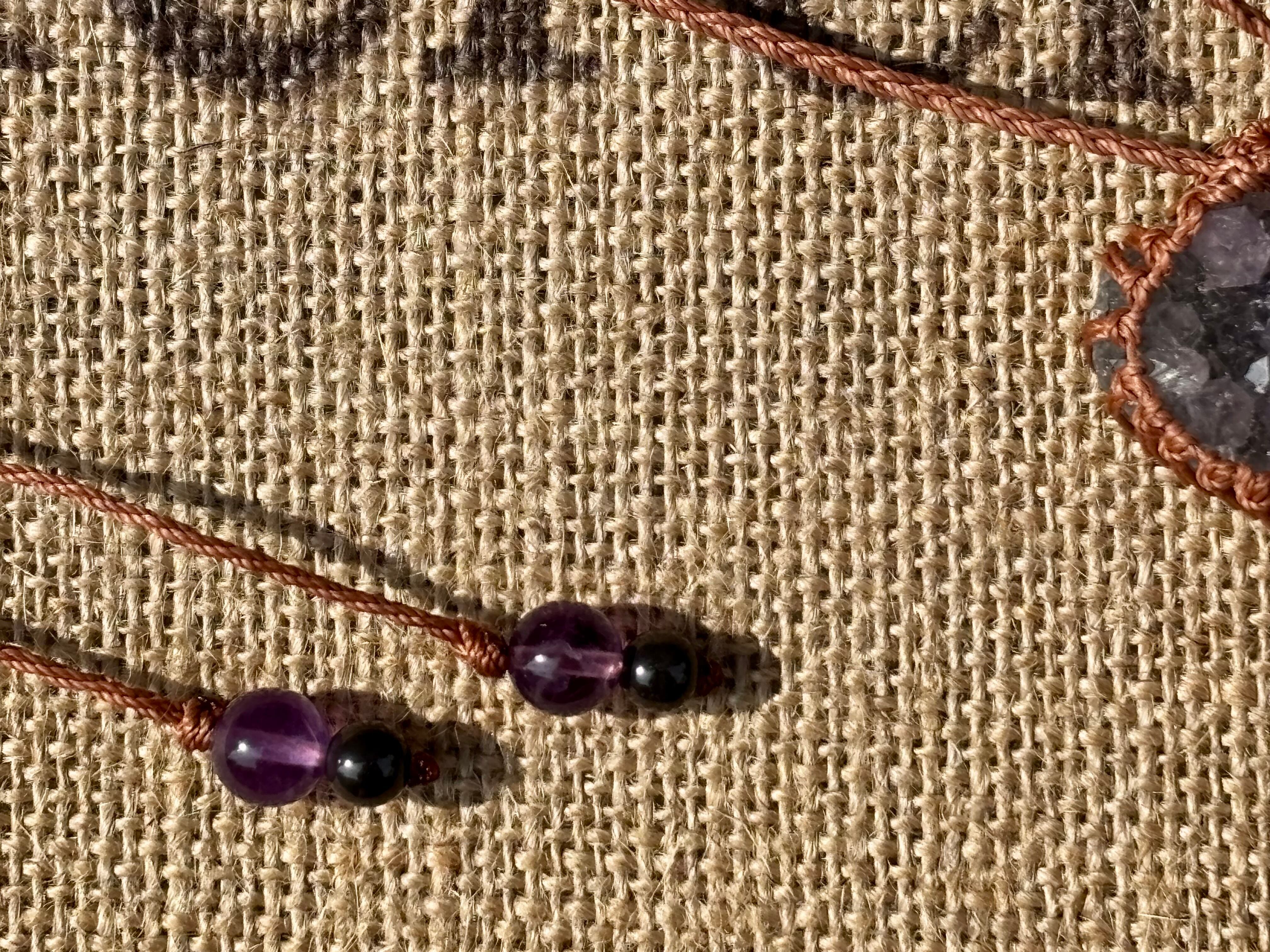 #999光の粒♡アメジストドゥルージー一点物(アメジストドゥルージー×アメジスト×北投石 マクラメ編みデザインネックレス)