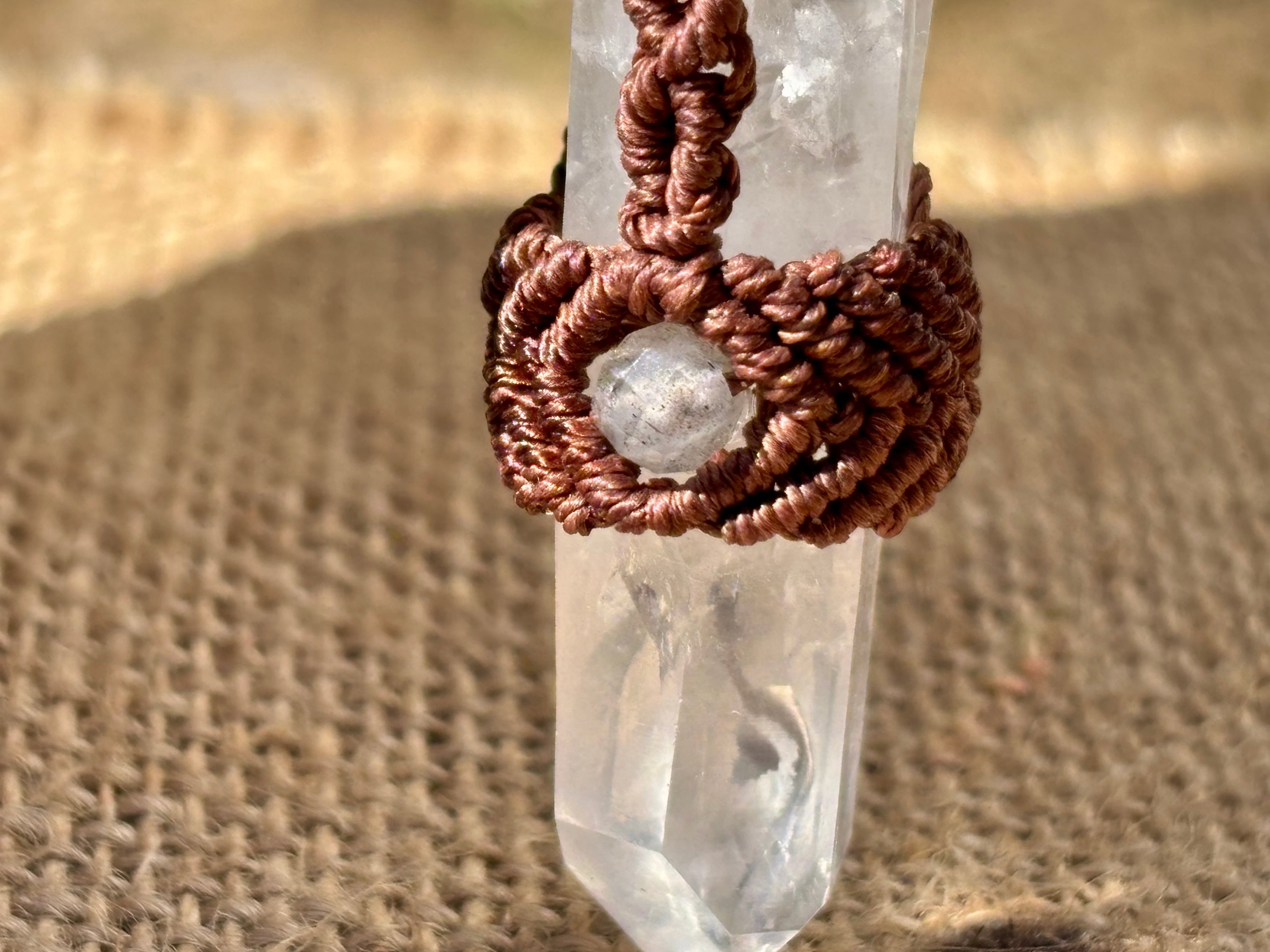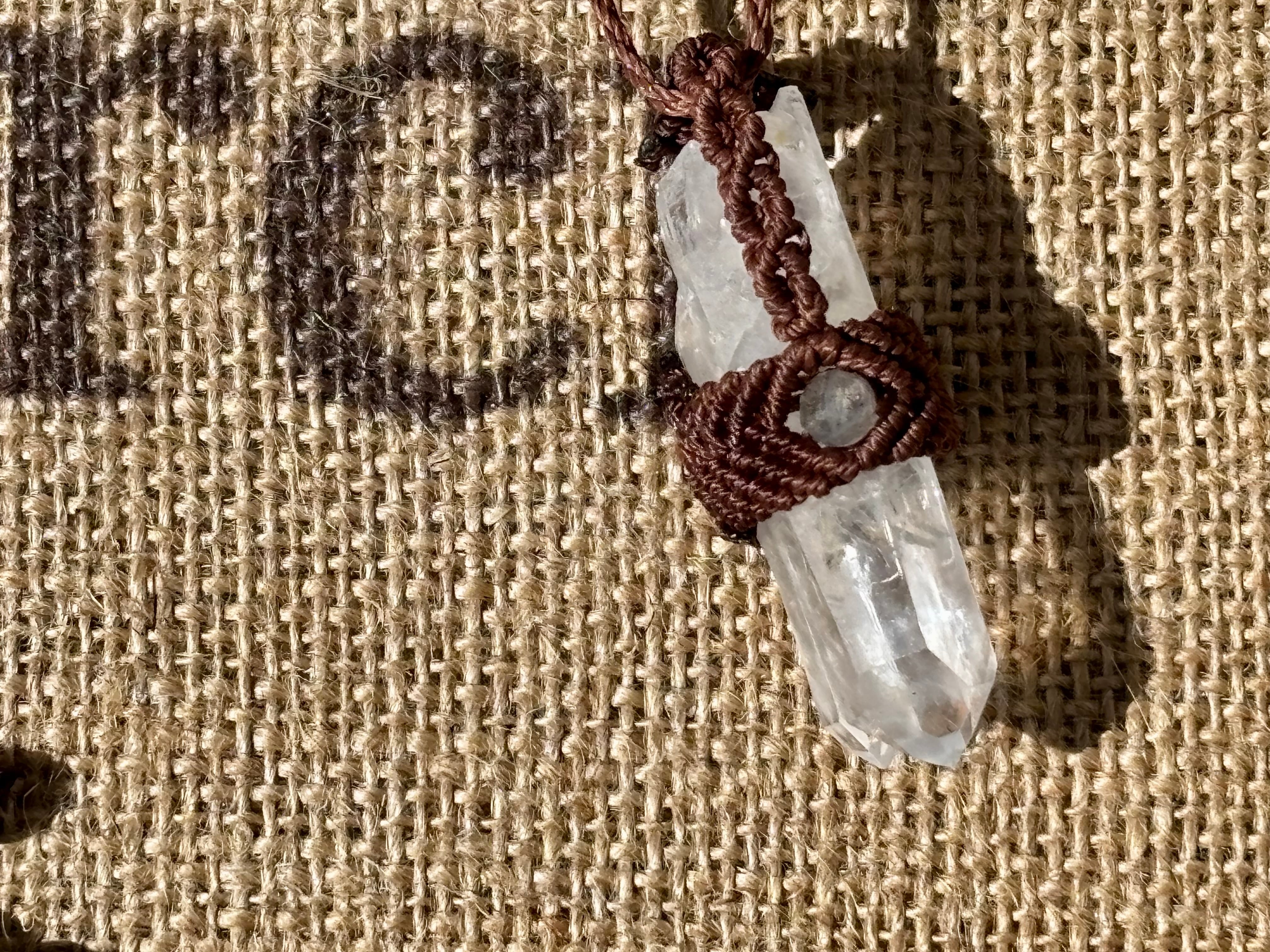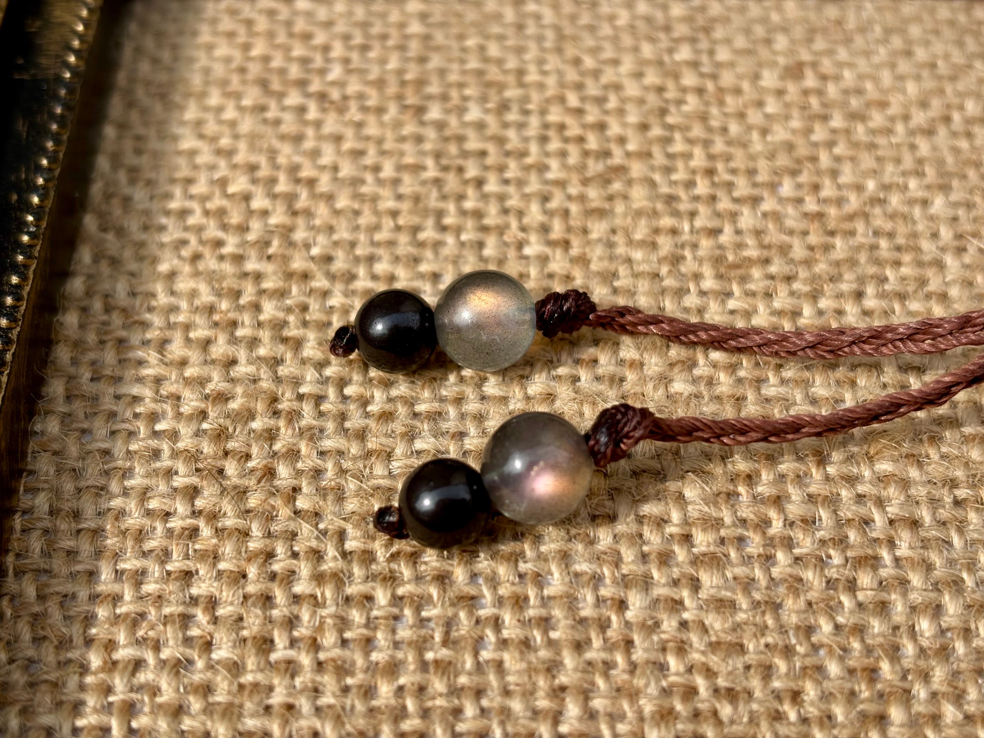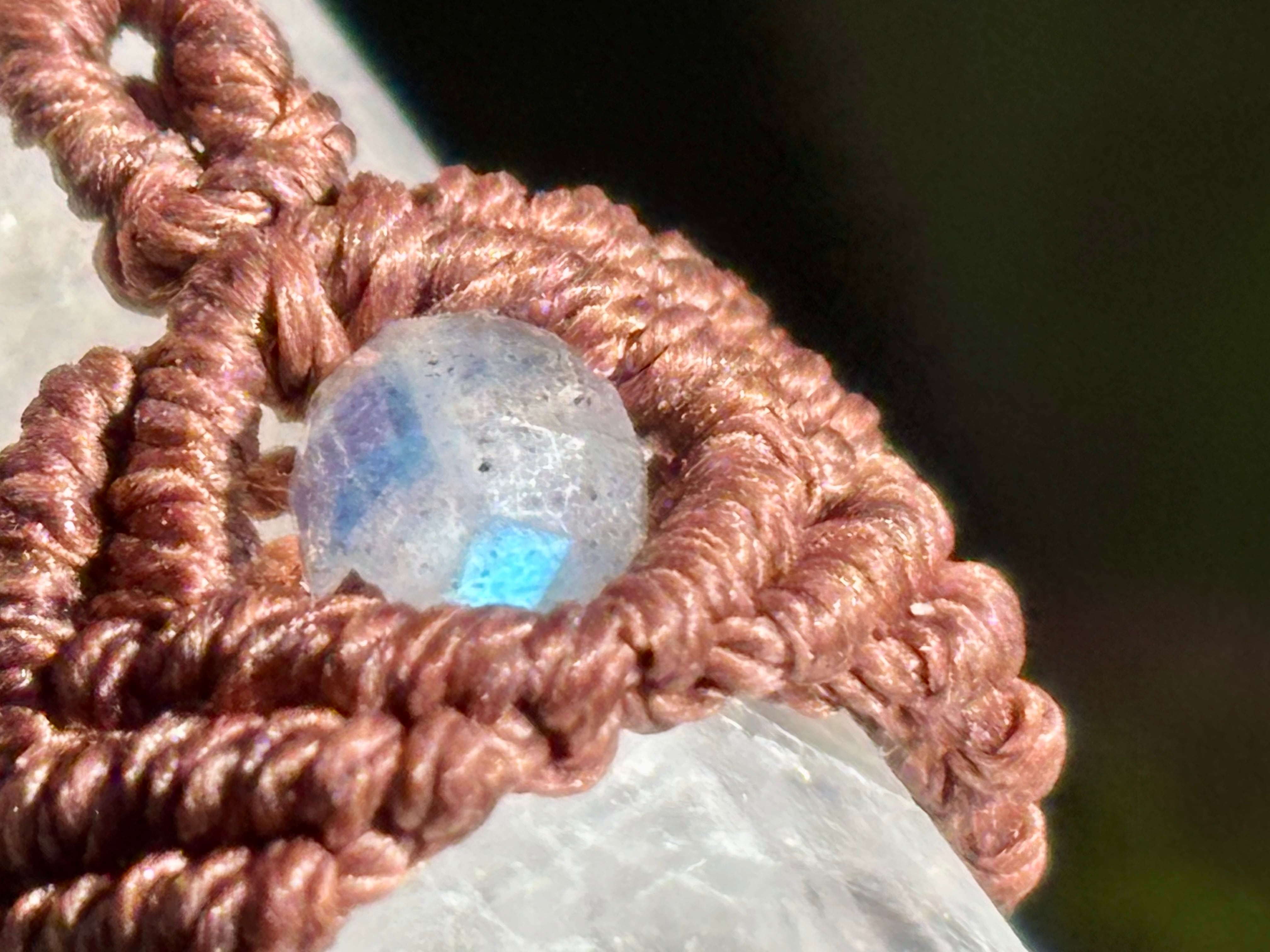 #1013超希少‼︎ブルーミストクォーツ一点物(コロンビア産ブルーミストクォーツ×ラブラドライト×北投石 マクラメ編みデザインネックレス)