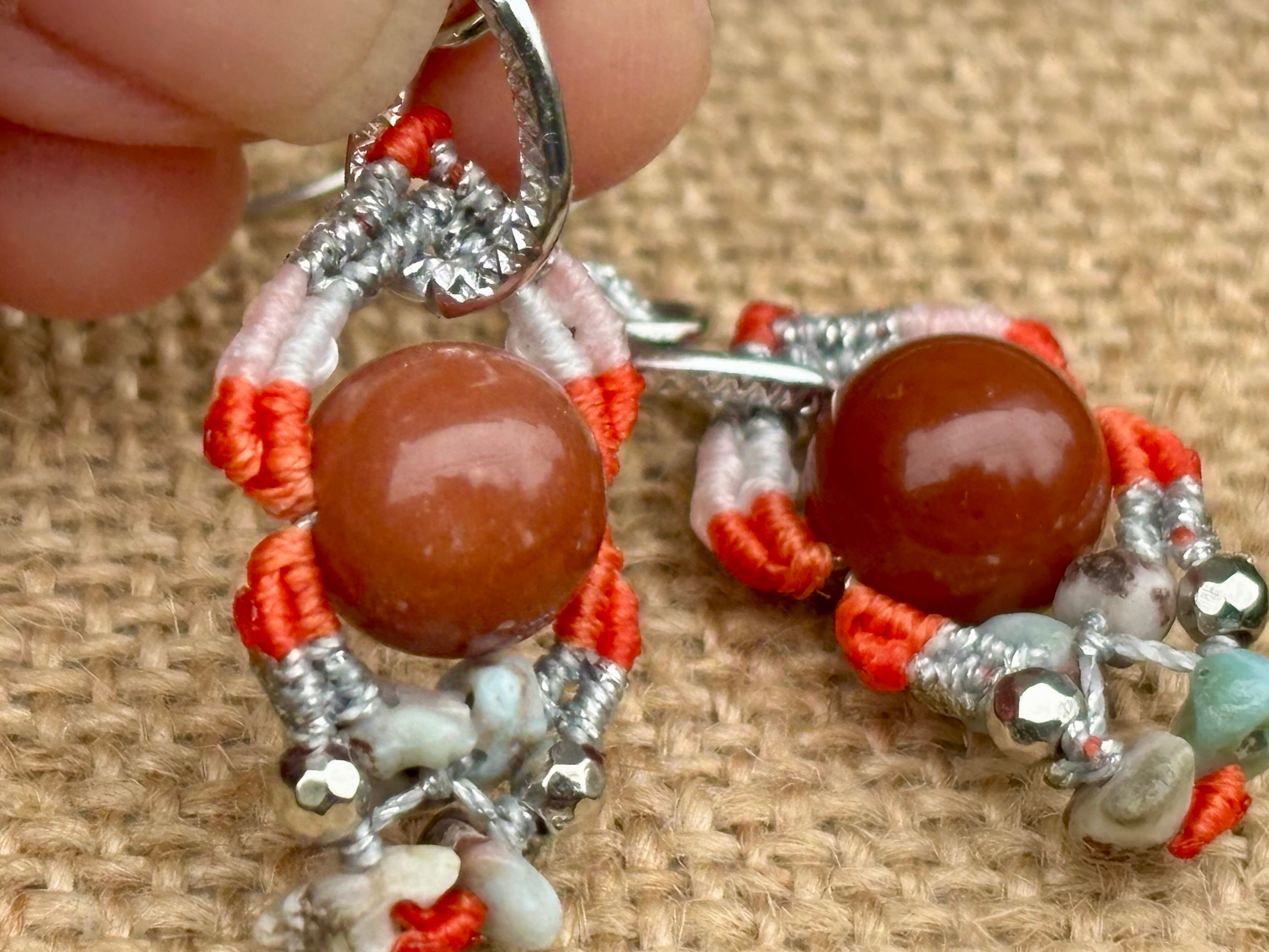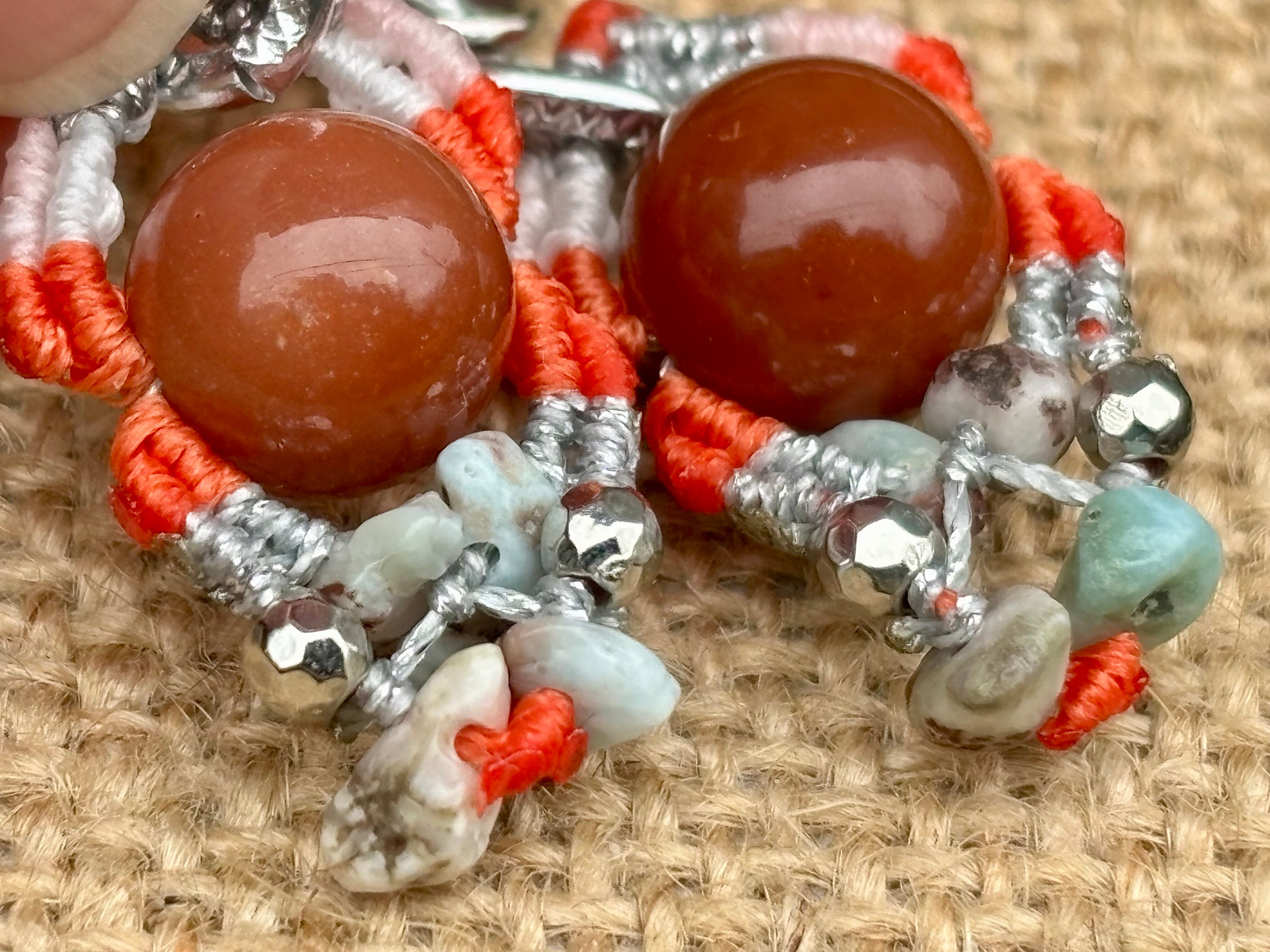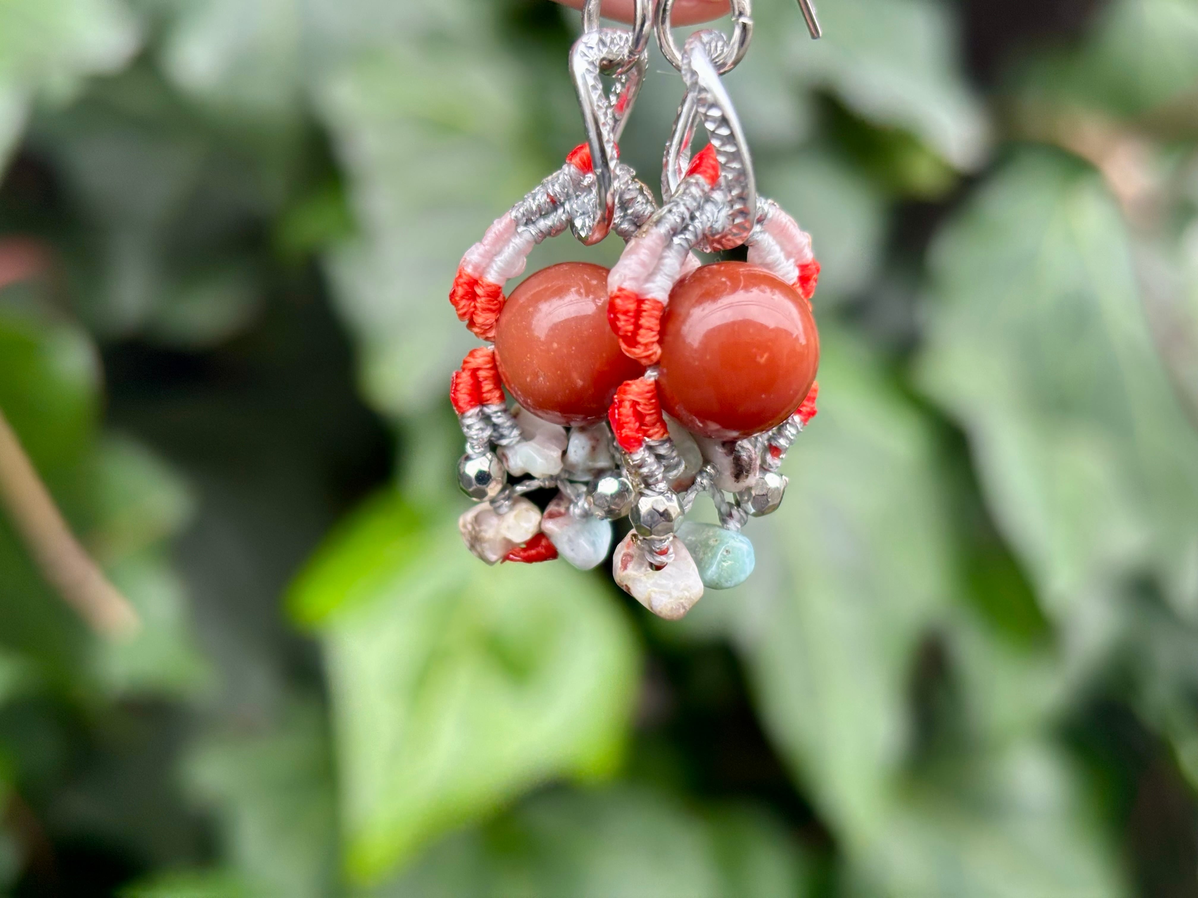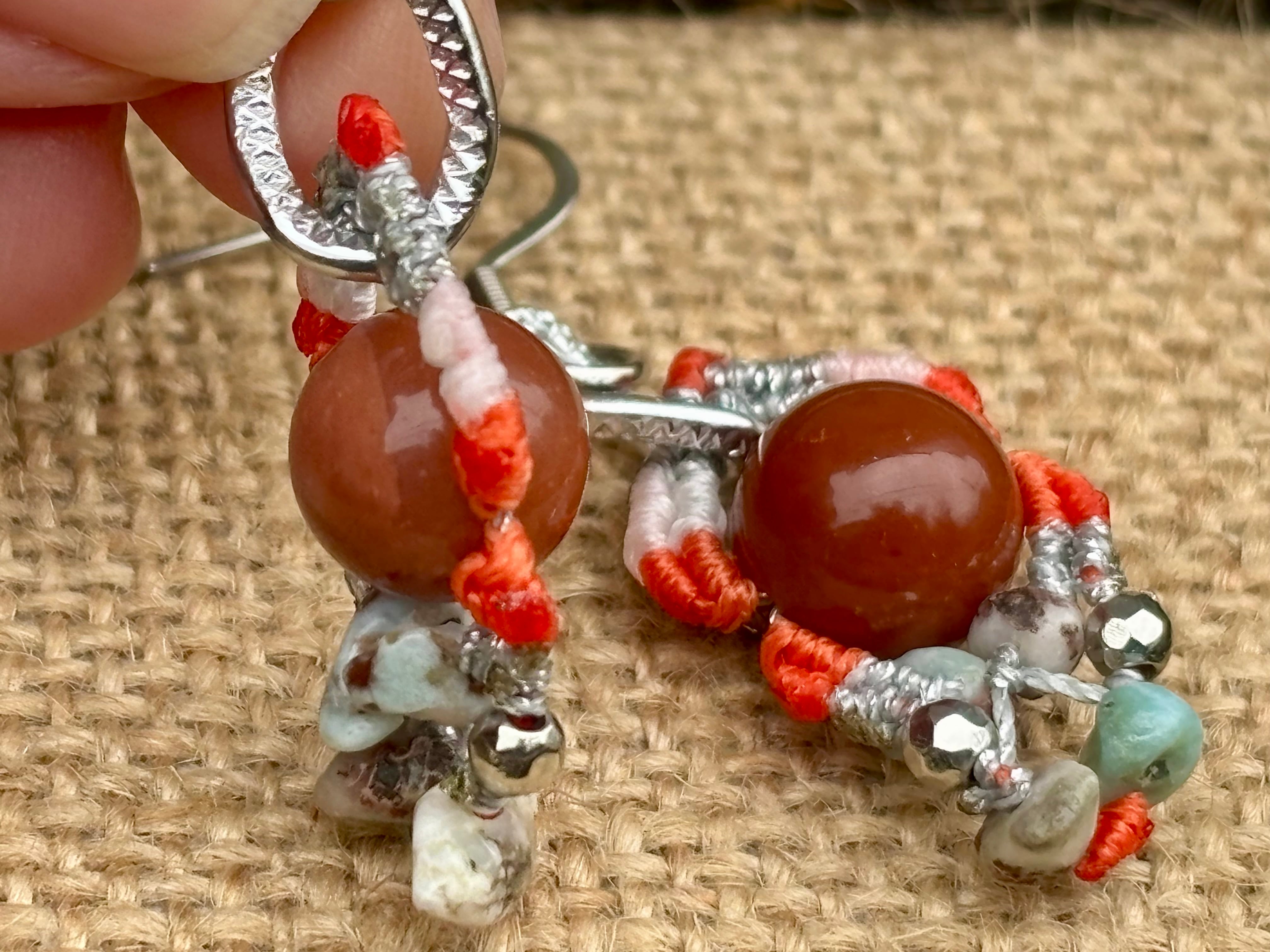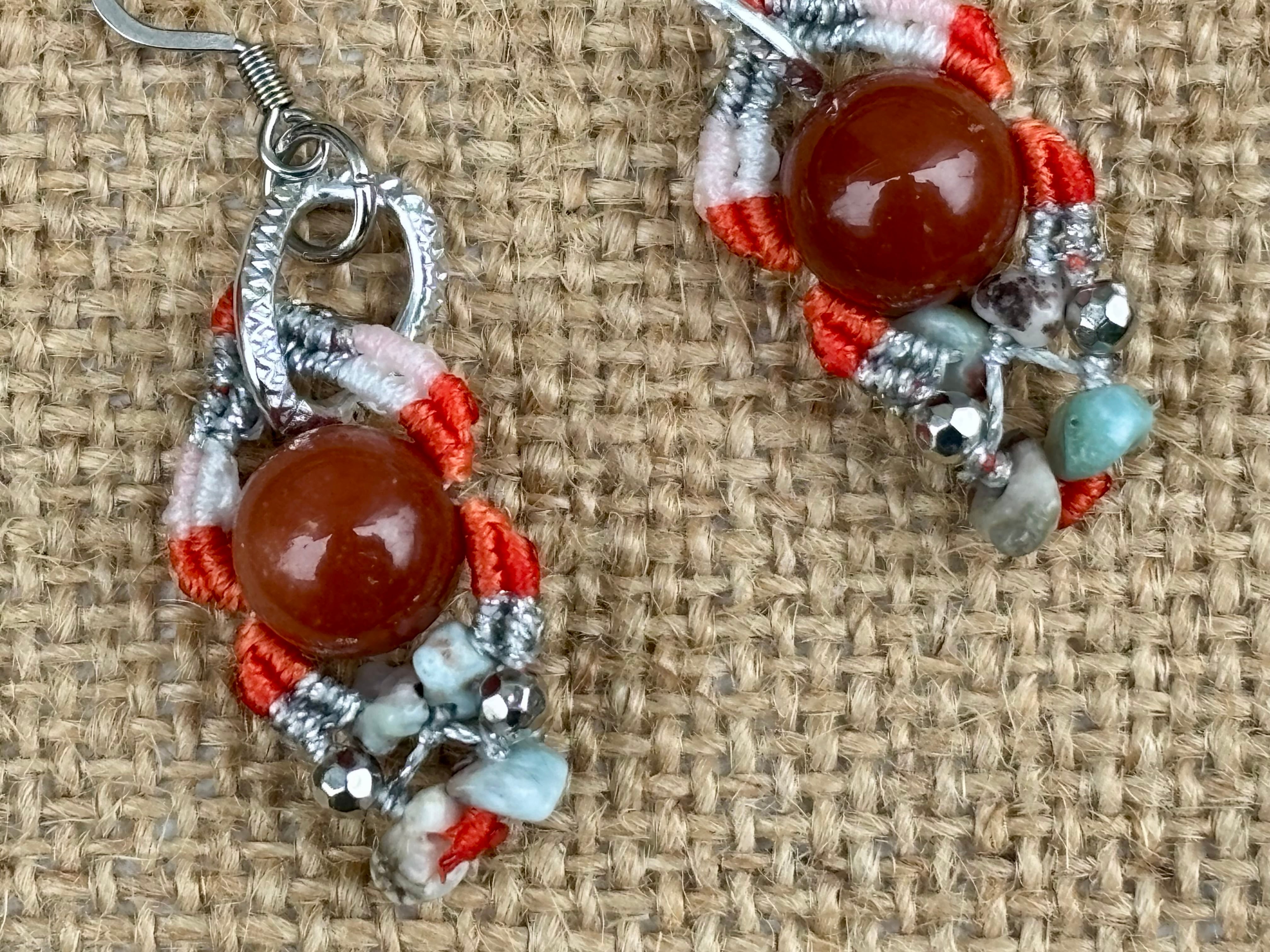 #1022カラフル★アラシャン瑪瑙×ラリマー 一点物 マクラメ編みピアス