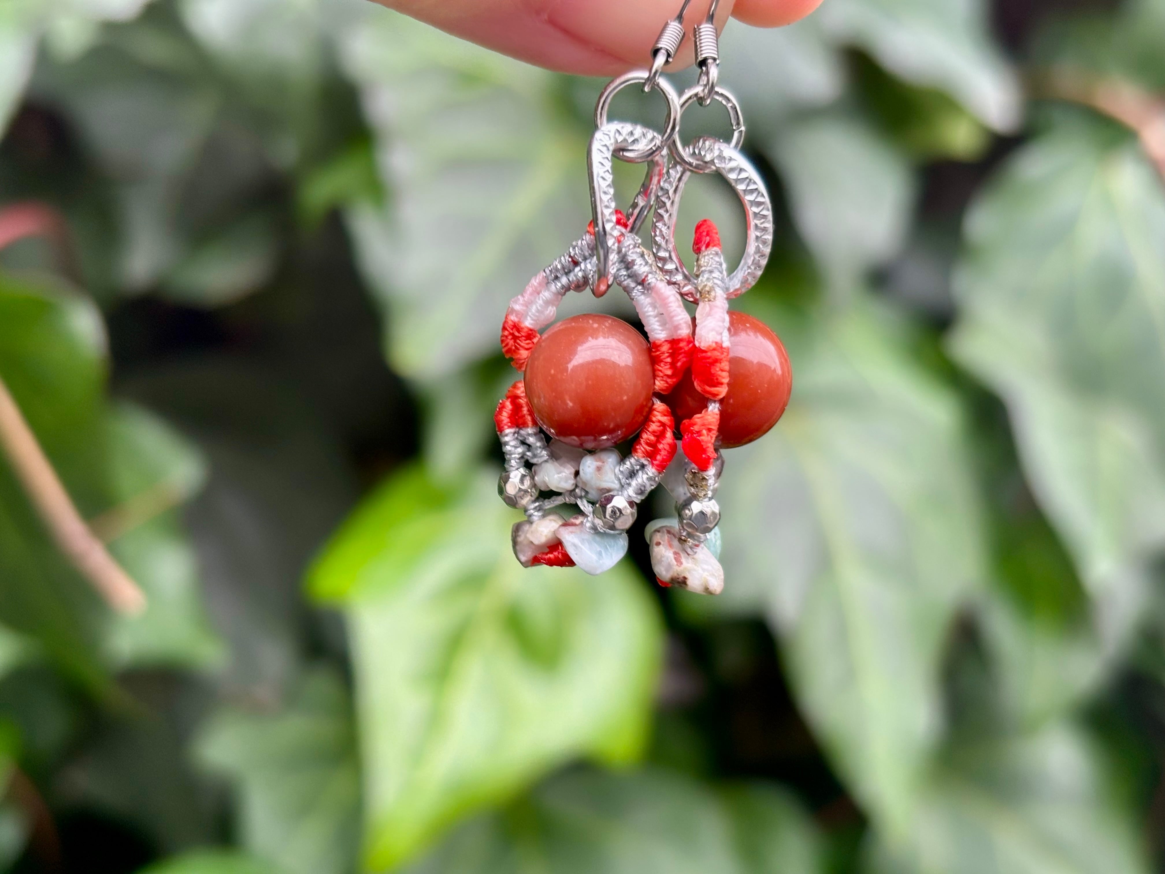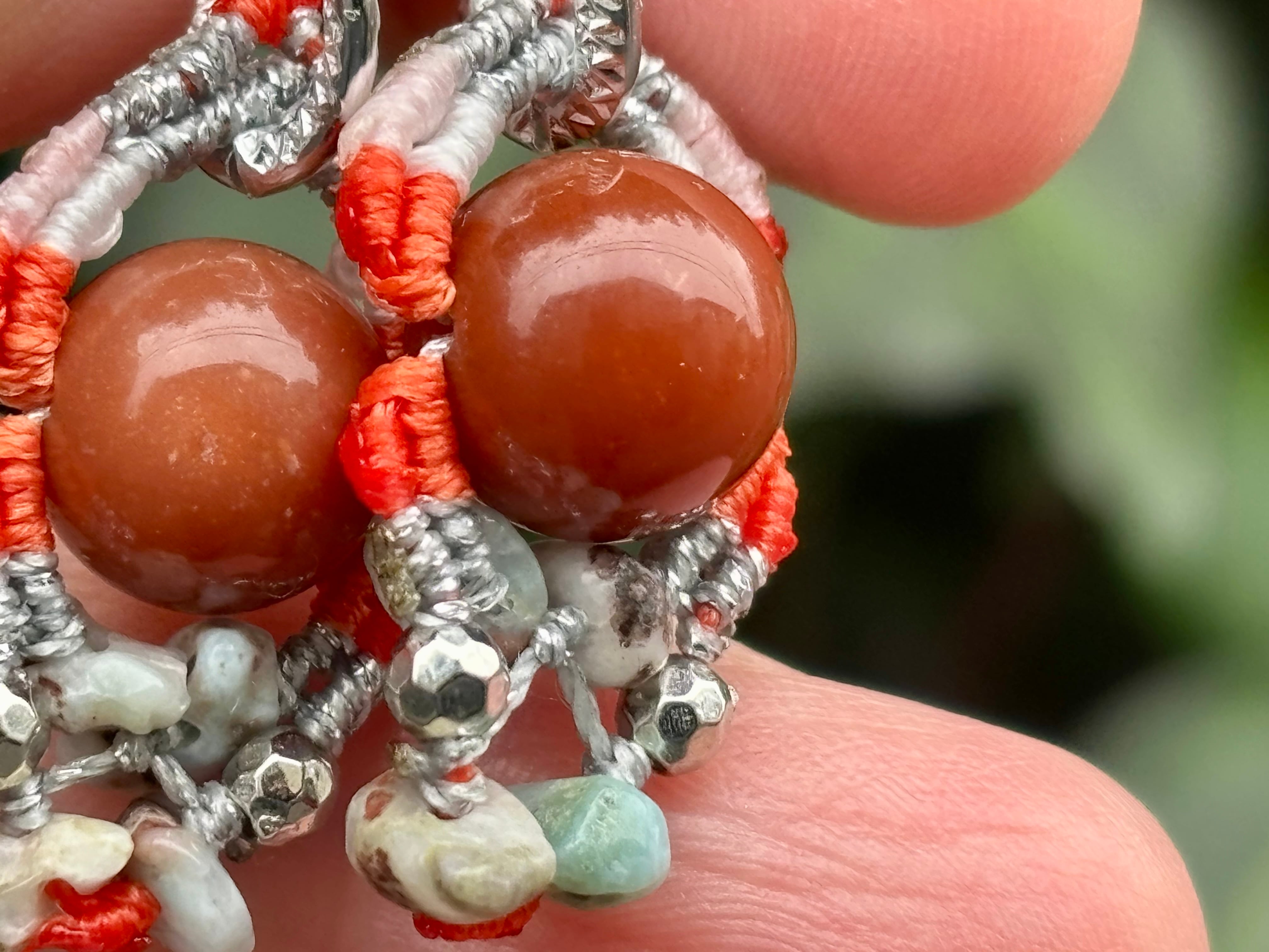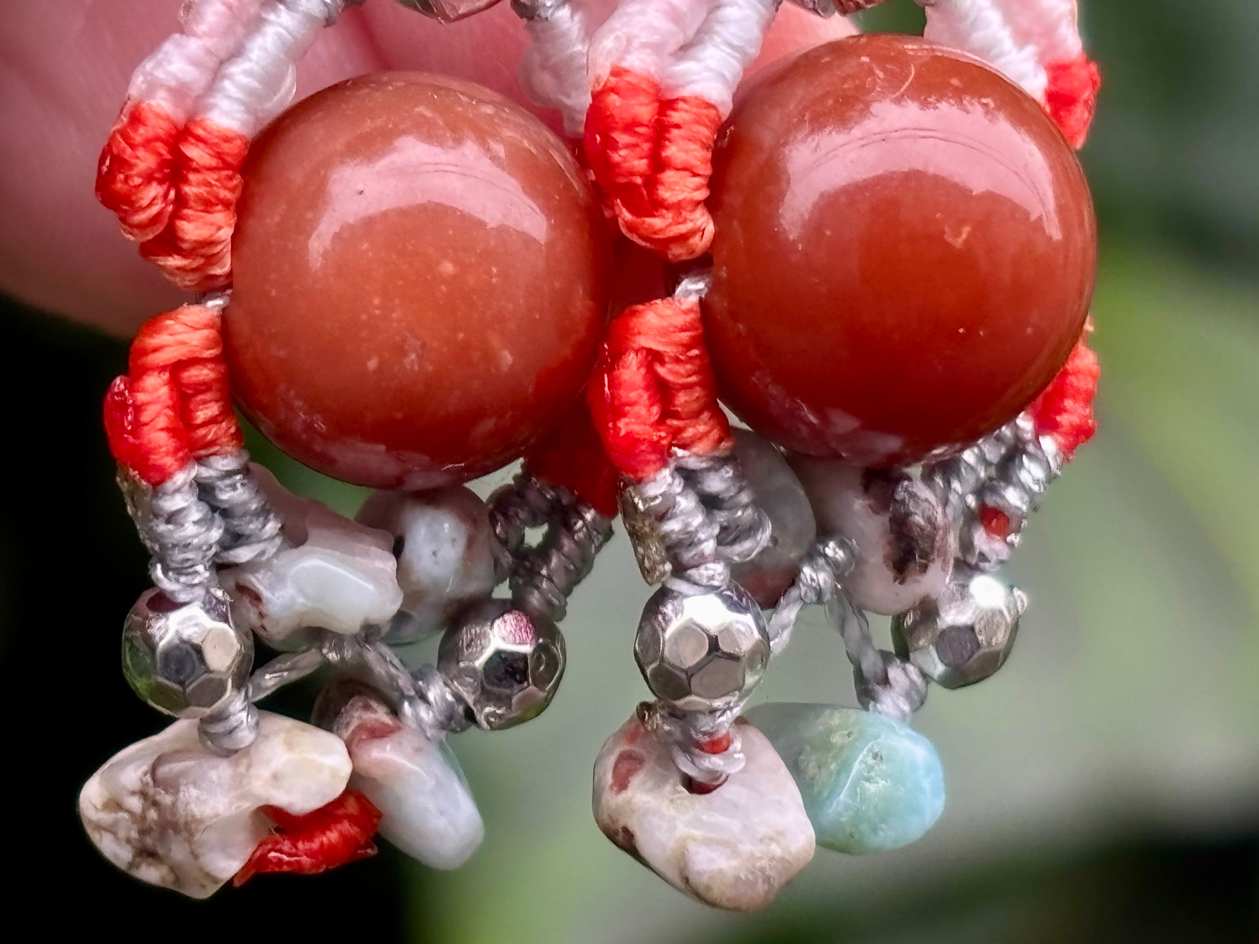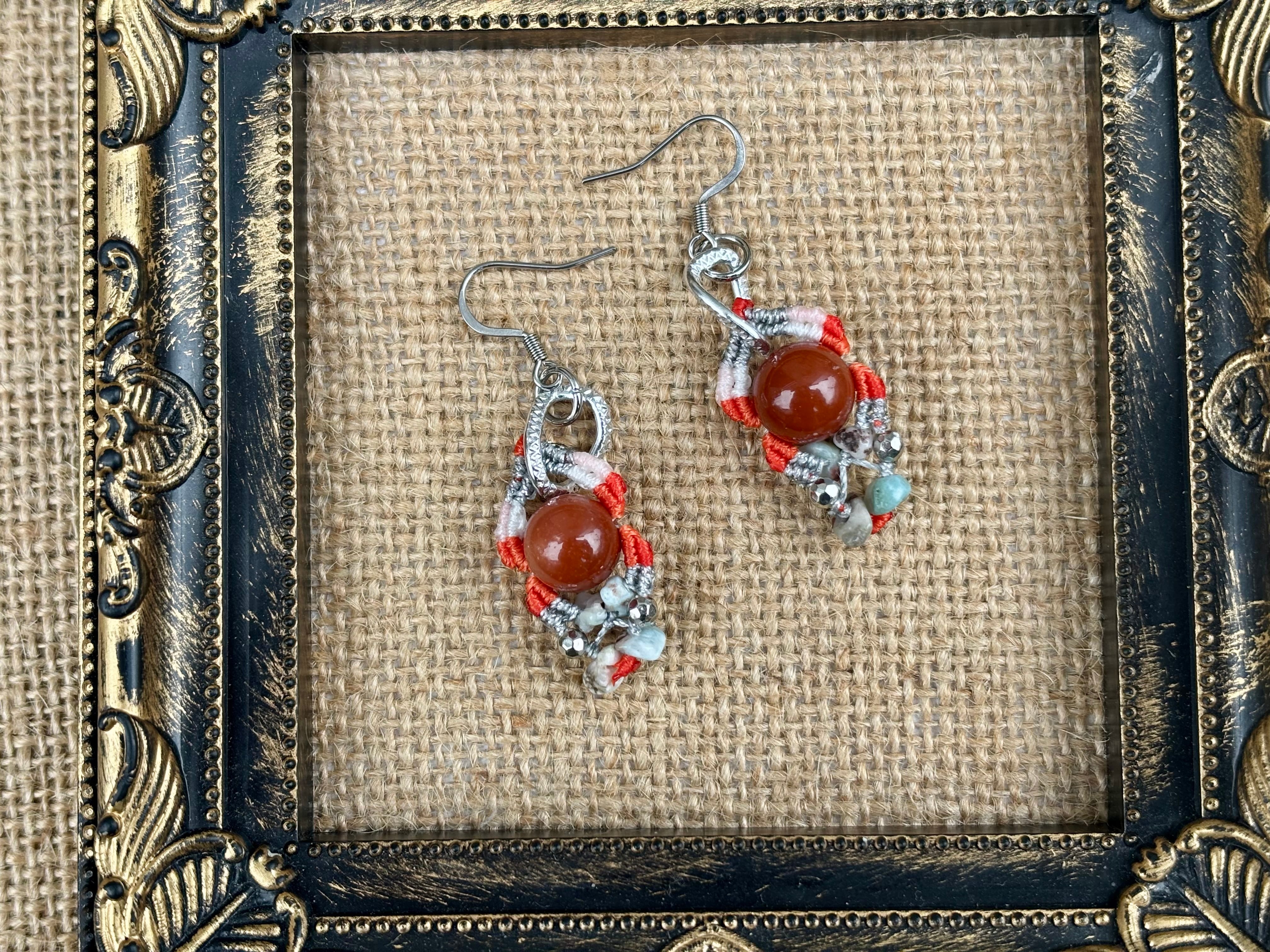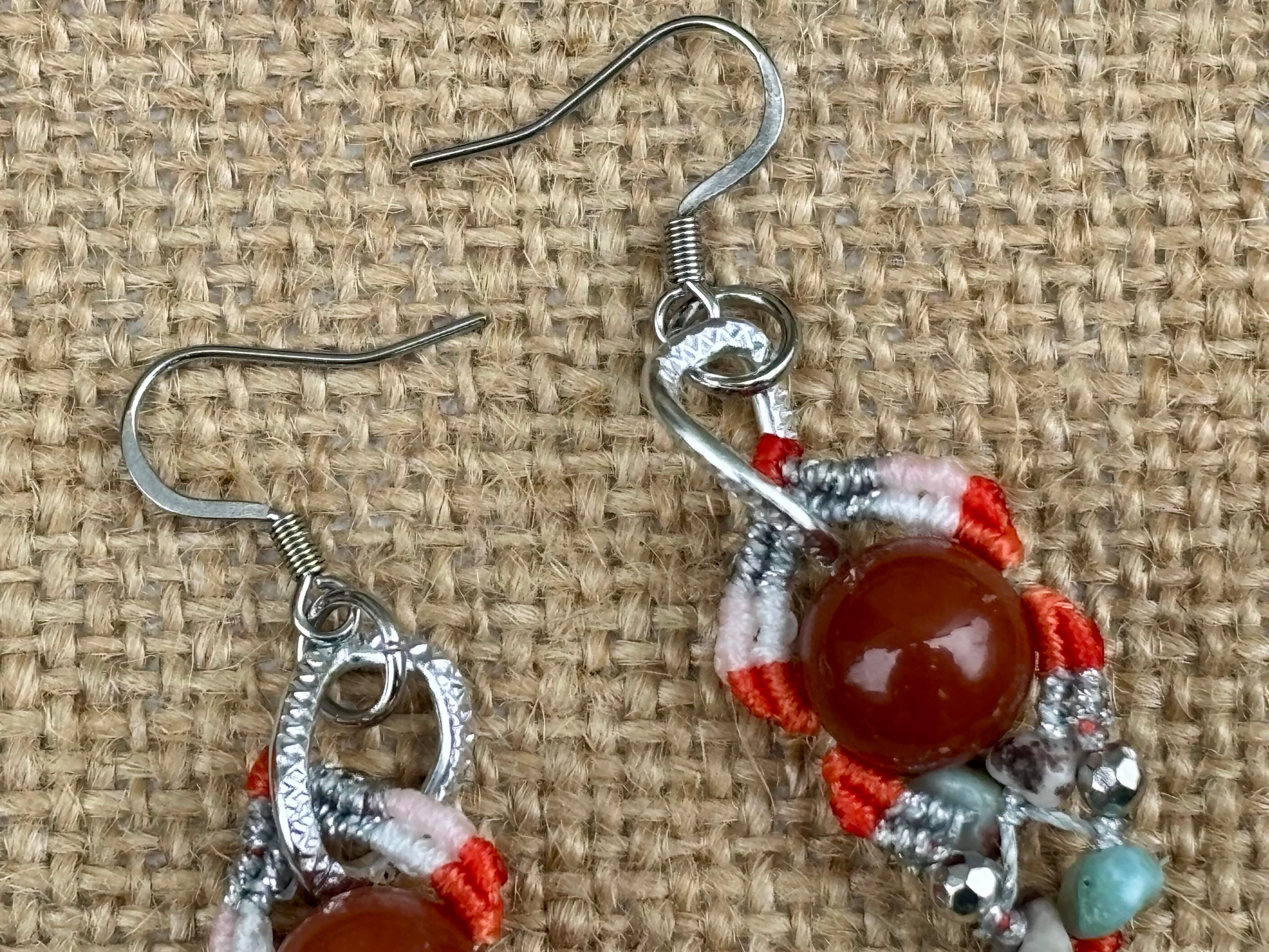 #1022カラフル★アラシャン瑪瑙×ラリマー 一点物 マクラメ編みピアス