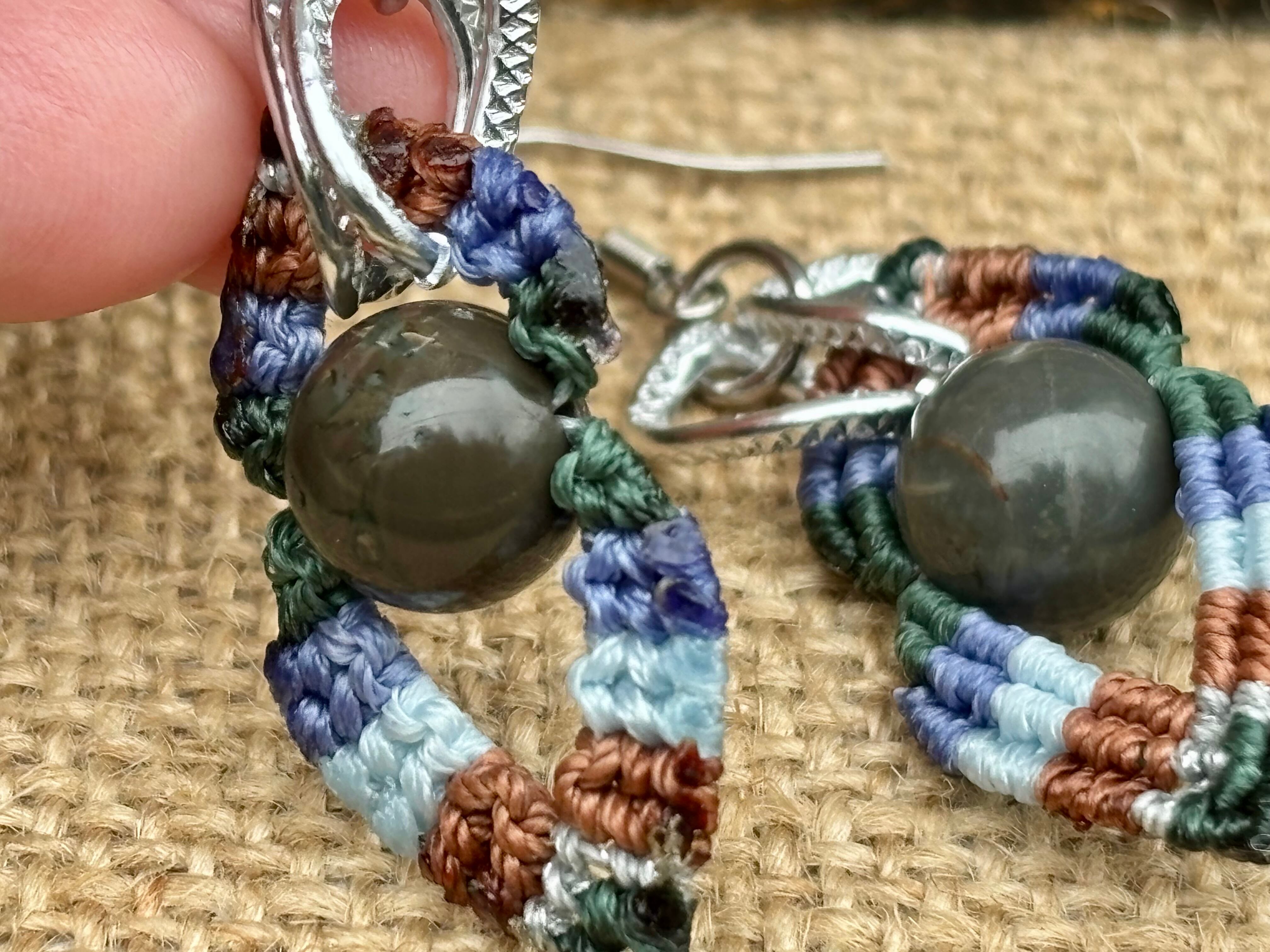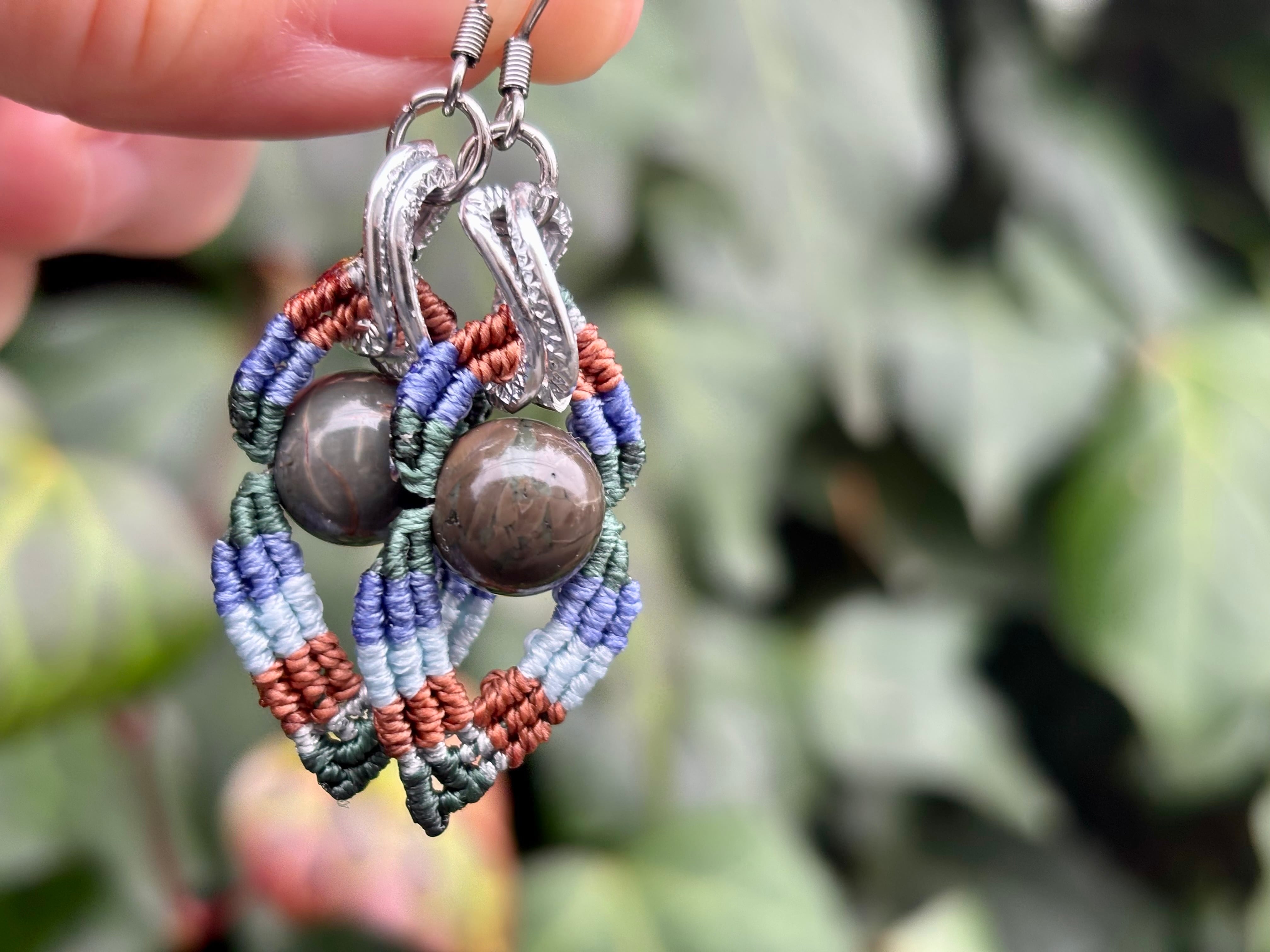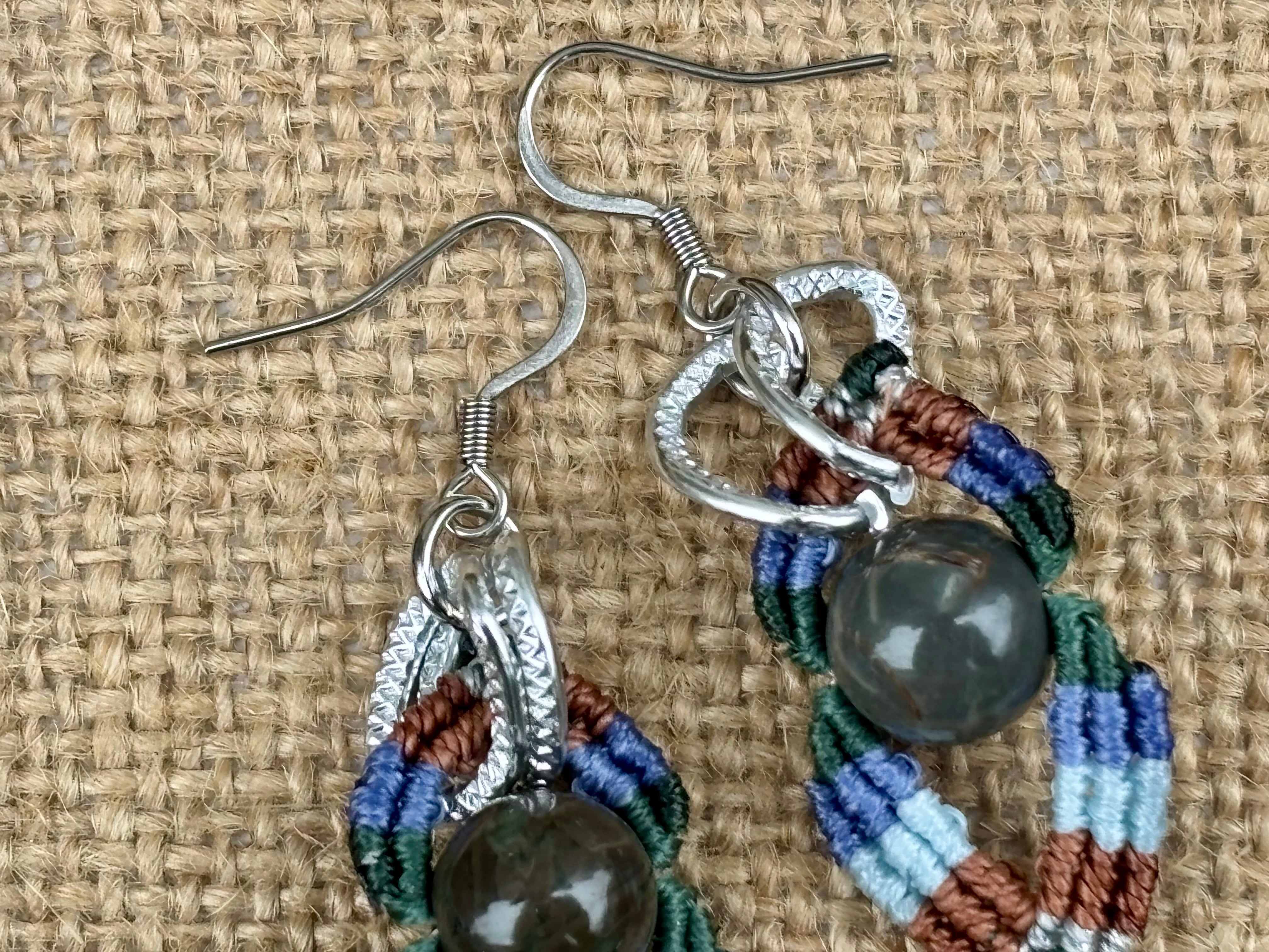 #1023カラフル★アラシャン瑪瑙一点物 マクラメ編みピアス