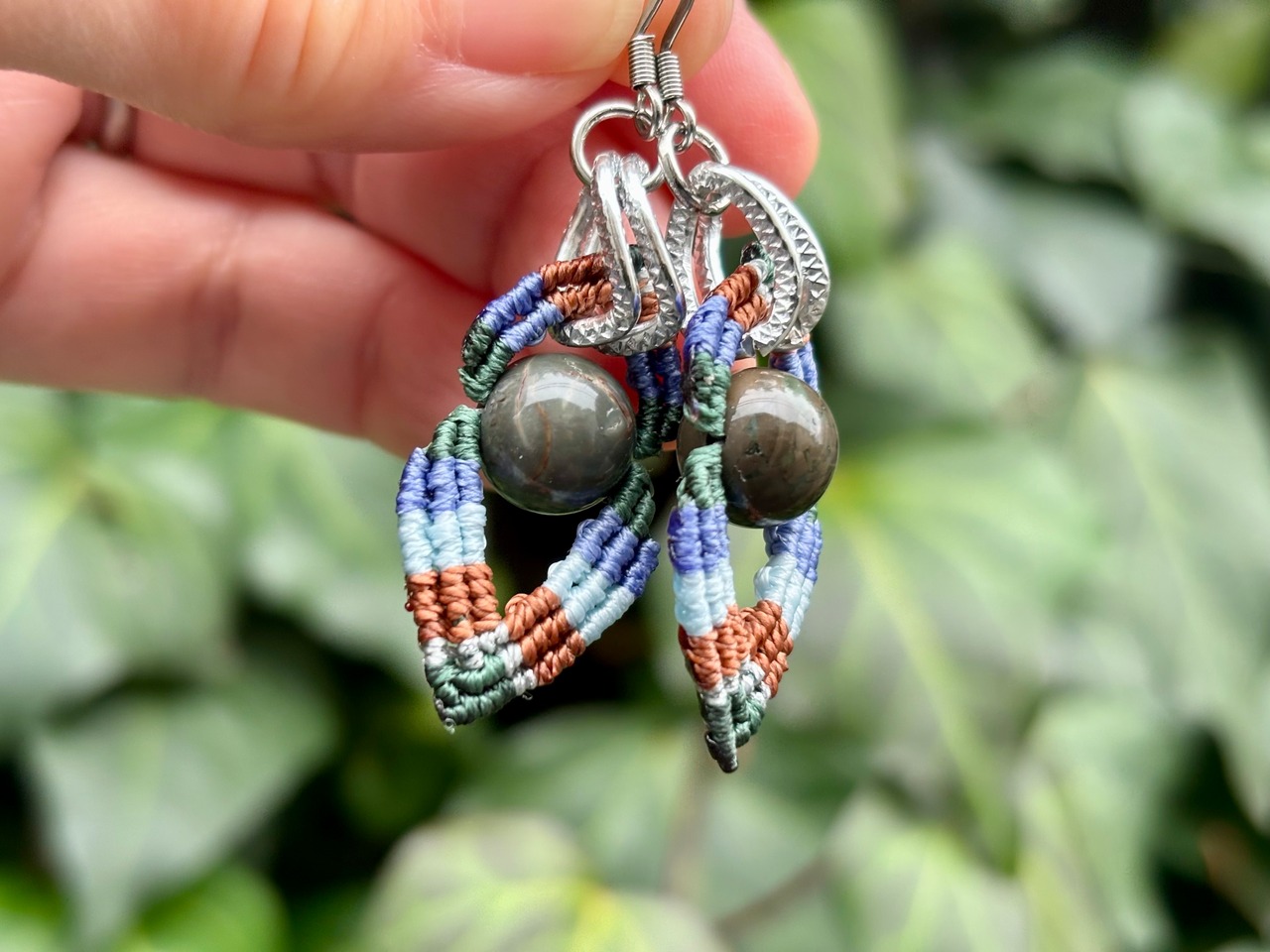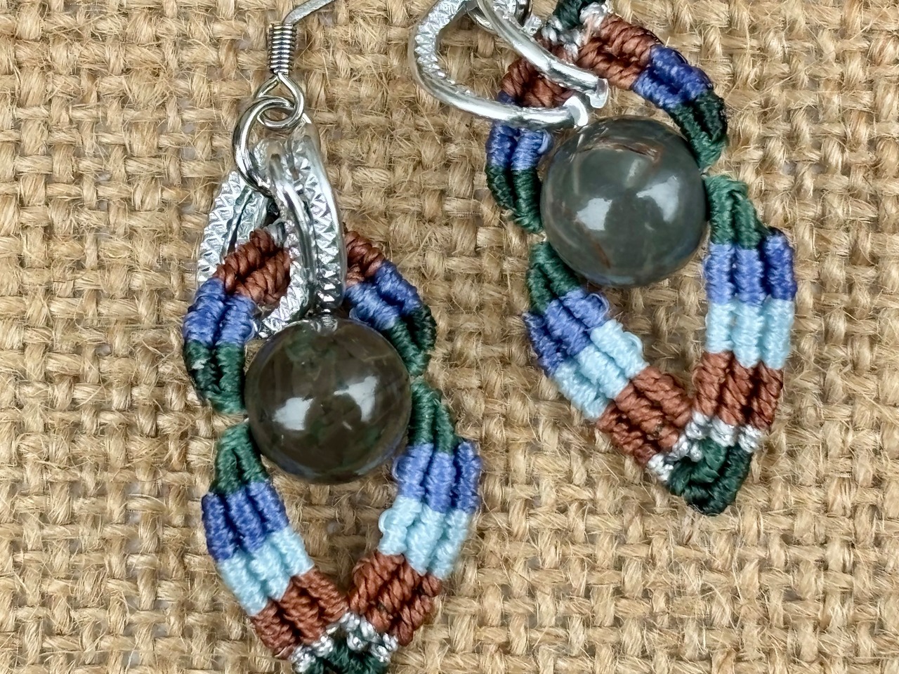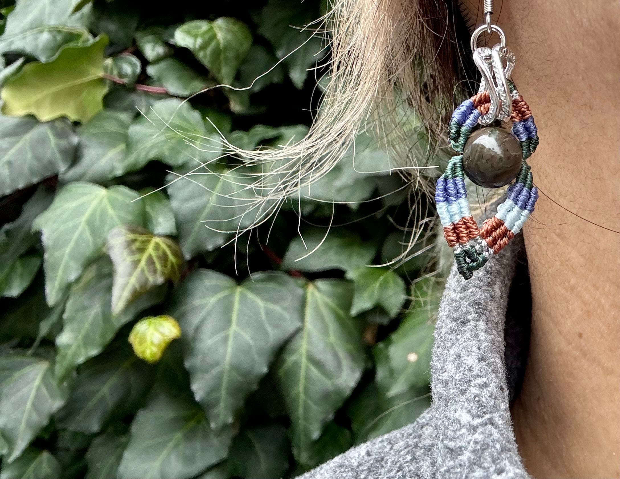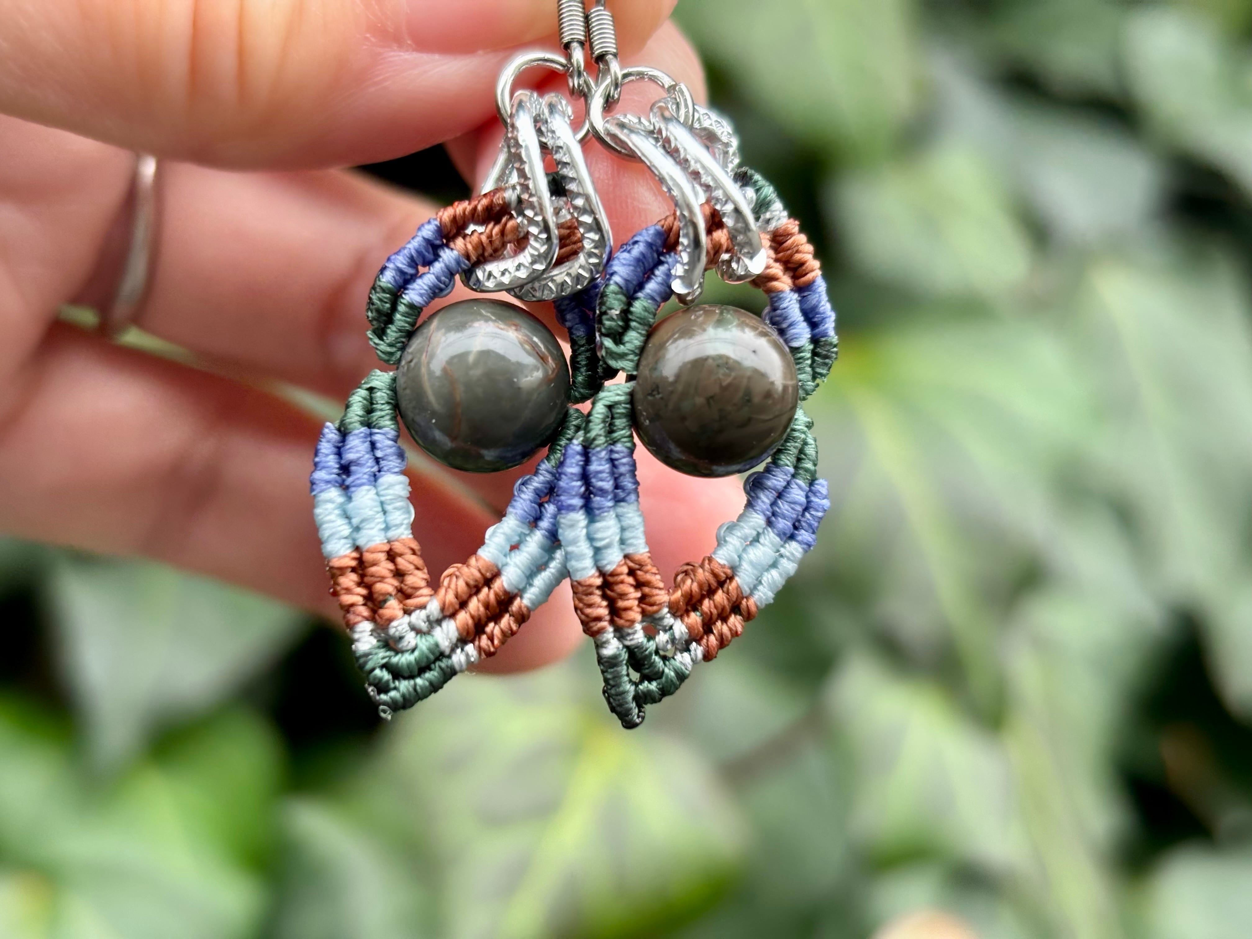 #1023カラフル★アラシャン瑪瑙一点物 マクラメ編みピアス