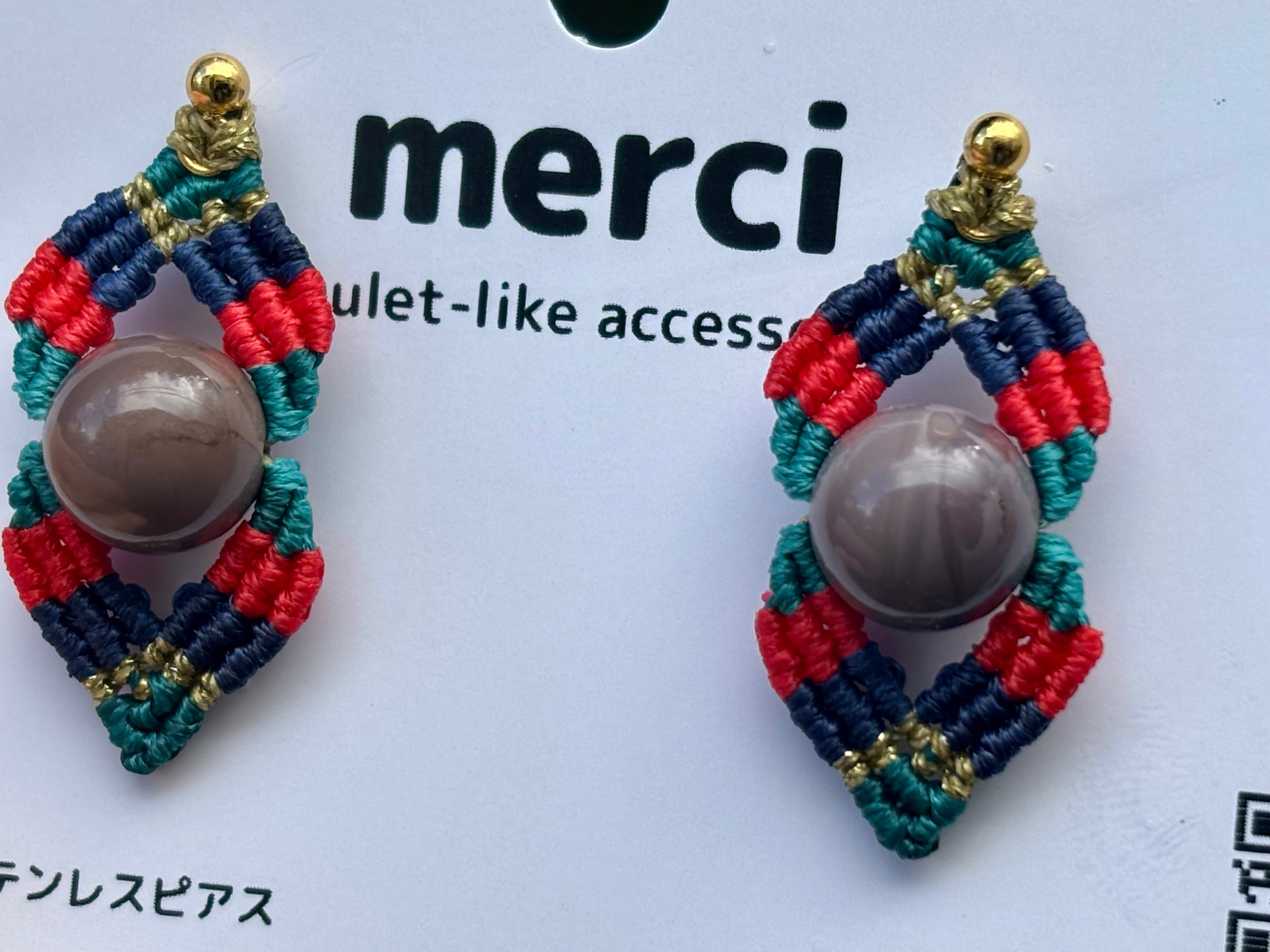#1024カラフル★アラシャン瑪瑙一点物 マクラメ編みピアス
