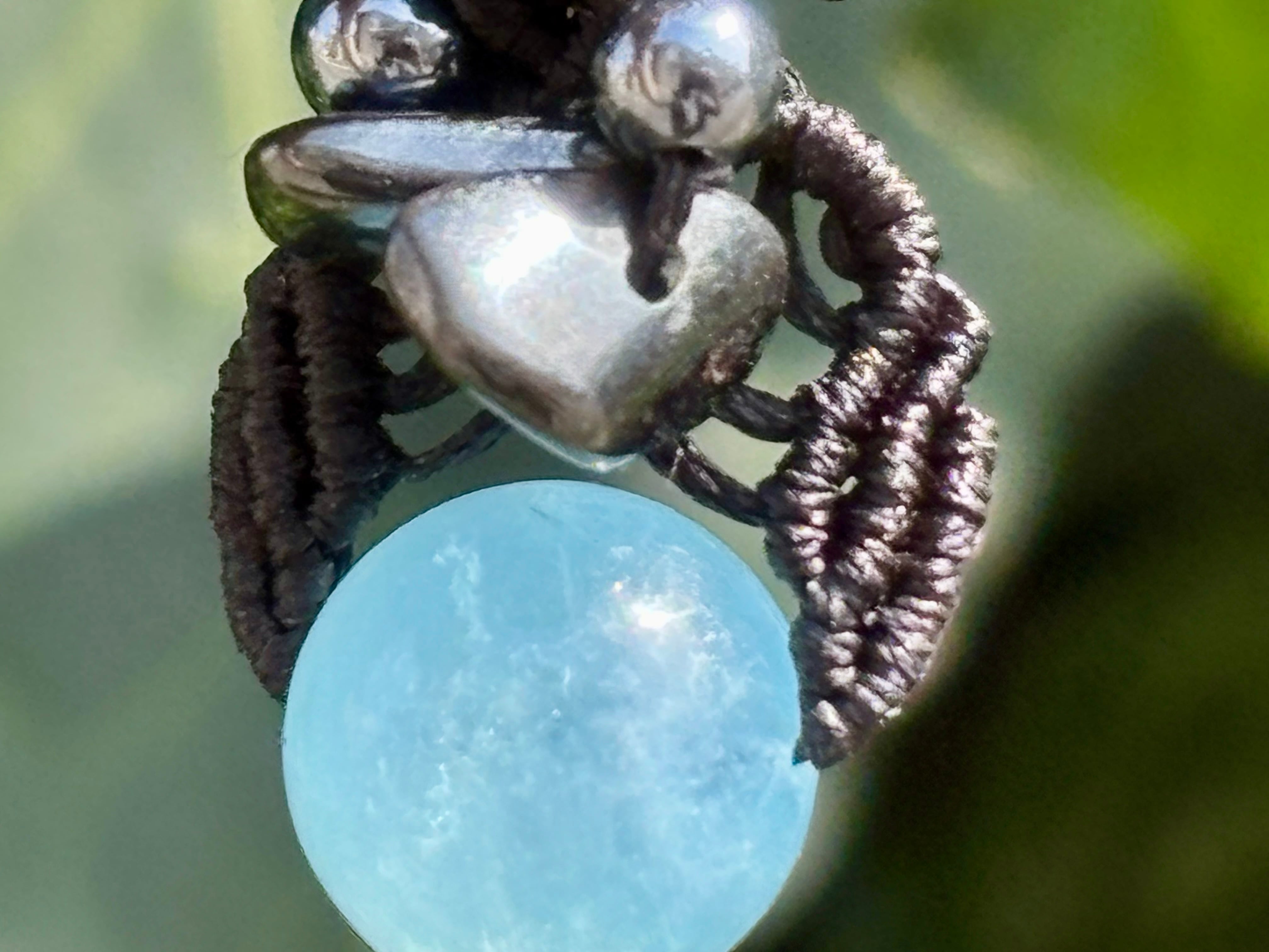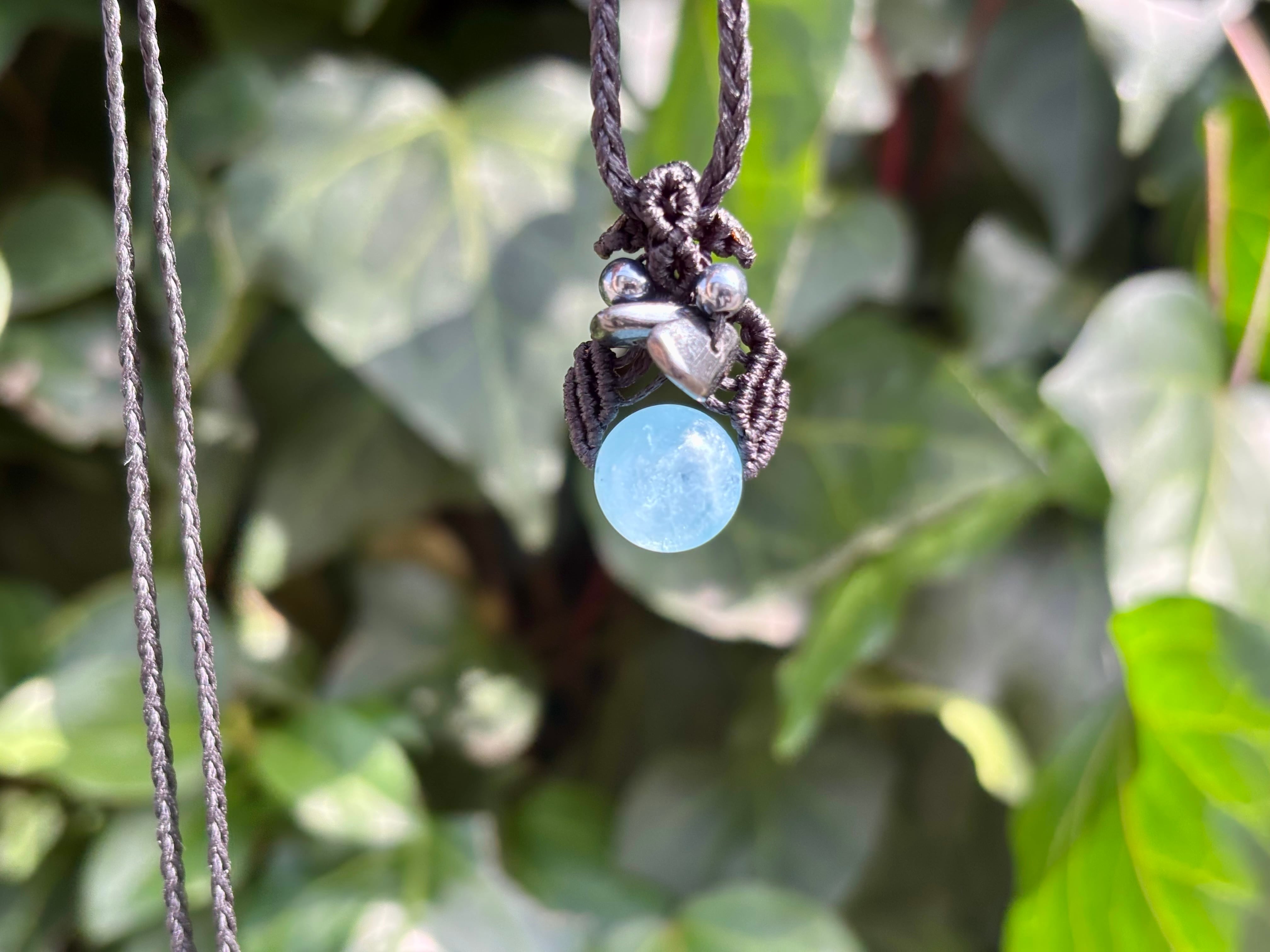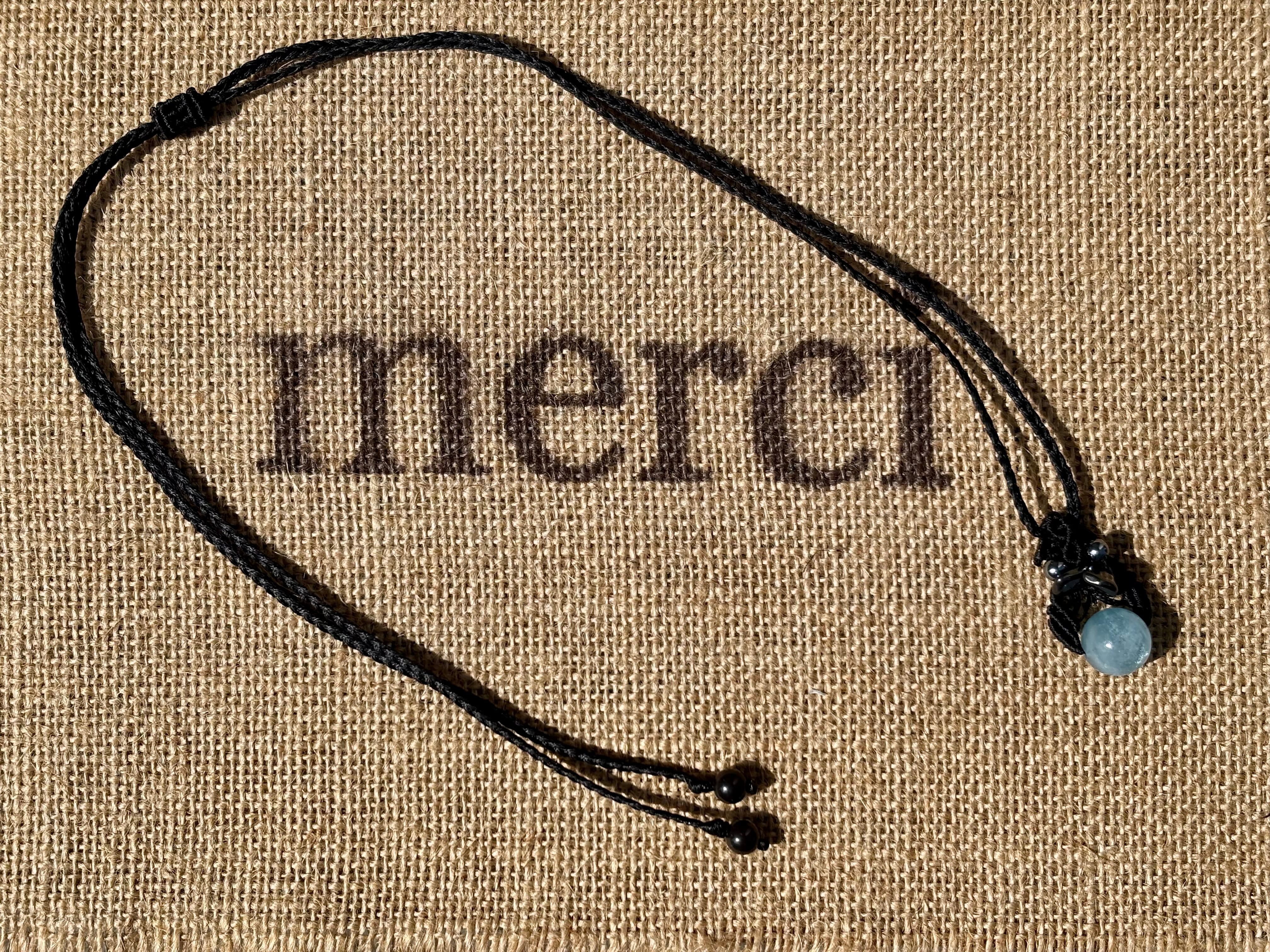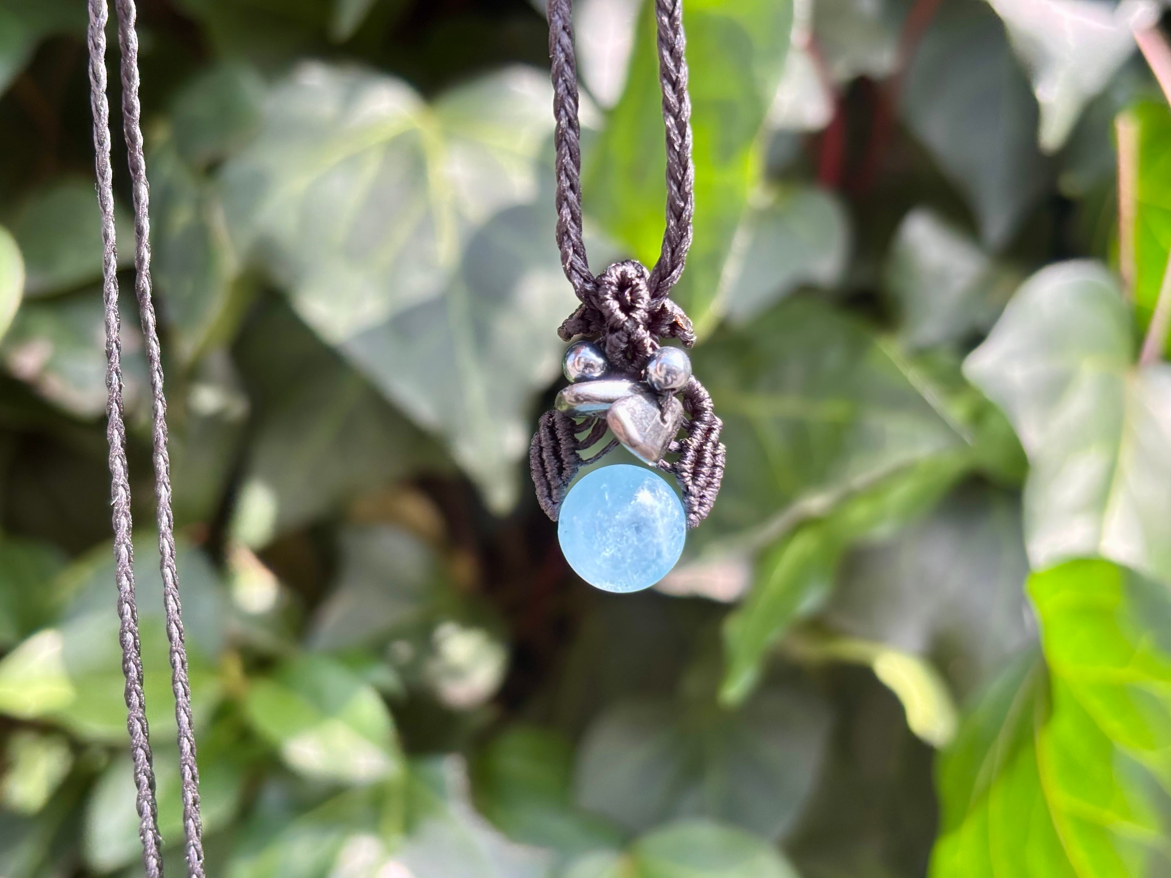 #1036高評価4Aアクアマリン一点物(アクアマリン×ヘマタイト×テラヘルツ マクラメ編みネックレス)