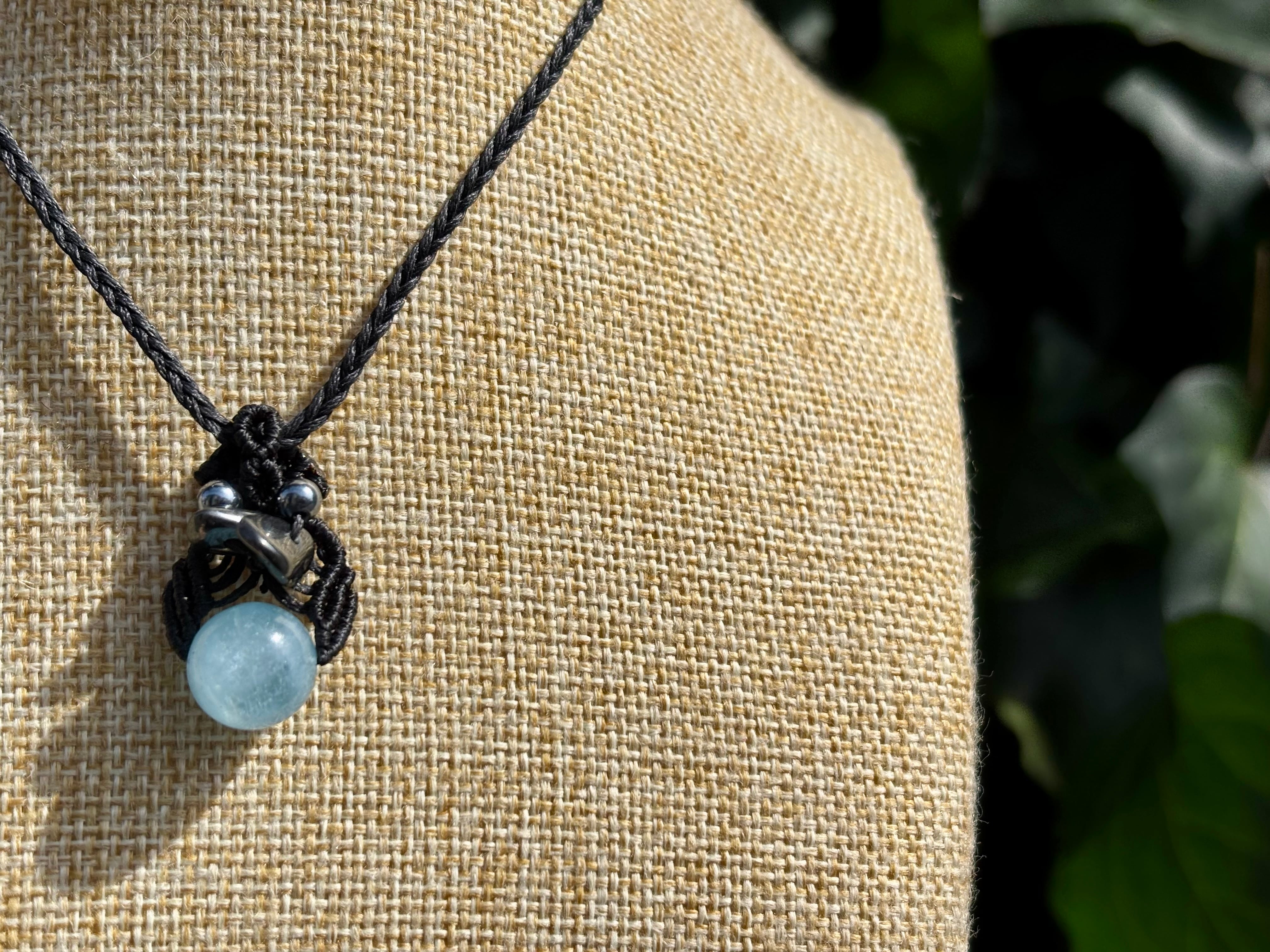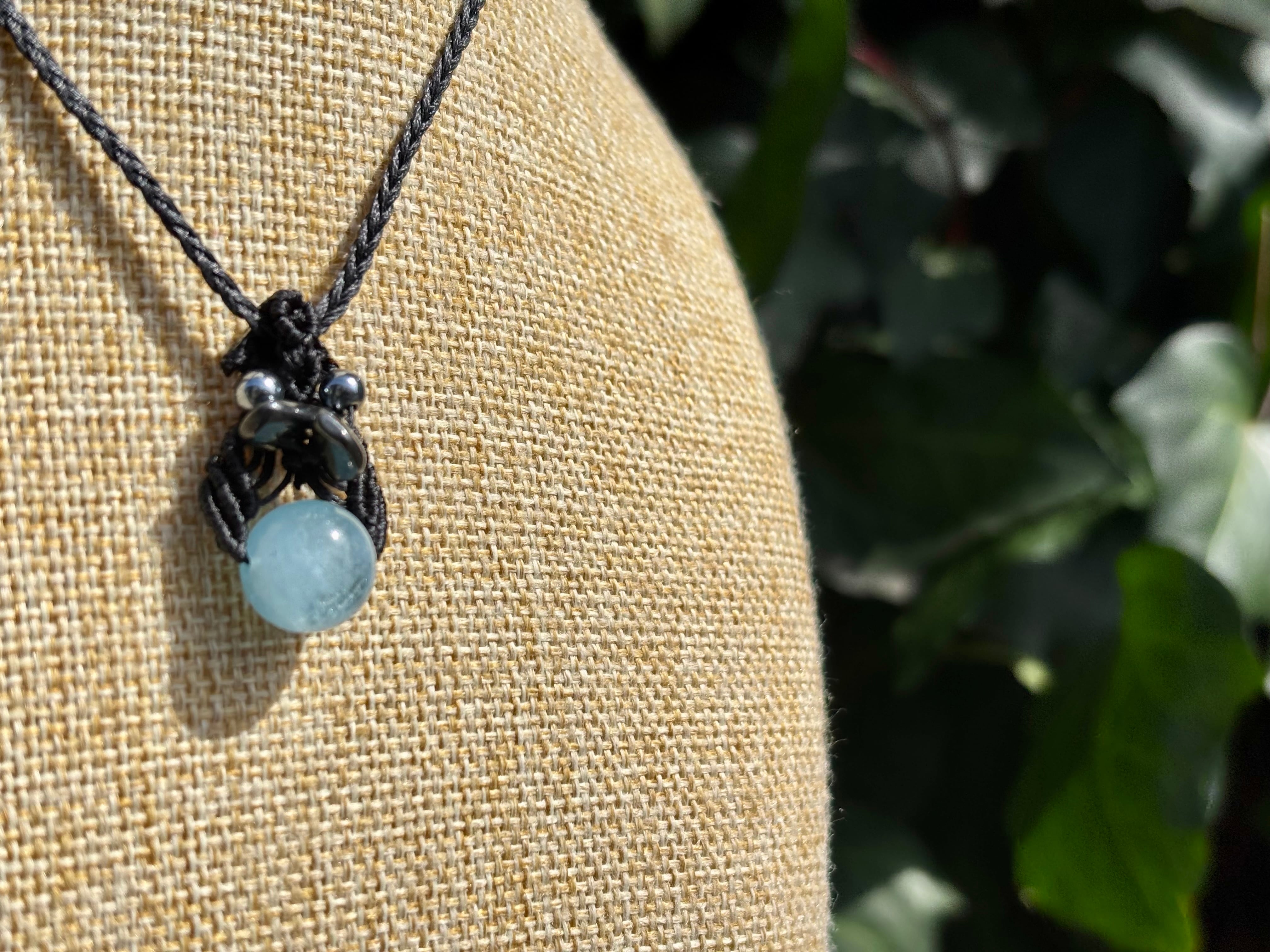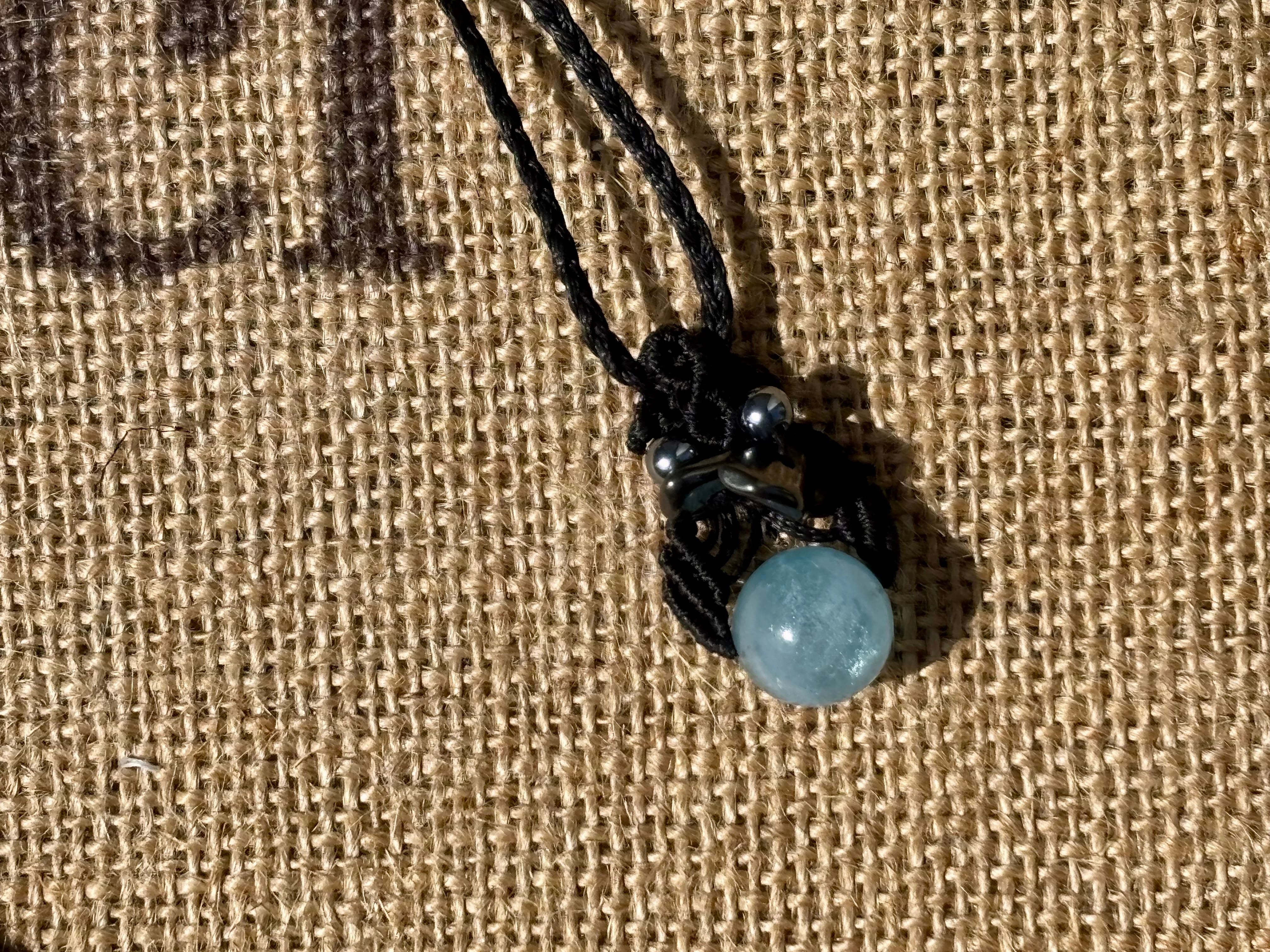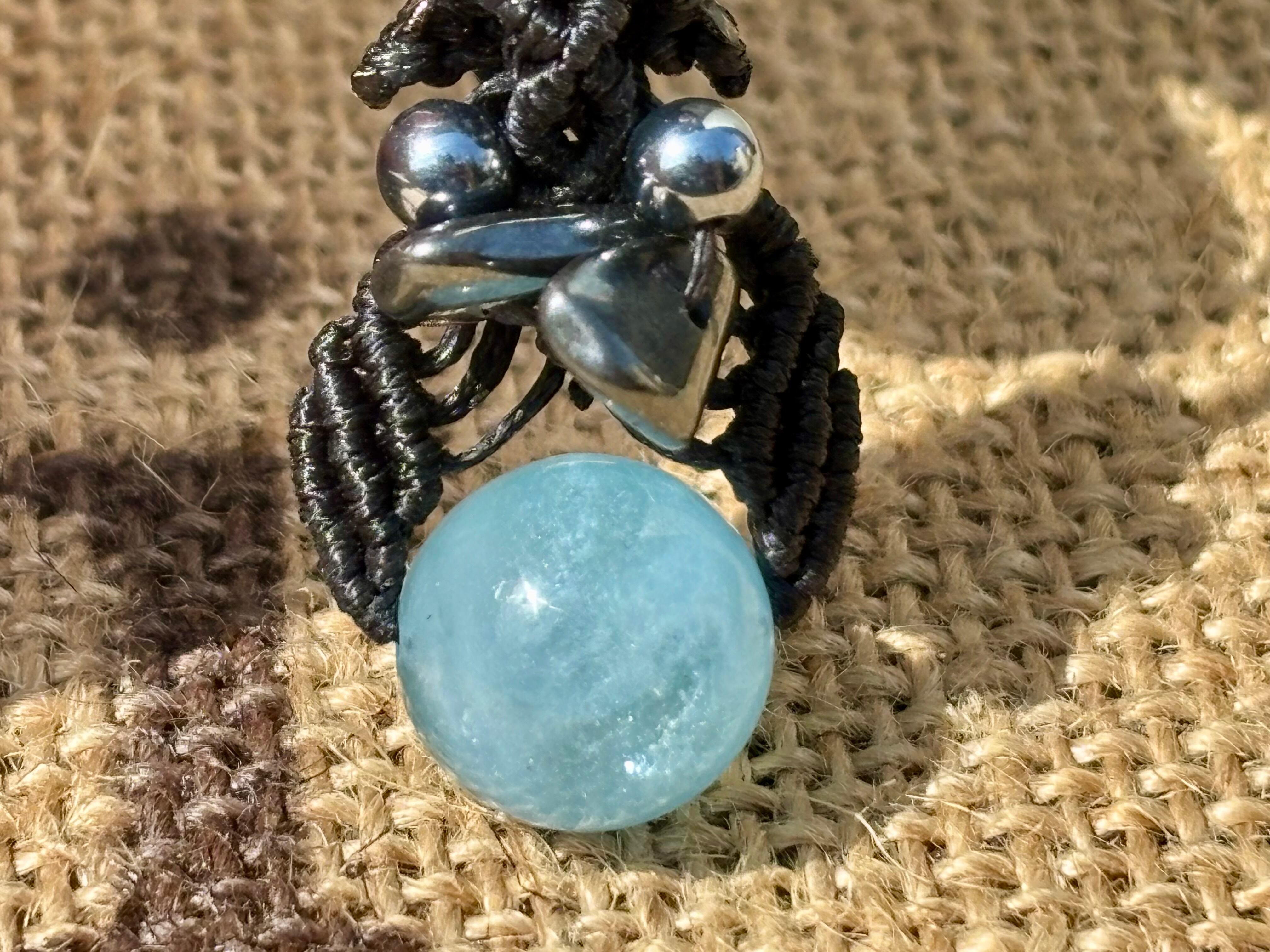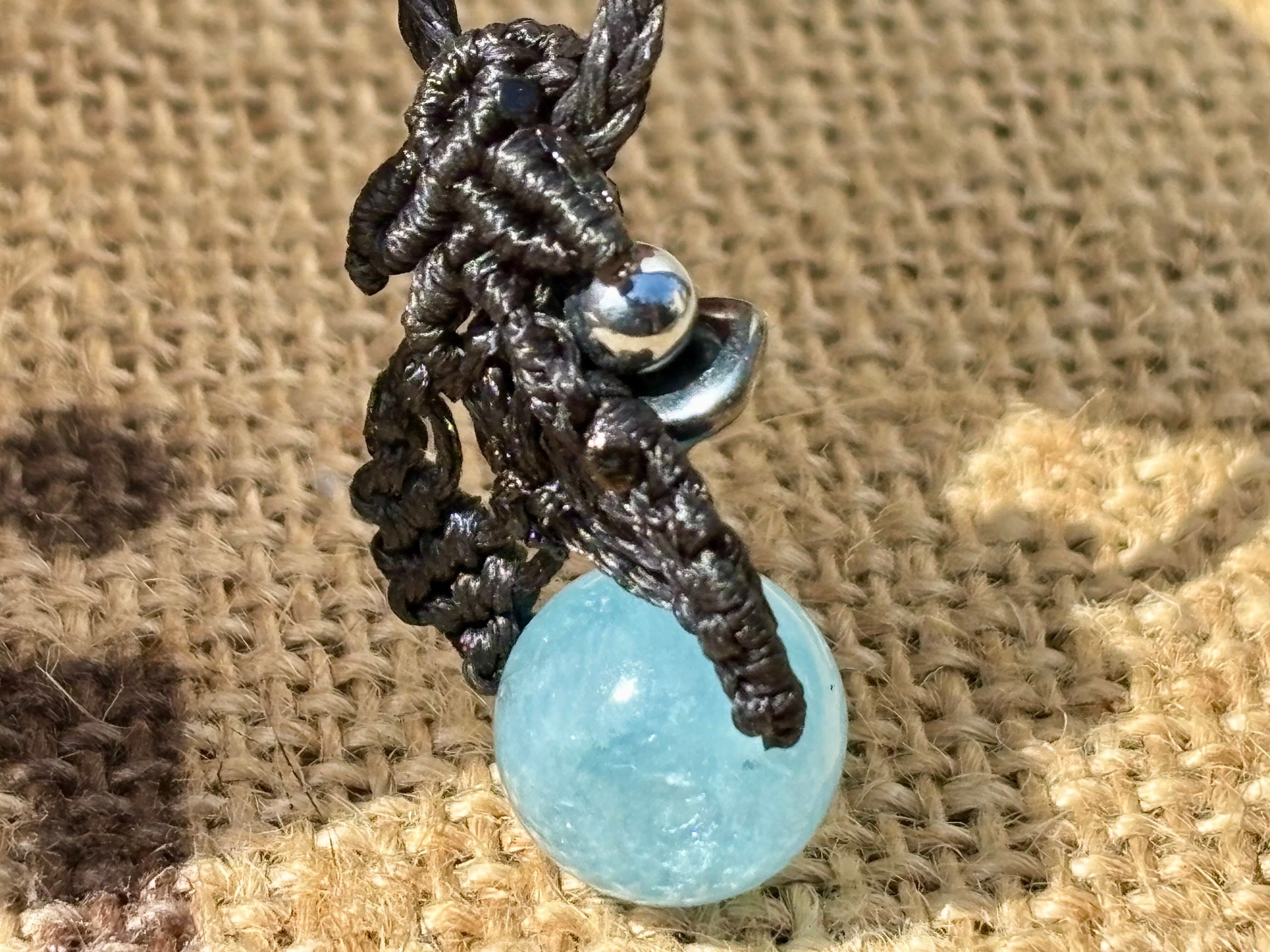 #1036高評価4Aアクアマリン一点物(アクアマリン×ヘマタイト×テラヘルツ マクラメ編みネックレス)