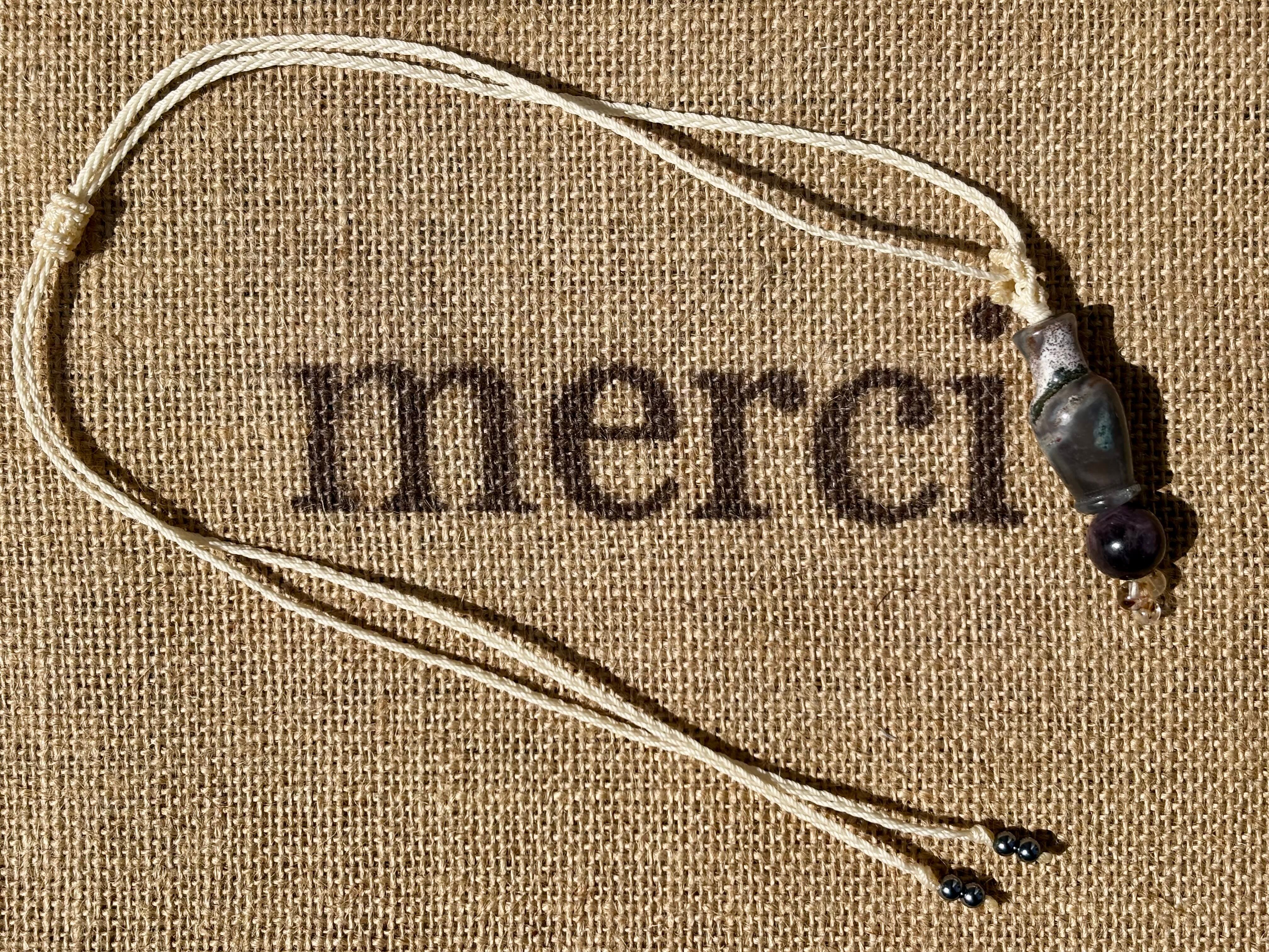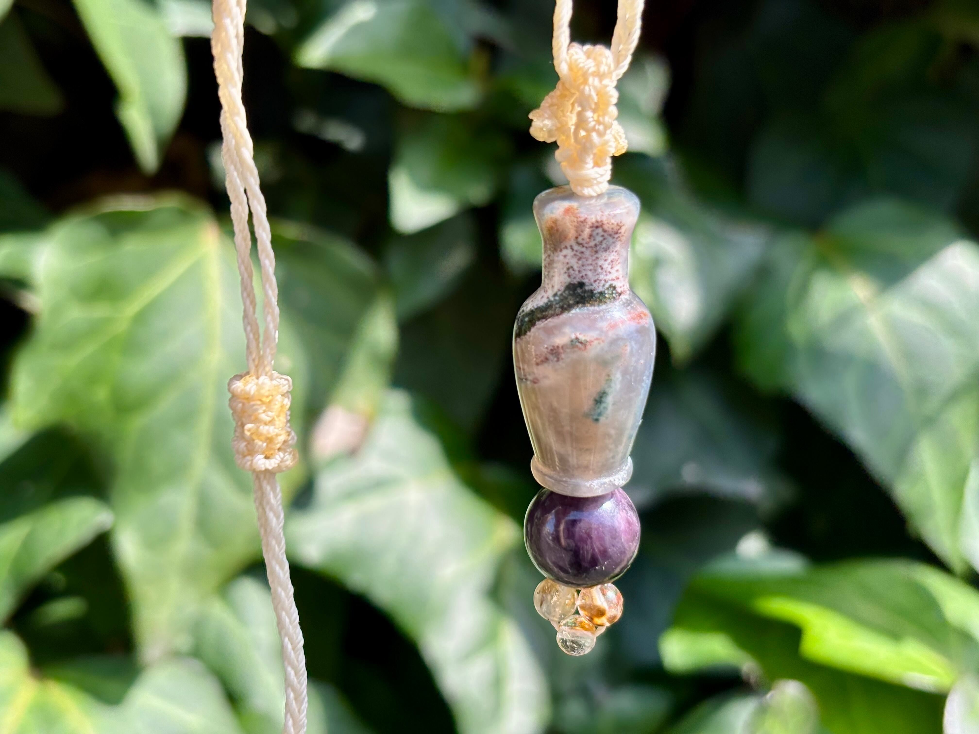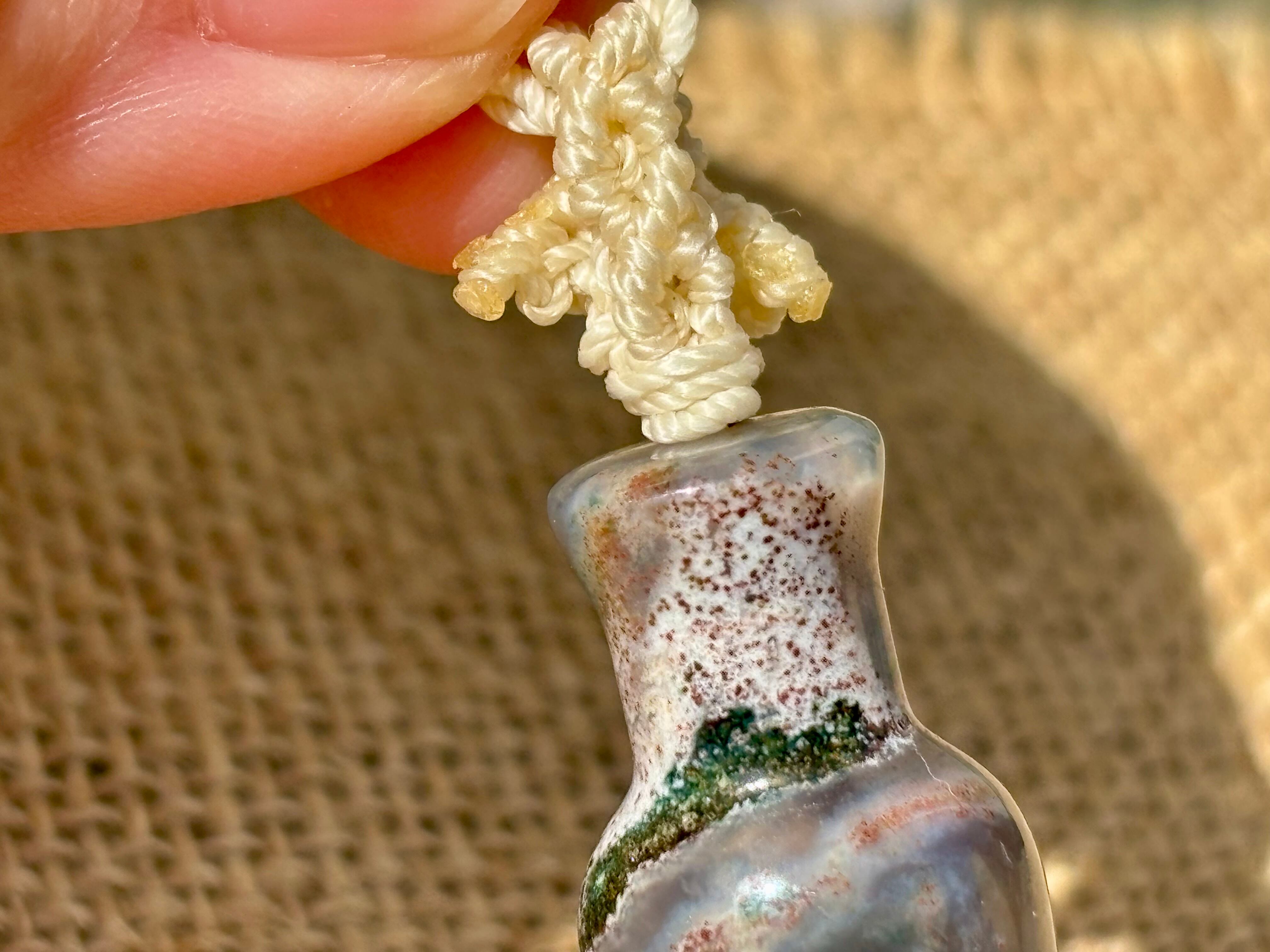 #1039モスアゲート宝瓶一点物(モスアゲート×サファイア×高品質カコクセナイト マクラメ編みネックレス)