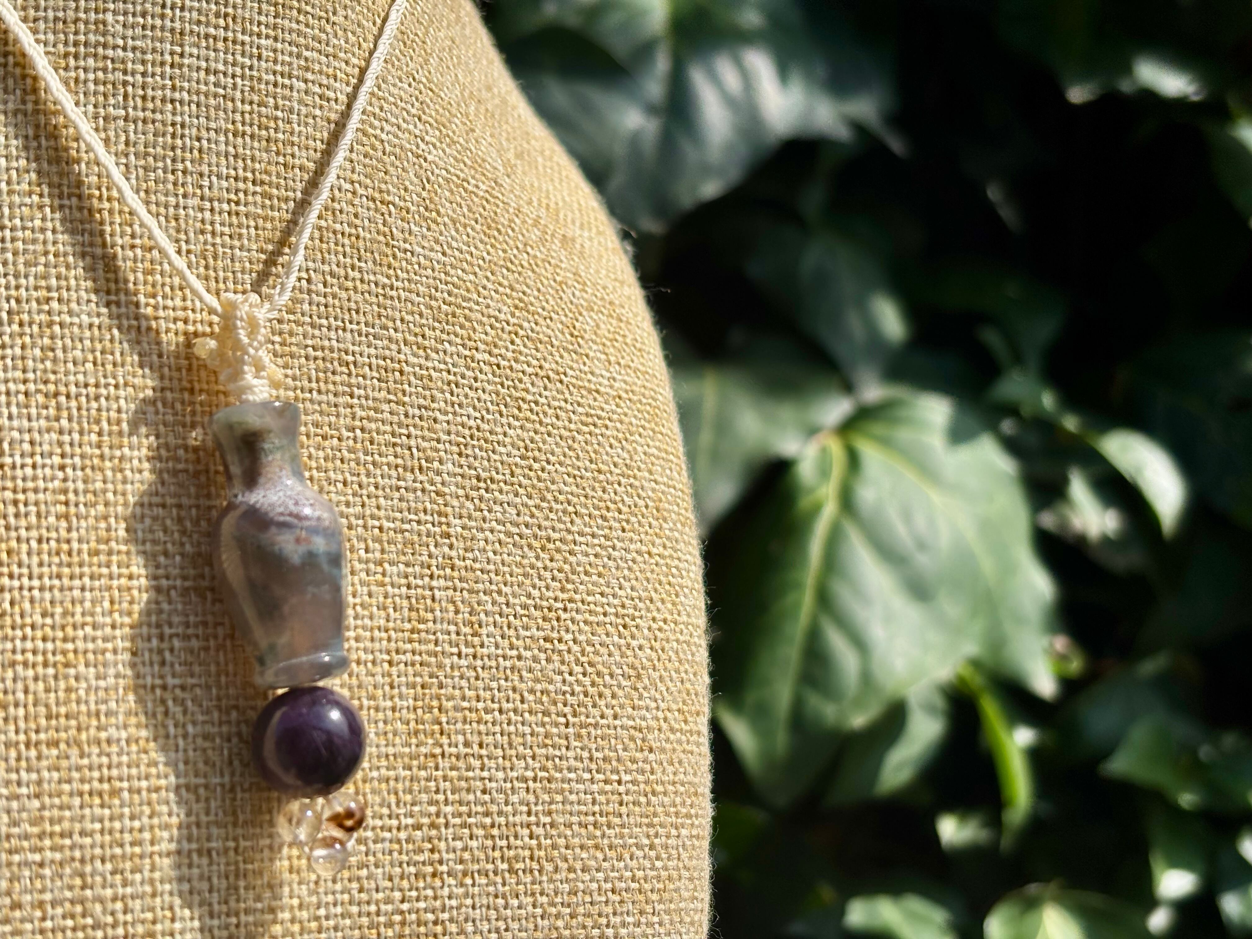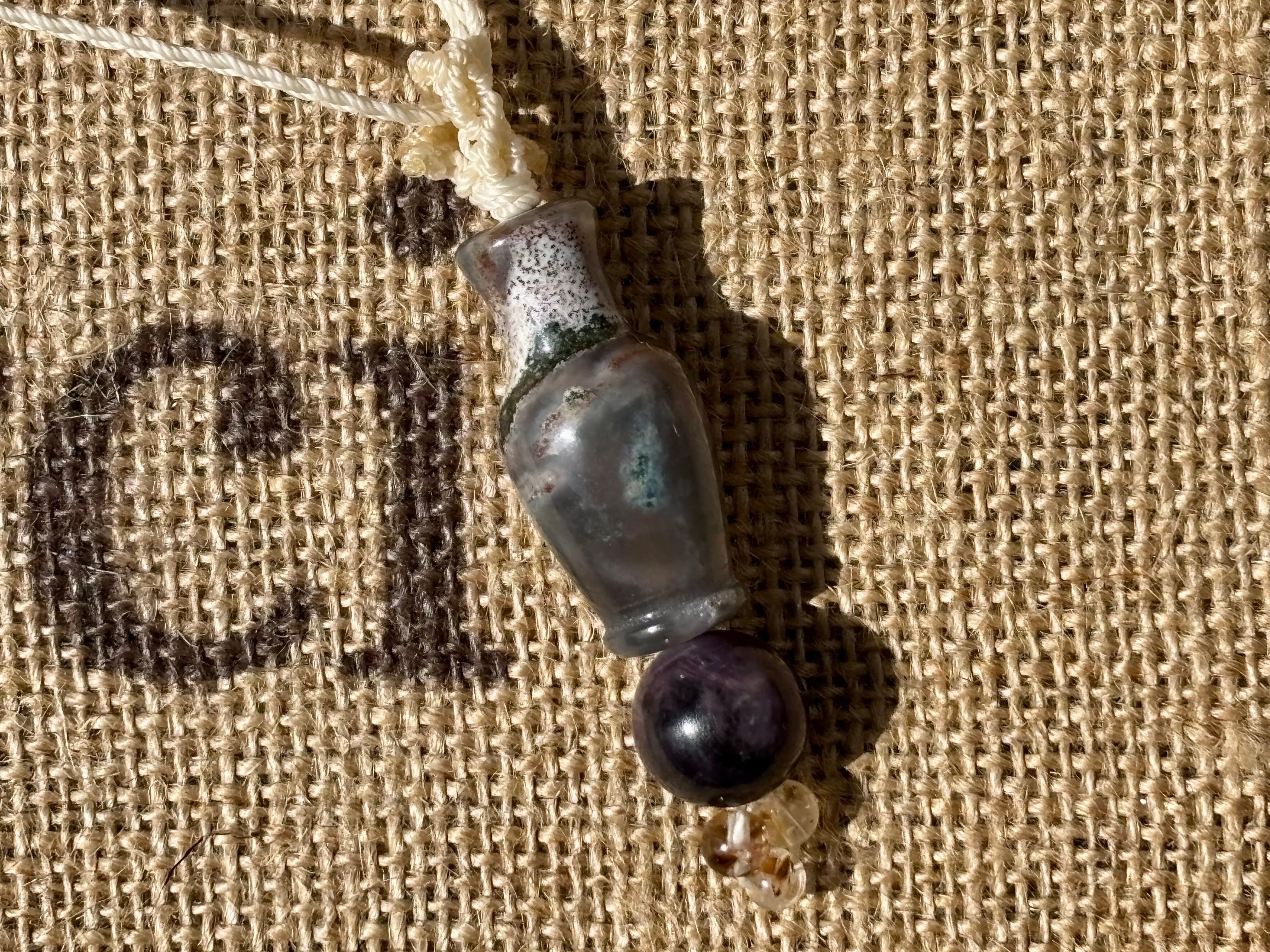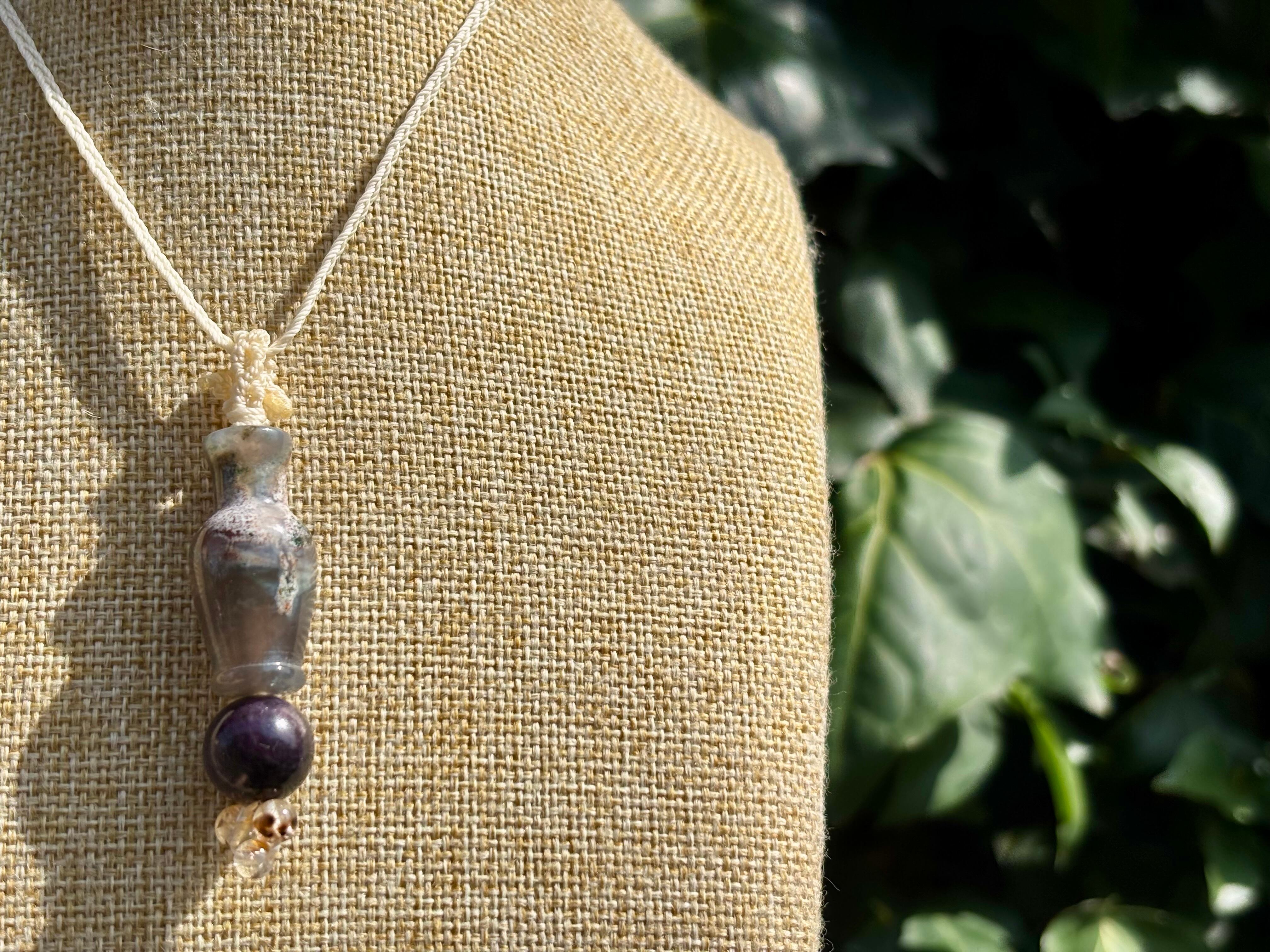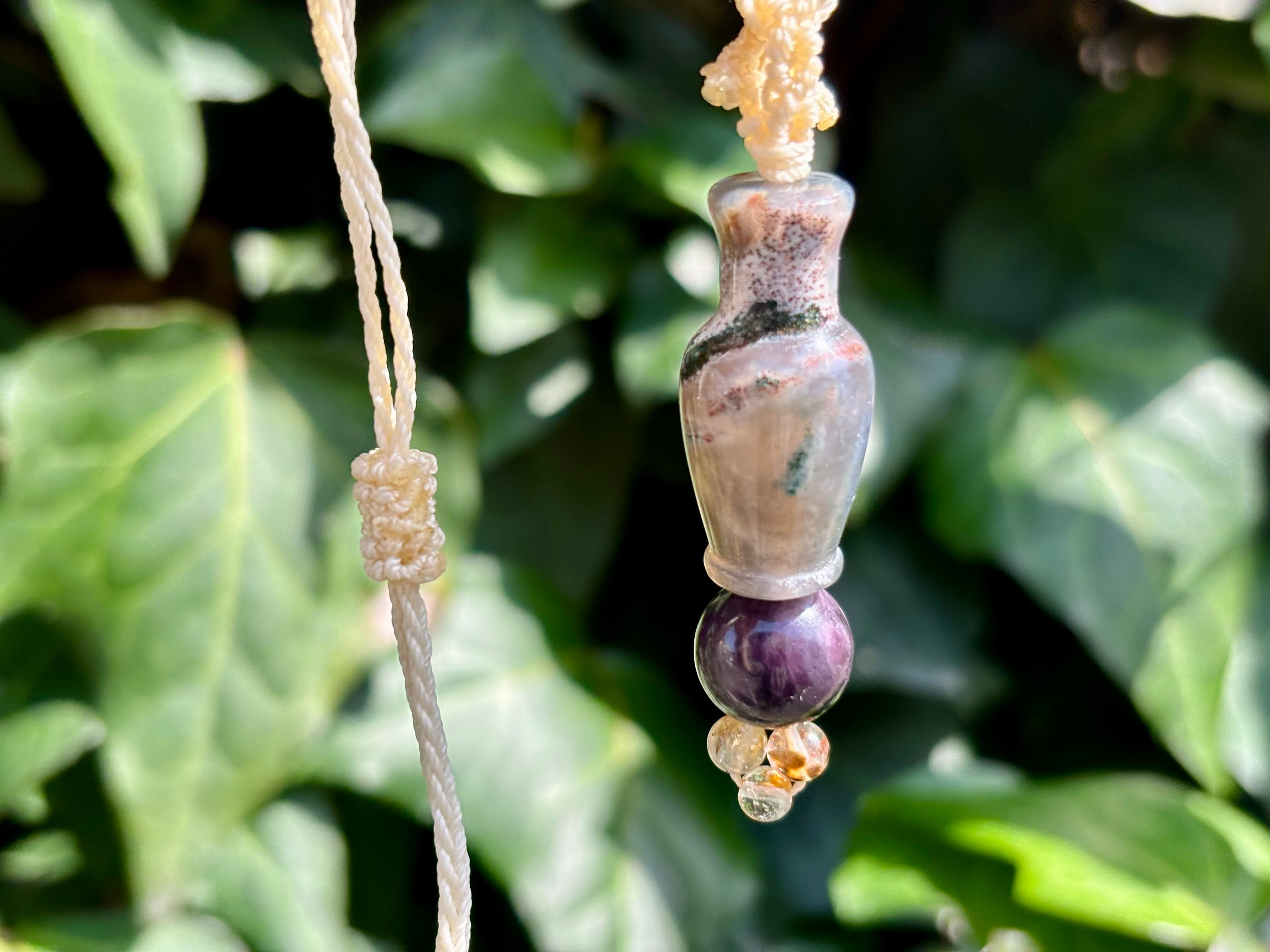 #1039モスアゲート宝瓶一点物(モスアゲート×サファイア×高品質カコクセナイト マクラメ編みネックレス)