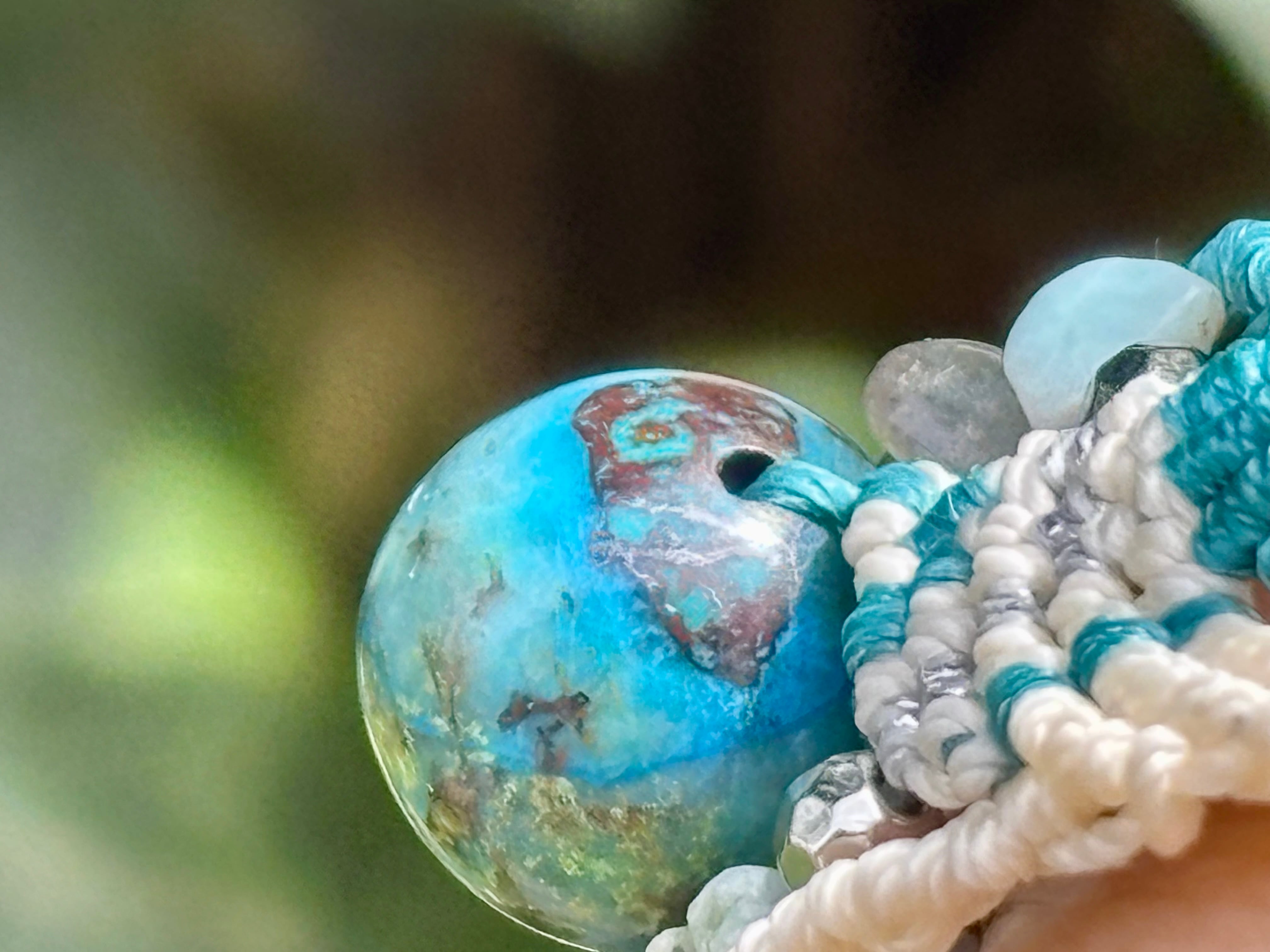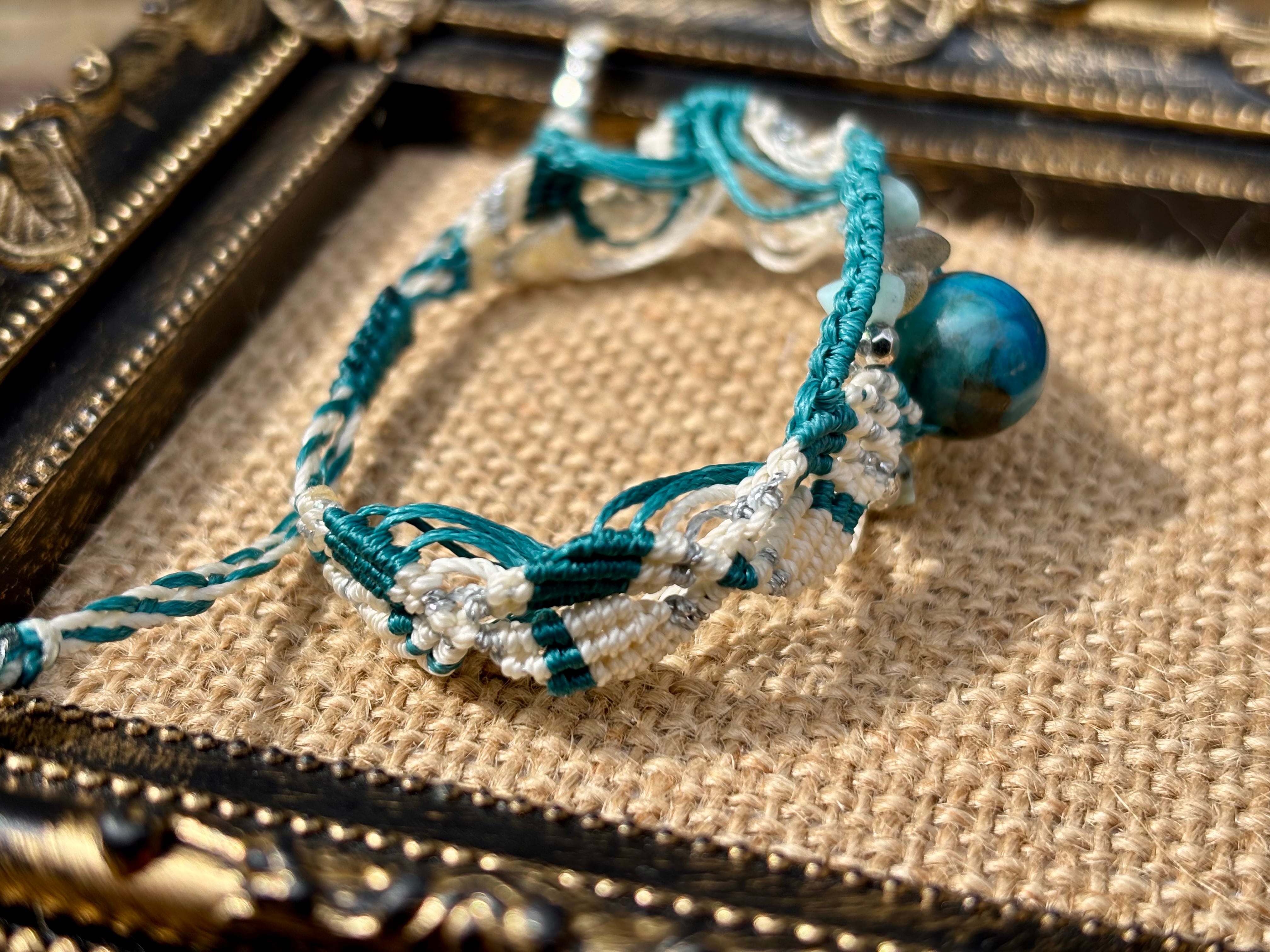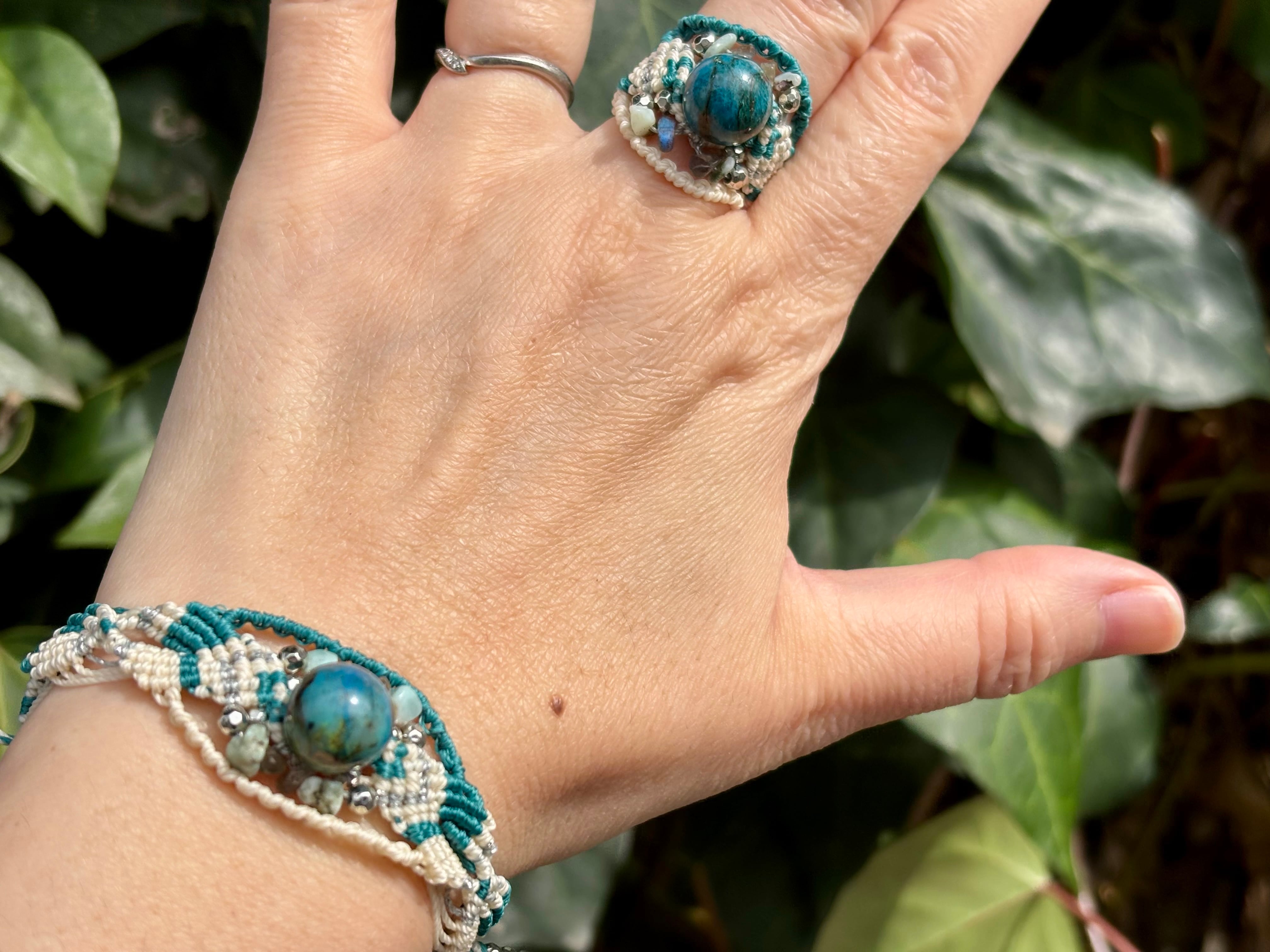 #1045高評価5Aクリソコラ一点物(クリソコラ×ラブラドライト×ラリマー マクラメ編みブレスレット)