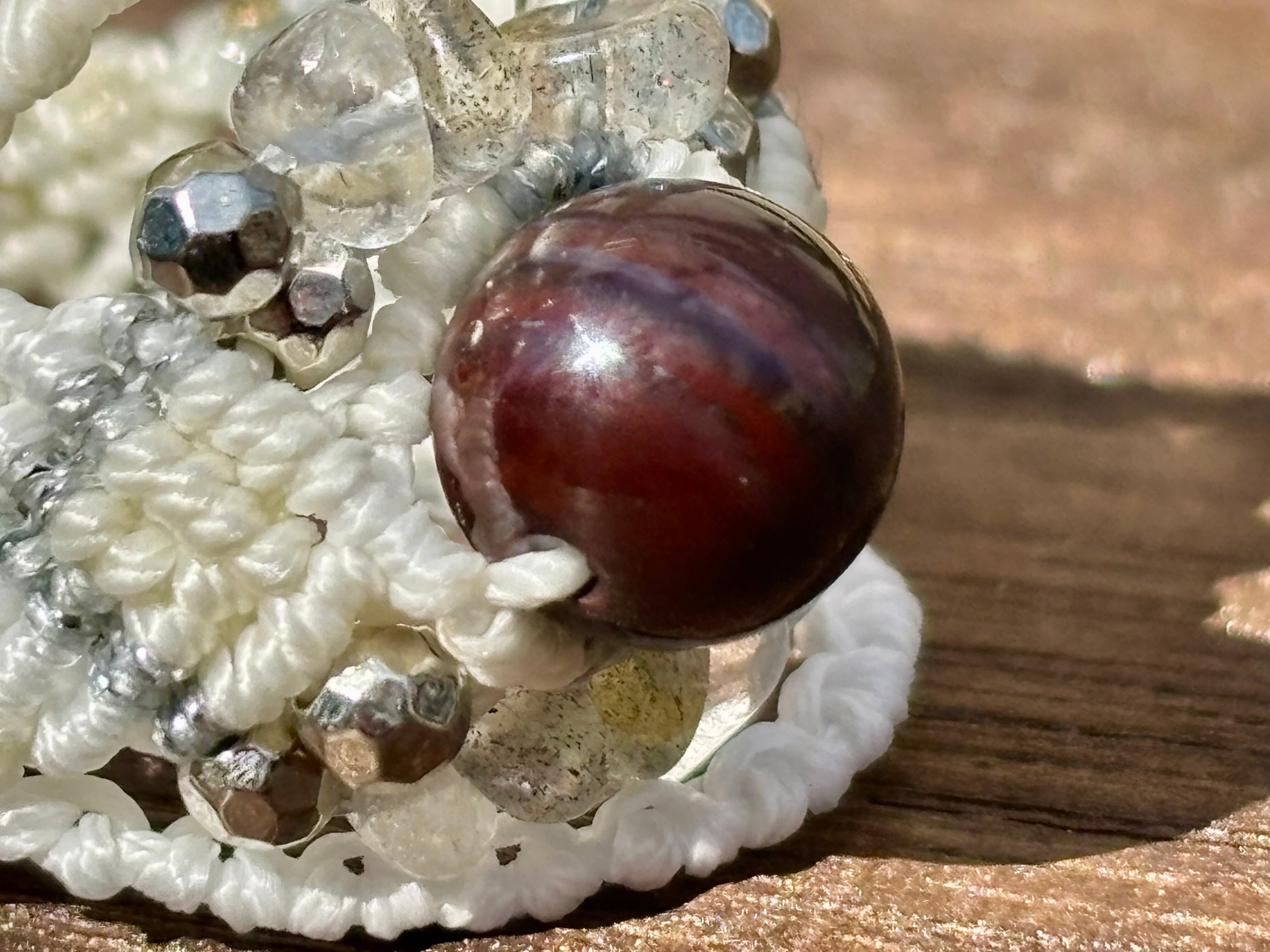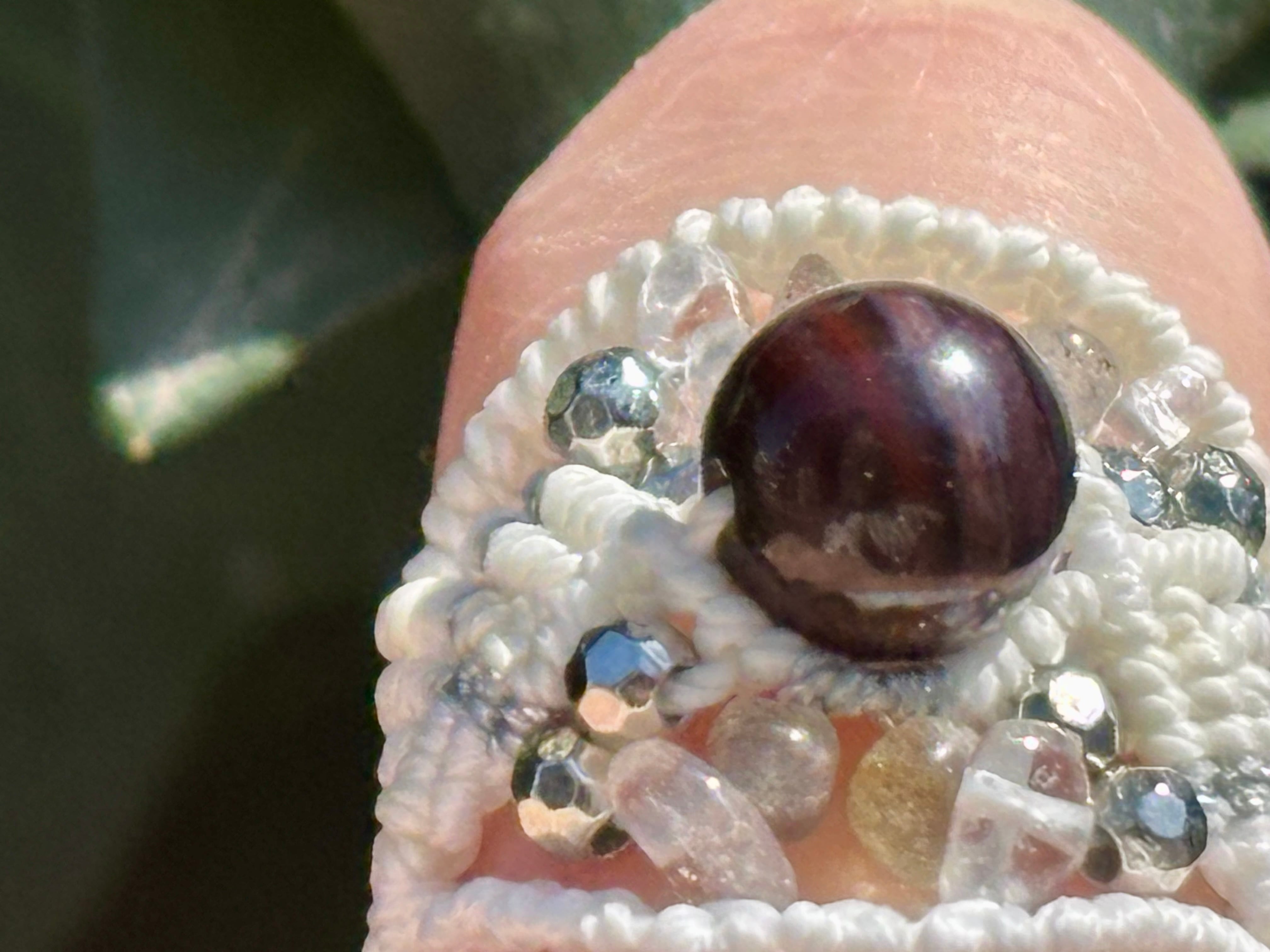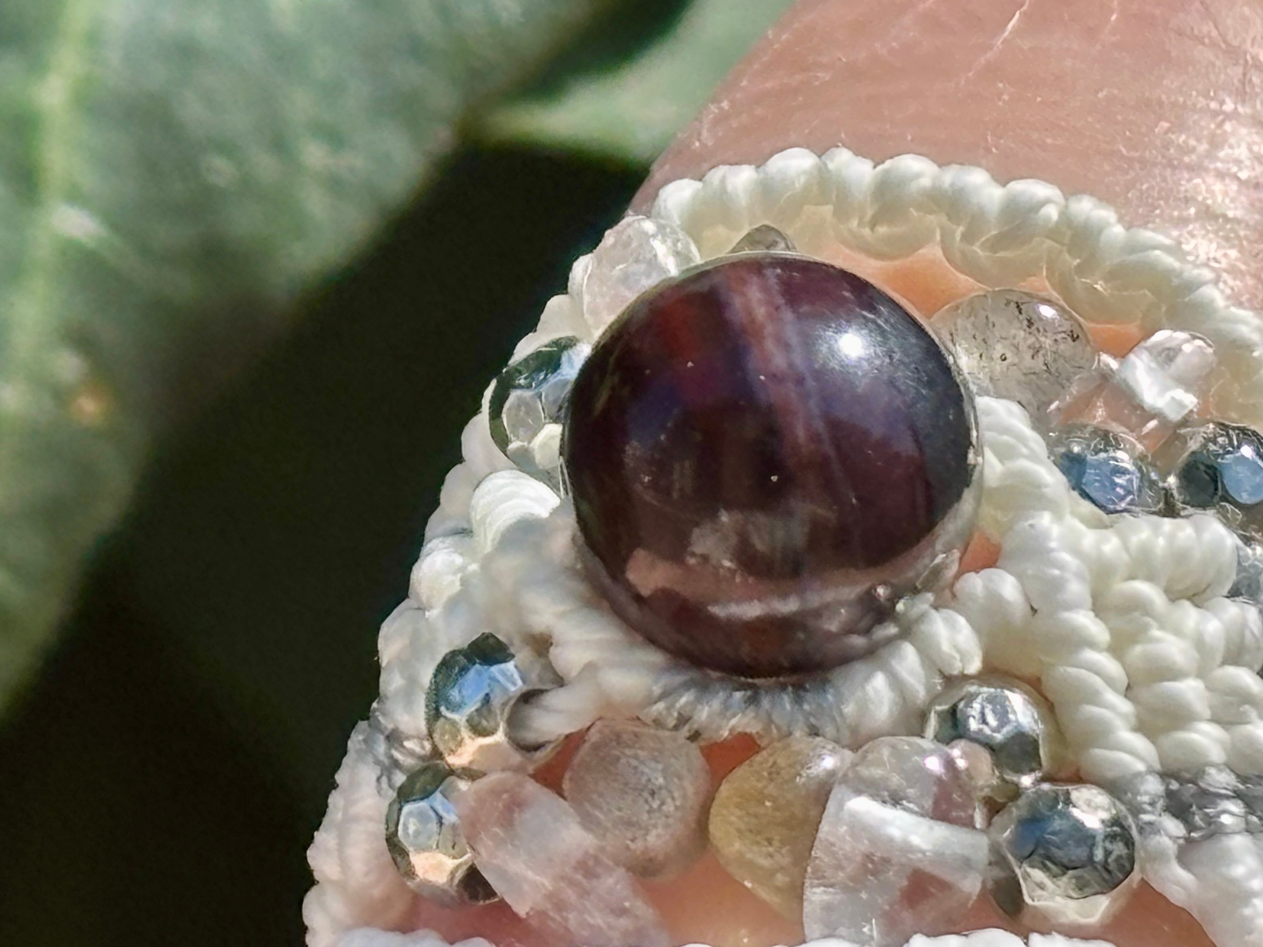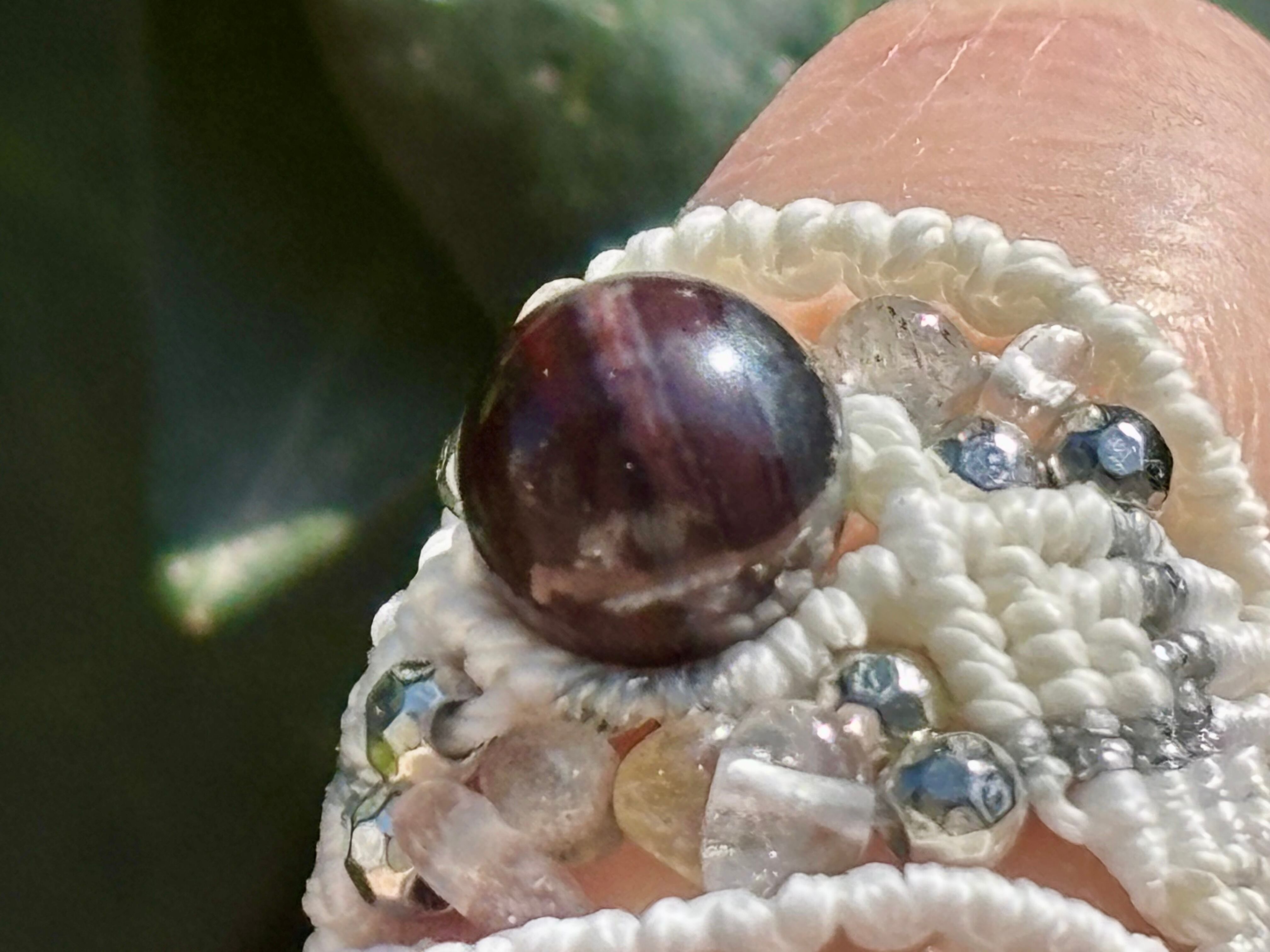 #1049ブラックスギライト一点物(ブラックスギライト×ラブラドライト×水晶 マクラメ編みリング/指輪)